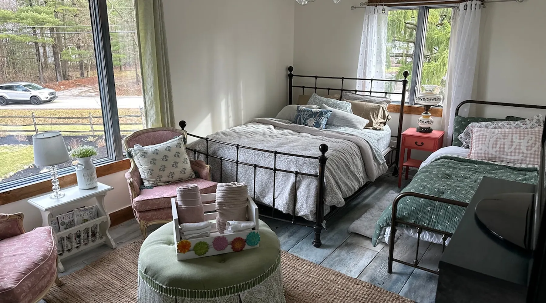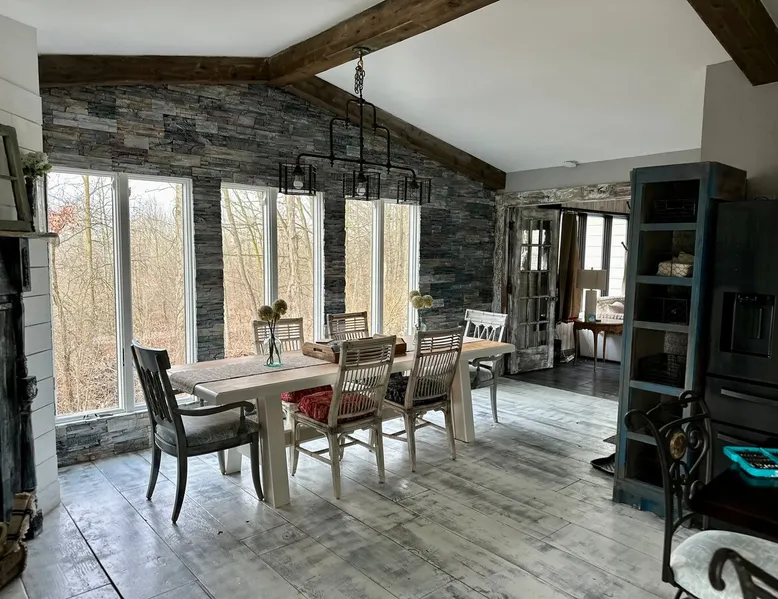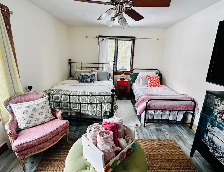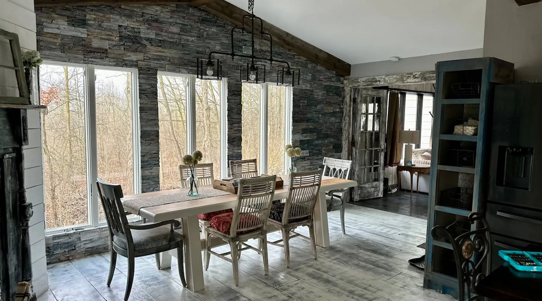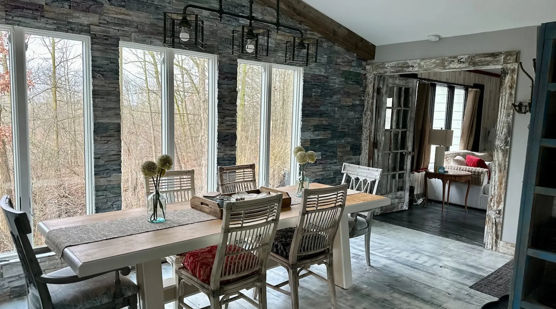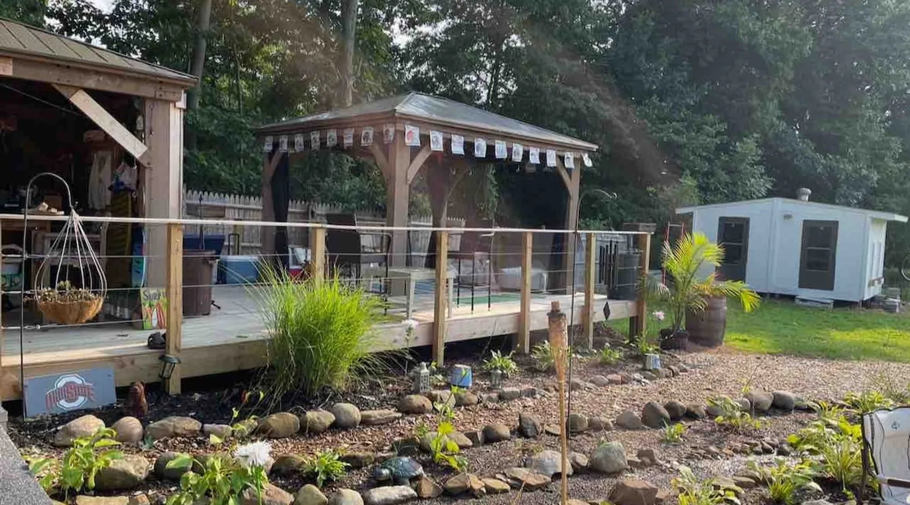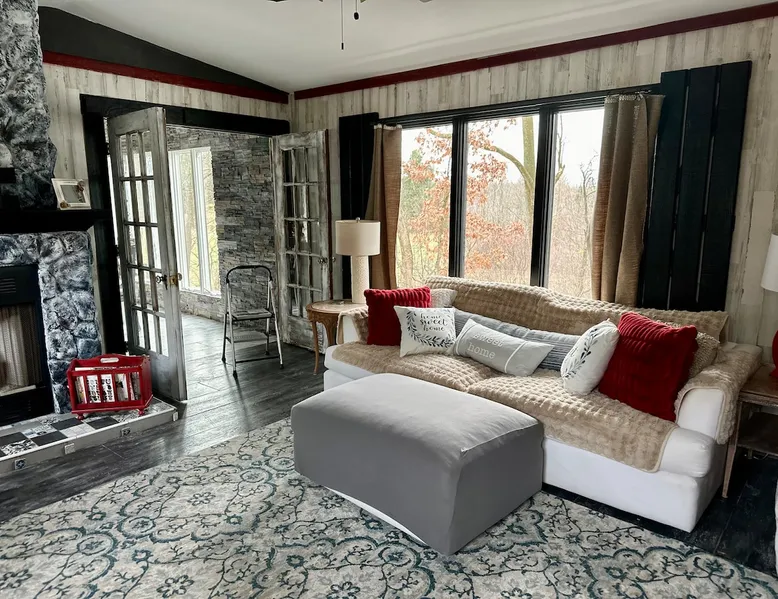 Escape to Brupoppy Farm—your private retreat on 8 peaceful acres just minutes from Cuyahoga Valley National Park. Cozy interiors, a welcoming vibe, and plenty of open space make this the perfect getaway for families, couples, and adventures. 25 miles to Cleveland, 15 to Akron and easily accessible to all highways. We have two houses attached into one house. We live in the other house. They each have their own entrance. The focus is on unique amenities & hospitality. Sleep5/6, fee may apply. The space The Stay has a king, Queen, & Twin Bed. It has a large couch in TV room. It sleeps 5 comfortably and the couch is large enough to act as a twin bed for one extra person. We charge 50.00 per night for one extra person. It goes for the extra preparation and cleaning. The master bedroom has a professional zero gravity massage chair for adult use after a hard day on the trails. Our gourmet kitchen is fully stocked with everything you could need to cook and bake. My wife and I live on the property so you may see us, but we honor privacy/ or welcome introductions, we leave it up to our guests. The Tiki bars, hot tub and decks are located in the back of the property. This is where we come and go, and where we park. Although it is a shared space, we try to give our guests the utmost privacy while you are on our farm. We also have an outside area that is totally private for your needs. We also can show you where the food is to feed the fish. We are in a Prime Location – 10 minutes to Cuyahoga Valley National Park, Blossom Music Center, Boston Mills and Hudson’s / Peninsula’s charming shops. • Cozy Comforts – Spacious bedrooms, a fully stocked kitchen, and thoughtful touches throughout. • Farm Feel, Modern Style – Watch the sunrise with your morning coffee on the deck, enjoy the hot tub, stroll our open fields, or enjoy evenings around the firepit. Wood provided for no charge. Guest access You can access the whole place other than the spiral staircase and the upper deck. We live in the other house and our access is in the back. We have two dedicated parking space for our guests. We want our guest to experience the farm and encourage you to check out the landscape and we are here to help you enjoy it if needed. We have private areas for guest only and the Tiki bar and Hot tub are shared spaces. We are not interested in ruining your time in shared spaces, we come and go from the back as we live on the property. So please when booking with us know that you will see us as we like to at least greet you, make sure you get in with no issues, and can accommodate any reasonable request. This is a quiet area and the back is private for your party to have a wonderful intimate time in the tiki bars and fire pit. Under no circumstances are other people allowed to be invited over or any loud parties. Other things to note We cannot accommodate animals in our house. Our daughter has a SEVERE allergy to animal hair and skin, we cannot make any exceptions. If you bring a "service" animal to our property we reserve the right by law to ask what service the dog has been trained to perform. Please see difference between ADA service dog vs emotional support. https:// We encourage you to look up the ADA guidelines for service vs emotional support guidelines. For our own healthy and safety we want to be upfront to all guests about the impact animals have on our property. If a dog appears not to be a "service" dog, we will contact Airbnb and ask you to leave without refund. We understand disability intimately well and the life altering ramifications it can have. Two years ago my wife was in a horrific car. accident is now permanently disabled. She easily could’ve gotten a site dog for the site that she lost, but due to the allergy of our family that is not possible. The reason we put this in our listing so blatant is because we have had two incidences where they were clearly not service dogs. The destruction and clean up is more than we would like to take on for our property. Also we feel it is important for guests who have allergies to know they are in a clean space. Thank you for your understanding. If something is not ideal please give us a chance to see if there is a way to make it better. . If you need something prior to your stay let us know so we can be prepared for your visit. We recently were asked if we had a coffee grinder and we didn’t .. so we got it before our guests came! If you need something it is most likely it will benefit someone else… we appreciate when guests are honest, so we can make your visit great. We strive for perfection, but sometimes that is not always possible depending on guests expectation. We want you to feel like you are staying in a private resort while here in Boston Heights. We take your happiness seriously and are committed to you the minute you book with our farm. This is also a very kid family place. Lastly we pay the Airbnb fee (15%) in our price so there are no surprises at the end or additional charges for our guests other than cleaning fee. Please keep that in mind when comparing on price. We are close to the following areas to visit: Cuyahoga Valley National Park. Town of Peninsula Boston Mills Downtown Hudson Akron Zoo Cuyahoga Falls Downtown Area Beachwood Hard Rock Casino [Gambling and Music] Blossom Music Center Sarahs Vineyard, ThornCreek Winery Rock n Roll Hall of Fame Camp Hi Canoe & Kayak [Awesome fun] Football Hall of Fame Cleveland Art Museum Cleveland Museum of Natural History Theatre Many "Fine" & "Casual" Restaurants, Historic Hudson, Ohio Outlets & shopping Cleveland Clinic or Case Western University and Summa Hospital System