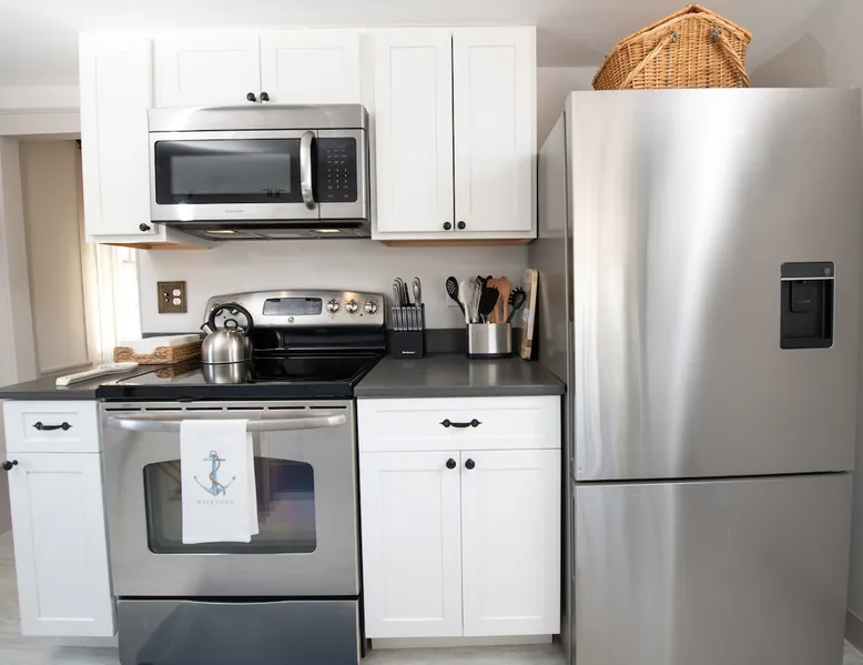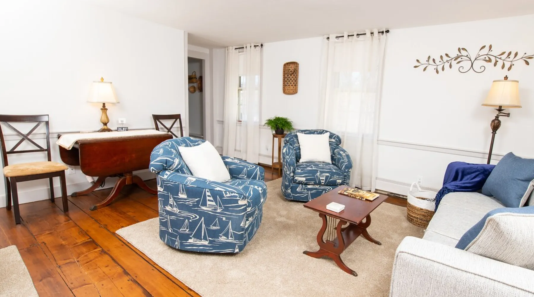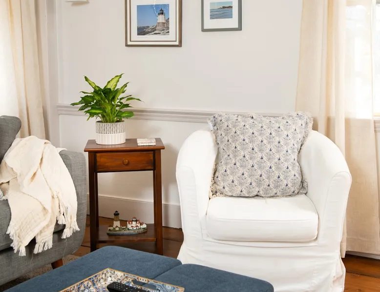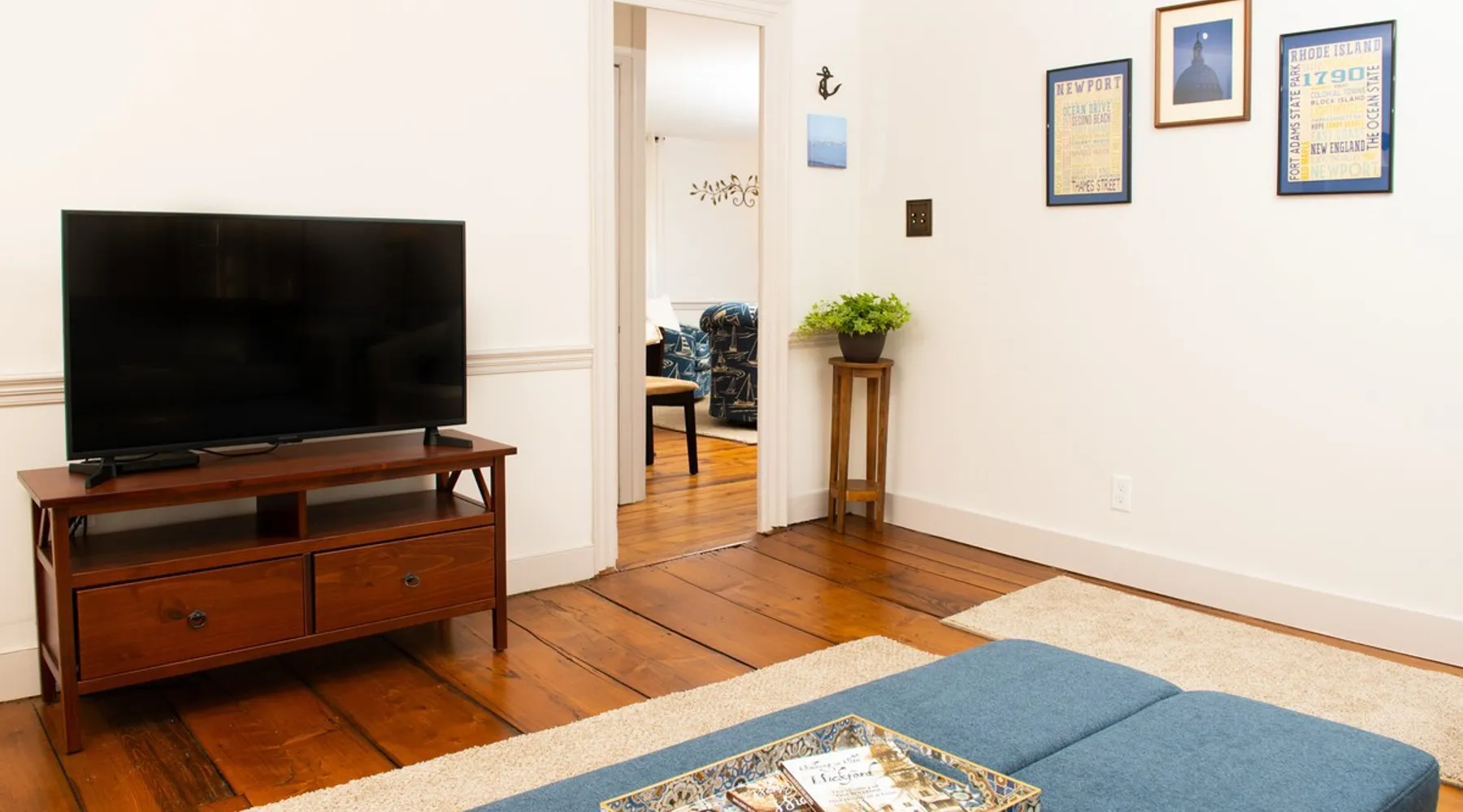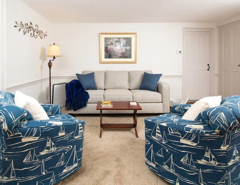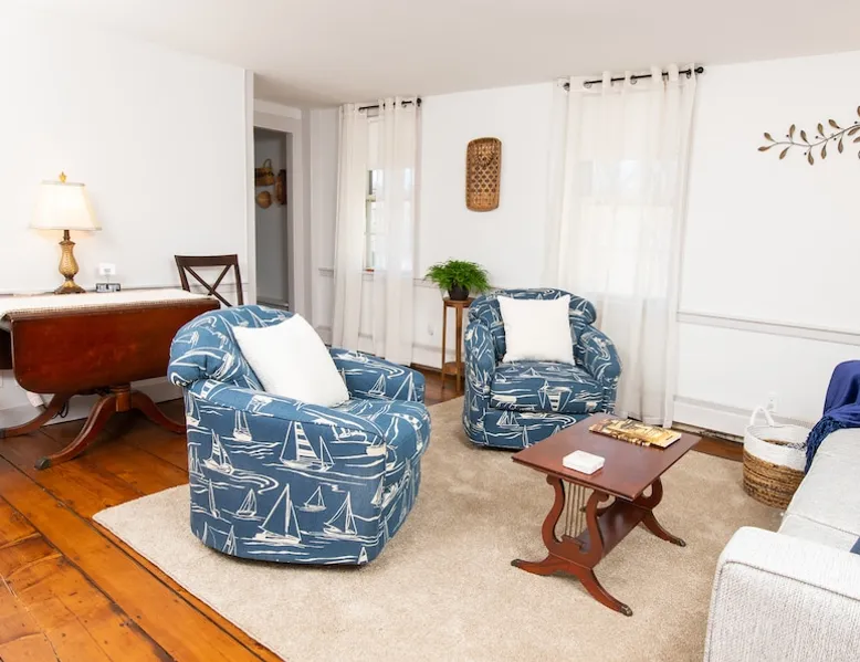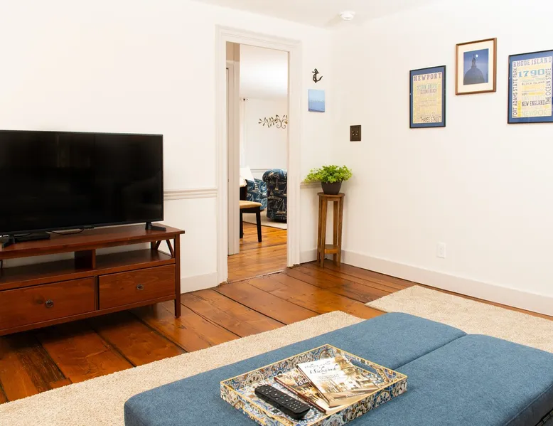 Historic Waterside Location in Wickford Village. The 1806 Westgate Watson House, reflected across the water of Academy Cove is one of the most painted and photographed scenes in Wickford for its picturesque setting and serene New England charm.Just a short block from the Village main street, but at the end of a side street, you’ll feel as if you’re in a magical place, a tranquil oasis but just a 1 minute walk to Wickford shops, restaurants and events The space The house has an interesting history both for its role in the village and also architecturally for old-house buffs. It began as an 1806 Federal colonial but was 'modernized' in the mid 1800's with a Greek Revival facelift and later expanded when they attached a 1750's ell. Modern conveniences were accommodated to the existing floor plan with minimal changes. Care has been taken to preserve the historic integrity of the house while totally refreshing the living spaces with a completely new kitchen and updated bathroom. The space combines the best of the old and new without compromising comfort. The rooms are sunny and airy with numerous windows, giving wonderful views and letting in the cool coastal breeze. Outside, in the yard, there are both shared common areas and also more private areas. Relax in a peaceful sitting area in the yard and let the ripple of the tidal waterfall transport you back to a simpler time. A weeping willow frames your view of the Village across Academy Cove. This is an apartment within a larger house. The second floor, 1 Bedroom Apartment provides accommodation with queen bed, bedding/Linens, full bathroom, kitchen, a living/ dining area and an spare sitting room with 43” 4K HD Smart television. Verizon Fios is offered with 486 channels including premium channels, Max Starz® and Starz Encore®, Showtime, MGM+ and HBO MAX. Within 30 minutes – Newport, Providence, URI, Brown, PC, J&W, airport, train stations, Block Island and Martha’s Vineyard ferries. Guest access The Airbnb apartment is located on the second floor. There is on street parking at the house. ( photo provided with check in instruction ) There are 3 units on the property. Registration Details RE.05147-STR