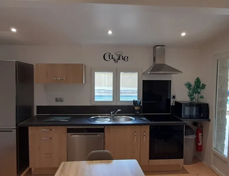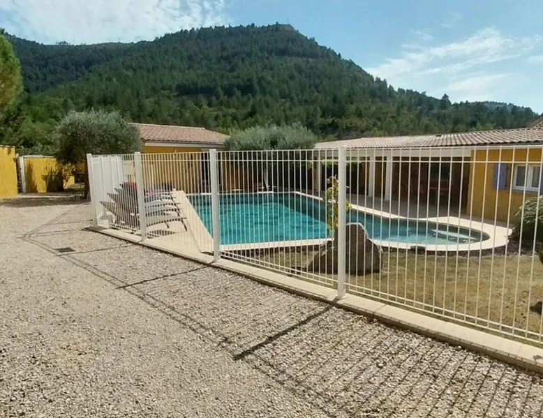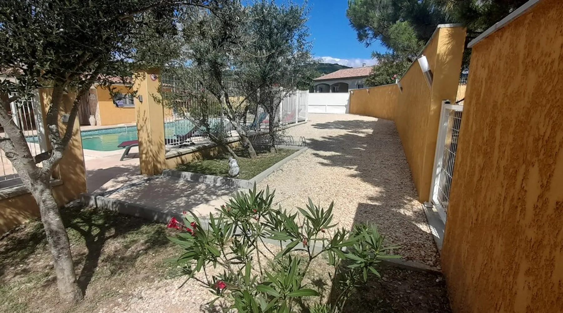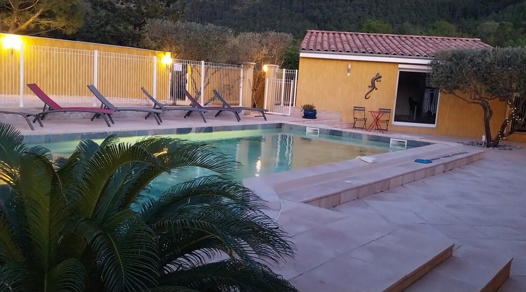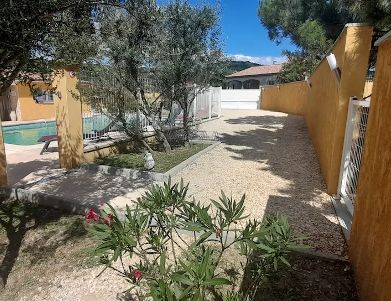 With family, friends or lovers, come and taste the charms of the Ardèche in a soothing natural setting. At the gates of the southern Ardèche, 10 minutes from the main town Aubenas, come and enjoy a 3-star rental for 6 people. You will enjoy summer evenings around the plancha, by the 10x5 pool, 100% private. Unheated pool. cottage with 2 bedrooms and 2 bathrooms. private entrance, fully fenced. pets allowed at no extra cost. The space the rental consists of several buildings around the pool. bedroom: 1 bed with bathroom and toilet. bedroom: sleeps 3 with bathroom. kitchen with bathrooms and toilets. sheltered outdoor living room. sheltered outdoor dining area. no indoor living room, TVs in bedrooms Guest access fully private accommodation, independent entrance. fenced, gate. Other things to note Le Petit Bonheur 07 rental from Saturday 4 p.m. to Saturday 10 a.m.