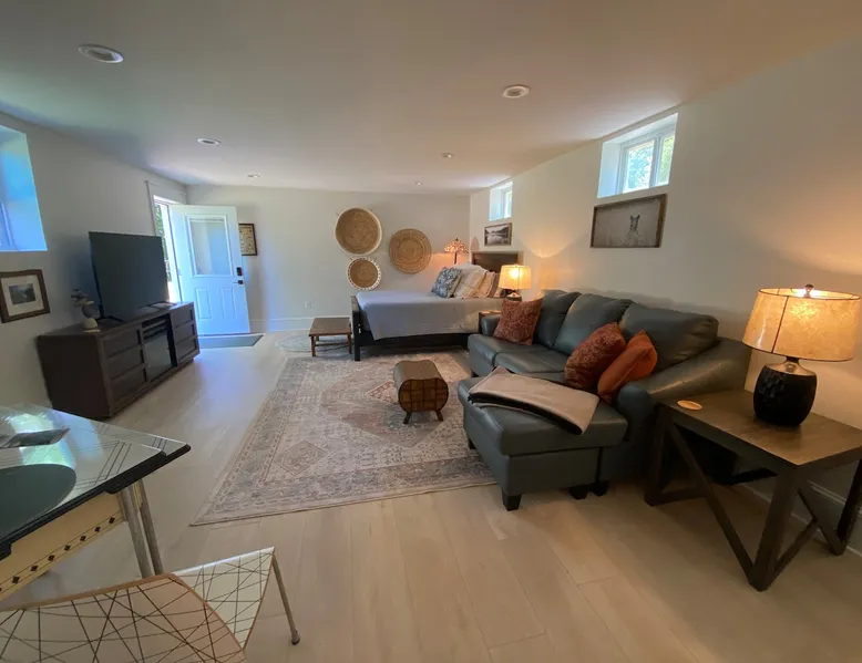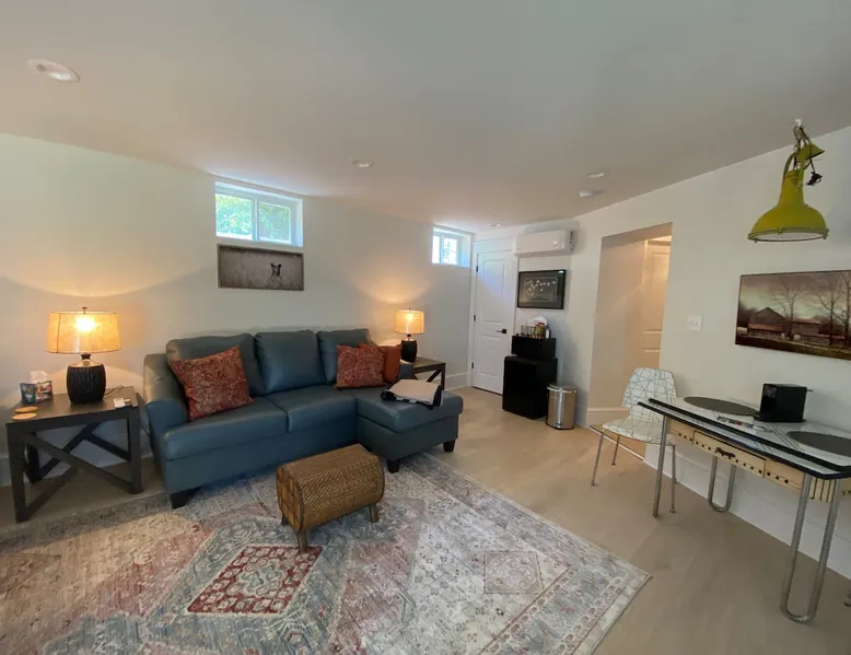 Enjoy the sounds and sights of the Potomac River when you stay in this unique place located on La Soledad Lavender Farm in Harpers Ferry. Walk right out of your brand new suite to the cliff overlooking the river! Sit at the firepit and enjoy sounds of the river and the train below. Grill out on our ceramic grill at the outdoor dining gazebo. Or stay in and enjoy the brand new, spacious walk-out basement suite with private entrance from outside. Only 1 mile from the National Park & AT!