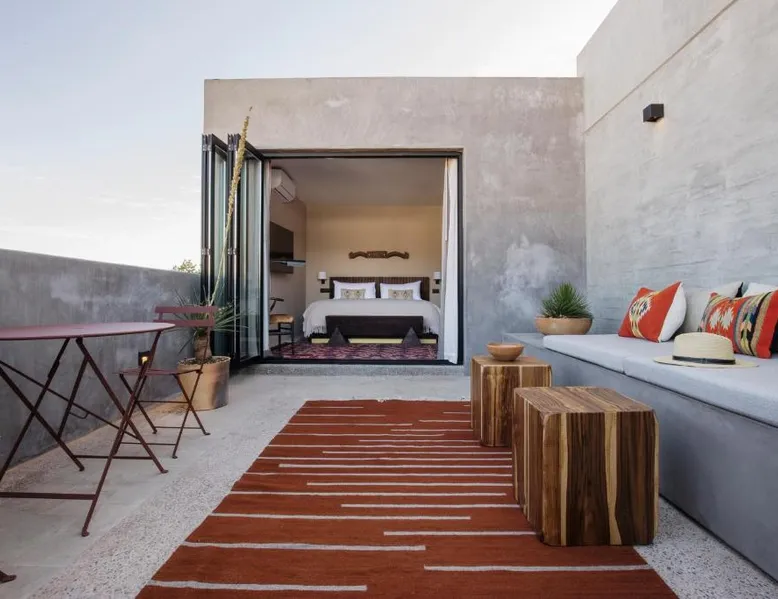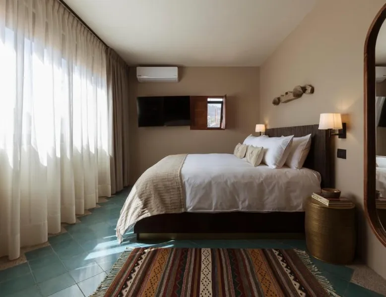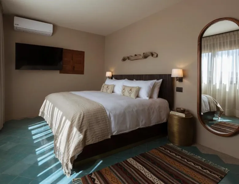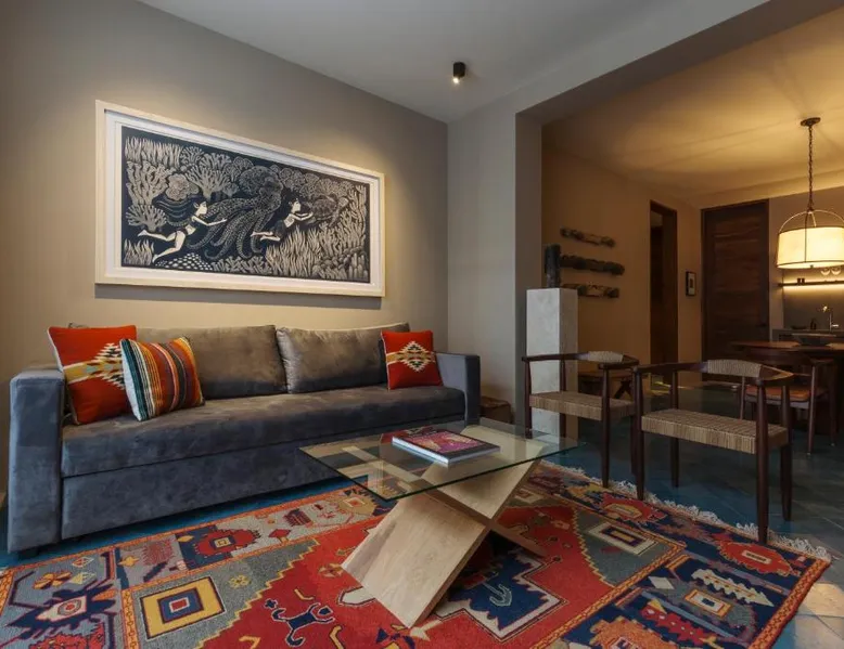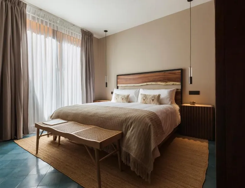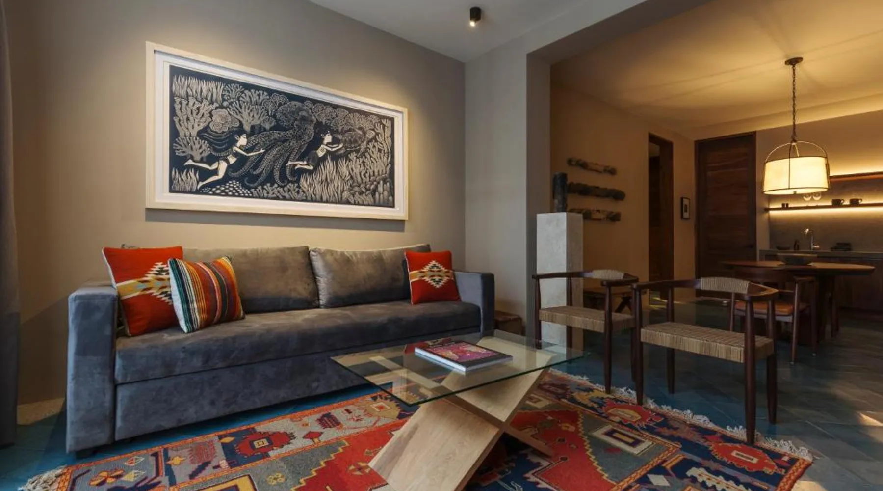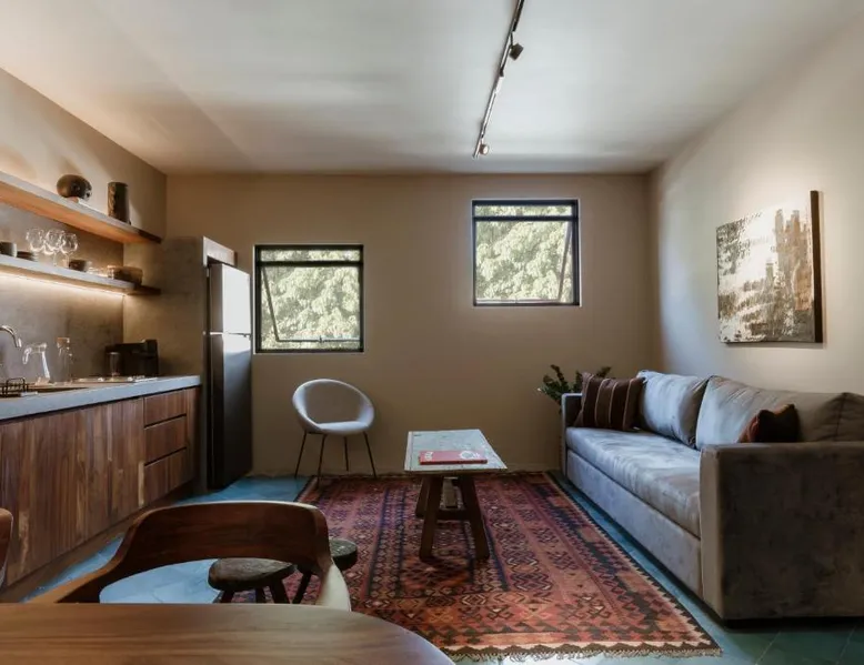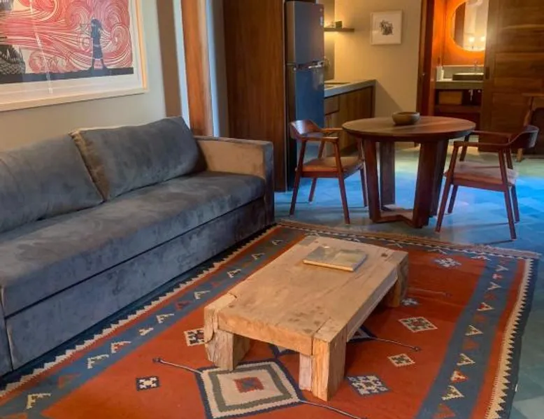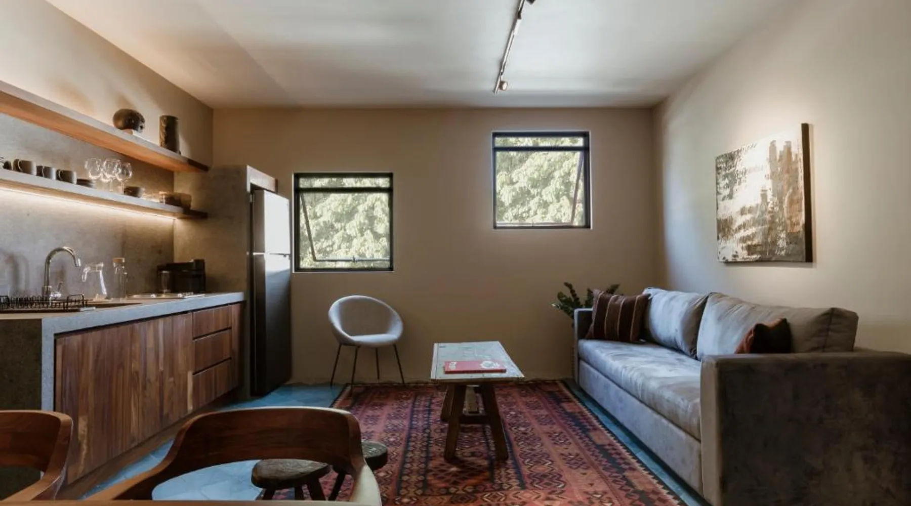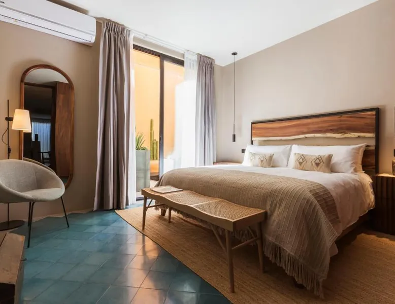 Elegant Accommodations: Macondo Arte Oaxaca in Oaxaca City offers 5-star comfort with air-conditioned rooms featuring private bathrooms, balconies, and city views. Each room includes a flat-screen TV, free WiFi, and modern amenities. Exceptional Facilities: Guests can relax on the sun terrace or enjoy the year-round outdoor swimming pool. Additional facilities include a fitness center, outdoor seating area, and a tour desk. Free WiFi is available throughout the property. Prime Location: Located 4.3 mi from Oaxaca International Airport, the hotel is close to Santo Domingo Temple (4-minute walk), Oaxaca Cathedral (less than 0.6 mi), and Central Bus Station foreign buses (9-minute walk). Nearby attractions include Monte Alban (6.8 mi) and Tule Tree (6.8 mi). Guest Satisfaction: Highly rated for its attentive staff and excellent service support, the hotel is praised for its swimming pool and convenient location. This spacious suite includes 1 living room, 2 separate bedrooms and 2 bathrooms with a shower and free toiletries. The suite's kitchen, which has a refrigerator and kitchenware, is available for cooking and storing food. This air-conditioned suite consists of a dining area, a flat-screen TV with streaming services a seating area and a terrace. The unit has 3 beds.