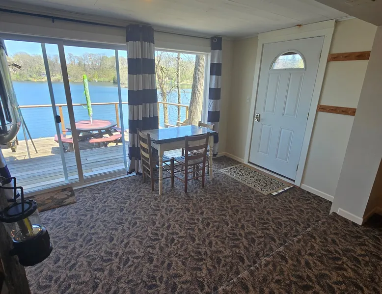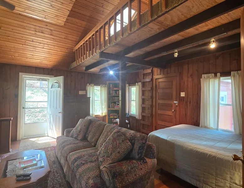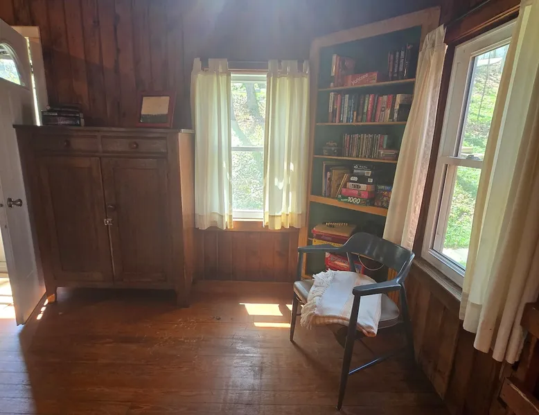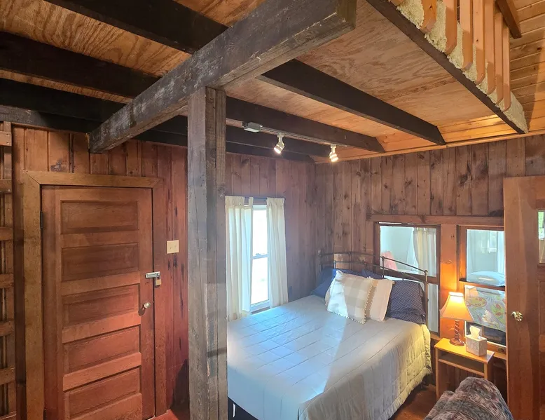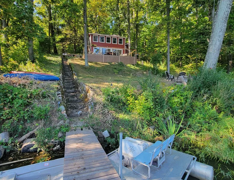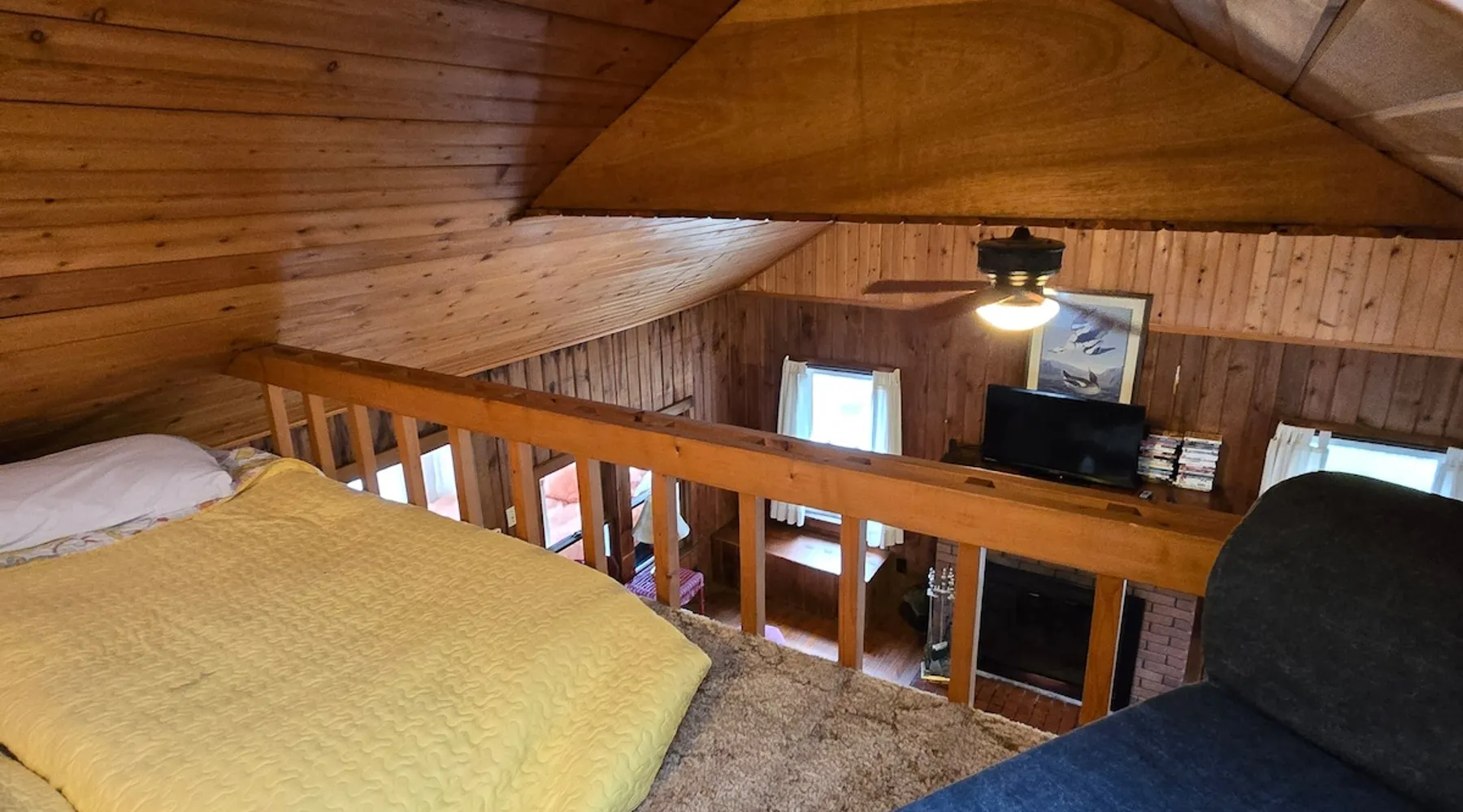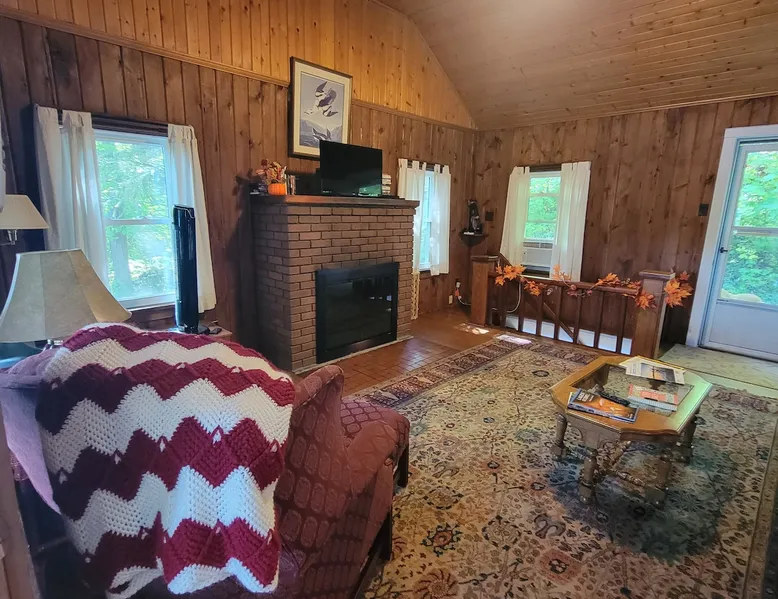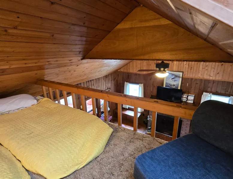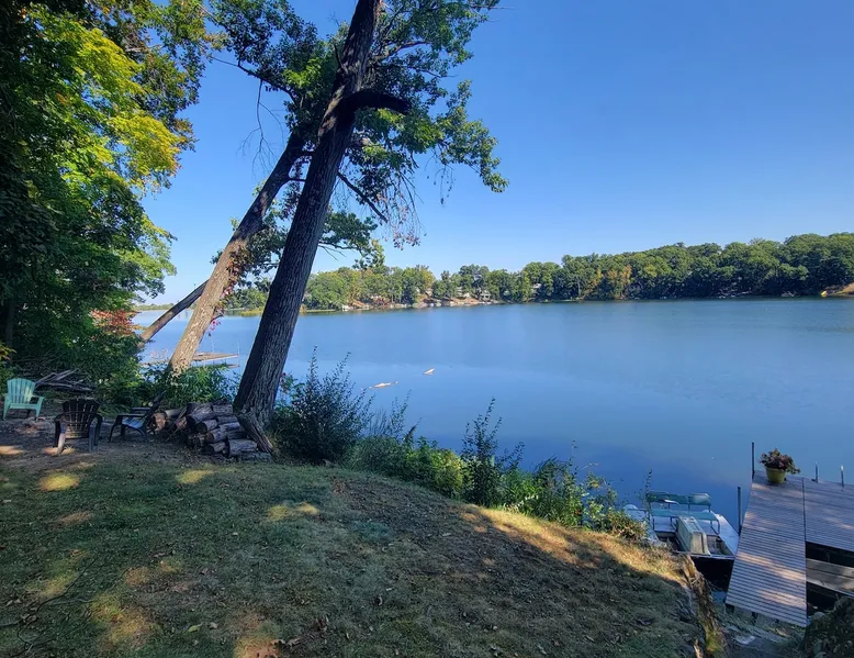 Create lasting memories with the family at one of the very first cottages on Papakeechie Lake. Relax on the deck taking in the graceful swans that reside here, go for a peaceful ride in the kayaks or take a stroll around our no motor lake on our peddle boat and even swim right off of the pier. Grab the smores and have a blast telling stories around the camp fire. The kids will feel like they're camping, especially sleeping in the loft! Cozy up on chilly nights next to the indoor fireplace. The space The kitchen, dining, bath and laundry areas are on the lower level with sliding glass doors all along the front to take in beautiful sunsets. At the top of the stairs, you will find the living room with fireplace, games and there is a full sized bed placed in the back corner. Off of the living room are 2 bedrooms. You have to go through the bedroom with a queen bed to get to the other bedroom with a twin. We have a peddle boat, row boat, kayaks and a swim raft that you are more than welcome to use. There is room to park one vehicle at the bottom of our shared drive. Please do not block the drive as this is the same way the neighbors exit. Guest access The entire house with the exception of one supply closet. Other things to note This is quite a few steps down from the parking area. The lake is down just a little farther from the cottage.