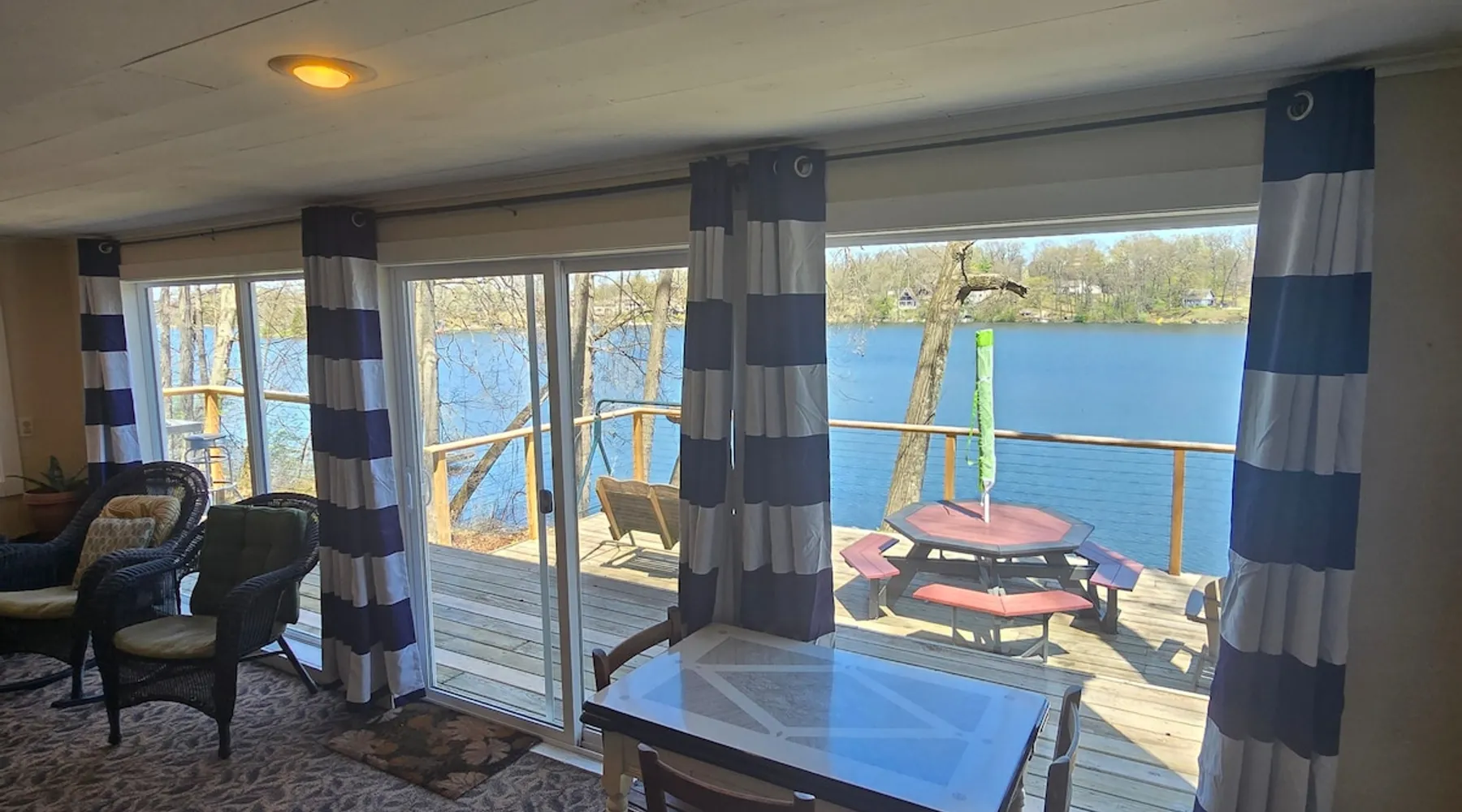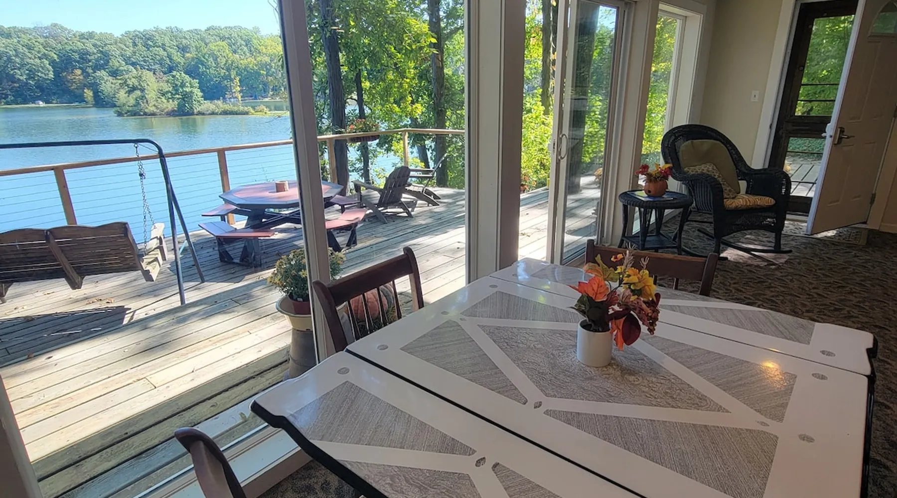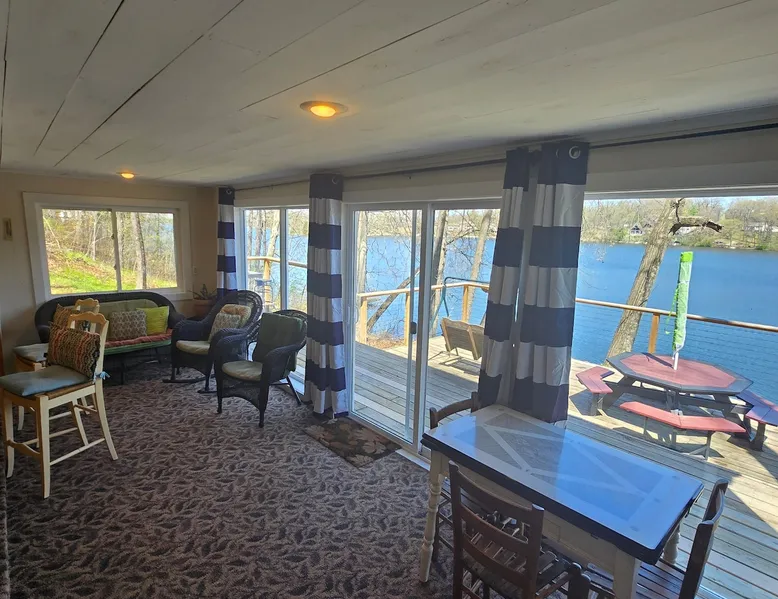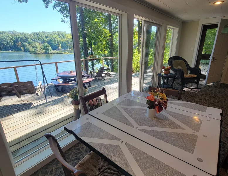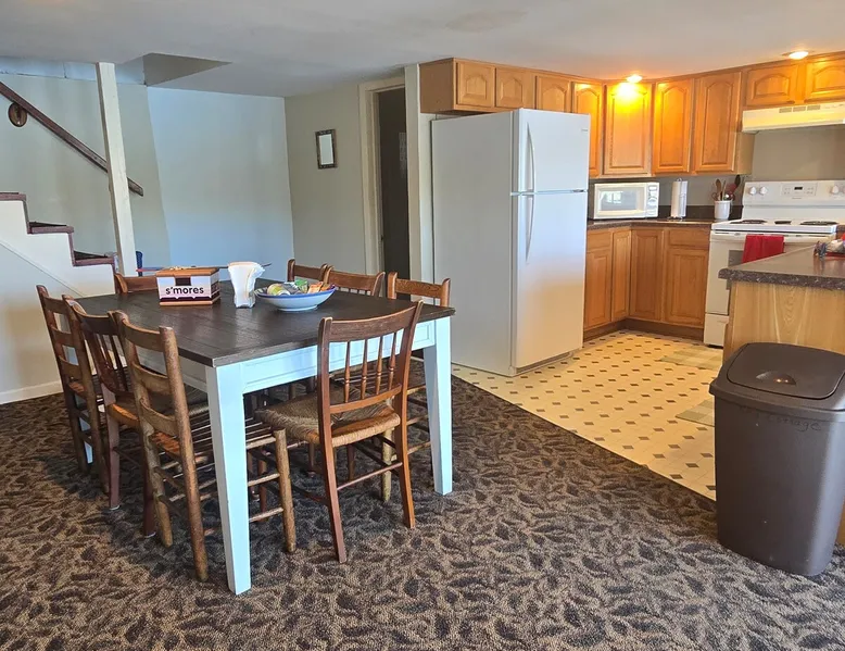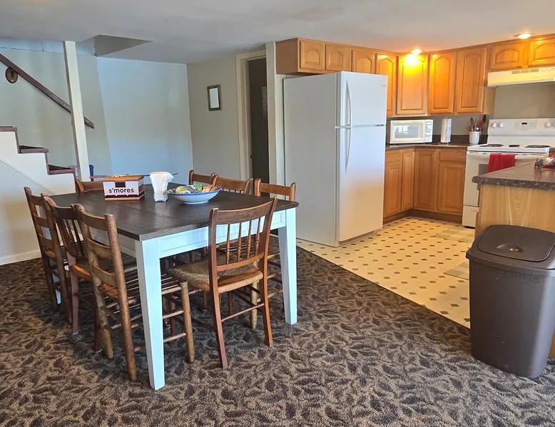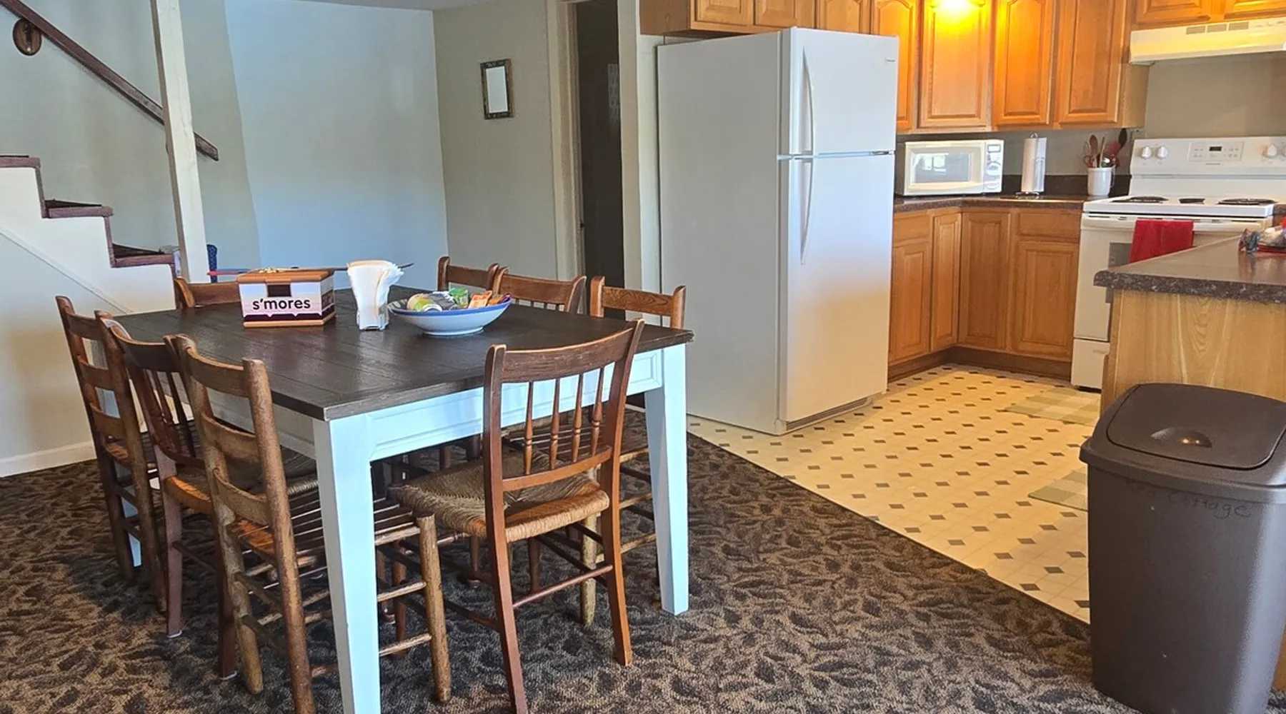 Create lasting memories with the family at one of the very first cottages on Papakeechie Lake. Relax on the deck taking in the graceful swans that reside here, go for a peaceful ride in the kayaks or take a stroll around our no motor lake on our peddle boat and even swim right off of the pier. Grab the smores and have a blast telling stories around the camp fire. The kids will feel like they're camping, especially sleeping in the loft! Cozy up on chilly nights next to the indoor fireplace. The space The kitchen, dining, bath and laundry areas are on the lower level with sliding glass doors all along the front to take in beautiful sunsets. At the top of the stairs, you will find the living room with fireplace, games and there is a full sized bed placed in the back corner. Off of the living room are 2 bedrooms. You have to go through the bedroom with a queen bed to get to the other bedroom with a twin. We have a peddle boat, row boat, kayaks and a swim raft that you are more than welcome to use. There is room to park one vehicle at the bottom of our shared drive. Please do not block the drive as this is the same way the neighbors exit. Guest access The entire house with the exception of one supply closet. Other things to note This is quite a few steps down from the parking area. The lake is down just a little farther from the cottage.