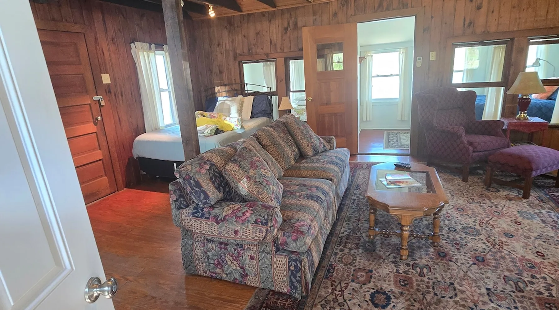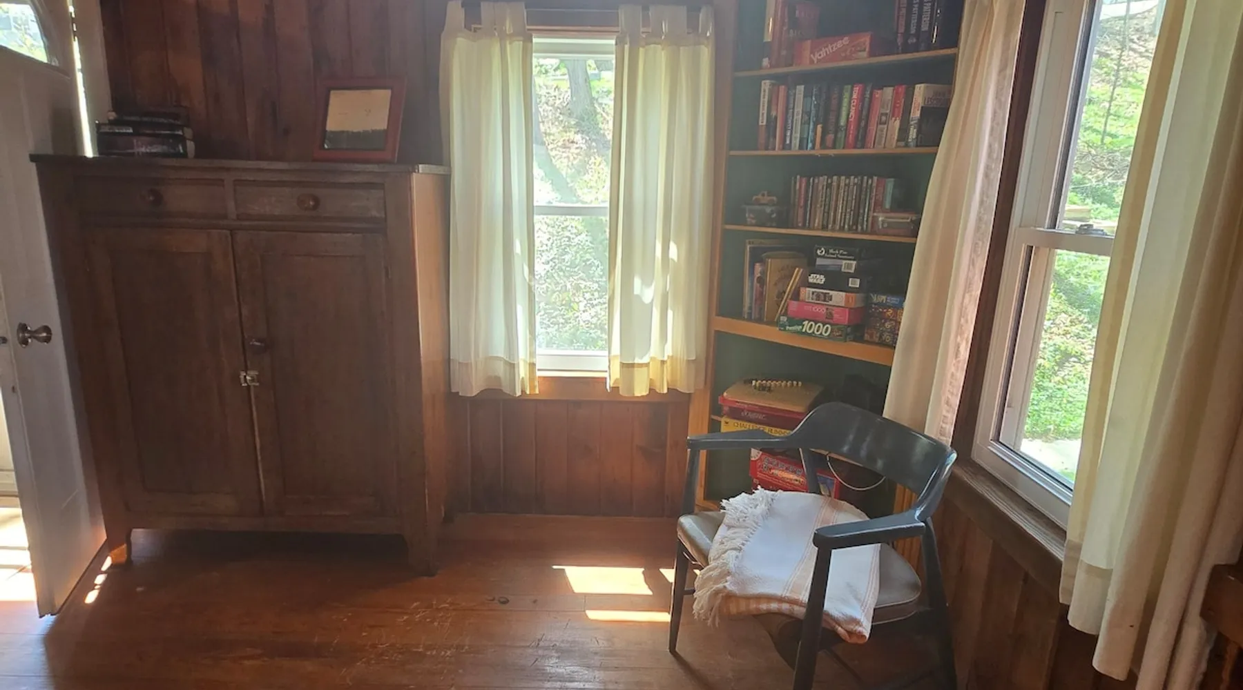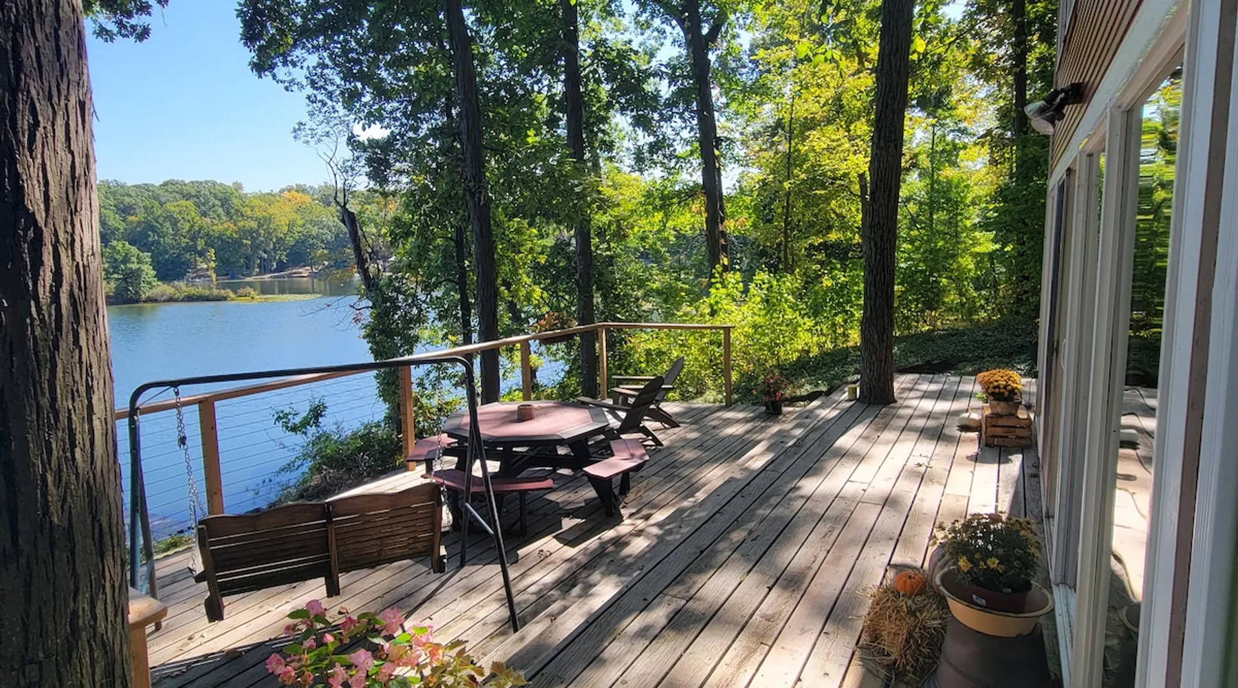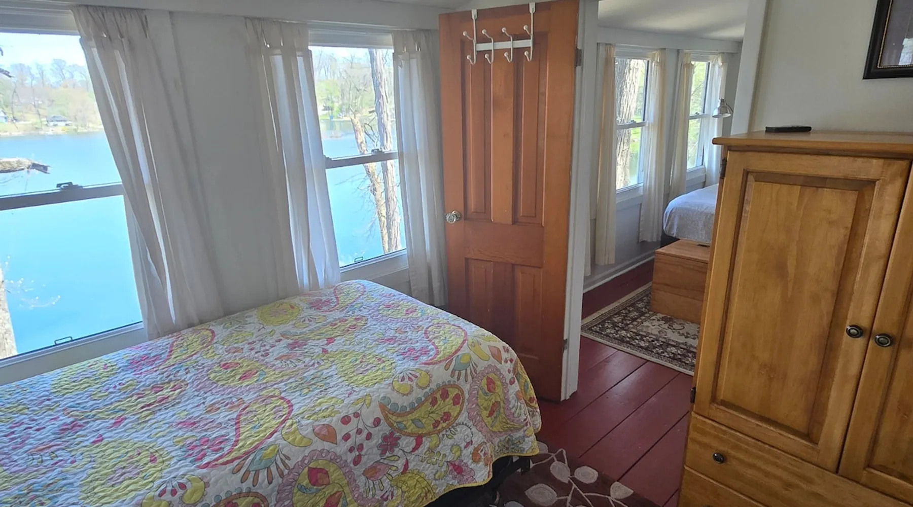 Create lasting memories with the family at one of the very first cottages on Papakeechie Lake. Relax on the deck taking in the graceful swans that reside here, go for a peaceful ride in the kayaks or take a stroll around our no motor lake on our peddle boat and even swim right off of the pier. Grab the smores and have a blast telling stories around the camp fire. The kids will feel like they're camping, especially sleeping in the loft! Cozy up on chilly nights next to the indoor fireplace. The space The kitchen, dining, bath and laundry areas are on the lower level with sliding glass doors all along the front to take in beautiful sunsets. At the top of the stairs, you will find the living room with fireplace, games and there is a full sized bed placed in the back corner. Off of the living room are 2 bedrooms. You have to go through the bedroom with a queen bed to get to the other bedroom with a twin. We have a peddle boat, row boat, kayaks and a swim raft that you are more than welcome to use. There is room to park one vehicle at the bottom of our shared drive. Please do not block the drive as this is the same way the neighbors exit. Guest access The entire house with the exception of one supply closet. Other things to note This is quite a few steps down from the parking area. The lake is down just a little farther from the cottage.