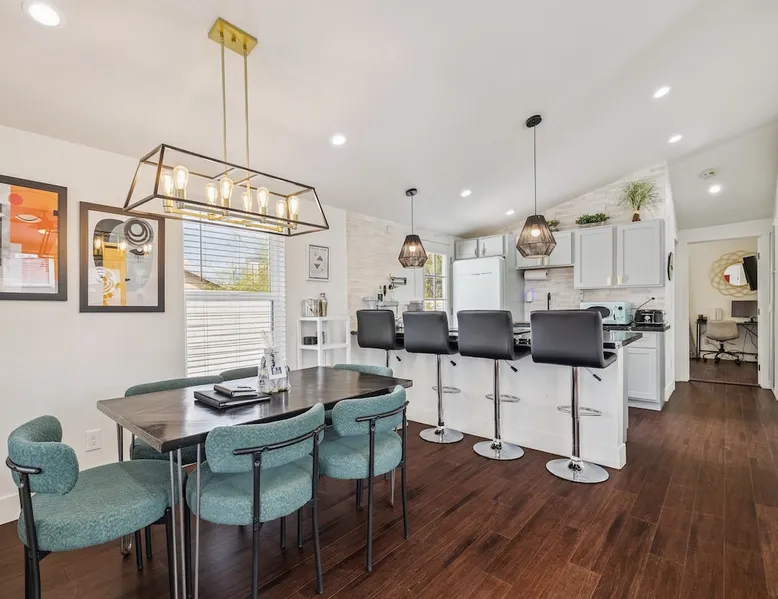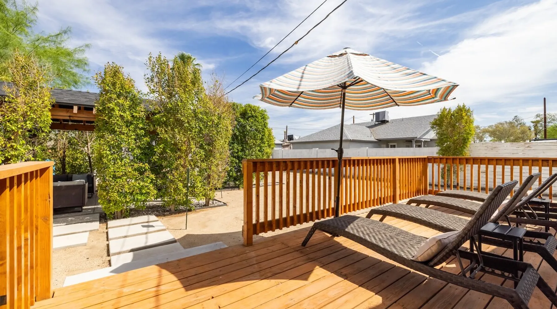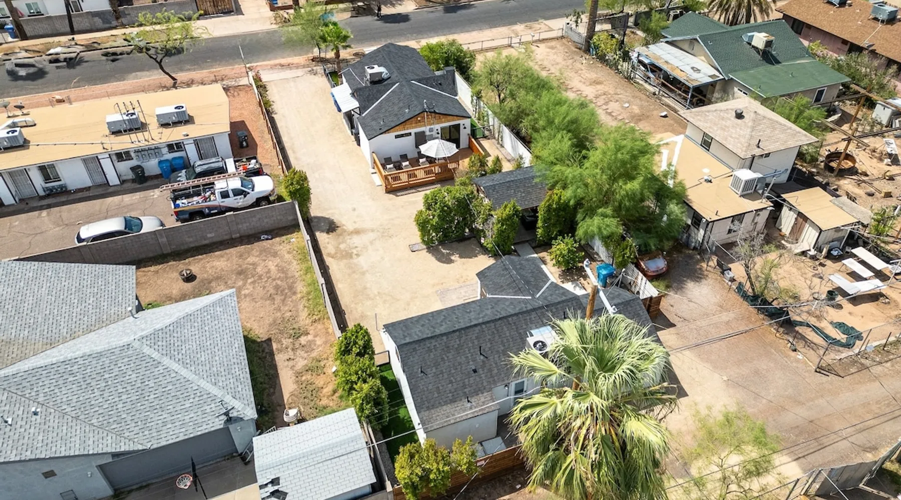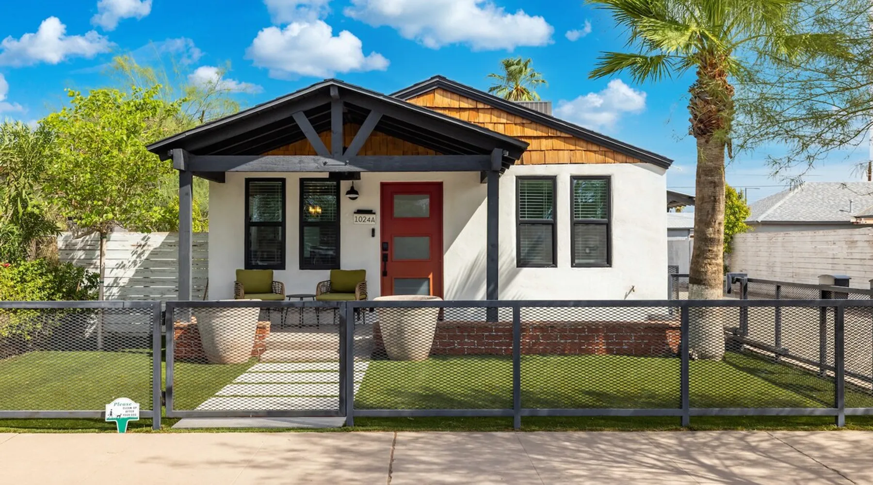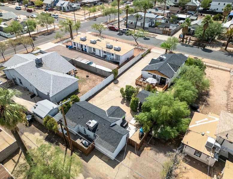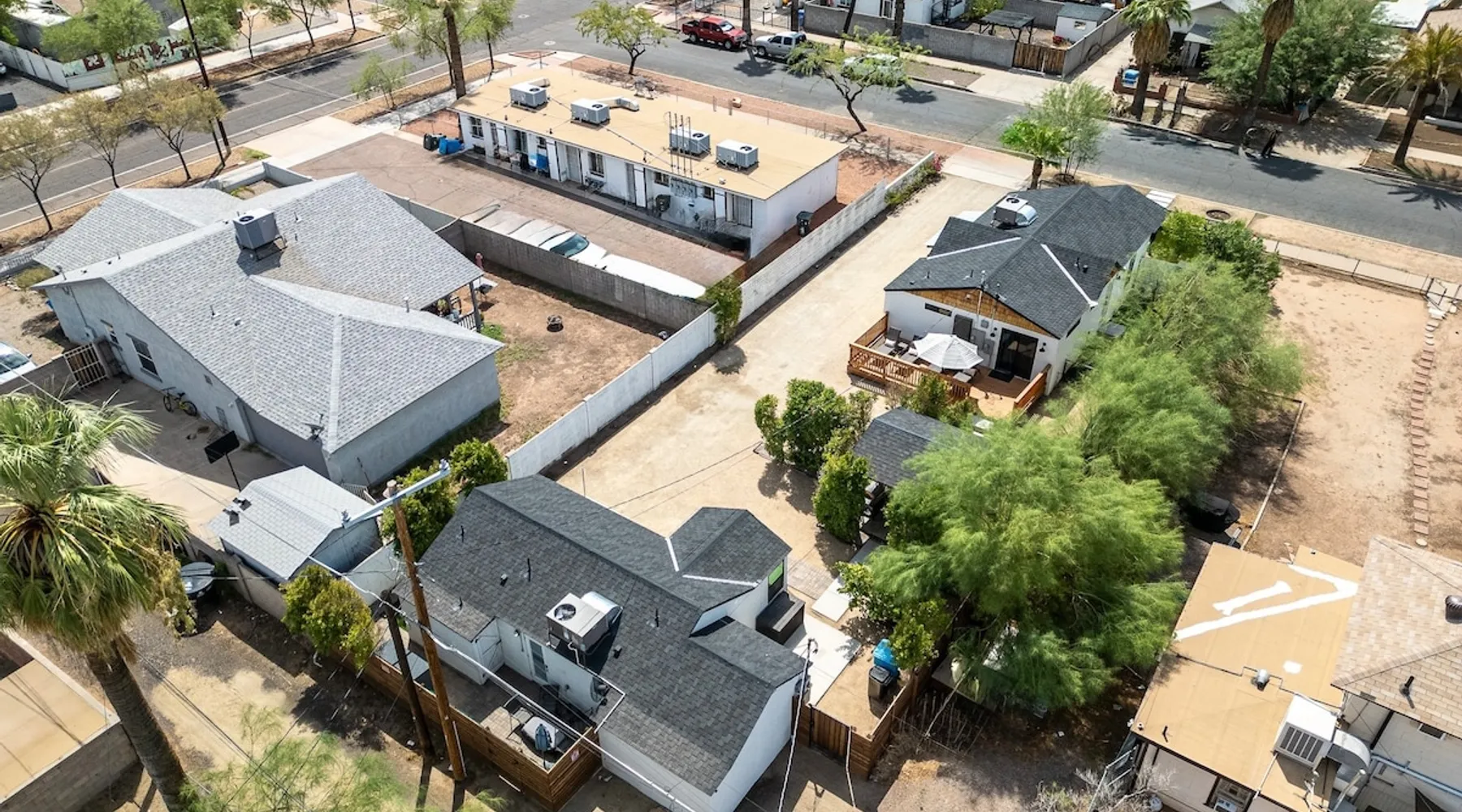 Welcome to Taylor Street Retreat, a stylish urban oasis in Downtown Phoenix with two full homes on one property, offering 4 bedrooms, 4 bathrooms, and space for up to 10 guests. Perfect for families or groups, you’ll enjoy walkability to downtown dining, nightlife, and events along with your own private outdoor oasis featuring a gazebo, misters, and a BBQ. Every stay includes a thoughtful welcome package and a guidebook of our favorite spots, plus all the essentials for a comfortable stay. The space Our Downtown Phoenix Modern Retreat offers two complete homes on one property with 4 bedrooms, 4 bathrooms, and space for up to 10 guests. Perfect for families, groups, or couples traveling together, you’ll have the option of shared spaces and private getaways all in one stay. What you’ll love about this stay: • Two homes, one booking – Front and back homes, each with 2 bedrooms, 2 bathrooms, full kitchens, and living/dining areas. • Stylish design – Newly renovated with a modern look and retro appliances, giving the home a chic and fun vibe. • Outdoor comfort – Private gazebo with lounge seating, BBQ grill, and a misting system to keep cool. Both homes also have their own patio and misters. • Prime location – Walk to Roosevelt Row, Footprint Center, Chase Field, the Phoenix Convention Center, and countless restaurants and bars. Less than 10 minutes from the Sky Harbor airport. • Unique views – Enjoy city skyline views and watch planes descend into Sky Harbor right from the porch. • Thoughtful extras – Each stay includes a welcome package and a custom guidebook to our favorite spots. • All essentials included – Towels, blankets, shampoo, conditioner, toothbrushes, coffee, sugar, filtered water, WiFi, and YouTube TV are ready for you. Whether you’re here for a game, concert, festival, or a weekend exploring downtown, this retreat offers comfort, convenience, and a truly local Phoenix experience. Guest access There are 2 homes on one lot. Guests will have access to both homes during their stay. Guests will NOT have access to the locked basement downstairs and a locked interior cleaners closet. Other things to note The home is conveniently located near renowned hospitals making it an ideal choice for medical professionals or visitors seeking proximity to top-notch healthcare facilities: Banner University Medical Center (1 mile) St. Joseph's Hospital and Medical Center (2.2 miles) Dignity Health Cancer Institute (0.4 mile) Arizona State Hospital (2 miles) VA Hospital (3.2 miles) Phoenix Children's Hospital (3 miles) Attractions: Children's Museum of Phoenix (0.5 mile) The Phoenix Convention Center (0.6 mile) First Friday on Roosevelt Row (0.7 mile) The Arizona Center (0.9 mile) The Herberger Theater (1 mile) Chase Field (1 mile) Footprint Center (1 mile) Symphony Hall (1 mile) Arizona Science Center (0.8 mile) Spring Training Baseball Stadiums: Tempe Diablo Stadium (15 minutes home of the LA Angels) American Family Fields of Phoenix (17 minutes home of the Milwaukee Brewers) Scottsdale Stadium (20 minutes home of the SF Giants) Sloan Park (20 minutes home of the Chicago Cubs) Hohokam Stadium (20 minutes home of the Oakland A's) Camelback Ranch (23 minutes home of the LA Dodgers & Chicago Whitesox) Salt River Fields at Talking Stick (25 minutes home of the AZ DBacks & CO Rockies) Goodyear Ballpark (26 minutes home of the Cleveland Guardians & Cincinnati Reds) Peoria Sports Complex (30 minutes home of the Seattle Mariners & SD Padres) Surprise Stadium (45 minutes home of the KC Royals & TX Rangers) NOTE: During your stay you may see or hear bunnies and/or roosters. They belong to one of the neighbors but seem to enjoy hanging out at Taylor Street Retreat.