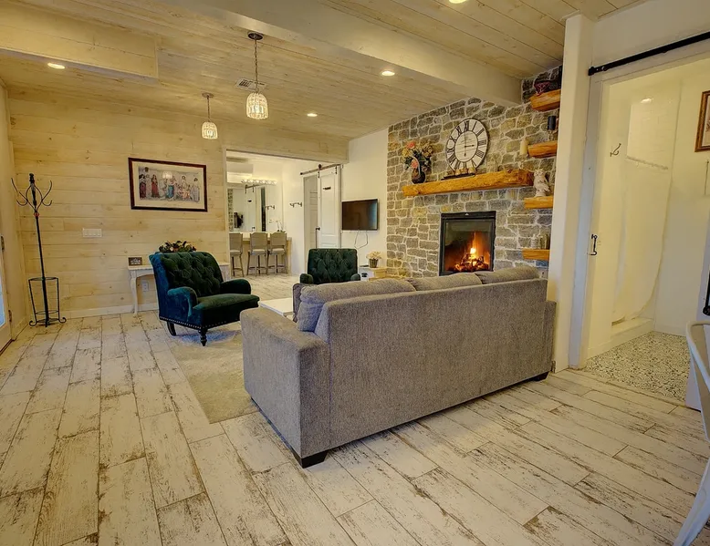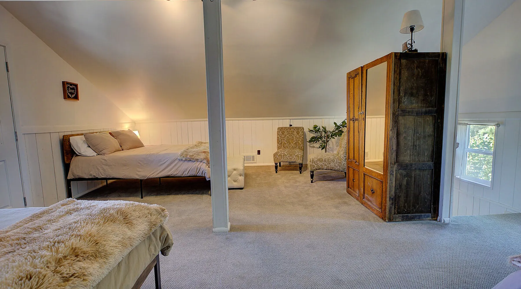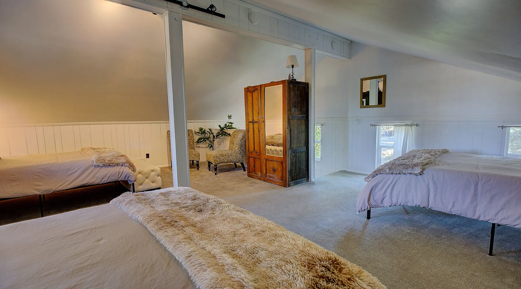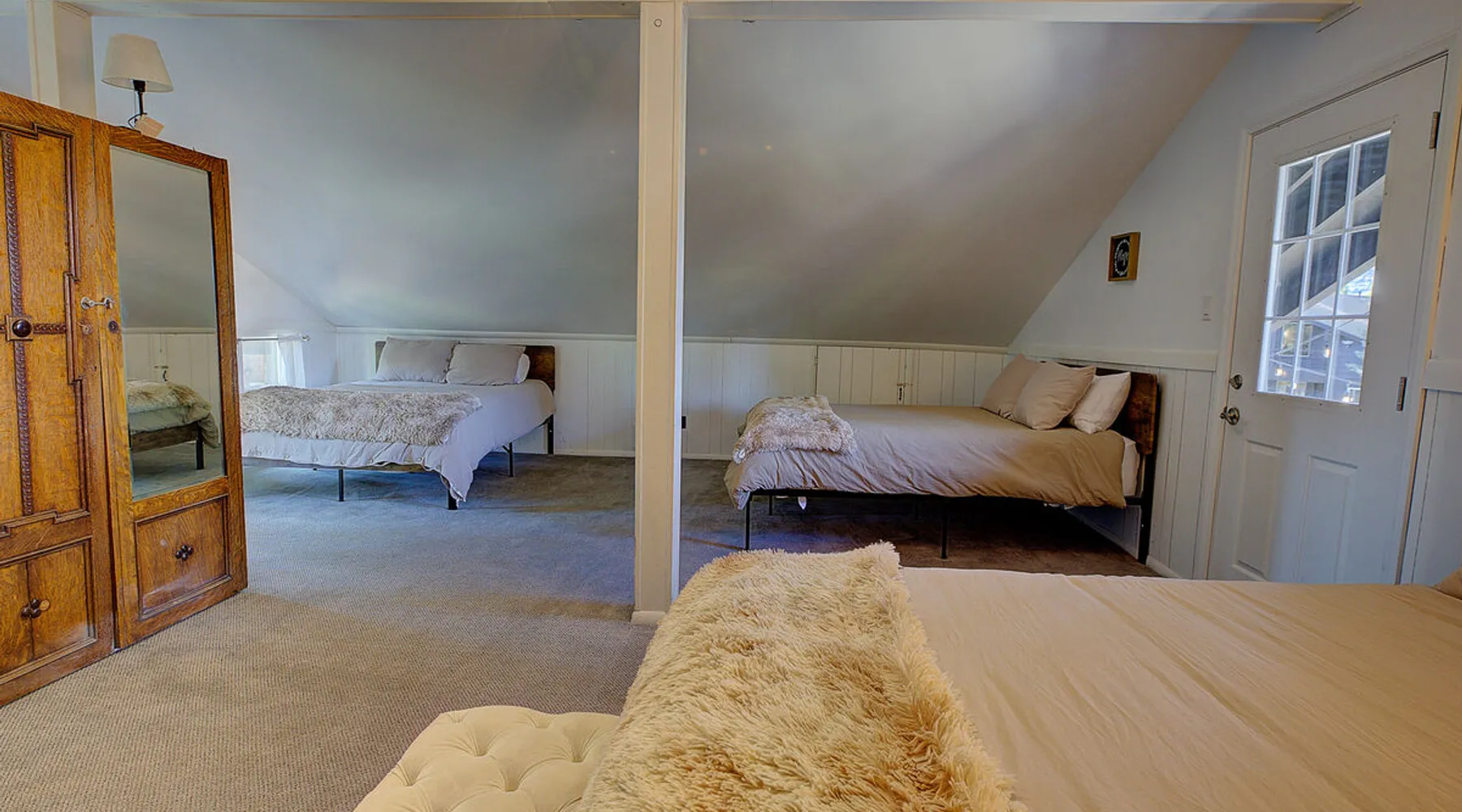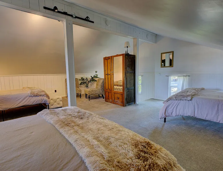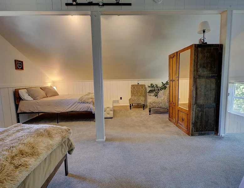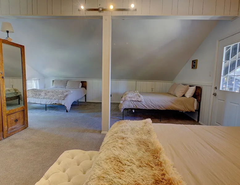 The Suite at Shay Meadows- Adorable Resort Cottage Welcome to The Suite at Shay Meadows Resort! This newly renovated cabin offers the ultimate in relaxation and comfort for your family getaway or retreat with friends. With modern touches and updated furnishings, this stunning location promises an unforgettable alpine experience in any season. The space Step into the bright and inviting living room, featuring a plush blue couch, cozy gas faux log wall fireplace, and a streaming TV with complimentary high-speed WIFI. Gather around the dining table for six in the well-equipped kitchen, noting that while the vintage oven is non-operational for baking, the stove top and burners are fully functional. A convenient common hallway bathroom is located on the entry level, while upstairs, the spacious upstairs loft boasts three queen beds made up with fresh linens and towels upon your arrival. Located just ten minutes from downtown Big Bear you'll have quick and convenient access to grocery stores, ski resorts, marinas, and the Village shops. Perfect for any occasion Shay Meadows Ranch is the epitome of a group vacation together to the mountains. Come experience this unique country chic property for your next special vacation! Sleeping Arrangements: Open Loft Upstairs: Three Queen Beds Living Room: Two Sleeper Sofas Bathroom Arrangements: Hallway Full Bath -Sleeps 10 -2 Car Driveway Parking -NO PETS ALLOWED- Fines Imposed for Pets Found on Property -1,000 Square Feet Hotel Permit #PT0011469 Guest access Once checked in, guests can enjoy sole access to their private property for the duration of their booked dates. Registration Details Exempt
