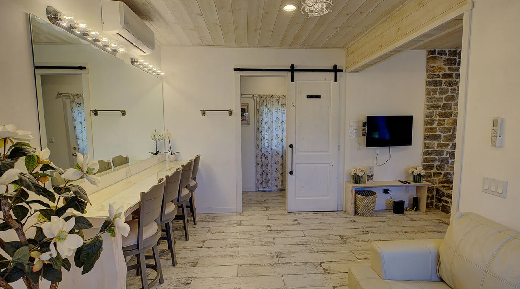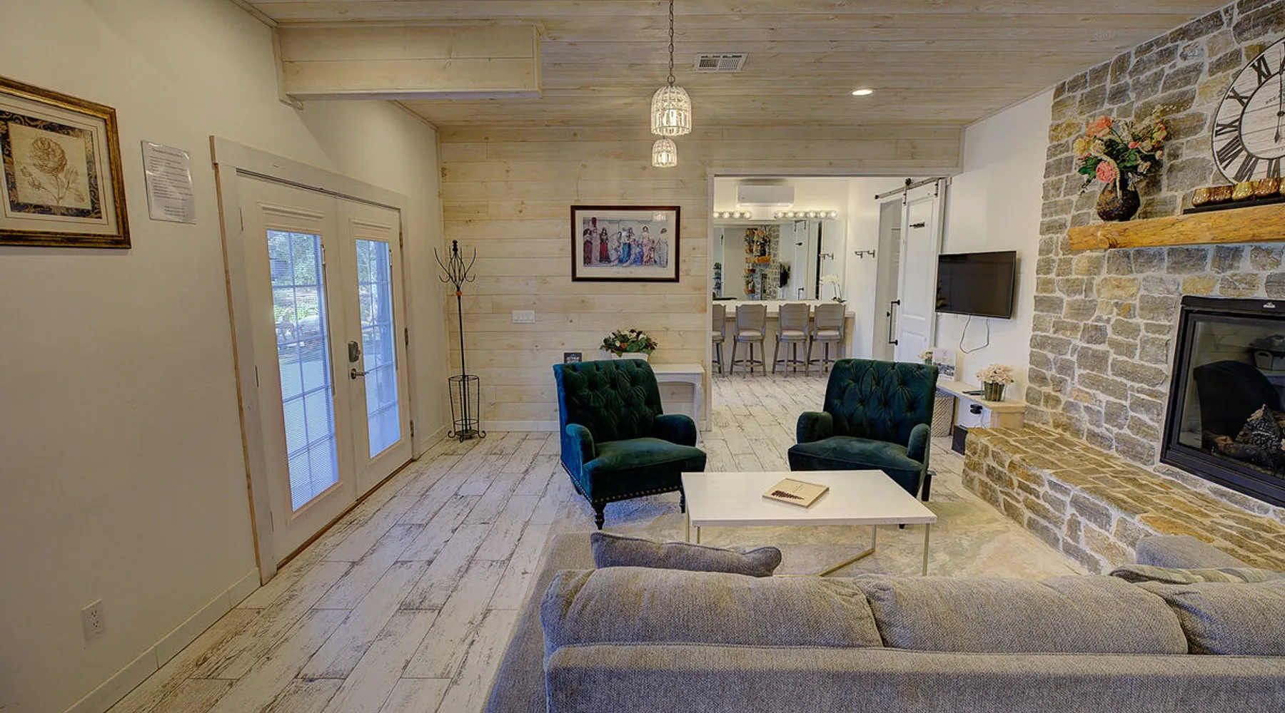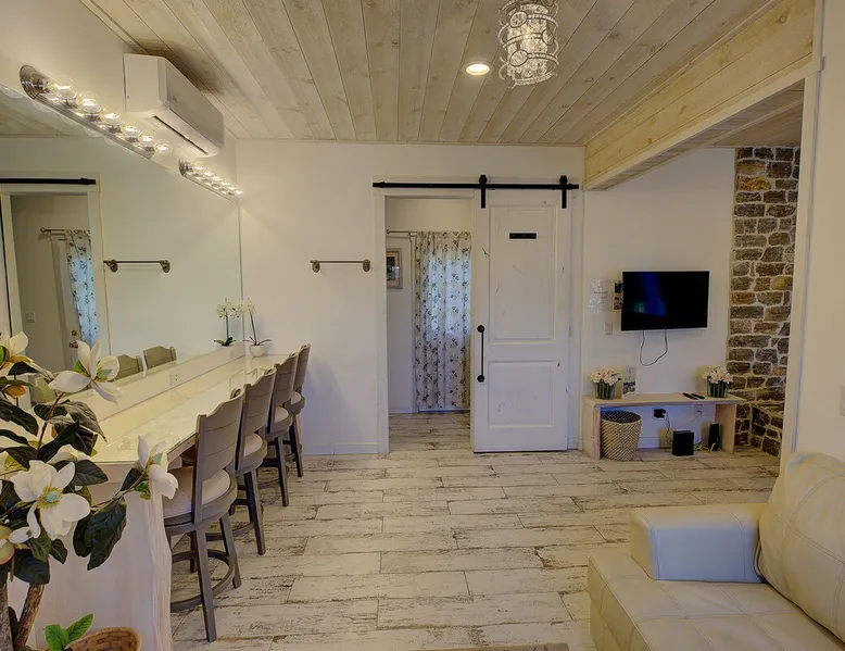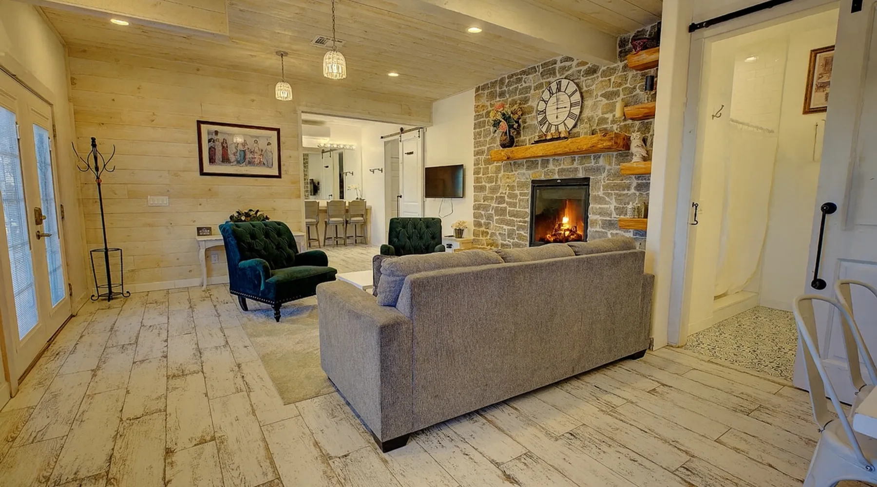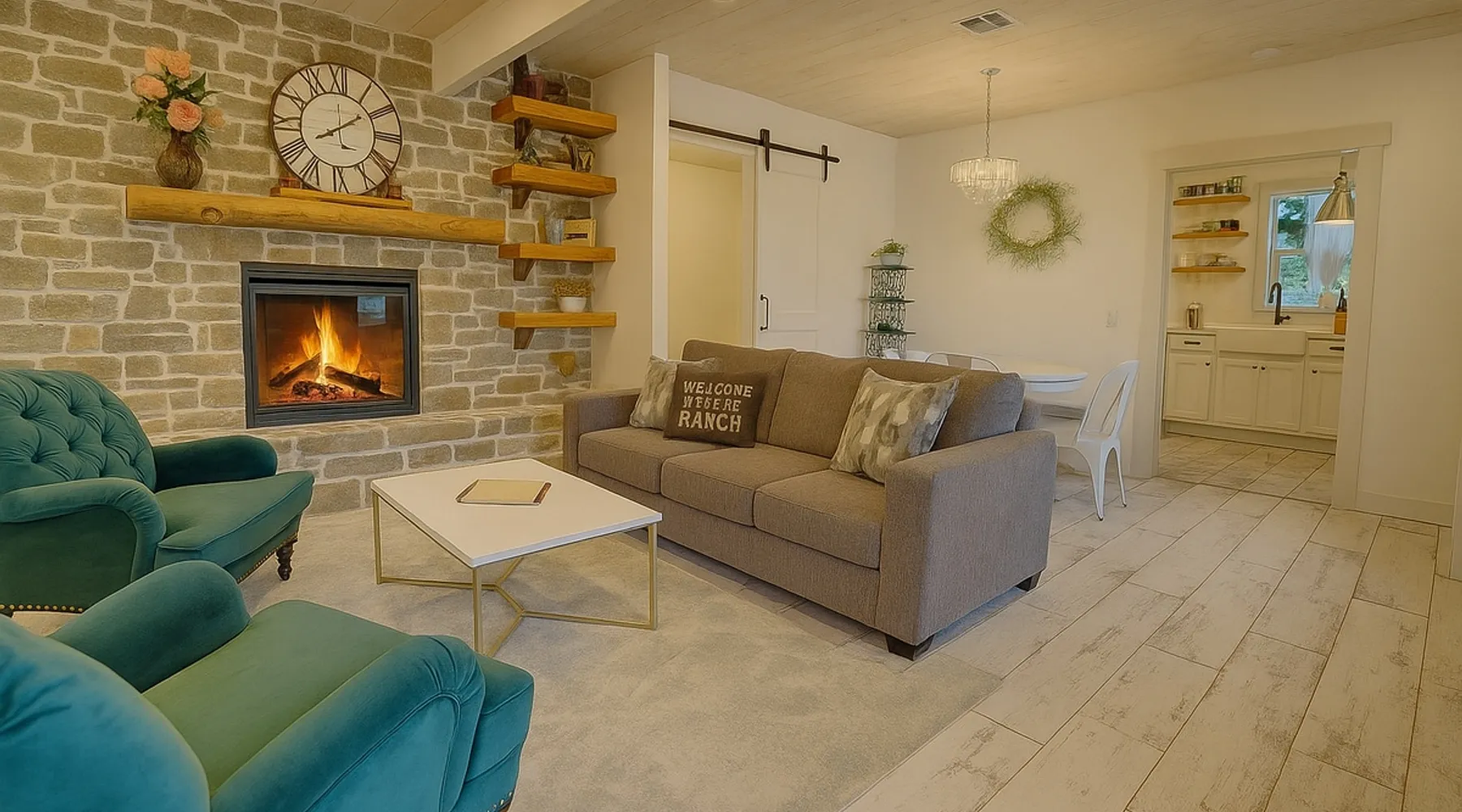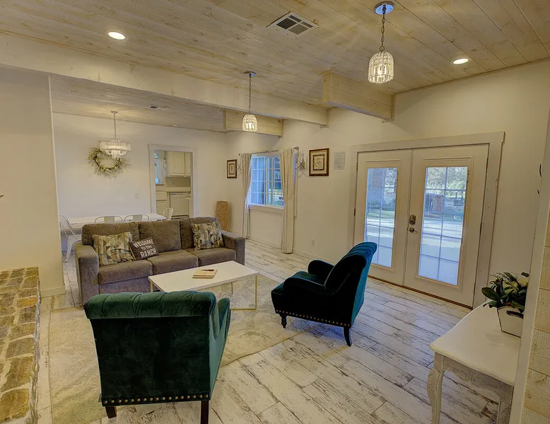 The Suite at Shay Meadows- Adorable Resort Cottage Welcome to The Suite at Shay Meadows Resort! This newly renovated cabin offers the ultimate in relaxation and comfort for your family getaway or retreat with friends. With modern touches and updated furnishings, this stunning location promises an unforgettable alpine experience in any season. The space Step into the bright and inviting living room, featuring a plush blue couch, cozy gas faux log wall fireplace, and a streaming TV with complimentary high-speed WIFI. Gather around the dining table for six in the well-equipped kitchen, noting that while the vintage oven is non-operational for baking, the stove top and burners are fully functional. A convenient common hallway bathroom is located on the entry level, while upstairs, the spacious upstairs loft boasts three queen beds made up with fresh linens and towels upon your arrival. Located just ten minutes from downtown Big Bear you'll have quick and convenient access to grocery stores, ski resorts, marinas, and the Village shops. Perfect for any occasion Shay Meadows Ranch is the epitome of a group vacation together to the mountains. Come experience this unique country chic property for your next special vacation! Sleeping Arrangements: Open Loft Upstairs: Three Queen Beds Living Room: Two Sleeper Sofas Bathroom Arrangements: Hallway Full Bath -Sleeps 10 -2 Car Driveway Parking -NO PETS ALLOWED- Fines Imposed for Pets Found on Property -1,000 Square Feet Hotel Permit #PT0011469 Guest access Once checked in, guests can enjoy sole access to their private property for the duration of their booked dates. Registration Details Exempt