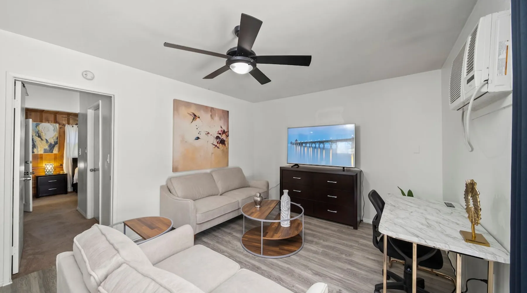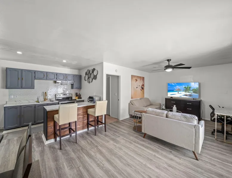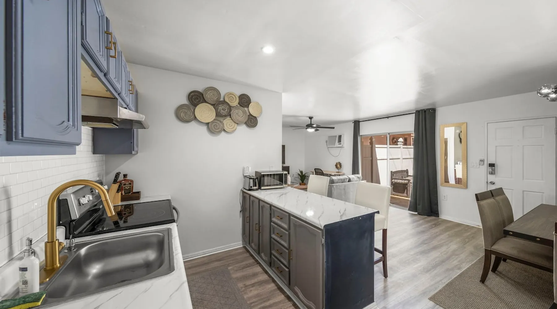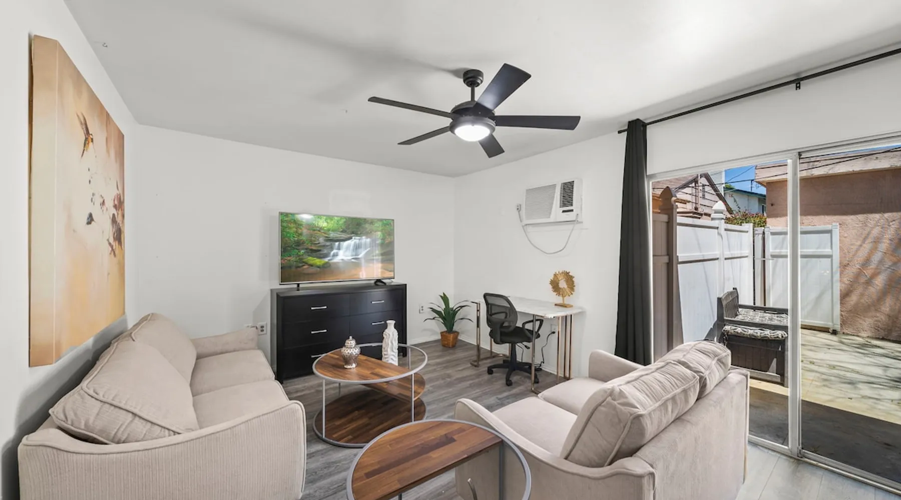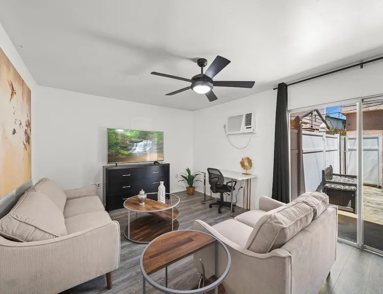 Welcome to Your Private Oasis in Sherman Oaks, California! Nestled in the heart of Sherman Oaks, this charming detached guest house offers a perfect blend of comfort and style for your next getaway. With its spacious layout and modern amenities, you’ll feel right at home while enjoying all that Los Angeles has to offer. The space Two private patios in the front and back. Street parking is available. Laundry is not in the guesthouse however you can use laundry facilities Mondays or Wednesdays 11am to 7pm one time weekly. The main yard to the house and driveway for parking is not included. Please note that the wall unit is used for AC and the Dyson space heater for the heat. For rentals of 30 days or longer, a flat, non-refundable utilities fee is required. This fee is calculated based on the size of the property and seasonal usage, and must be paid upfront. Important Note for Late or Last-Minute Bookings: Thank you for your reservation! Please note that for bookings made after 4 PM or for same-day arrivals, we may not always have time to fully refresh the property before your check-in, depending on the timing of your reservation. If you notice anything that needs attention upon arrival, please don’t hesitate to message us — we’re happy to send someone out the next day to take care of it. Your comfort is our priority, and we’ll do our best to ensure you have a great stay. Guest access -Guest house offers a front and back private patio -Street parking only -Use of the driveway or main house yard is not permitted Other things to note Cozy Accommodations Step inside this delightful one-bedroom retreat, where you’ll find a luxurious king-size bed adorned with plush linens, ensuring a restful night’s sleep after a day of exploration. The living area features a comfortable sofa sleeper, perfect for accommodating additional guests or simply lounging while watching your favorite shows on the flat-screen TV. The open floor plan creates an inviting atmosphere, making it ideal for couples or small families. Modern Amenities This guest house is equipped with everything you need for a hassle-free stay. Enjoy the convenience of a fully stocked kitchenette complete with a refrigerator, microwave, coffee maker, and essential utensils. The stylish bathroom boasts modern fixtures and plush towels to enhance your experience. High-speed Wi-Fi is available throughout the property, allowing you to stay connected during your vacation. Outdoor Bliss Step outside to discover your own private patio area, perfect for sipping morning coffee or unwinding with an evening glass of wine under the stars. Surrounded by lush greenery and beautiful landscaping, this outdoor space provides a serene escape from the hustle and bustle of city life. Explore Sherman Oaks Located in one of Los Angeles’ most vibrant neighborhoods, you’ll have easy access to an array of attractions and activities: Shopping & Dining: Just minutes away is the bustling Ventura Boulevard, lined with trendy boutiques, cafes, and restaurants. Treat yourself to delicious cuisine at local favorites like The Cheesecake Factory, Marmalade Cafe, or indulge in some authentic Italian at Pasta Sisters. Outdoor Activities: For nature lovers, nearby Griffith Park offers hiking trails with stunning views of the Hollywood Sign and downtown LA. Alternatively, take a short drive to Lake Balboa Park, where you can enjoy paddle boating or picnicking by the lake. Cultural Experiences: Immerse yourself in art and culture by visiting the Los Angeles County Museum of Art (LACMA) or catch a live performance at the iconic Hollywood Bowl. Family Fun: If you’re traveling with kids, don’t miss out on spending a day at the world-famous Universal Studios Hollywood, where thrilling rides and movie magic await! Your Perfect Getaway Awaits! Whether you’re here for relaxation or adventure, this private guest house in Sherman Oaks is your gateway to experiencing all that Los Angeles has to offer. Book your stay today and create unforgettable memories in sunny California!