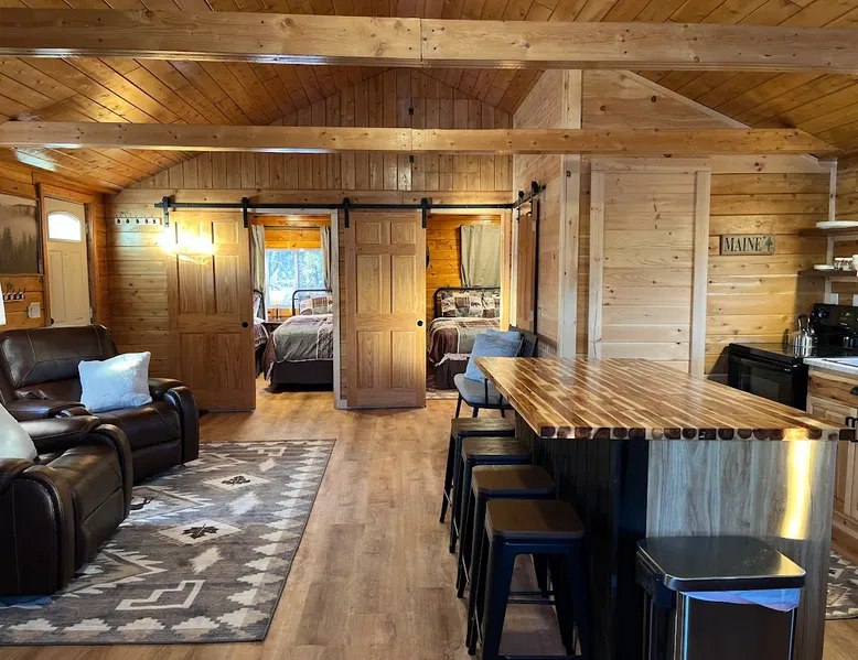 This is a prefect peaceful getaway for you & your family. Enjoy this newly renovated waterfront camp. Spaulding Lake during the summer is best for swimming, kayaking, paddle boarding, canoeing, fishing, and listening to the loons… You also have access to ATV trails directly from camp, with plenty of room for truck & trailer. Rustic Maine Camp with all the sweet comforts of home.