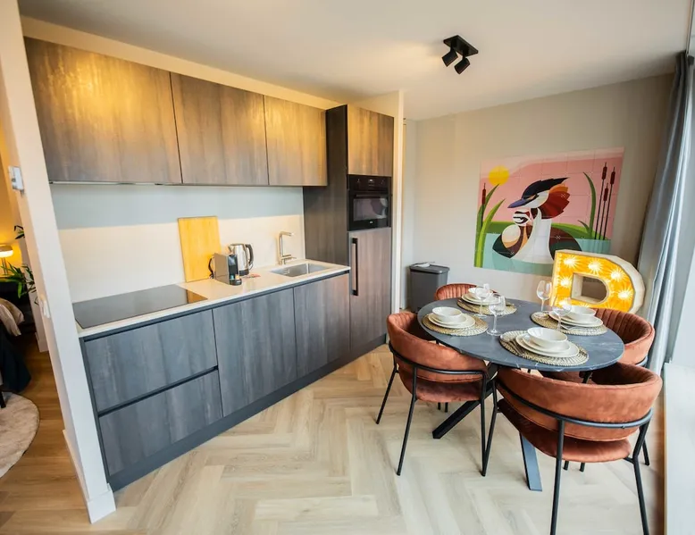 Welcome to Alphabet Apartments! We stand for sustainable, modern and convenient for short stay. These apartments are located in the city center of Hilversum. You will find yourself next to restaurants, supermarkets and cafés. The apartment has all modern features, including smart locks and smart thermostats. That means you can check yourself in and we can give you at all time support. If you are interested in your future stay, we are happy to welcome you in one of our apartments. The space Escape to the Relaxing Getaway Studio at Kerkstraat 71 in Hilversum. This cozy studio features a comfortable double bed, making it an ideal choice for solo travelers or couples looking for a peaceful retreat. With its warm decor and essential amenities, it provides a perfect environment for relaxation. Conveniently located near local cafes, shops, and attractions, this studio offers a delightful base for your adventures in Hilversum, blending comfort and accessibility seamlessly. Guest access Self Check-In Instructions: At our accommodation, we operate a self check-in system. Instead of receiving a physical key, you will be provided with a key code to access the premises. Before receiving your key code, please ensure that you meet the following requirements: Requirements: To stay with us, it is mandatory to complete an online check-in and provide a security deposit. Online Check-In: Upon booking confirmation, you will receive an email containing instructions for the online check-in process. Kindly complete the online check-in and submit the security deposit as instructed. Security Deposit: A security deposit of €300 is required and can be paid during the online check-in process, prior to check-in. Payment can be made using a credit card, Visa card, or Mastercard. If you do not have access to a credit card, please don't hesitate to contact us using the phone number provided in your booking confirmation. Alternatively, you can send us a message via WA, and we will promptly provide you with all the necessary information. Other things to note We have a device that detects indoor climate, crow detect, loud noises, and smoke. Therefore, we ask for your cooperation in following these rules: 1. Temperature must not exceed 23°C 2. Loud noises are prohibited between 10:00 p.m. and 9:00 a.m. (partys are not allow at any moment) 3. Smoking is prohibited on the premises 4. Prostitution is forbidden Any of these inappropriate behaviors will result in a financial penalty. If repeated, the person will be expelled from the apartment without the right to a refund.