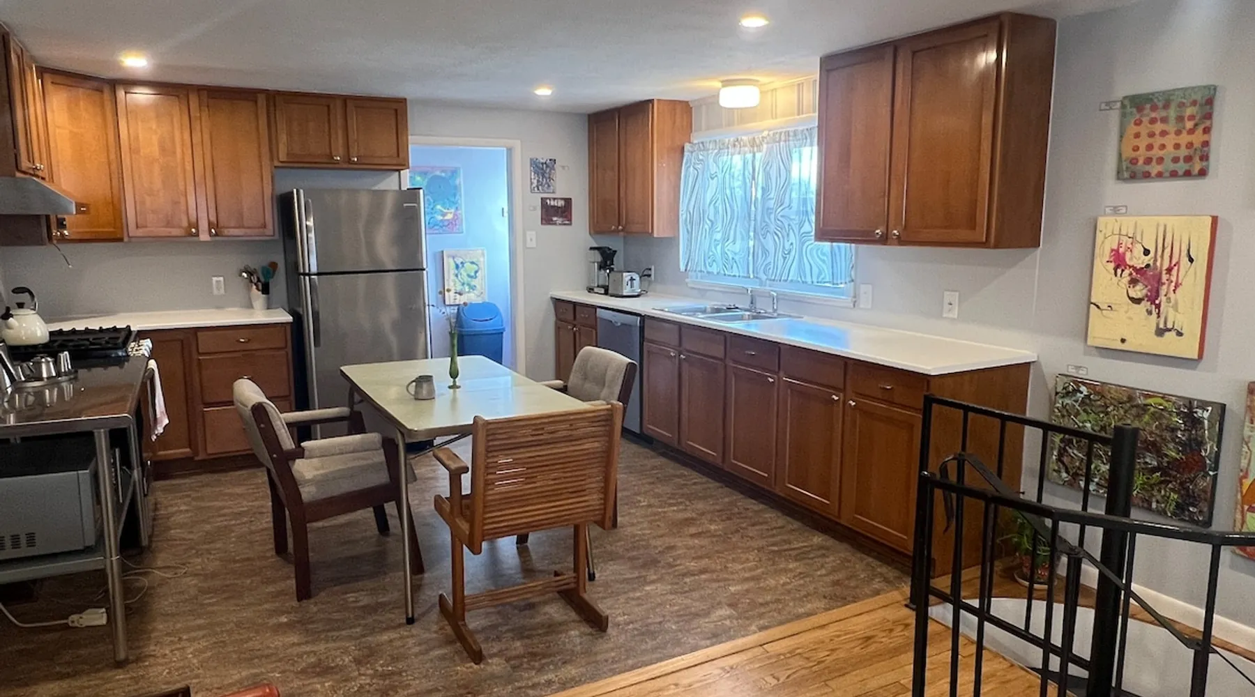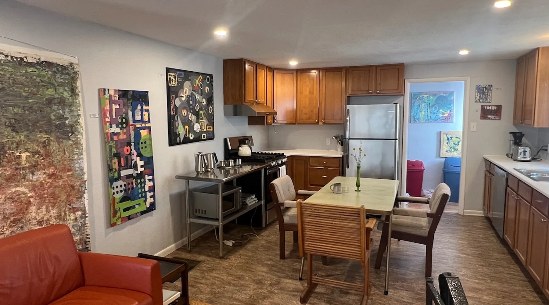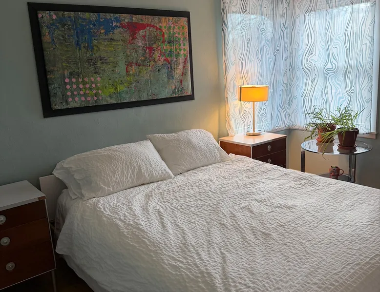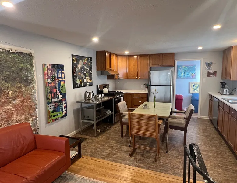 Enjoy a peaceful, clean and serene stay at this centrally-located mid-century ranch in the desirable Bryan Park neighborhood. Situated on a quiet street, filled with natural light, hardwood floors, stylish decor and original artwork and free parking on premise. Perfect location for enjoying the best of Bloomington. Walking distance to Switchyard park, one mile to campus and downtown and just over two miles to shopping and restaurants on either side of town. The space Renovated in 2024, Bloomington Bliss offers an open living room and kitchen with two equal-sized bedrooms and a bathroom with a generous tub/shower. The first bedroom offers a firm platform bed/mattress and the second bedroom offers a table & chairs and futon that converts into a firm, queen-sized bed. The living room has a firm pull-out couch. The space is perfect for a solo traveler, family, couples, and friends in search of an inspiring and peaceful getaway. Guest access You will have access to the entire upstairs unit. You also have access to the back deck and backyard and fire pit. There may be renters in the downstairs walk-out basement that also has access to the backyard and fire pit. Other things to note As a Superhost, I welcome any suggestions, feedback and ideas you have to improve the space and your experience. Please do not smoke or vape inside. If the smell of smoke is detected you will be immediately notified and a cleaning fee of $250 will be applied. I take immense pride in the overall cleanliness of my space. The cleaning fee does not cover the full cost of the cleaning service. I pay both a living wage AND I invest a portion of your rental fee into maintaining my space for your enjoyment. I do ask that you do your part and leave my space neat and tidy before you leave to help make the cleaning process easier for the cleaning service.