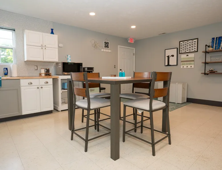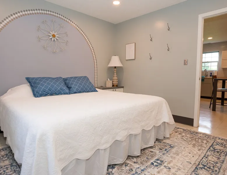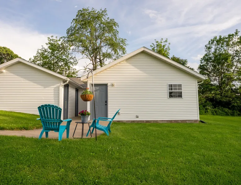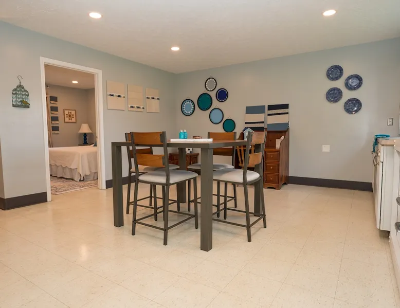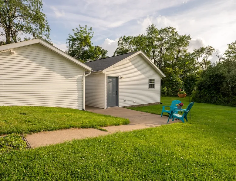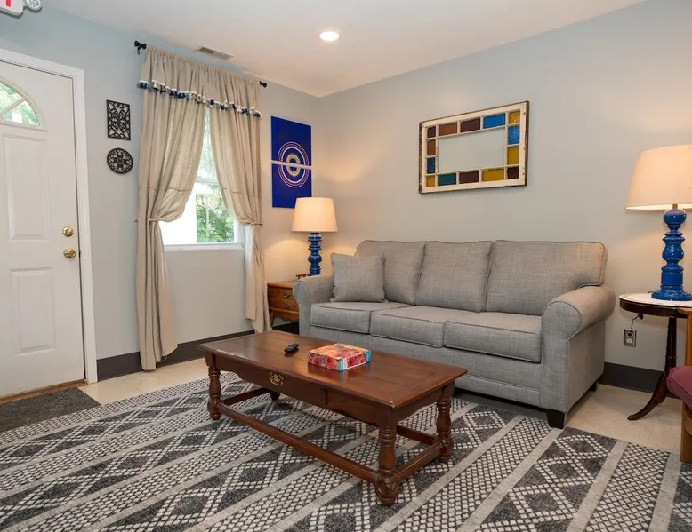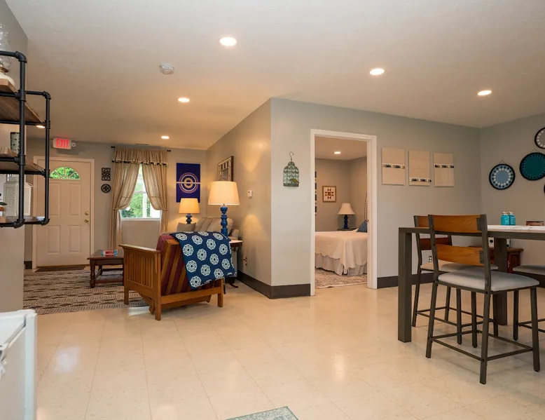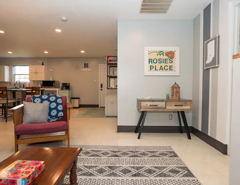 Take it easy at this unique ADA accessible home. Rosie's Place is a one bedroom, one bathroom home, with a pull-out sofa situated on a large green space with beautiful mature trees. Rosie's Place was originally built to provide temporary housing for families in need. We purchased the property allowing our community to build a larger facility to assist more Bloomington families! Rosie's is quirky as some original finishes were left intact - a nod to the unique story of our little house. Welcome!
