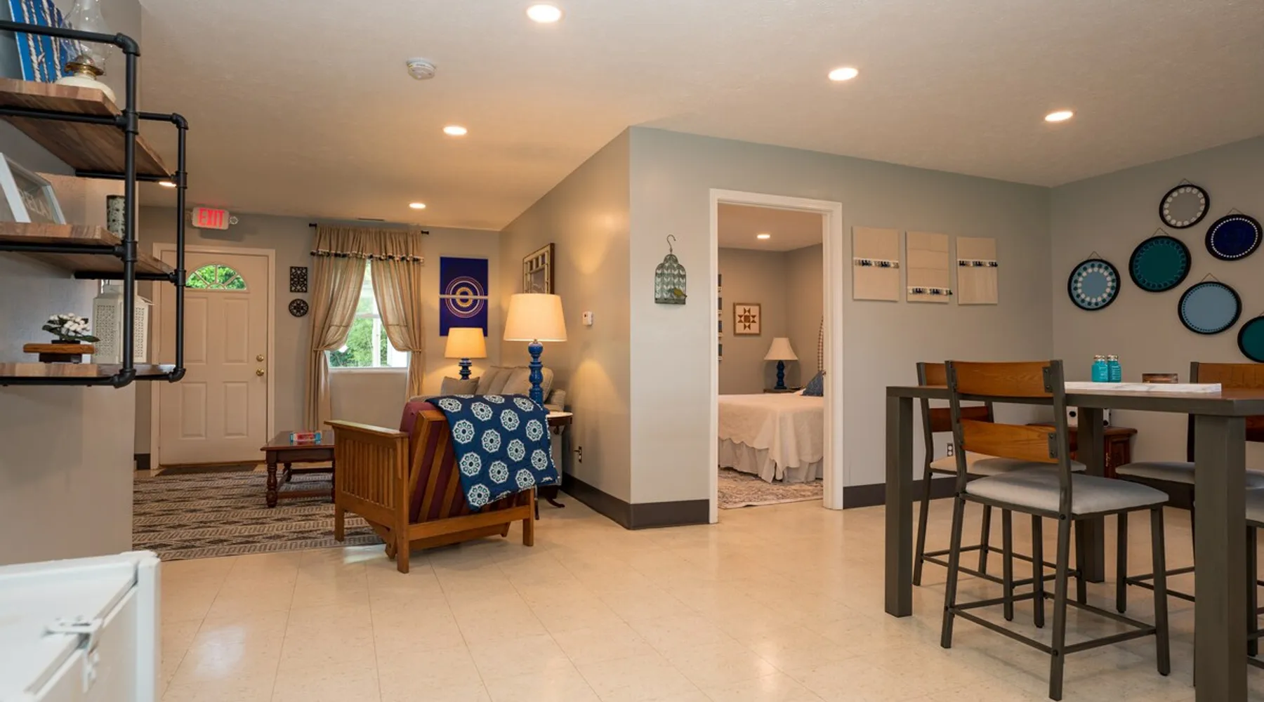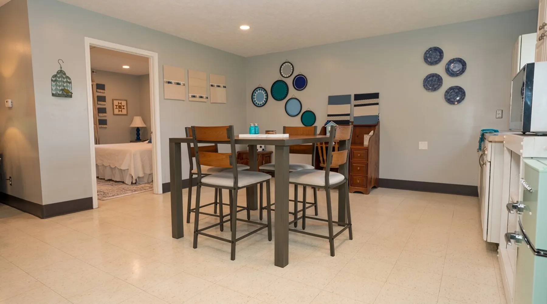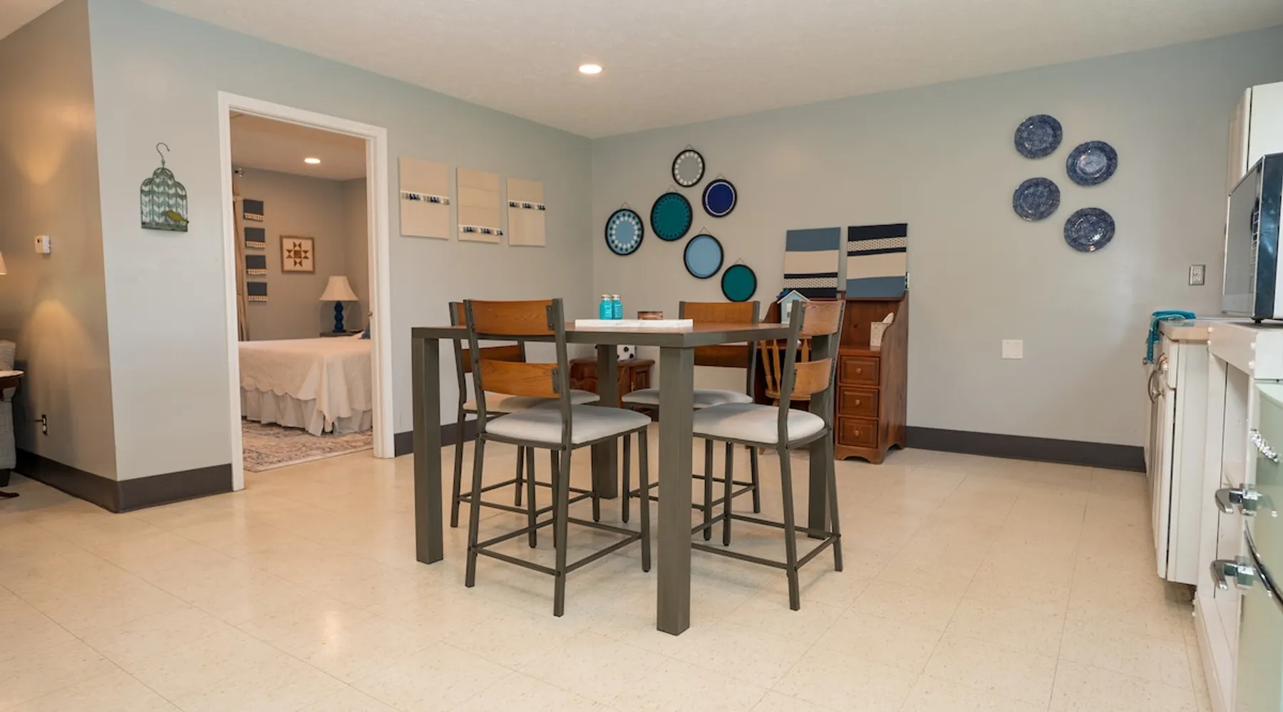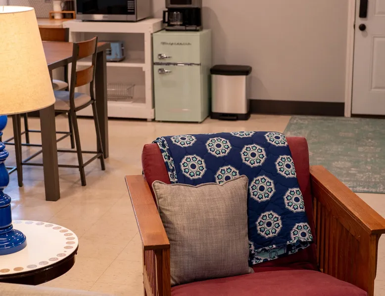 Take it easy at this unique ADA accessible home. Rosie's Place is a one bedroom, one bathroom home, with a pull-out sofa situated on a large green space with beautiful mature trees. Rosie's Place was originally built to provide temporary housing for families in need. We purchased the property allowing our community to build a larger facility to assist more Bloomington families! Rosie's is quirky as some original finishes were left intact - a nod to the unique story of our little house. Welcome!