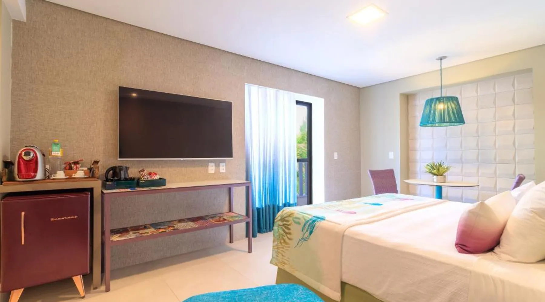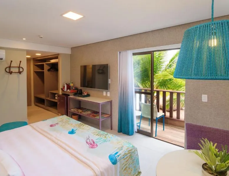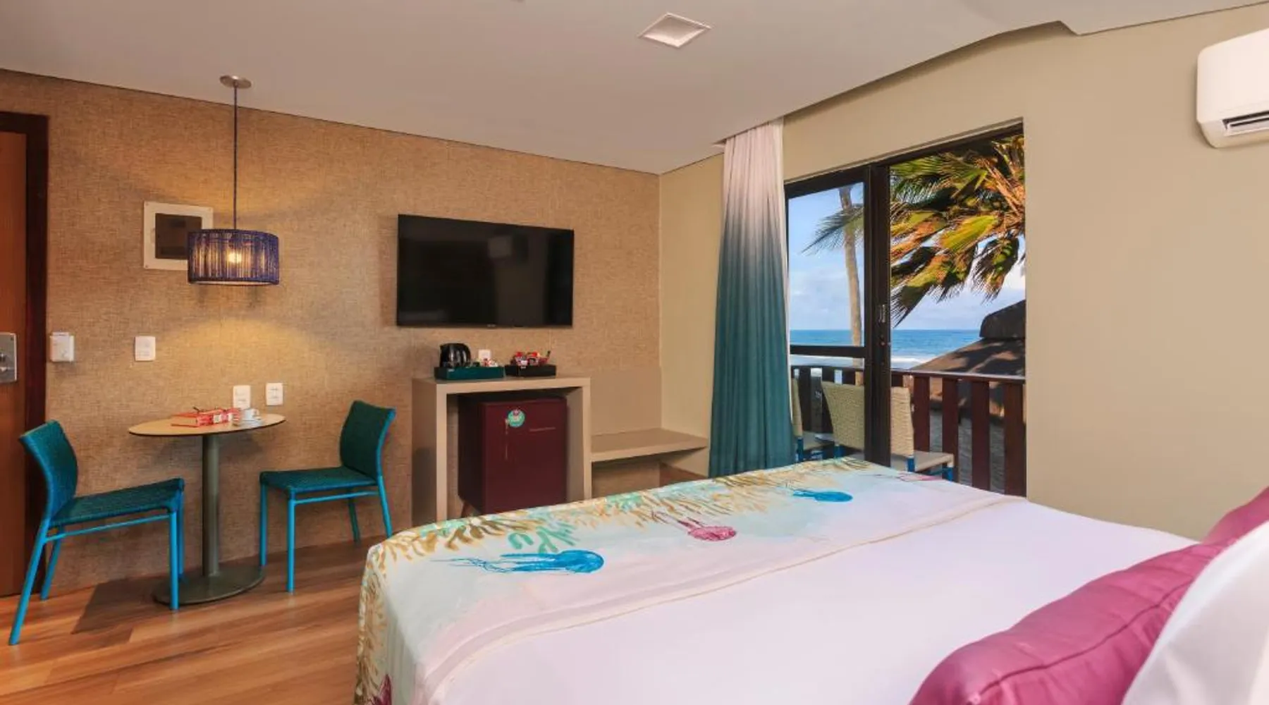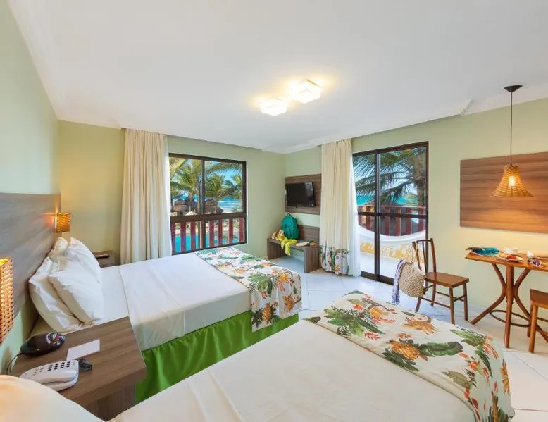 Hotel Solar Porto de Galinhas is a 4-star ocean-front hotel located in one of the best spots of Porto de Galinhas, Pernambuco. Boasting an ocean view from the pool area, this hotel has a wet bar and a restaurant on-site. Guests can relax by the beach while enjoying the bar service offered by the hotel. All the rooms of the Hotel Solar Porto De Galinhas provide air conditioning, a mini-bar and cable TV. The Deluxe Rooms have extra space, a frontal sea view and a private hot tub. The hotel provides activities for children with their kids club and entertainment staff. Adults can relish by the gazebos, sun loungers and, for an additional charge, have access to a private space and savor a romantic dinner by the beach. Merepê Beach is 0.9 mi from Hotel Solar Porto de Galinhas, while Maracaipe's Beach is 3.1 mi away. This double room's standout feature is the hot tub. Offering free toiletries and bathrobes, this double room includes a private bathroom with a bath, a shower and a hairdryer. The spacious air-conditioned double room offers a flat-screen TV with streaming services, a private entrance, a mini-bar, a tea and coffee maker as well as sea views. The unit offers 1 bed.