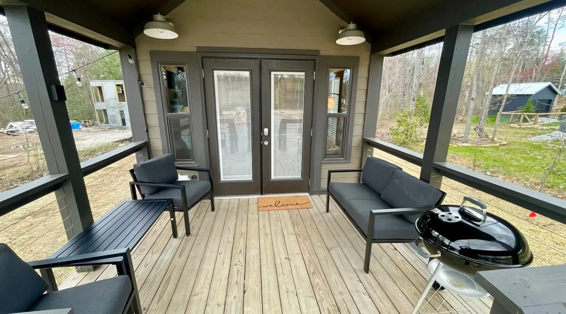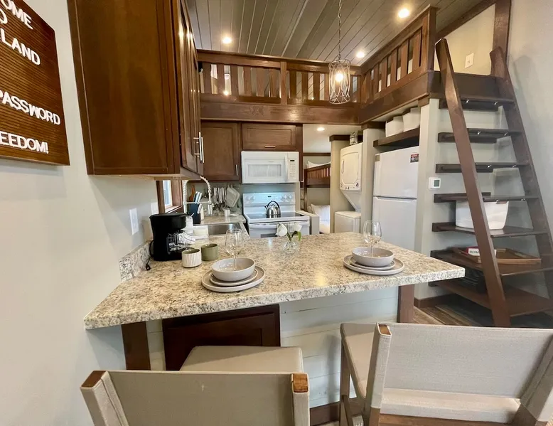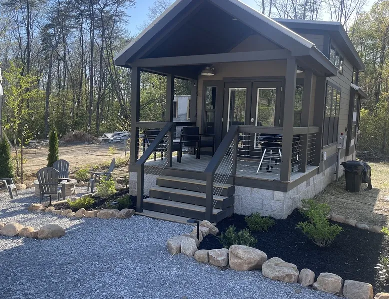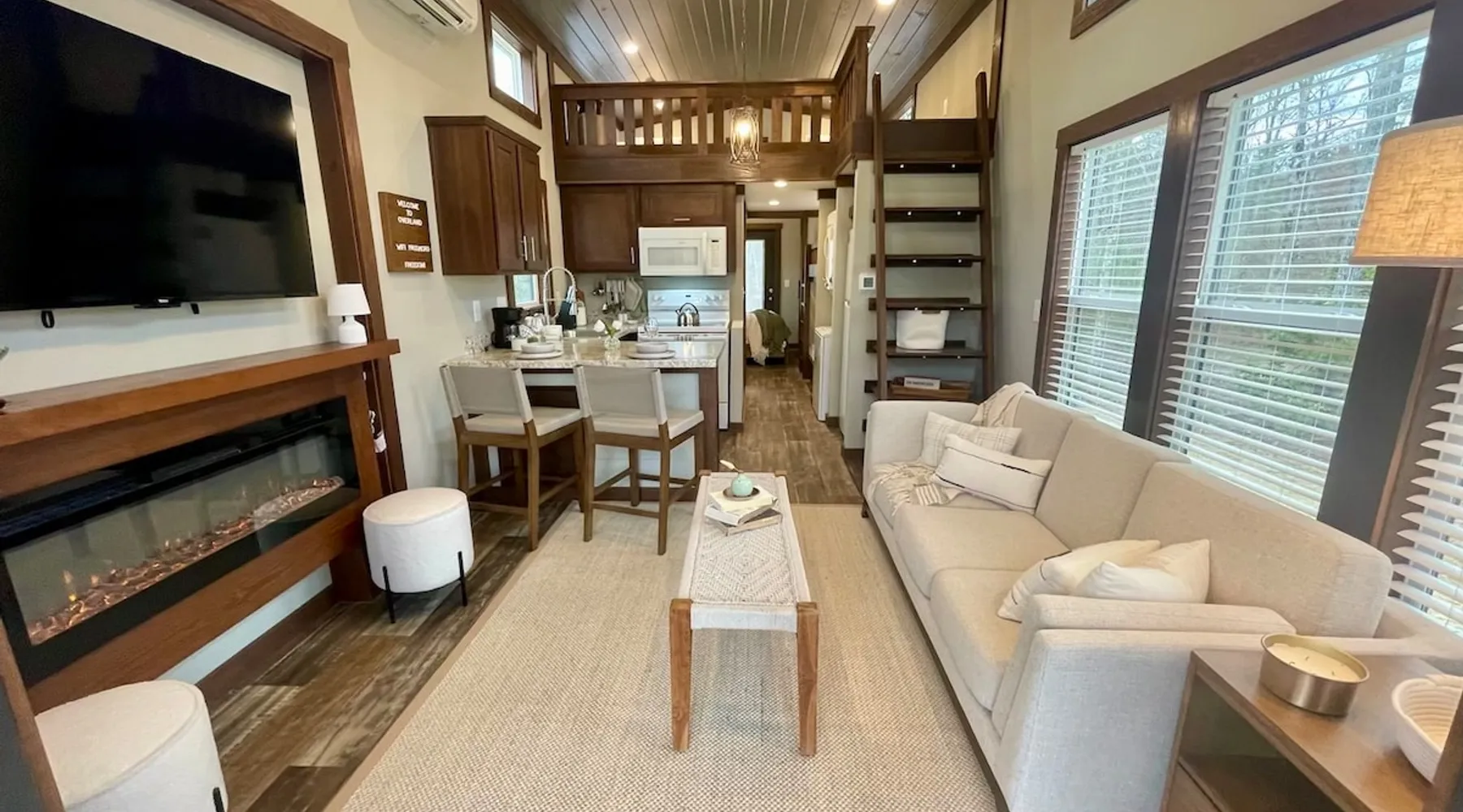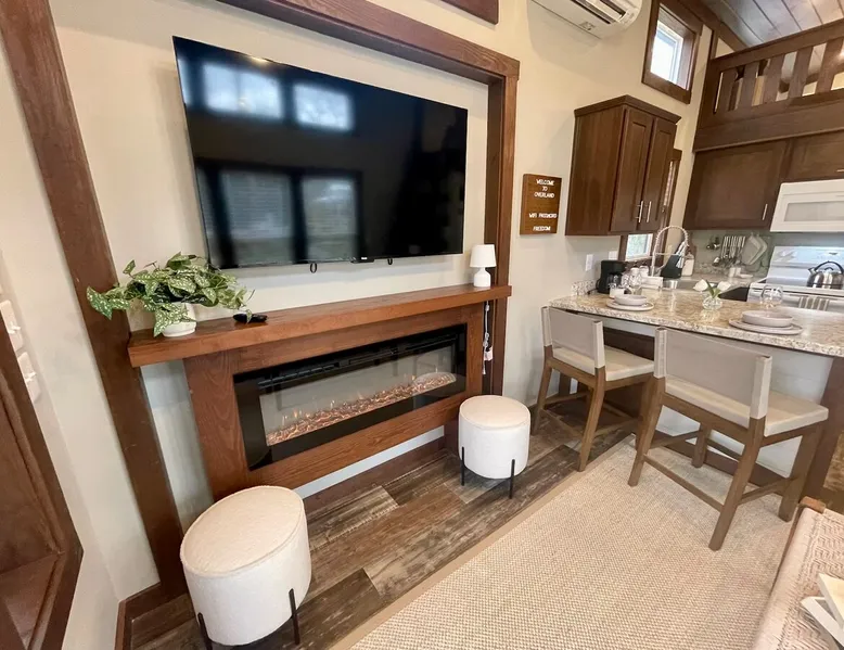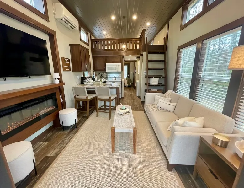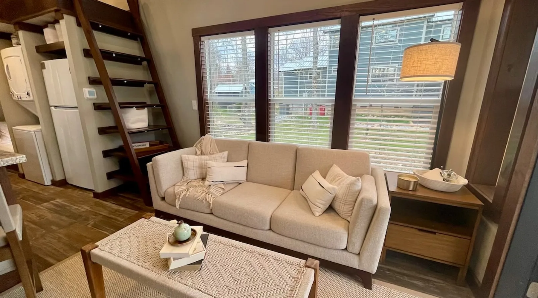 Step into serenity at Overland, a cheerful, tiny home filled with creamy tones and calming vibes. Located in the exclusive Water’s Edge community, this home is the perfect setting for lake days, starry nights, and cozy evenings.