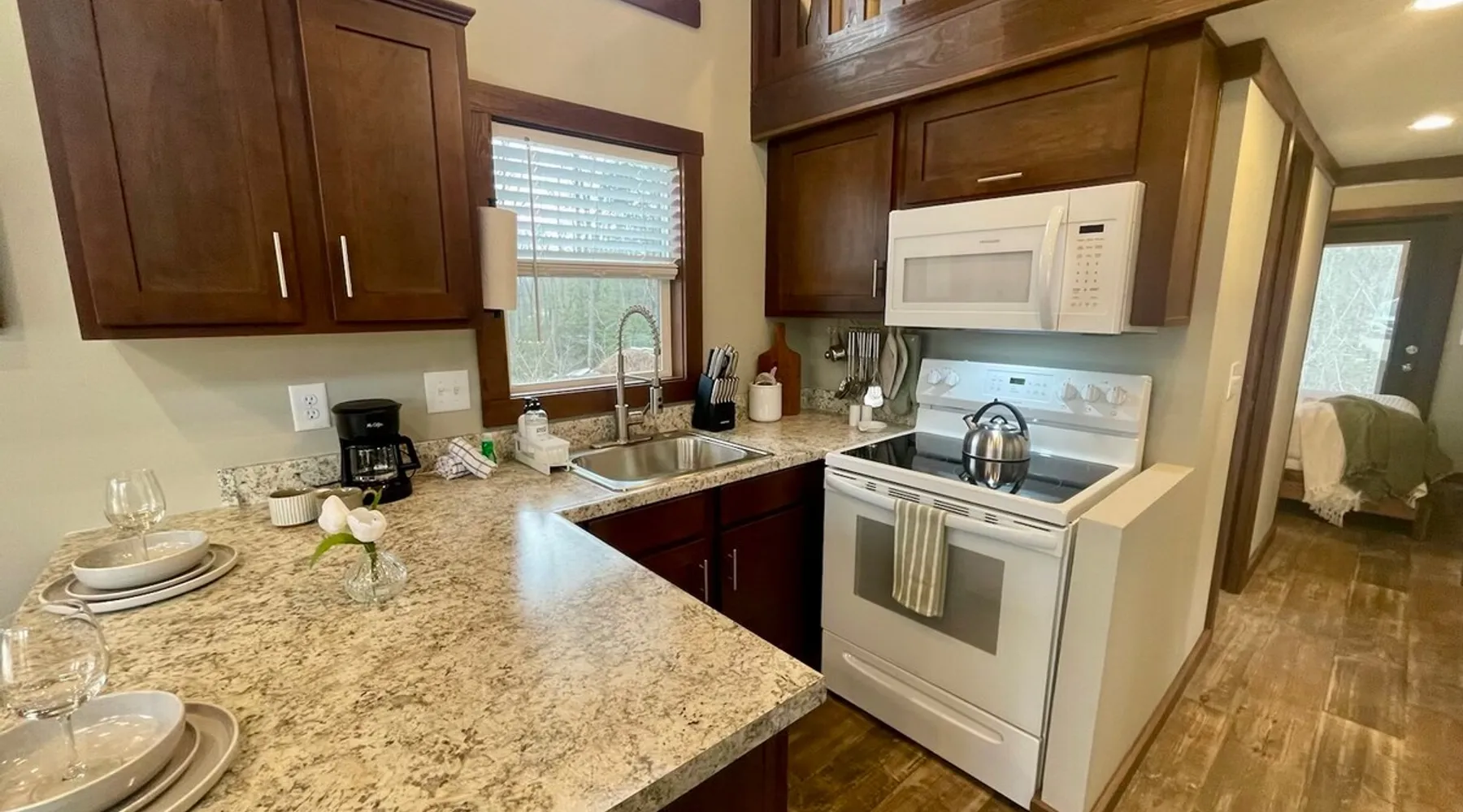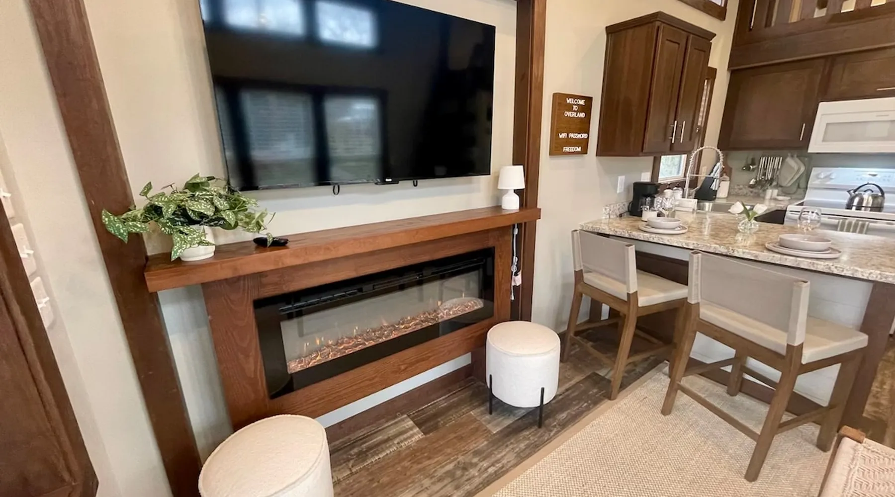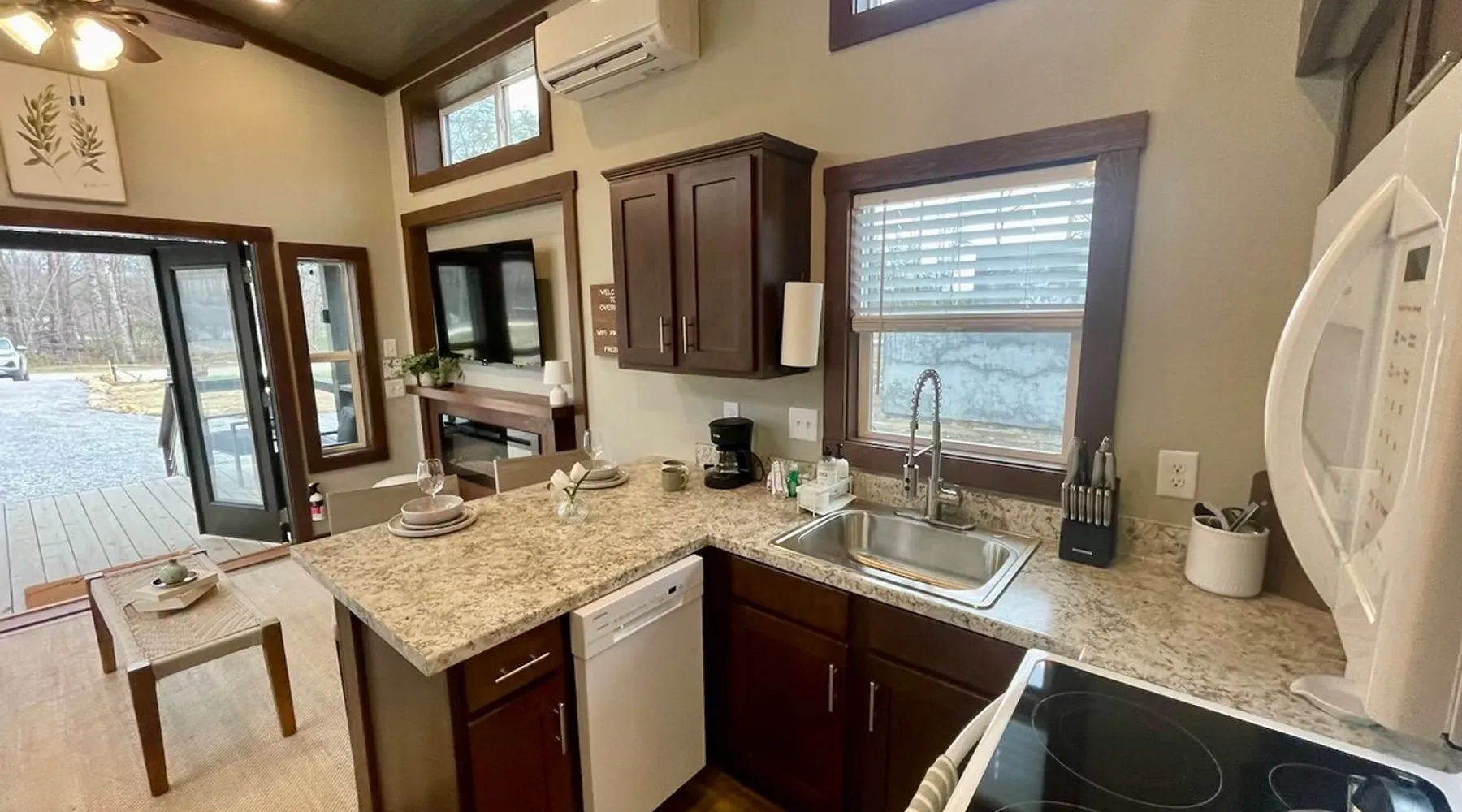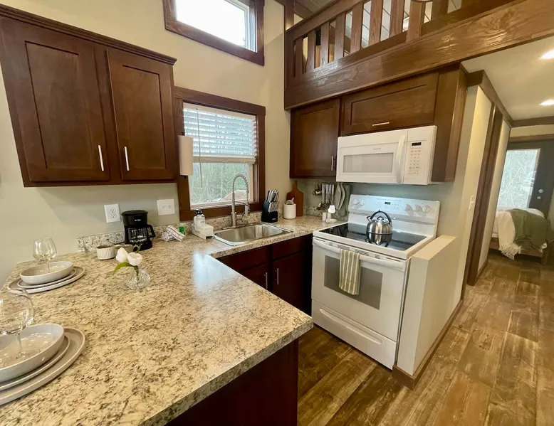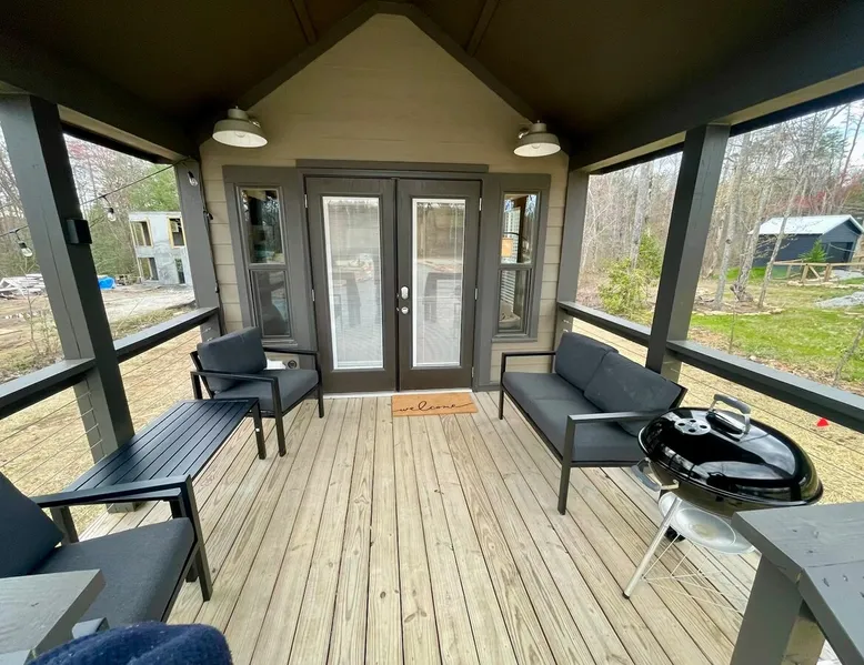 Step into serenity at Overland, a cheerful, tiny home filled with creamy tones and calming vibes. Located in the exclusive Water’s Edge community, this home is the perfect setting for lake days, starry nights, and cozy evenings.