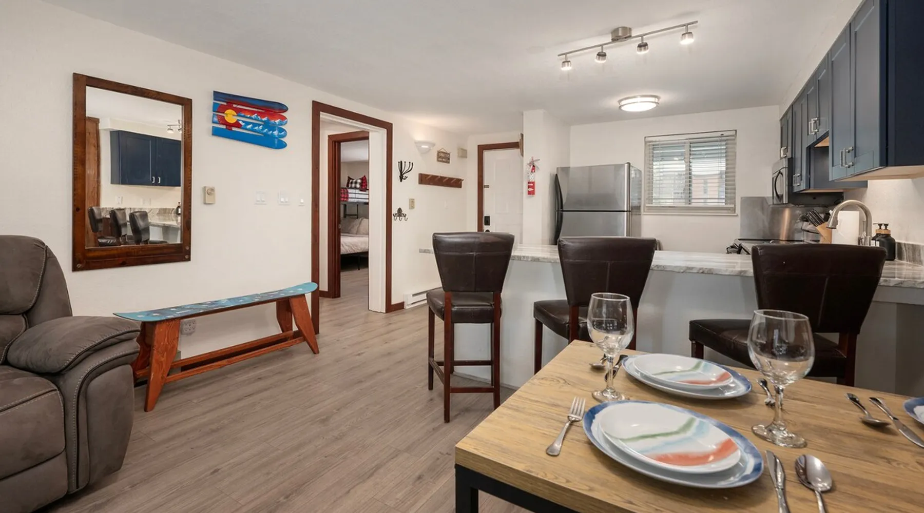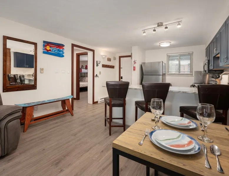 This spacious 2-bedroom condo is a gem nestled in the pine woods within Beaver Village. Fully remodeled & new furniture (May 2024) → Short walk to town → Steps from bus stop to Mountain/Ski lift → Modern appliances → Back & Front Patio w/outdoor seating → Smart TV in living room & Primary bedroom → Propane Grill → Pool, Hot tub, Sauna in community center → Self check-in → 0.6 Mile walk to Cooper Creek Square → 0.8 Mile walk to Rendezvous Event Center Add our listing to your Wishlist! The space Welcome to our charming and recently renovated mountain retreat, located just minutes from the renowned Winter Park Ski Resort. Perfect for families and groups, our cozy abode comfortably sleeps up to 7 guests across 5 beds in 2 bedrooms. Here's what awaits you: Space and Comfort Bedrooms: Master Bedroom: Relax in the spacious master bedroom featuring a plush queen bed, perfect for a restful night's sleep after a day on the slopes and one twin bed. Second Bedroom: Ideal for kids and groups, this room is equipped with a bunk bed (twin over fill) and one additional twin bed, offering both comfort and fun. Bathrooms The two bathrooms are modern and well-appointed, complete with fresh towels and essential toiletries, ensuring a comfortable and convenient stay for all guests. Recent Renovations Our home has been thoughtfully renovated to provide a contemporary yet cozy atmosphere. You'll find new flooring, updated fixtures, and stylish decor throughout, enhancing your mountain getaway experience. The open living area features comfortable seating, a large flat-screen TV, and a welcoming ambiance, making it a perfect spot for relaxation and gathering with loved ones. Amenities Fully Equipped Kitchen: Prepare delicious meals in the modern kitchen, complete with all the essentials including a stove, microwave, refrigerator, dishwasher, and ample cookware and utensils. Dining Area: Enjoy your home-cooked meals or takeout from local eateries at the spacious dining table, which comfortably seats all guests. High-Speed WiFi: Stay connected with reliable high-speed internet, perfect for streaming, remote work, or planning your next adventure. Laundry Facilities: For your convenience, the home includes a washer and dryer, making it easy to keep your ski gear fresh and ready for action. Proximity to Winter Park Ski Resort Located just a short drive or shuttle ride from Winter Park Ski Resort, you'll have easy access to world-class skiing, snowboarding, and a variety of winter sports. In the warmer months, explore the area's hiking trails, mountain biking paths, and breathtaking natural scenery. Local Attractions Beyond the slopes, Winter Park offers a charming downtown area with a variety of shops, restaurants, and entertainment options. Enjoy a meal at a cozy mountain bistro, browse unique local shops, or take in a live performance at a nearby venue. Book Your Stay Experience the best of Winter Park from the comfort of our recently renovated condo. Whether you're hitting the slopes, exploring the trails, or simply unwinding with family and friends, our cozy retreat is the perfect base for your mountain adventures. We look forward to hosting you! Safety and Cleanliness Your health and safety are our top priorities. Our home is thoroughly cleaned and sanitized between guests, following enhanced cleaning protocols to ensure a safe and pleasant stay. Book now and start planning your unforgettable Winter Park getaway! Guest access You'll have access to the entire condo. Other things to note IMPORTANT: 4WD vehicles are strongly recommended in winter months. Our contract with the snow plowing company states that plows will be deployed only once 6” of snow has accumulated on the roads. We will not be able to send someone until then. Reservations may be subject to extra guest fees, as well as additional charges for optional services such as adding pets or requesting early check-ins.