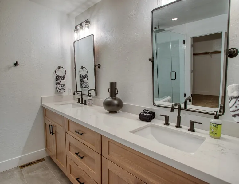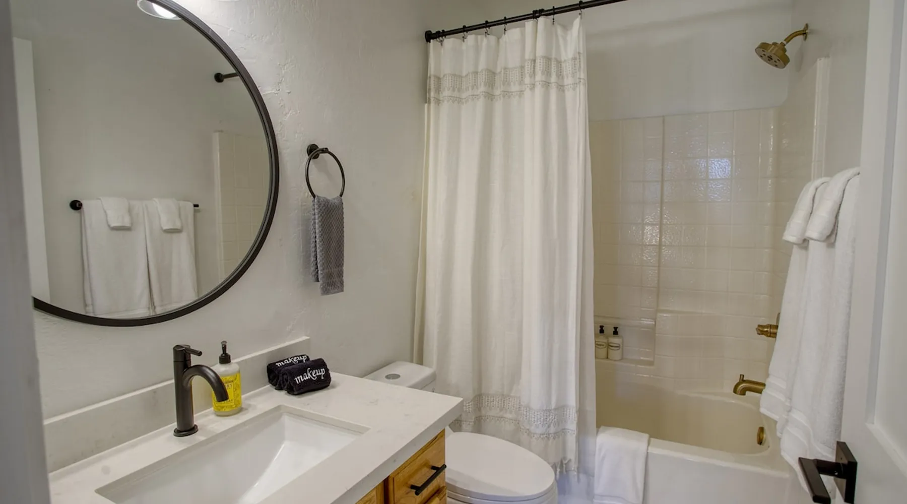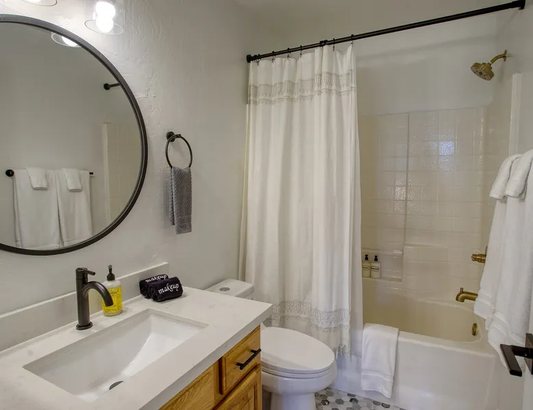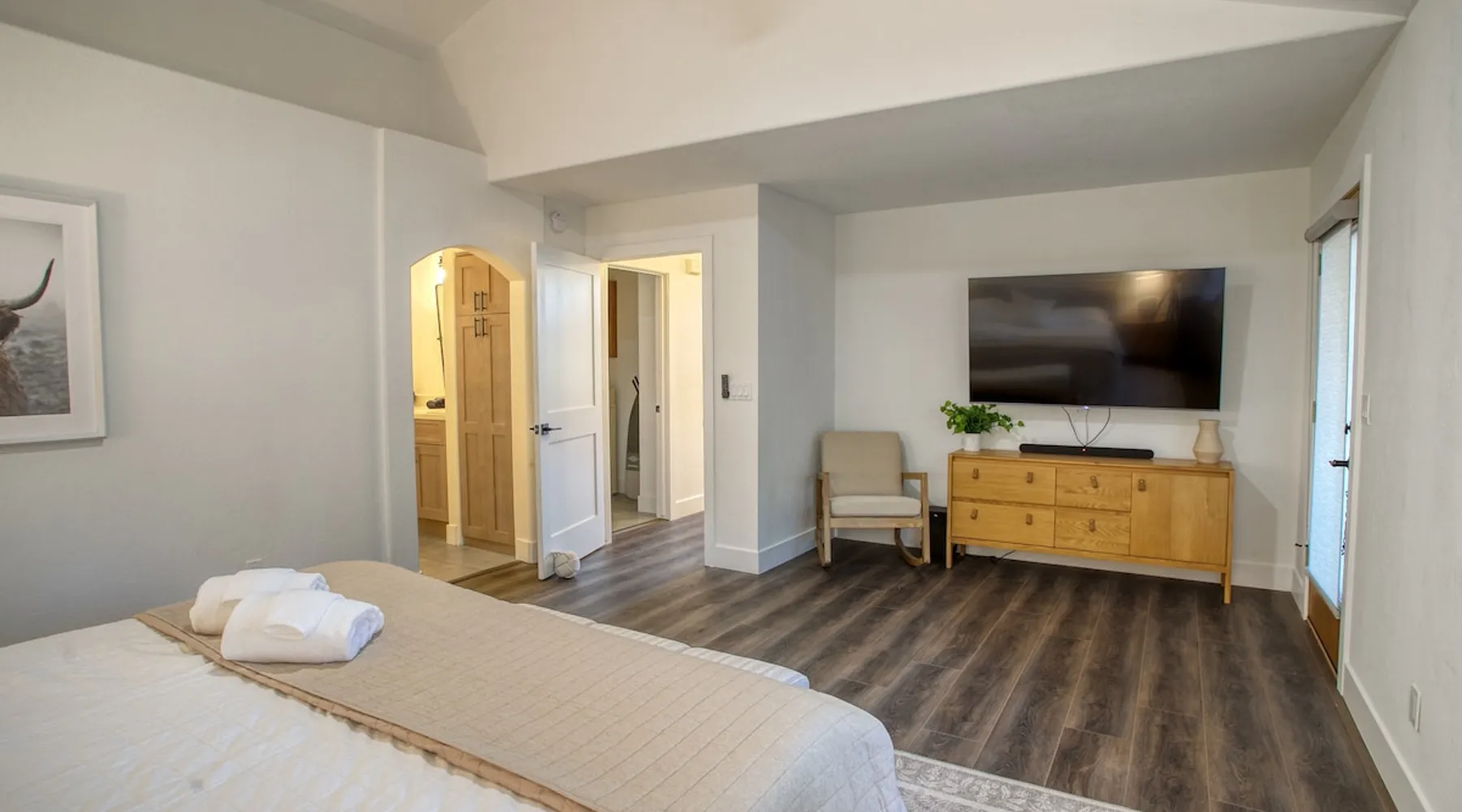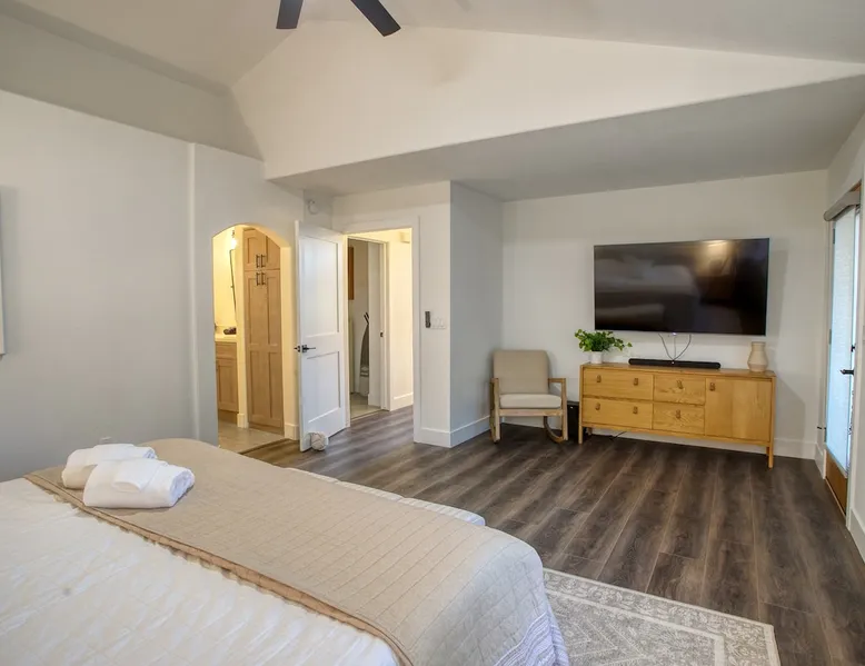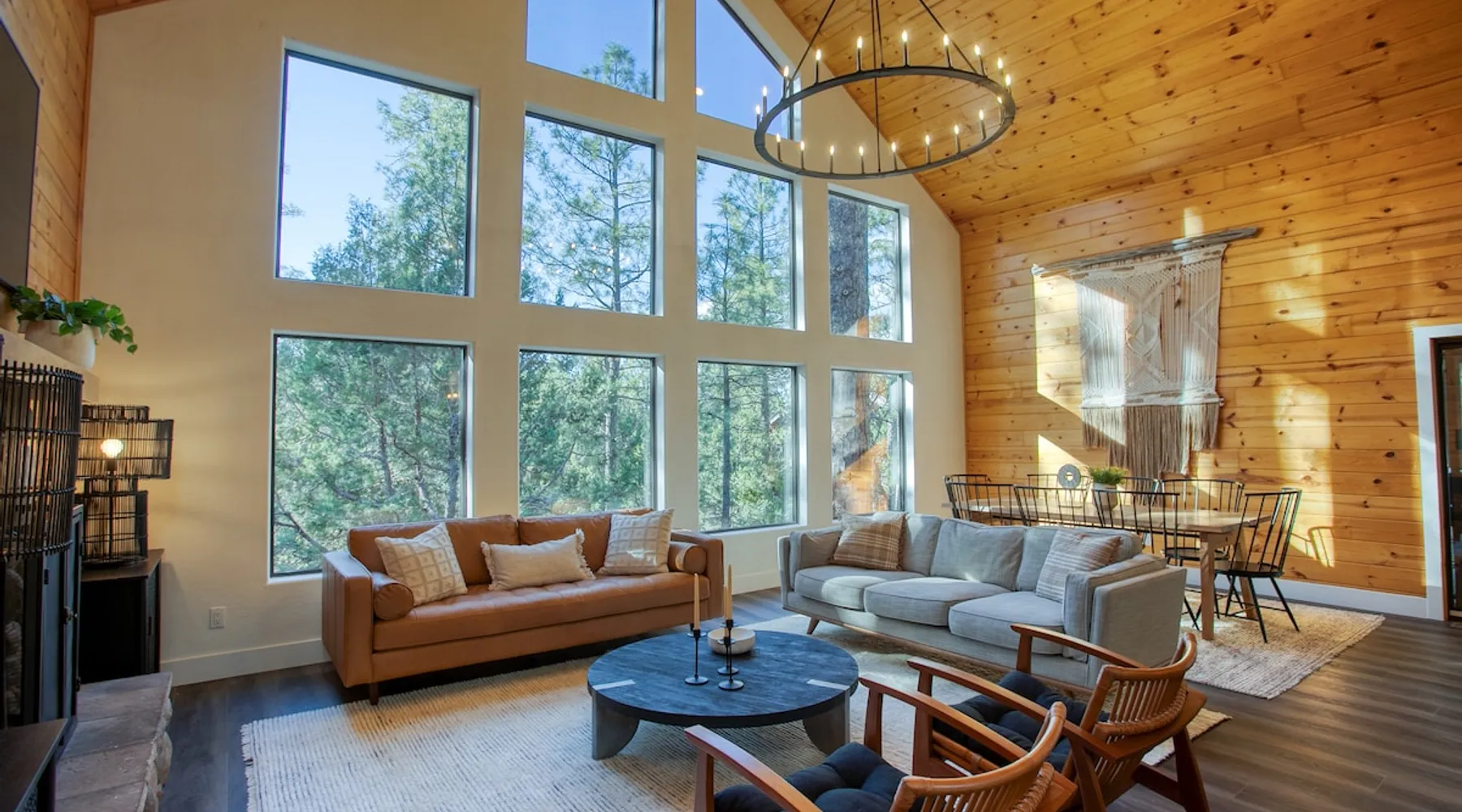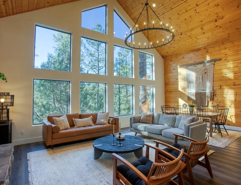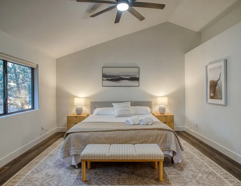 Welcome to Pinetop!!! This beautiful 3-bedroom, 2.5 bathroom retreat is nestled in the scenic community of Pine Top. This home features it all – central heating and A/C, a fully stocked kitchen, BBQ, fire pit and a garage filled with tons of games! This newly renovated cabin sleeps 10 people comfortably. The cabin is close to cafes, restaurants, local shopping, and many other wonderful attractions! See the full description for more. The space The cabin has 2 levels. The main level of the home features a large and spacious living room with 2 couches, 2 chairs and is equipped with a smart TV. The kitchen is fully stocked for all your cooking and baking needs, and a 6-foot dining table with 8 chairs for fun family dinners and game nights! The main level also features the primary bedroom which has a king bed, 2 nightstands, a 50” smart tv, a dresser for storage, and an en-suite bathroom. The bathroom features a double vanity, oversized shower and walk in closet. The upper level of the home features two additional bedrooms and a full-size bathroom with a shower/tub combo. The 2nd bedroom has a queen beds, 2 nightstands and a 50” smart TV. The 3rd bedroom has 2 sets of bunk (stacked 3 high) and sleeps 6 people!!! For guests that plan to have longer stays, there is a full-size washer and dryer available for use. The laundry room is located inside the home with a door leading in/out of the two-car garage. The home features a beautiful outdoor deck. The is located off the dining room and comes complete with patio furniture and a BBQ. The firepit is located on the left side of the property and is equipped with lounge chairs for relaxing evenings and smores nights. This home is also equipped with high-speed internet! The WIFI password will be posted in many areas throughout the home. Guest access Guests will use the outdoor staircase which leads to the front door which enters into the main living area. The front door has a smart lock on the handle and you will be provided a personalized door code to use to access/enter the home curing your stay. You may park your vehicles in the dedicated property driveway. Other things to note This mountain oasis is close to so many other attractions such as Sunrise Park Resort, Pinetop Lakes Public Golf Course, white mountain family fun park, Horseback riding stables, and so many other restaurants, shops and cafes. Winter weather may bring snow. Please note that we do not accept any liability if you’re snowed in/out, experience loss of power, road closures, or other issues out of the host's control. Power outages may happen due to weather, utilities shut off, etc. If you book the cabin you are accepting these possibilities and will not receive a refund. We recommend all guests get their own trip insurance if you are concerned about these possibilities. We also recommend all guests carry chains in the winter. Please note that snow is not removed from the property by the hosts. However, shovels are provided for guests.