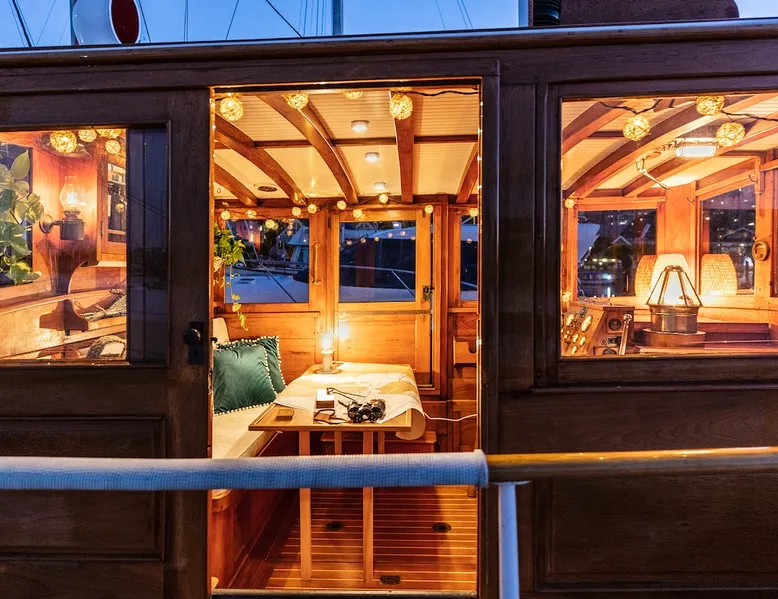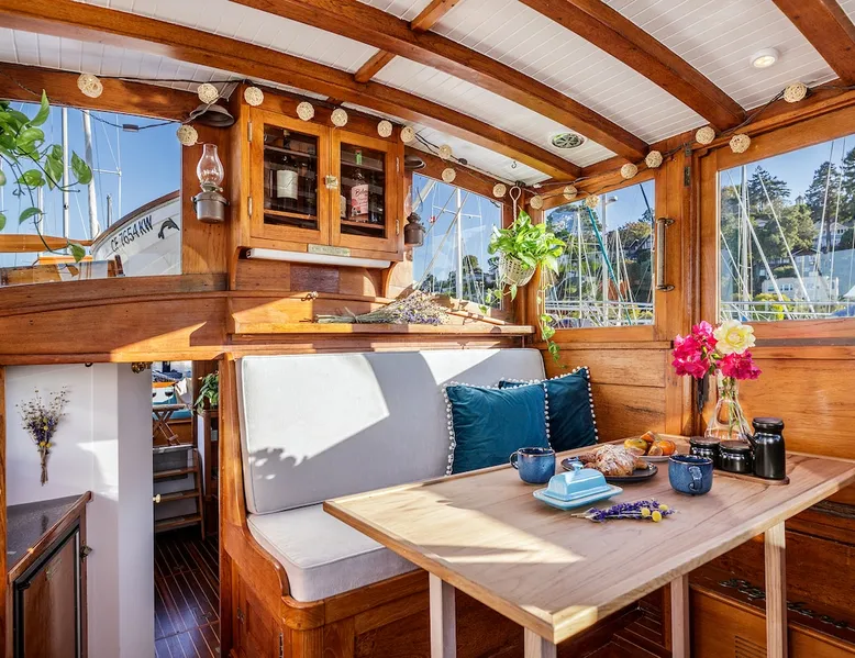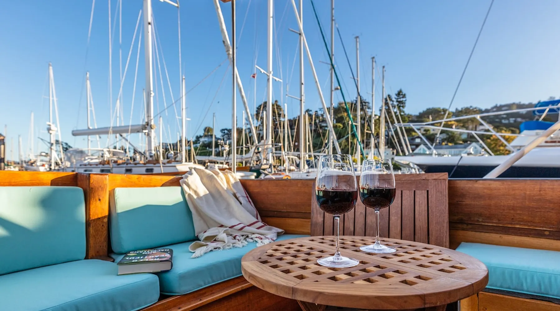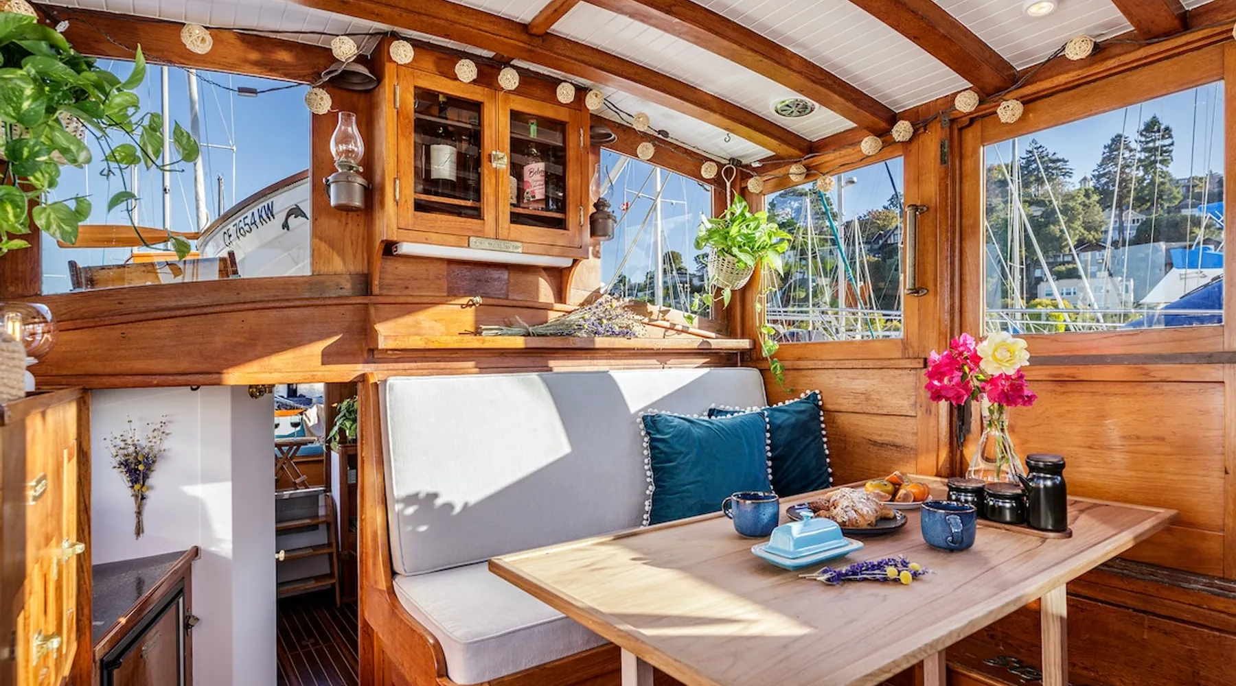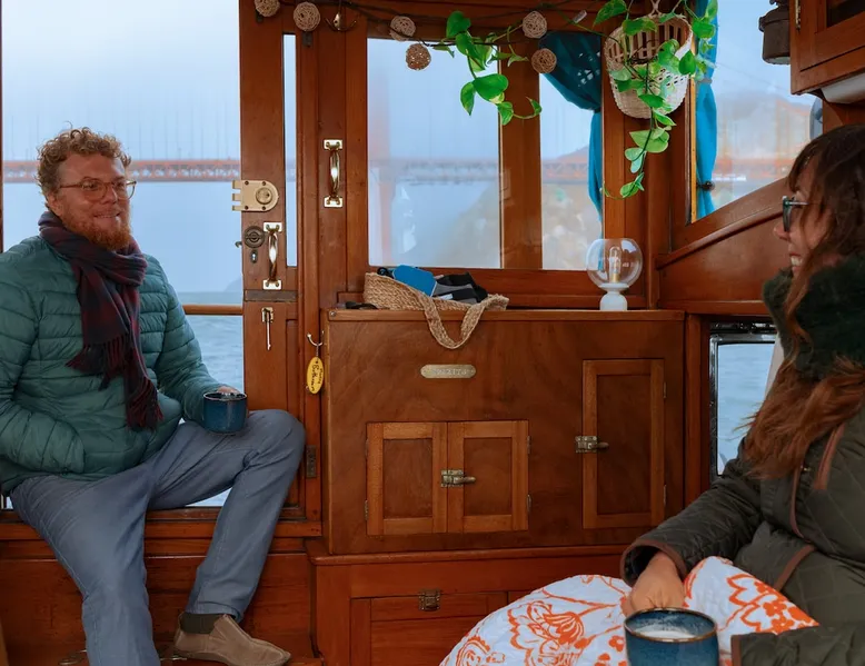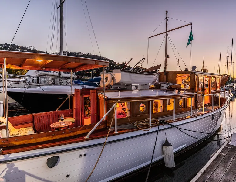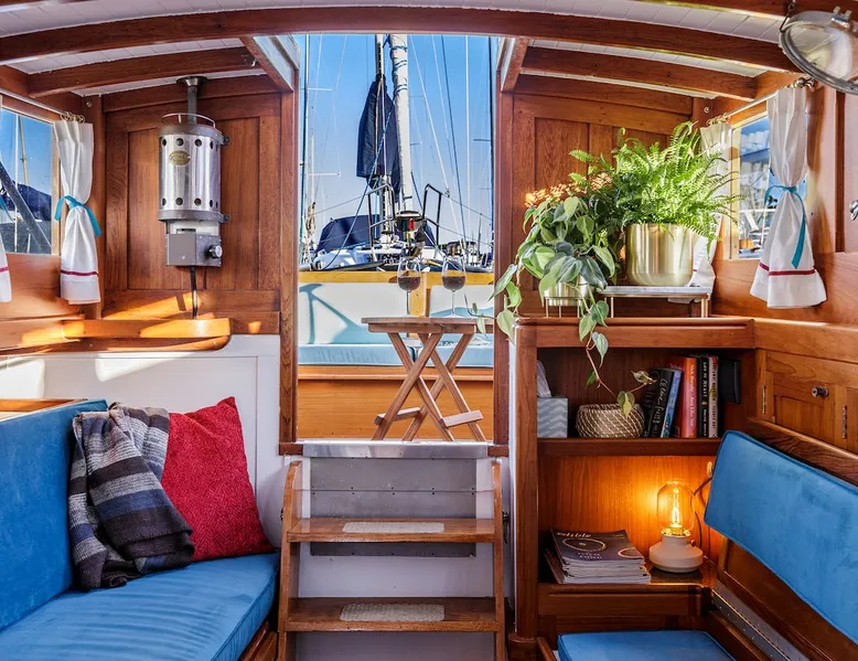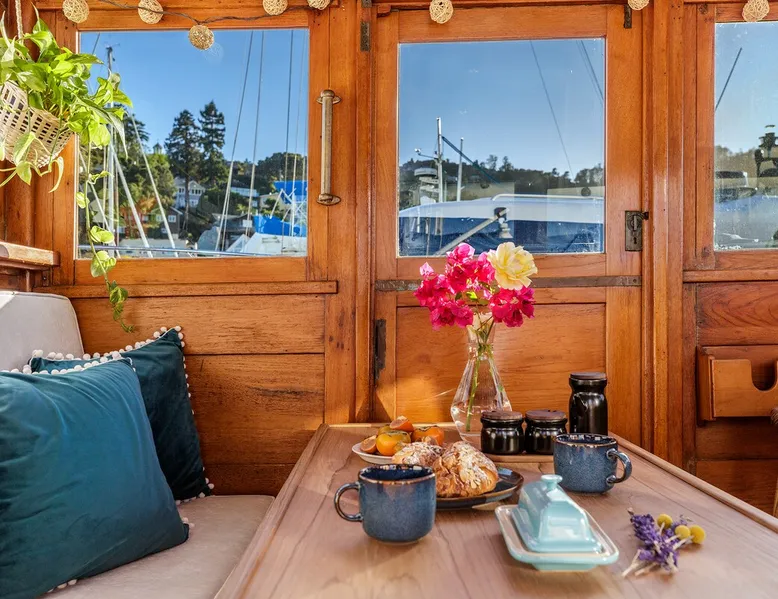 ***Overnight stays require you book a chartered cruise with Union Island, due to marina regulations*** ***The price quoted here is only for an overnight stay and does not include the cruise -- please scroll down to see prices for various cruise options*** Cruise by the Golden Gate Bridge, Angel Island, Alcatraz, and the San Francisco skyline with Union Island charters, followed by an overnight stay at our dock in the in the lively village of Sausalito, just a few miles north of SF. The space This 3-cabin yacht exudes timeless elegance. With abundant natural light, postcard views, and the subtle swaying of bay waters, it is a retreat space that calms the senses and soothes the soul. Cozy, yet comfortable, the yacht is surprisingly spacious and fully equipped for wining, dining, dozing and connecting with loved ones -- perfect for a romantic escape or as a base to explore the Bay Area with your family. The teak interior includes a quaint kitchenette, dining/work area, queen size bed, two single bunks/daybeds, and two bathrooms. At the rear of the boat is a cozy open-air space with a cocktail table. Ample deck space up top for lounging. The boat is docked a few feet away from Fjord, a floating sauna, which is one of Sausalito‘s newest and most exciting attractions. End the evening or start the morning in one of their gorgeous sauna rooms, followed by a cold plunge into the bay, for those who dare. Other things to note The following cruise prices are in addition to the cost of the overnight stay that is quoted in the listing. The cruise prices do not incur any additional taxes or fees. Please send us a message noting how many hours you would like and we will add the cost to your reservation prior to booking. Per Marina regulations, booking a cruise is mandatory to stay aboard the yacht. 2 HRS - $750 3 HRS - $950 4 HRS - $1150 *prices may be higher on holidays ROUTES: 2-hour cruises make a loop past the Golden Gate Bridge, Angel Island and Sausalito 3-hour cruises make a loop past the Golden Gate Bridge, Angel Island, Alcatraz and Sausalito 4-hour cruises make a loop past the Golden Gate Bridge, Angel Island, Alcatraz, downtown San Francisco, Paradise Cay and Sausalito Please contact us for custom itineraries. You may also charter the boat for daytime cruises without an overnight stay. Union Island offers adventures year round, with daytime, sunset and nighttime departures. Evenings are an overlooked time to be on the water, which is lit up by the stars, moon and lights of the Golden Gate Bridge and downtown San Francisco. Weather on the Bay is often beautiful in the middle of winter, when it is sometimes even warmer than on our (often) foggy summer days. But we do have heaters on the boat to keep you toasty on cool nights, and one of the cabins is completely enclosed with glass on all sides to keep the wind off during cruises. While offshore, we have onboard power for electric blankets. If you’d like to take a road trip before or after your stay, we also have a luxurious 24-foot Mercedes sprinter van conversion for rent. Each booking supports the Union Island Project, which provides marine excursions to low income residents. * For the safety and enjoyment of all guests, we have a policy of providing rain checks rather than refunds for boat tours. Due to factors such as weather conditions or occasional minor mechanical issues, there may be instances when we are unable to depart at the exact scheduled time. In these cases, we will work to reschedule your tour at a mutually convenient time to ensure you still have a memorable experience on the water. Thank you for your understanding. * Before booking, please consider that a boat works differently than a house. It is in some ways like a glamping experience on the water. There are special instructions for using the toilets and the shower, for example. Also, there are two antique gas engines beneath the living space, which means there is an engine smell in the living space after the boat has been run. This clears up quickly if the doors and windows are left open to ventilate after your cruise, but the smell has been an issue for some guests who close the boat up after the engines have been run. However, the smell is not an issue if the procedures for airing out the boat are followed.