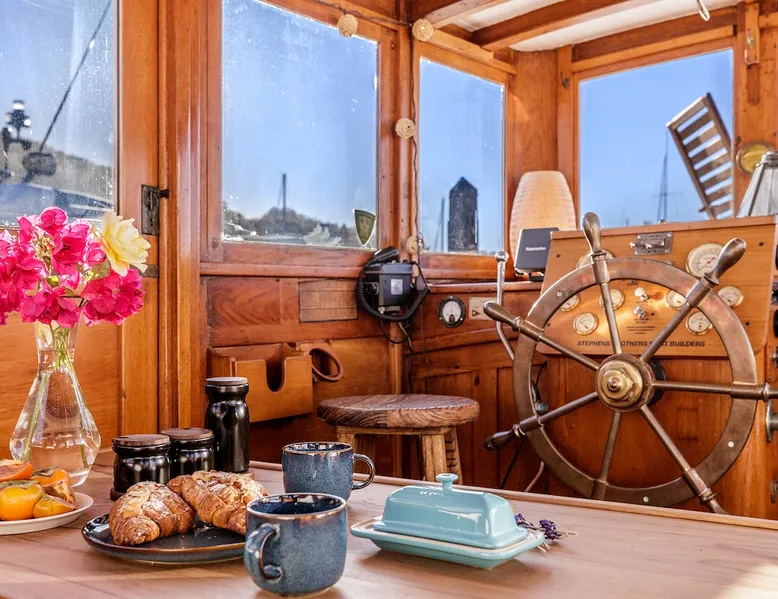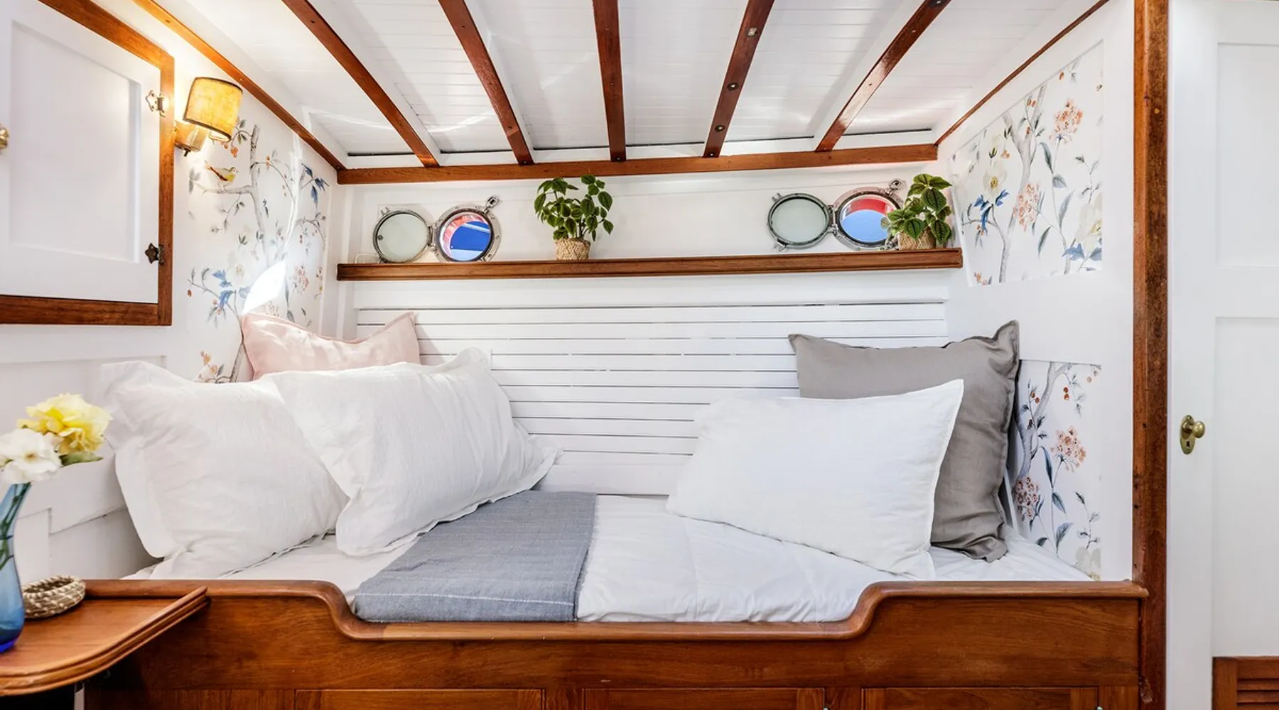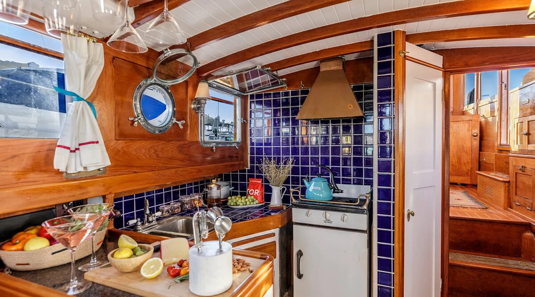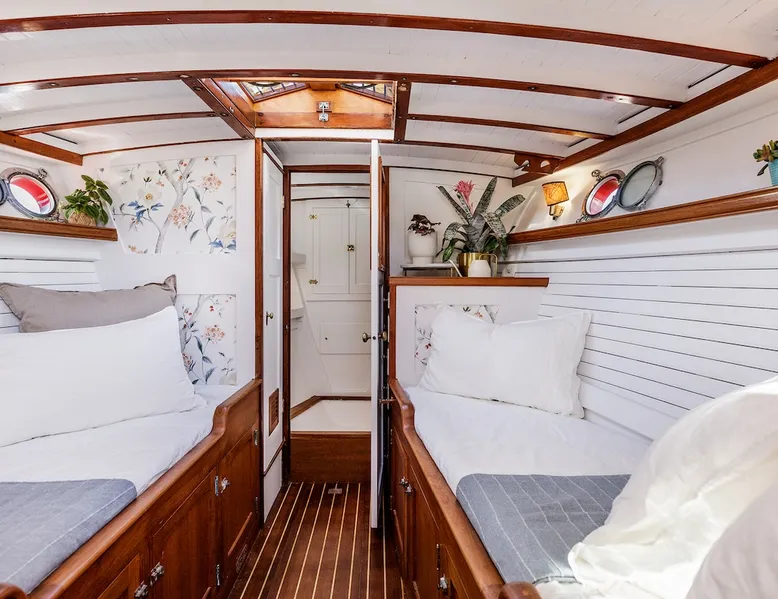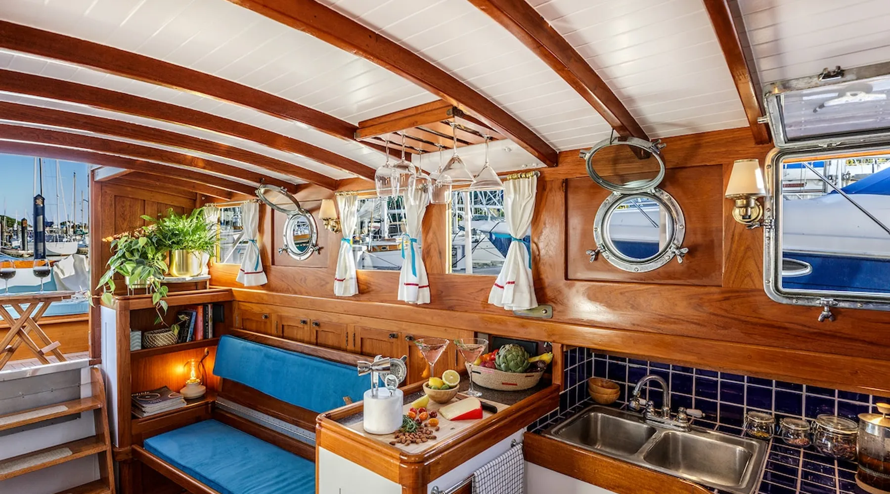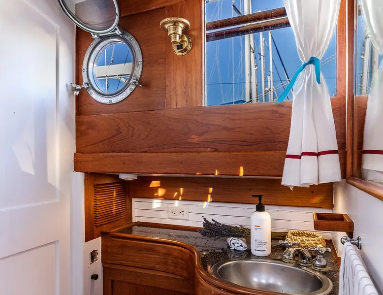 ***Overnight stays require you book a chartered cruise with Union Island, due to marina regulations*** ***The price quoted here is only for an overnight stay and does not include the cruise -- please scroll down to see prices for various cruise options*** Cruise by the Golden Gate Bridge, Angel Island, Alcatraz, and the San Francisco skyline with Union Island charters, followed by an overnight stay at our dock in the in the lively village of Sausalito, just a few miles north of SF. The space This 3-cabin yacht exudes timeless elegance. With abundant natural light, postcard views, and the subtle swaying of bay waters, it is a retreat space that calms the senses and soothes the soul. Cozy, yet comfortable, the yacht is surprisingly spacious and fully equipped for wining, dining, dozing and connecting with loved ones -- perfect for a romantic escape or as a base to explore the Bay Area with your family. The teak interior includes a quaint kitchenette, dining/work area, queen size bed, two single bunks/daybeds, and two bathrooms. At the rear of the boat is a cozy open-air space with a cocktail table. Ample deck space up top for lounging. The boat is docked a few feet away from Fjord, a floating sauna, which is one of Sausalito‘s newest and most exciting attractions. End the evening or start the morning in one of their gorgeous sauna rooms, followed by a cold plunge into the bay, for those who dare. Other things to note The following cruise prices are in addition to the cost of the overnight stay that is quoted in the listing. The cruise prices do not incur any additional taxes or fees. Please send us a message noting how many hours you would like and we will add the cost to your reservation prior to booking. Per Marina regulations, booking a cruise is mandatory to stay aboard the yacht. 2 HRS - $750 3 HRS - $950 4 HRS - $1150 *prices may be higher on holidays ROUTES: 2-hour cruises make a loop past the Golden Gate Bridge, Angel Island and Sausalito 3-hour cruises make a loop past the Golden Gate Bridge, Angel Island, Alcatraz and Sausalito 4-hour cruises make a loop past the Golden Gate Bridge, Angel Island, Alcatraz, downtown San Francisco, Paradise Cay and Sausalito Please contact us for custom itineraries. You may also charter the boat for daytime cruises without an overnight stay. Union Island offers adventures year round, with daytime, sunset and nighttime departures. Evenings are an overlooked time to be on the water, which is lit up by the stars, moon and lights of the Golden Gate Bridge and downtown San Francisco. Weather on the Bay is often beautiful in the middle of winter, when it is sometimes even warmer than on our (often) foggy summer days. But we do have heaters on the boat to keep you toasty on cool nights, and one of the cabins is completely enclosed with glass on all sides to keep the wind off during cruises. While offshore, we have onboard power for electric blankets. If you’d like to take a road trip before or after your stay, we also have a luxurious 24-foot Mercedes sprinter van conversion for rent. Each booking supports the Union Island Project, which provides marine excursions to low income residents. * For the safety and enjoyment of all guests, we have a policy of providing rain checks rather than refunds for boat tours. Due to factors such as weather conditions or occasional minor mechanical issues, there may be instances when we are unable to depart at the exact scheduled time. In these cases, we will work to reschedule your tour at a mutually convenient time to ensure you still have a memorable experience on the water. Thank you for your understanding. * Before booking, please consider that a boat works differently than a house. It is in some ways like a glamping experience on the water. There are special instructions for using the toilets and the shower, for example. Also, there are two antique gas engines beneath the living space, which means there is an engine smell in the living space after the boat has been run. This clears up quickly if the doors and windows are left open to ventilate after your cruise, but the smell has been an issue for some guests who close the boat up after the engines have been run. However, the smell is not an issue if the procedures for airing out the boat are followed.