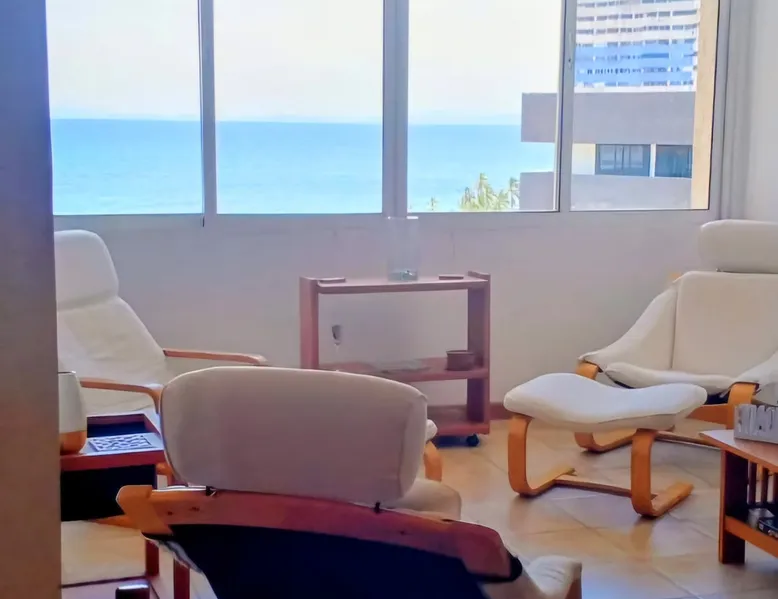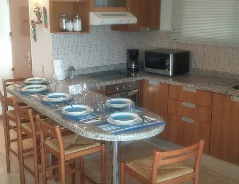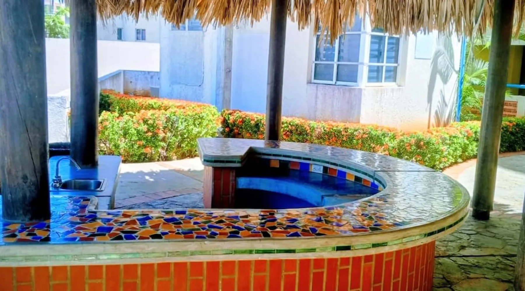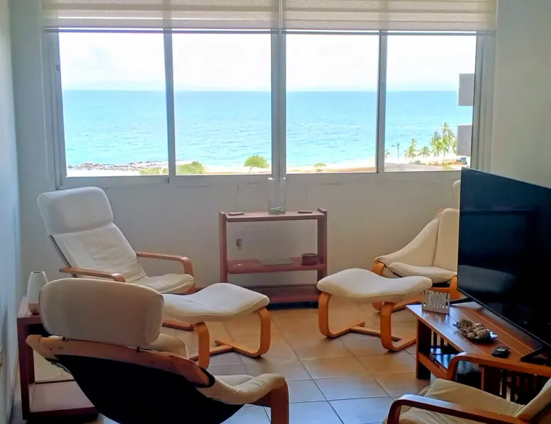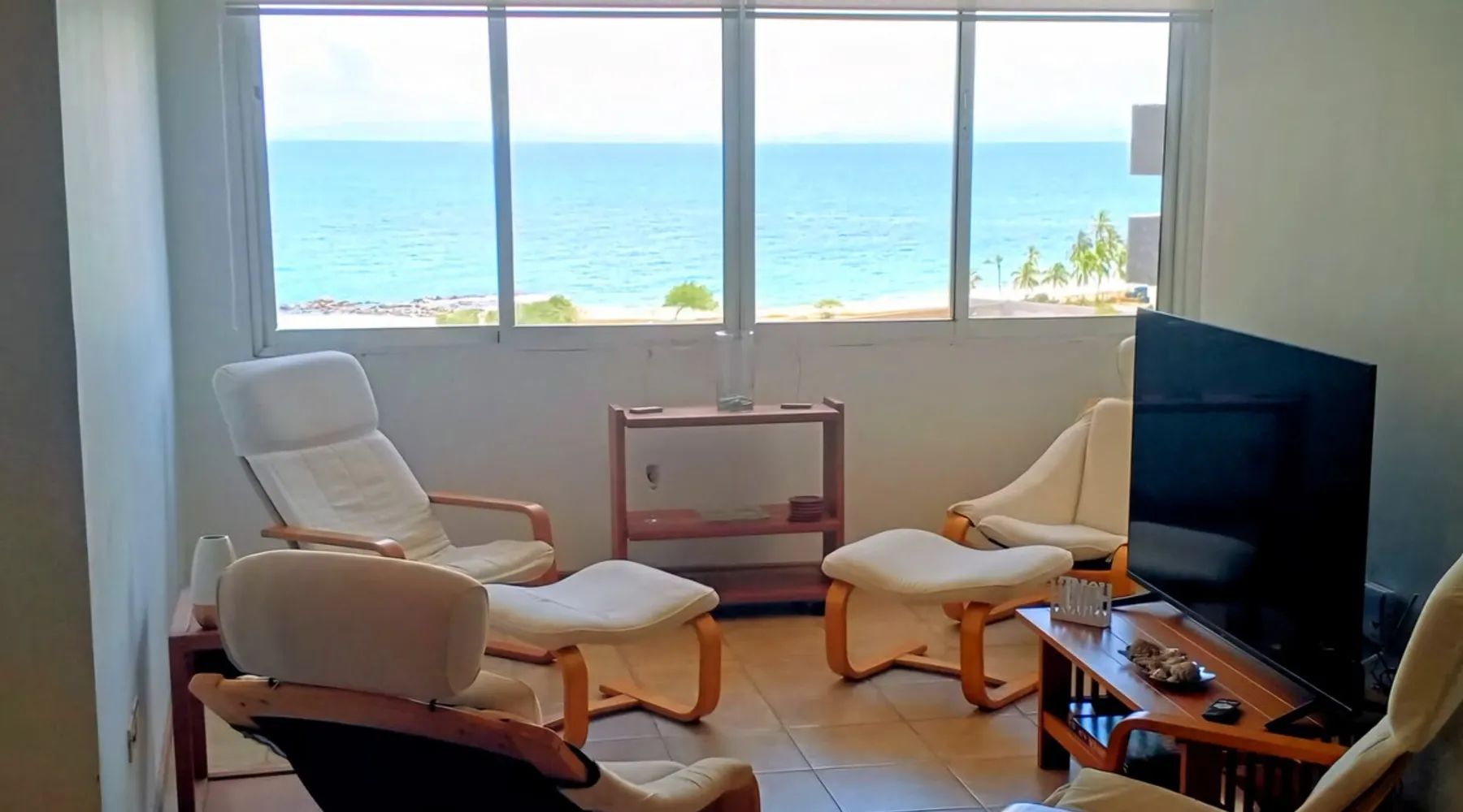 Discover this beautiful apartment with beautiful ocean views. Mariño Municipality, ideal for families or friends. With 3 bedrooms, 5 beds, 3 bathrooms, a living room with TV, air conditioning, an equipped kitchen, WiFi (if more than 3 days), and 2 parking spaces. 2 pools, and recreation areas. Located near Bayside shopping malls and sailing, shops and restaurants. Bayside Beach is located 2 minutes away from the residence. I am available for any questions. languages: English, French and Spanish.