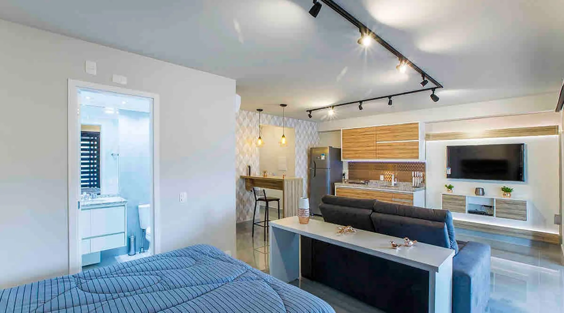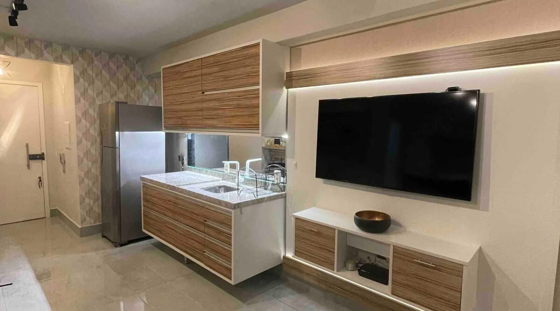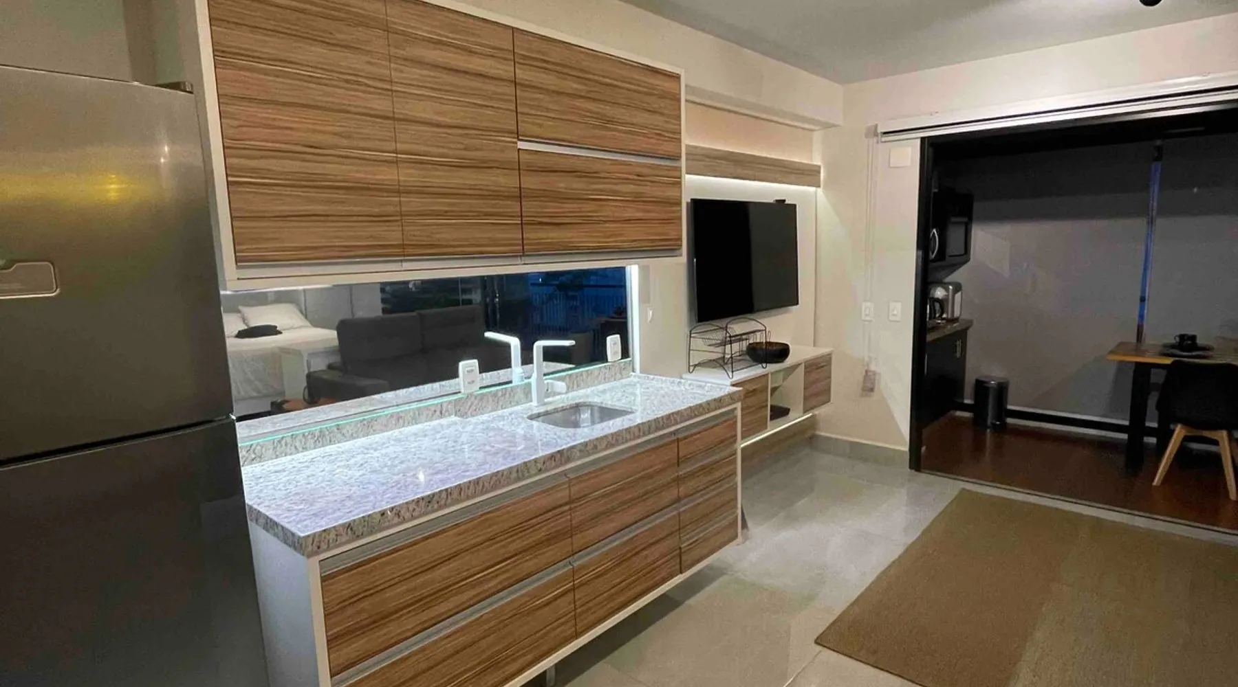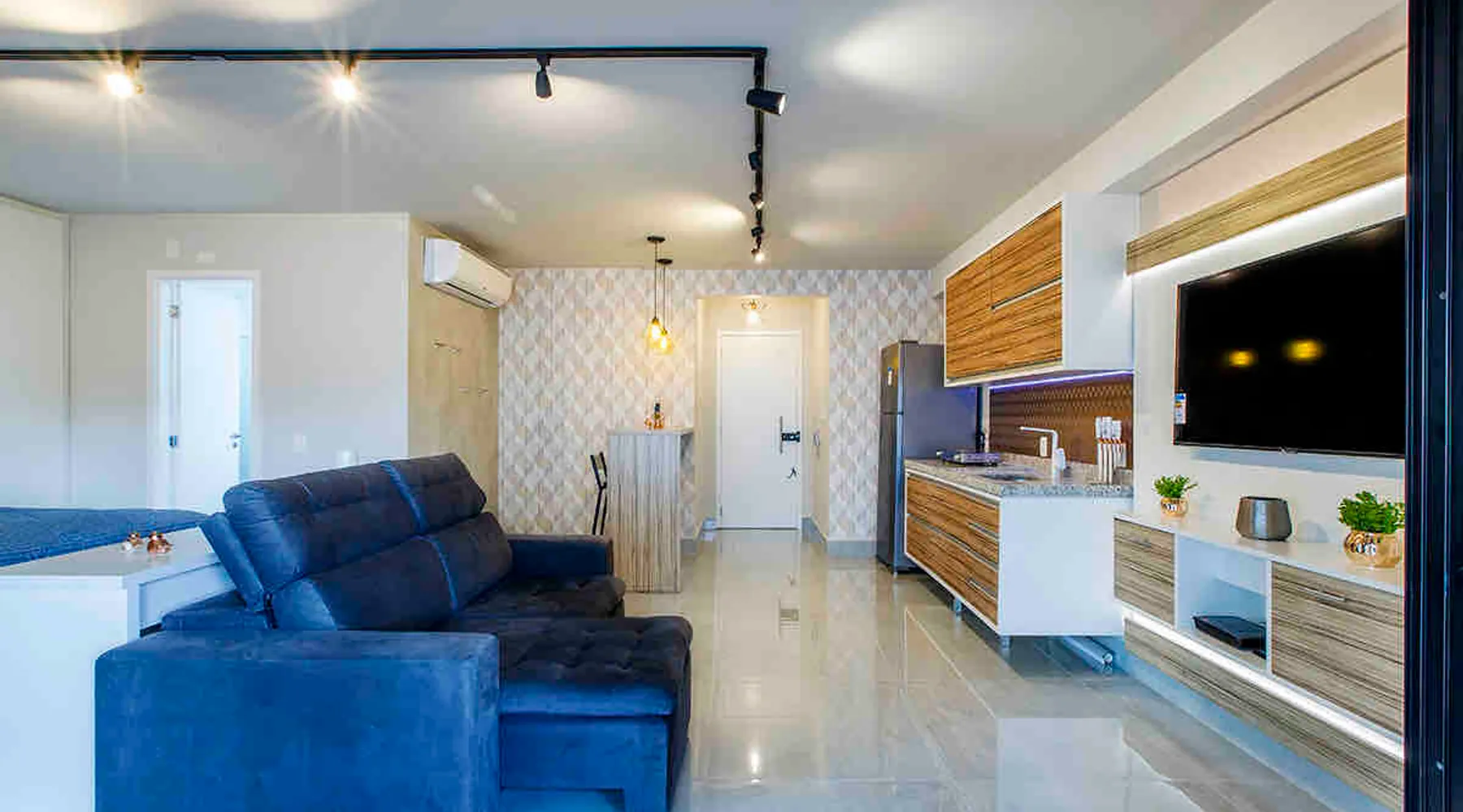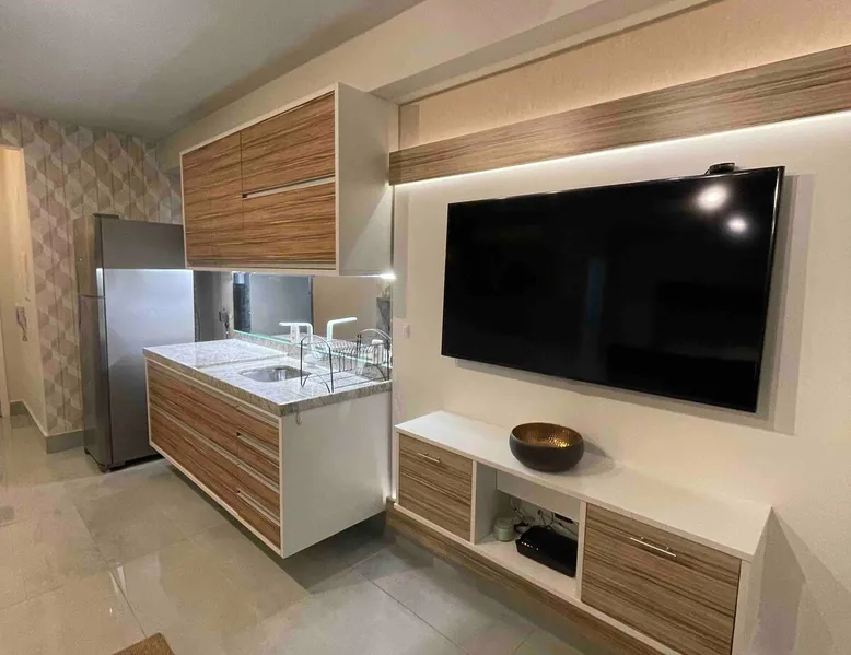 Studio with signed decor, cozy, refined and perfect for enjoying the wonderful center of São Paulo !!! The space All integrated environment with fully equipped kitchen, as all necessary utensils of high quality; Living room with decorative LEDS in the rack, you will be able to enjoy a sofa bed, a 52”Smart TV, Wifi internet without limit of use and great natural lighting; In the room environment, we have a double bed with mattress of the springs of the very high quality springs!; Air conditioning with high climate control, wardrobe and linens and bath; We have all the necessary items for a great stay ! Studio was completed in February 2020 with all ZERO KM content! Guest access The common area of the building can only be used with rentals from 30 days. Unfortunately for misconduct by some, certain rules were forced into place. Thank you very much for your understanding. Other things to note The building follows the modern and functional line of the apartment: the project is signed by the designer Marcelo Rosembaun, and offers total infrastructure with: - Massage rooms; - Pet Space; - Gastronomic space; - Laundry; - Academy "Design By Runner" with cutting-edge equipment; - Party room; - Heated and outdoor indoor pools with bungalows and zen space; - Dry and wet deck; - 24-hour concierge with armored guardhouse; We have a wonderful viewpoint on the 29th floor where we can have a sensational view of the city. It's worth checking out ! Don't waste any more time! Your best option is here !!!