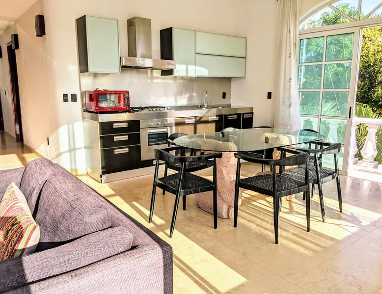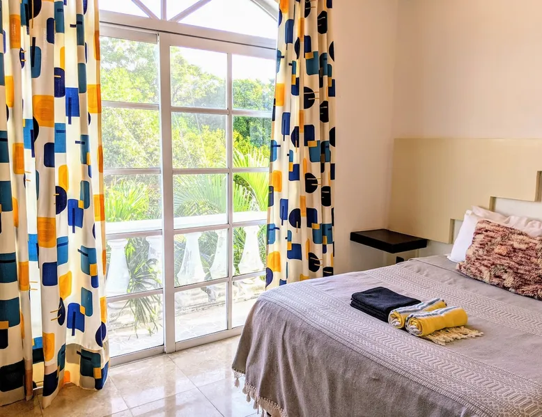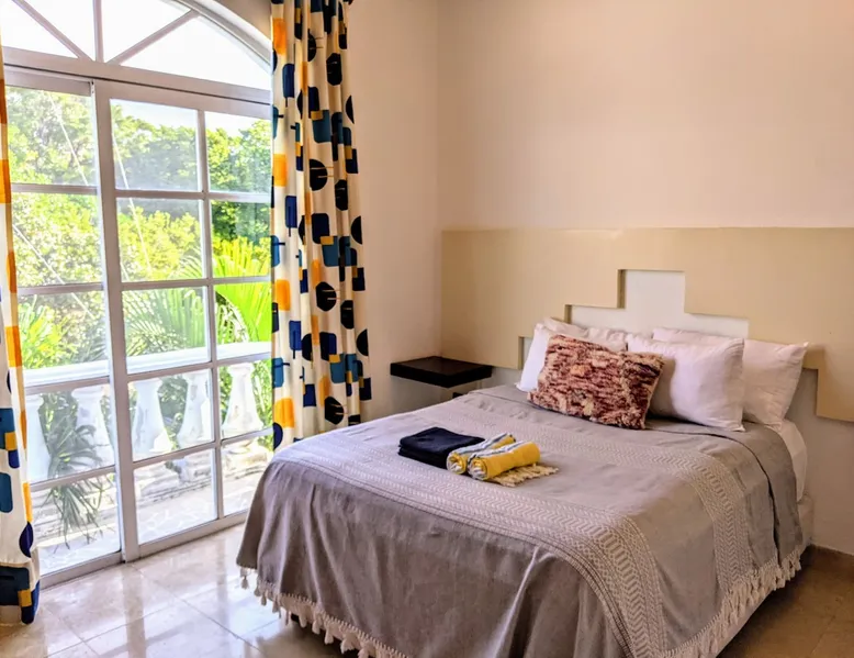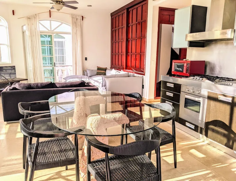Your penthouse in Playa—3BR, 2BA, 1000 Mbps Wi-Fi, and space for up to 9 guests. Just a 1-min walk to the beach & 5th Ave. Enjoy an open-plan layout, long front balcony, Smart TV, and fully equipped kitchen. Bedrooms are quiet for restful sleep. The building is older, but the location can’t be beat—steps to shops, cafés & great dining. Want a chef, massage, mezcal tasting or airport pickup? Message us—Kim handles bookings, and Danny & Judy offer trusted local referrals. The space ✨ Why Guests Book This Penthouse: • 🏖️ 1-minute walk to 5th Avenue & the beach • 🌐 1000 Mbps Wi-Fi — perfect for remote work • 🛏️ Sleeps up to 9 guests (2 on air-mattress) 6 is more comfortable. • 🌿 Extra-wide balcony with leafy street views • 🍳 Fully equipped kitchen for cooking at home • 💤 Quiet bedrooms with blackout curtains • 🧼 Smooth check-in, responsive local team 📍 The Space This bright and breezy 3BR, 2BA penthouse is up 3 flights of stairs. (No elevator). Set on a tree-lined block just off 5th Ave, it's ideal for groups who want walkability to Playa’s best restaurants, beach clubs, and shops—but want to sleep peacefully at night. Inside, you’ll find comfy beds, quality linens, a front balcony for people-watching, fast Wi-Fi, and a smart TV in the living room. The building is older, but the apartment has been thoughtfully updated to ensure comfort and function. 🛌 Sleeping arrangements: • BR1 – King bed • BR2 – Queen bed • BR3 – Queen bed • Living room – Sofa for 1 and just ask for an air mattress if needed. 👨🍳 Kitchen Fully equipped with stove, microwave, coffee maker, blender, cookware, and plenty of dishware for your group. 🧘 Vibe It’s not a luxury hotel—it’s your laid-back, real-deal Mexican beach apartment with everything you need to settle in and enjoy Playa. 🙋♀️ Need something? We don’t offer services directly, but we’re happy to connect you with trusted locals for things like: • Private chef dinners • In-home massage • Mezcal tastings • Airport transfers 💬 Message us—Kim handles reservations, while Danny & Judy are on the ground if you need help during your stay. Guest access Guests at the Los Castillos penthouse can enjoy a range of accessible amenities designed to enhance their stay. The ground floor hosts a refreshing pool located at the front of the lot, offering a perfect spot for leisurely swims or lounging under the sun. Additionally, the rooftop area presents a breathtaking setting with stunning ocean views, inviting guests to unwind and soak in the beauty of their surroundings. Whether you're looking to cool off with a dip in the pool or relax while gazing at the horizon, these accessible features ensure a memorable and enjoyable experience for all. Other things to note Please note that we do not provide groceries, drinking water, or other beverages—only basic cooking essentials such as oil, salt, and pepper. We recommend planning a grocery trip to Chedraui shortly after your arrival. It’s just a 2-minute cab ride, and taxis are typically waiting outside for your return. We do provide hand soap, dish soap, sponges, and towels, as well as shampoo in the showers. Each guest will also have a beach towel and a bath towel. This is the penthouse unit, located up three flights of stairs—there is no elevator. To access the front door, you’ll walk through a narrow path next to the pool. Please use extra caution, especially if the area is wet. Los Castillos Villas offer a unique and comfortable vacation experience in a prime location in Playa del Carmen. Built in 1989 and renovated in 2000, they may not have the latest modern amenities, but they can accommodate large groups of up to 50 guests. While this is an older property, our team works hard to keep the villas clean and well-maintained. Due to the humidity, sun, and salty air in Playa del Carmen, older homes like these may require occasional maintenance. If any issues arise during your stay, our on-site team, led by Danny, will address them promptly. If you are seeking a newer property, we have other listings available. However, if you appreciate the charm and character of an older home, Los Castillos Villas may be the perfect fit for your group. Please also note: We are connected to Airbnb through API software, which makes us responsible for any damages to the property. As a result, a security deposit is required. You’ll have the option to choose between a **fully refundable \$500 USD deposit** or a **non-refundable \$29 USD damage waiver fee**, processed outside the Airbnb platform. This will appear just below your total at checkout.