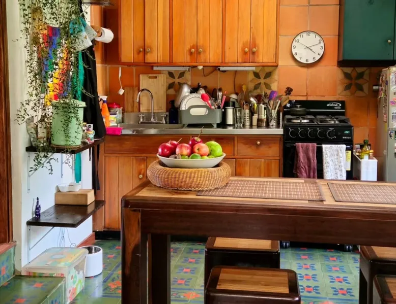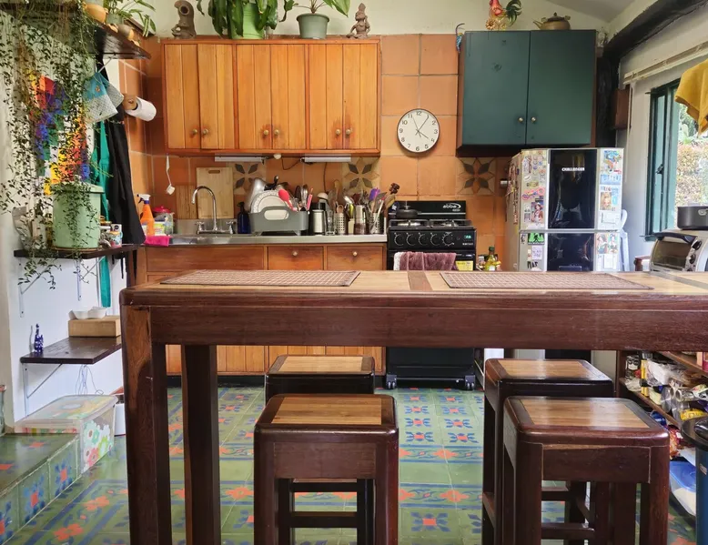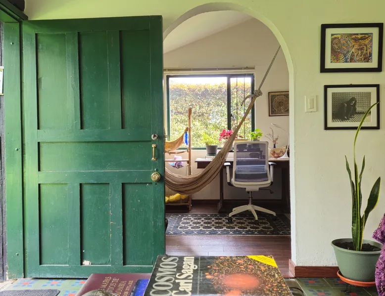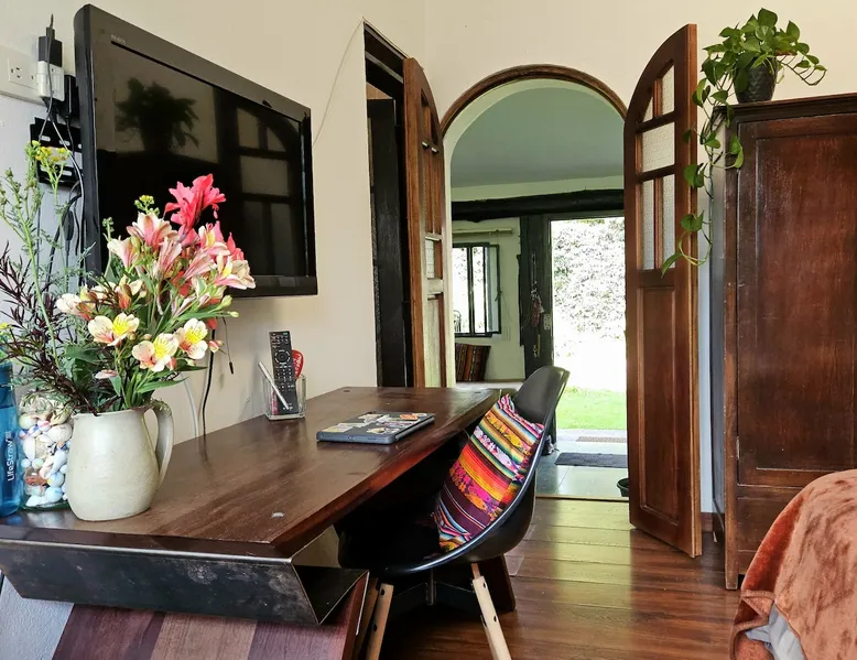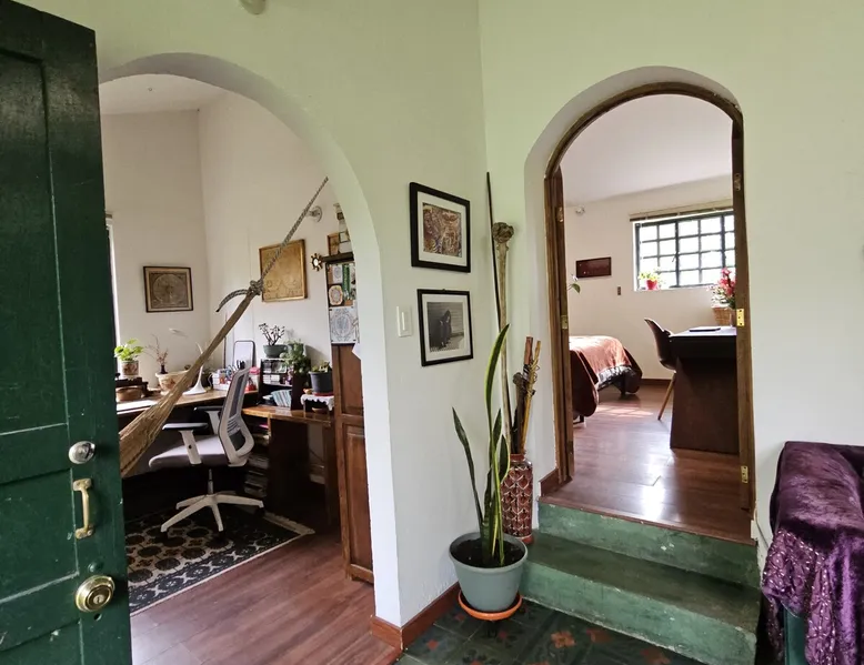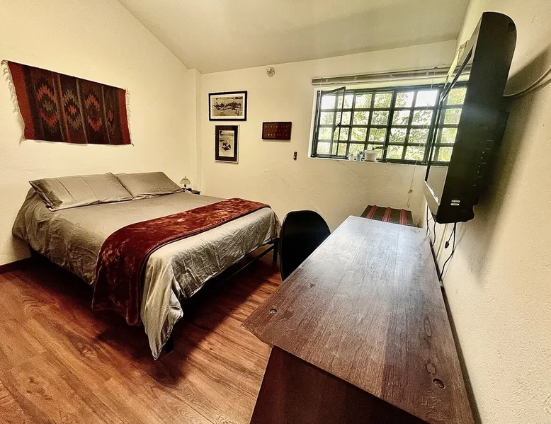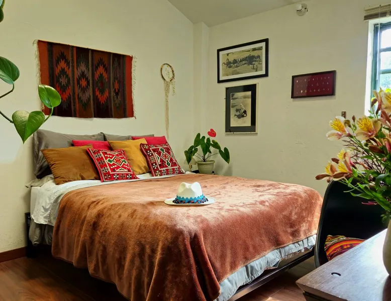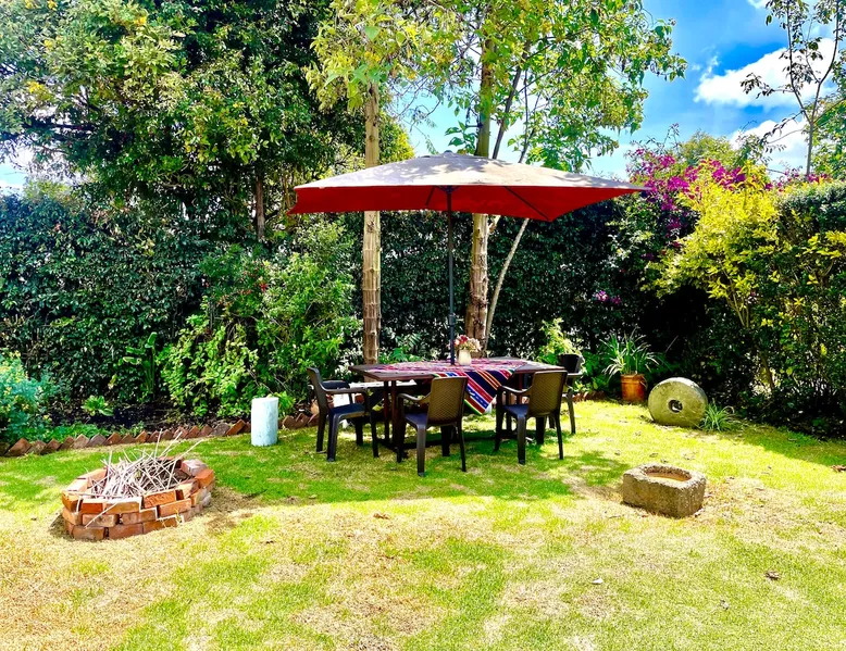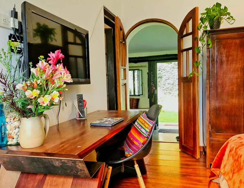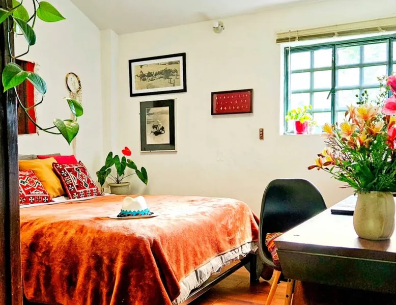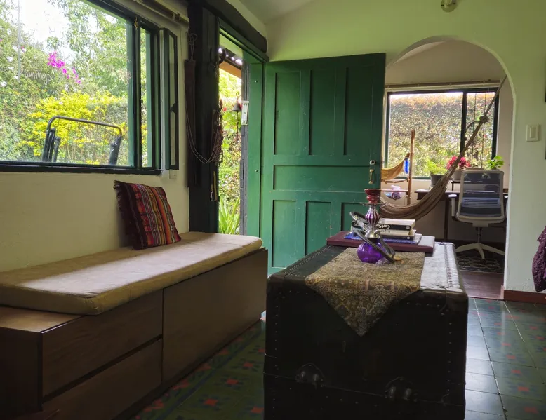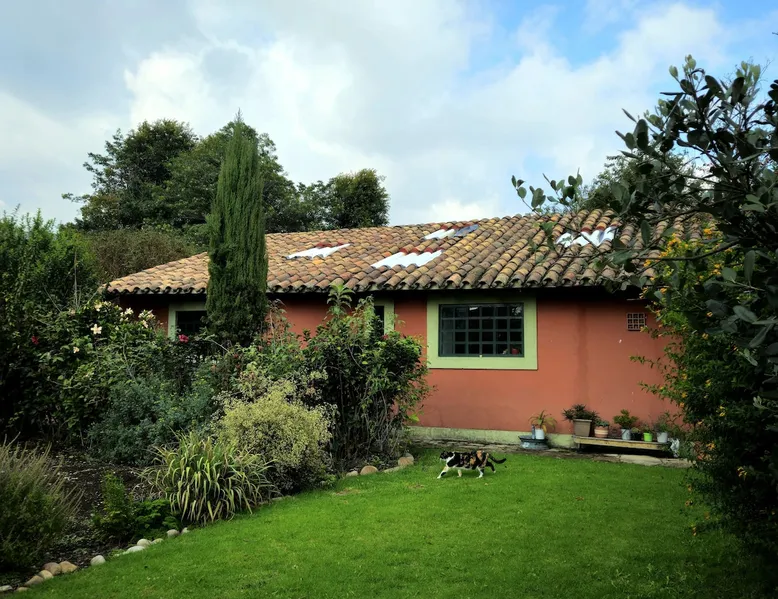 My house is near Bogotá, in the tranquil municipality of Cota, Cundinamarca. Surrounded by gardens and orchards, it offers an outdoor dining area, a grill, and a bonfire space—perfect for a peaceful retreat, remote work, or attending events nearby. The house has two bedrooms, each with a private bathroom (one is mine), a fully equipped kitchen with a bar, a cozy living room, and a study. Shared outdoor spaces provide ample room to relax and connect with nature. The space My house is peaceful and cozy. I usually stay at home teleworking, except on office days. The guest will have a private room with its own bathroom and access to the rest of the house, as well as the shared green areas of the property. These spaces are perfect for outdoor work, sports, and recreational activities. The room is equipped with a bathroom, wardrobe, TV, desk, and chair. Guest access The property has two houses. The guest will share all the green areas and common spaces with me and the neighbors. In my house, the guest will have their own private room and bathroom, as well as access to the rest of the house. During your stay I am at home most of the time, working peacefully in the countryside, surrounded by gardens, orchards, birds, butterflies, and more. I’ll be available to guide the guest on how to get to Bogotá if needed. The municipality also offers many activities, such as medicinal saunas and hiking on Majuy Hill. We are two kilometers from the town, where you’ll find markets, banks, and more. Within walking distance, there are shops and markets. Guests can also enjoy access to the seasonal crops grown on the property. Other things to note There are three cats on the property in total—two belong to my neighbors and one is mine. They are very loving and calm cats. Registration Details 199399