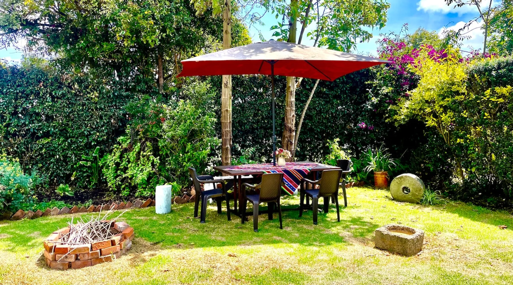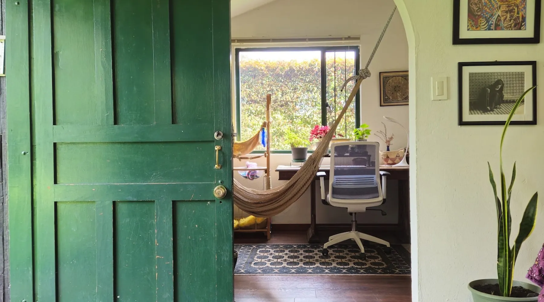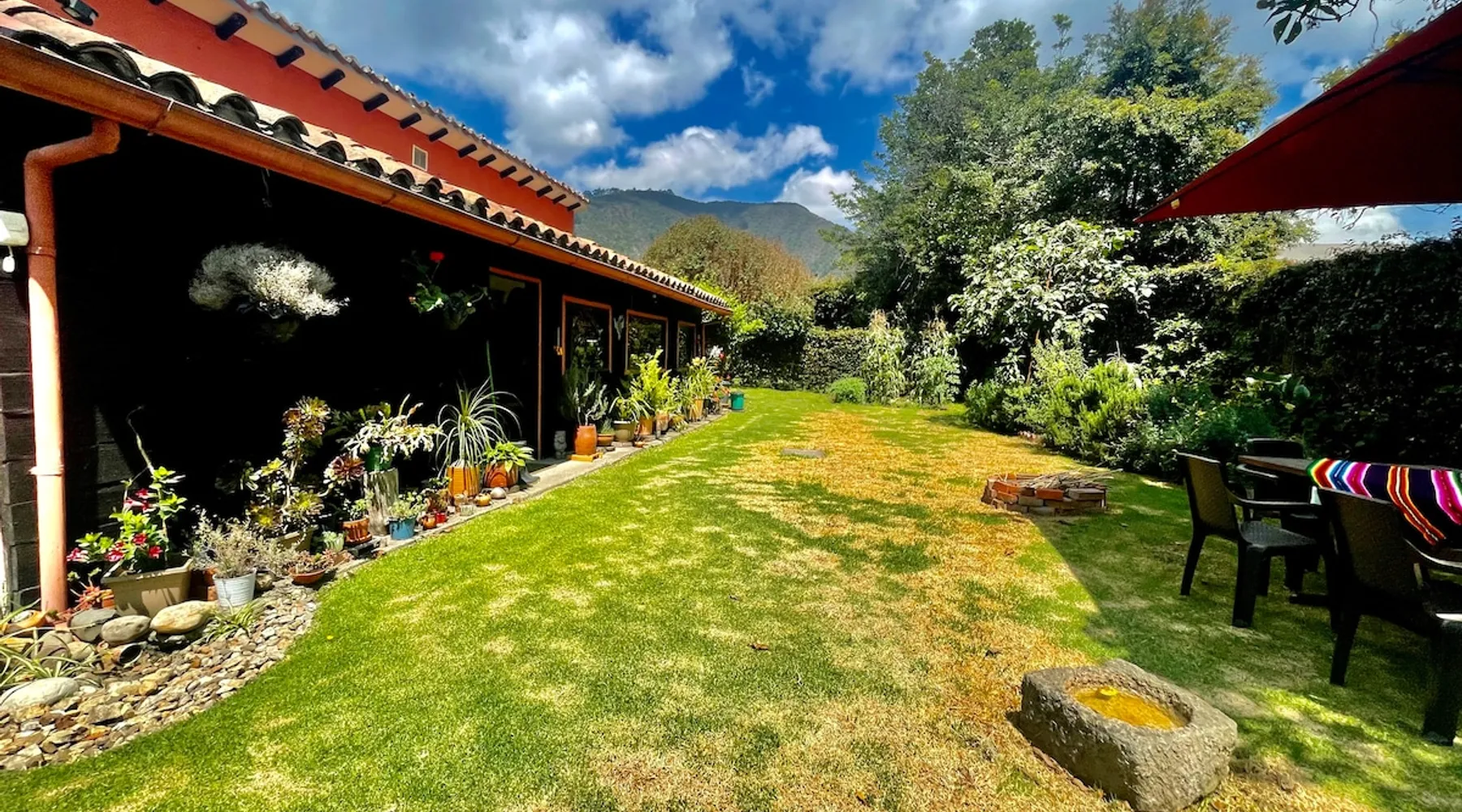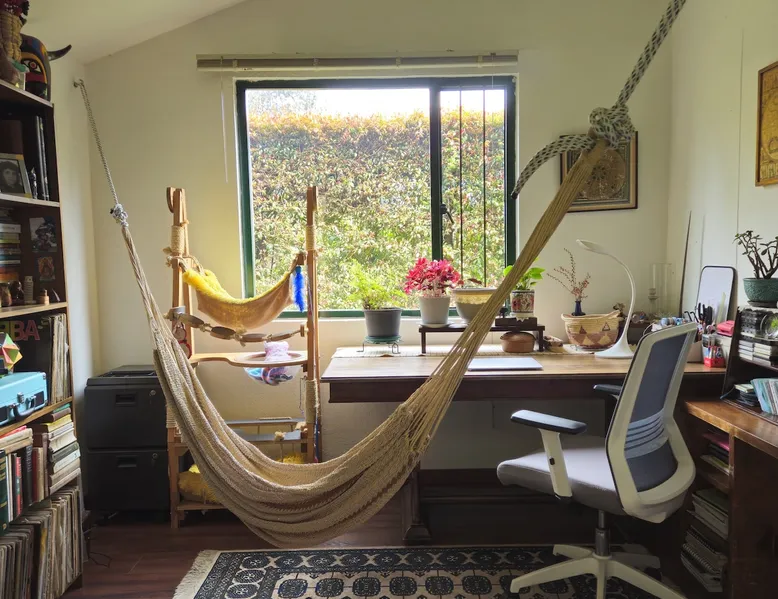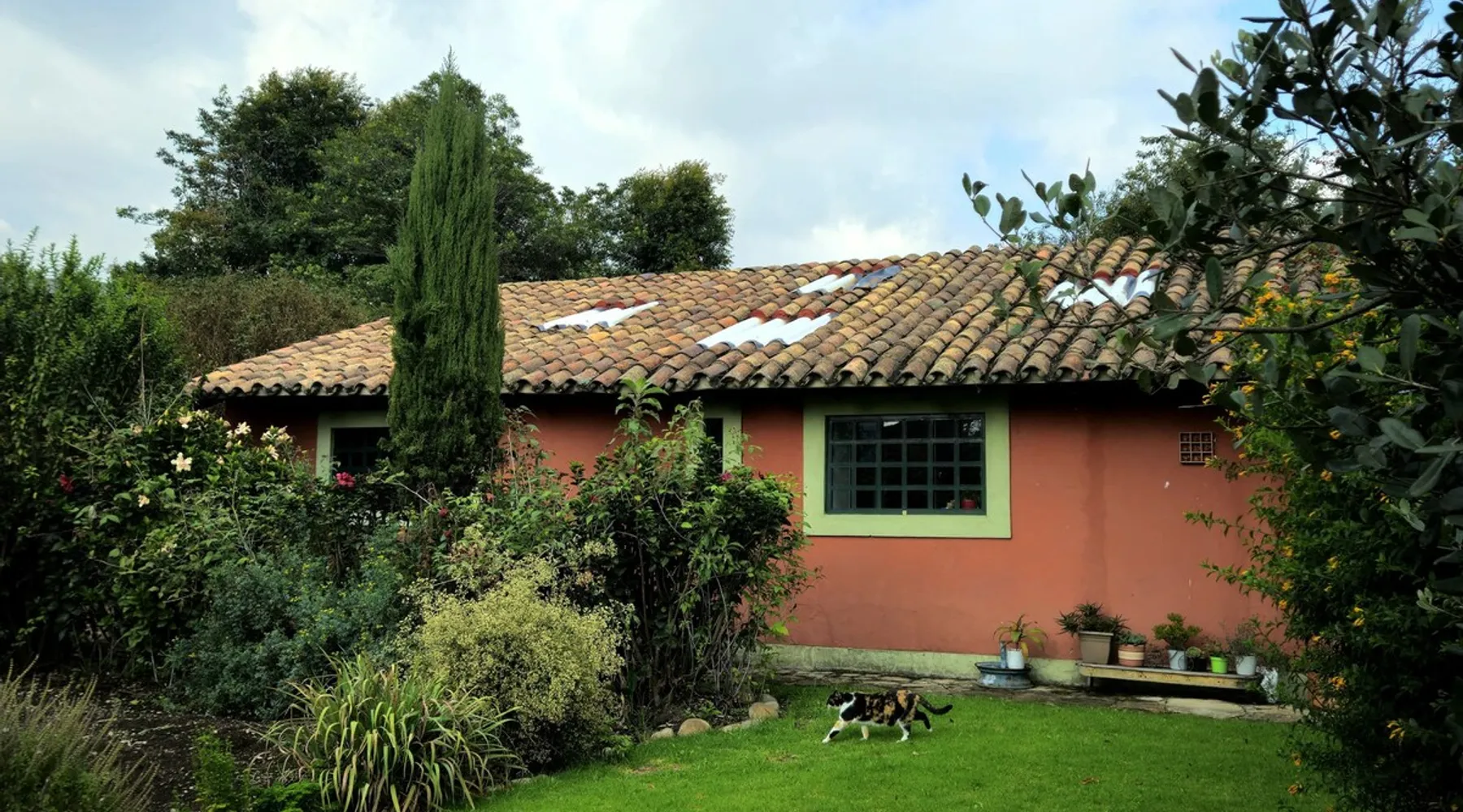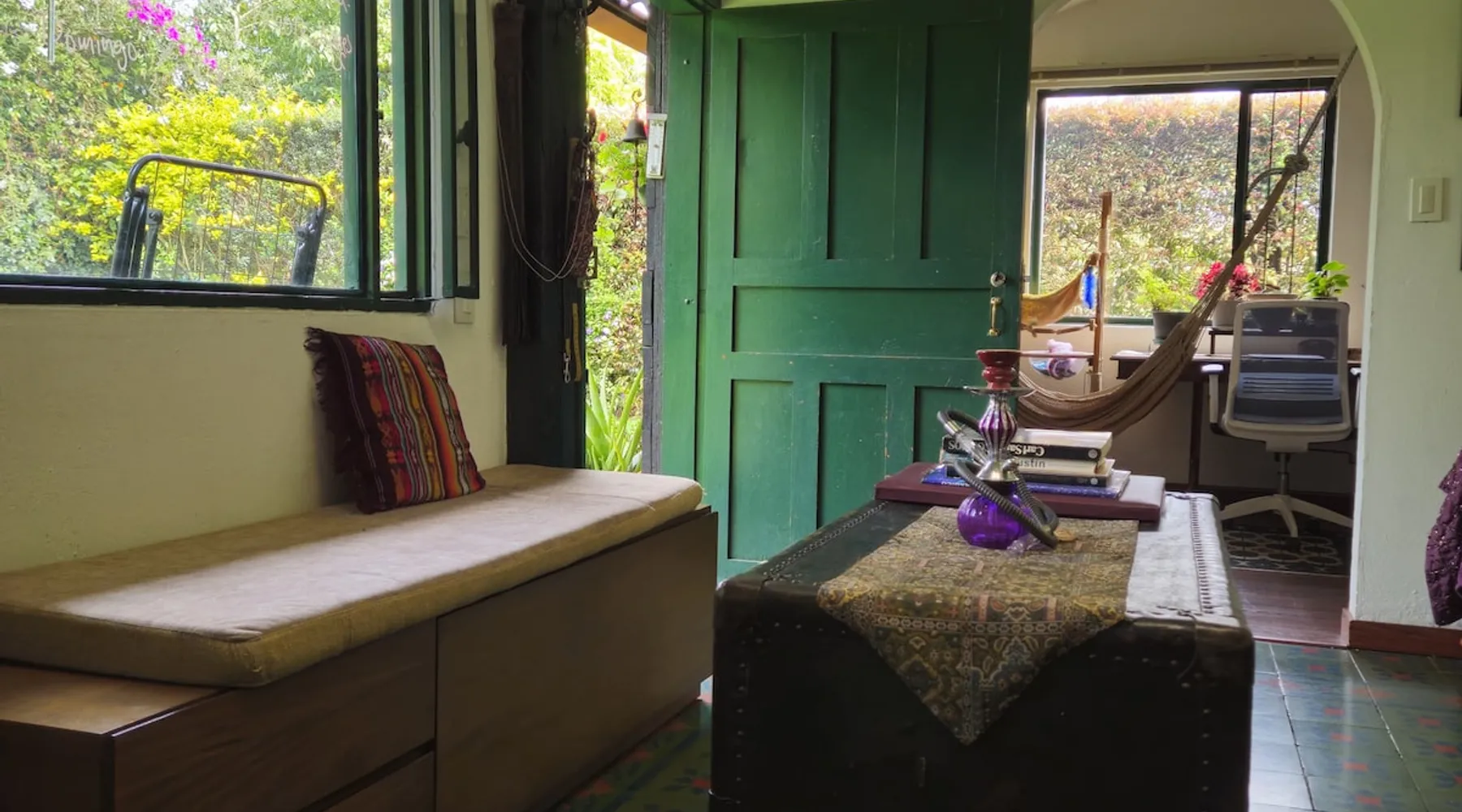 My house is near Bogotá, in the tranquil municipality of Cota, Cundinamarca. Surrounded by gardens and orchards, it offers an outdoor dining area, a grill, and a bonfire space—perfect for a peaceful retreat, remote work, or attending events nearby. The house has two bedrooms, each with a private bathroom (one is mine), a fully equipped kitchen with a bar, a cozy living room, and a study. Shared outdoor spaces provide ample room to relax and connect with nature. The space My house is peaceful and cozy. I usually stay at home teleworking, except on office days. The guest will have a private room with its own bathroom and access to the rest of the house, as well as the shared green areas of the property. These spaces are perfect for outdoor work, sports, and recreational activities. The room is equipped with a bathroom, wardrobe, TV, desk, and chair. Guest access The property has two houses. The guest will share all the green areas and common spaces with me and the neighbors. In my house, the guest will have their own private room and bathroom, as well as access to the rest of the house. During your stay I am at home most of the time, working peacefully in the countryside, surrounded by gardens, orchards, birds, butterflies, and more. I’ll be available to guide the guest on how to get to Bogotá if needed. The municipality also offers many activities, such as medicinal saunas and hiking on Majuy Hill. We are two kilometers from the town, where you’ll find markets, banks, and more. Within walking distance, there are shops and markets. Guests can also enjoy access to the seasonal crops grown on the property. Other things to note There are three cats on the property in total—two belong to my neighbors and one is mine. They are very loving and calm cats. Registration Details 199399