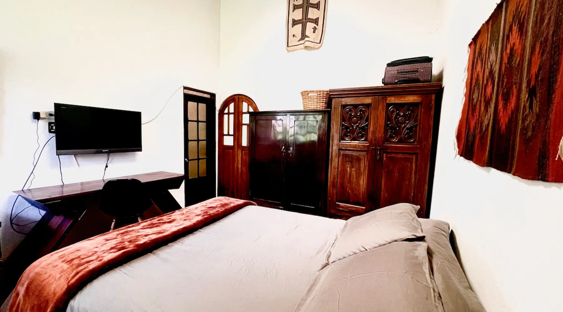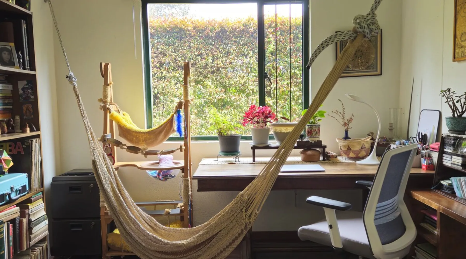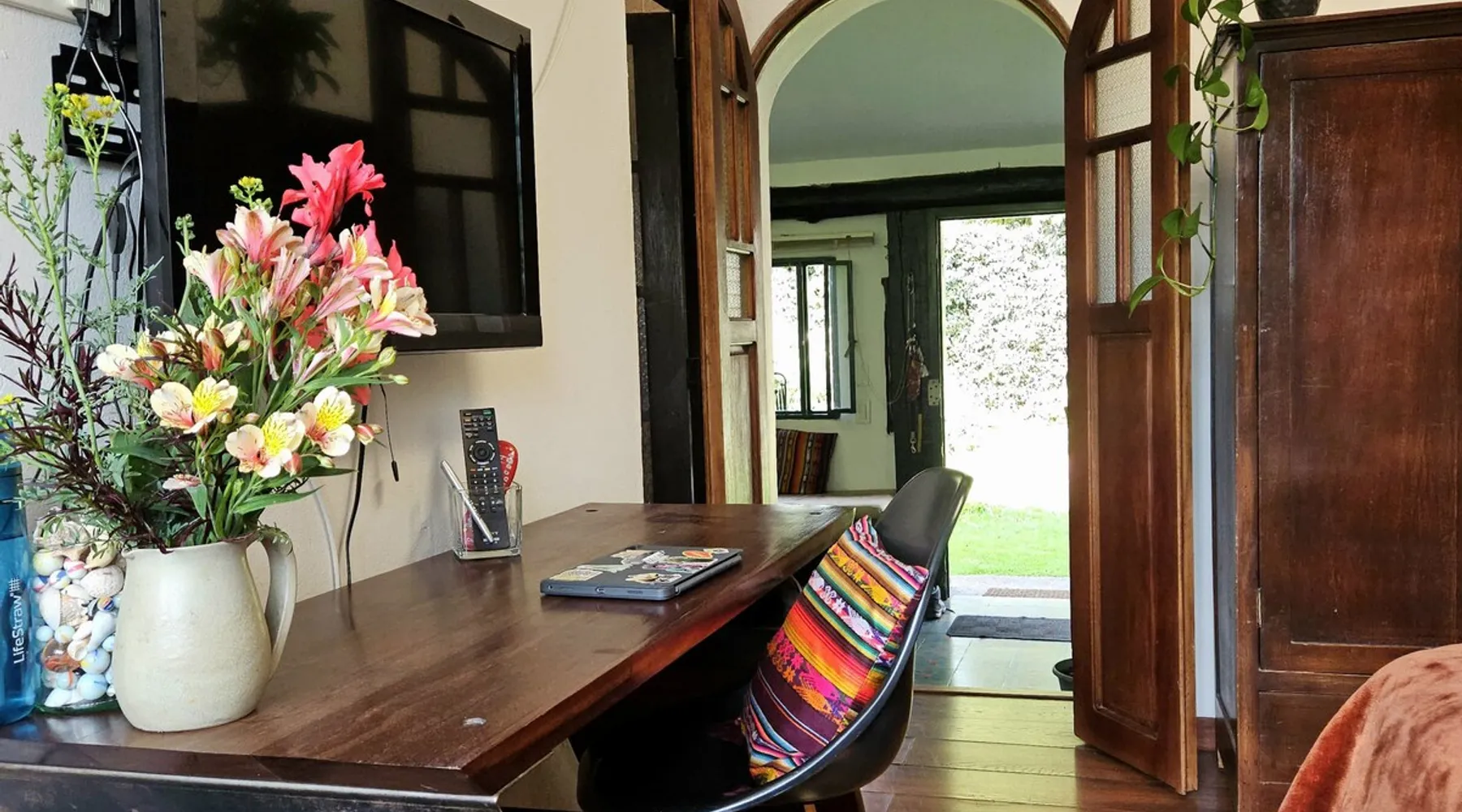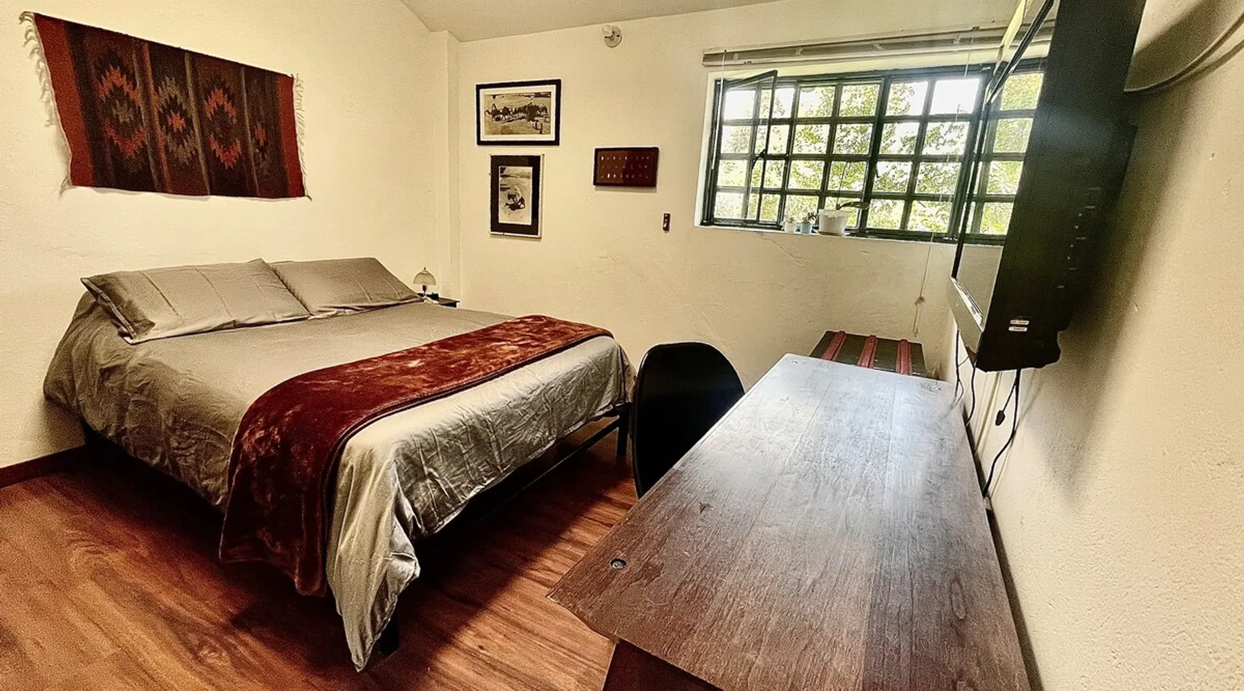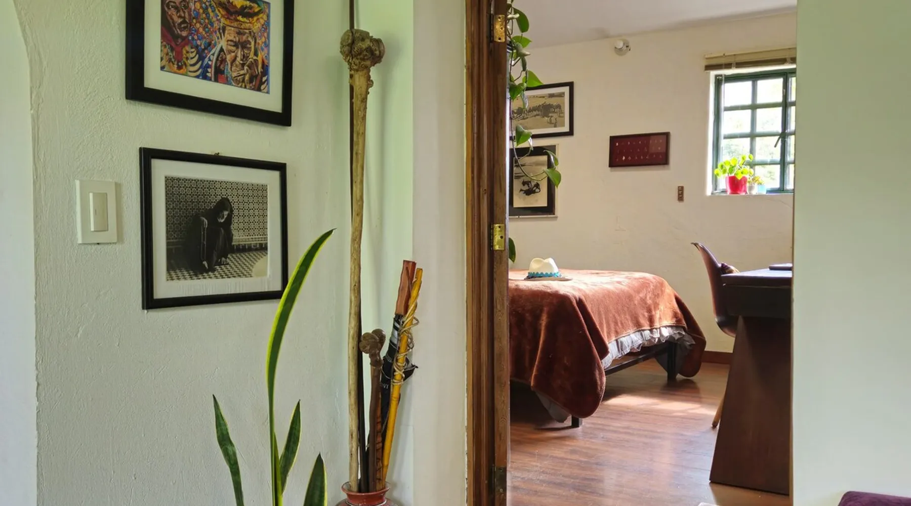 My house is near Bogotá, in the tranquil municipality of Cota, Cundinamarca. Surrounded by gardens and orchards, it offers an outdoor dining area, a grill, and a bonfire space—perfect for a peaceful retreat, remote work, or attending events nearby. The house has two bedrooms, each with a private bathroom (one is mine), a fully equipped kitchen with a bar, a cozy living room, and a study. Shared outdoor spaces provide ample room to relax and connect with nature. The space My house is peaceful and cozy. I usually stay at home teleworking, except on office days. The guest will have a private room with its own bathroom and access to the rest of the house, as well as the shared green areas of the property. These spaces are perfect for outdoor work, sports, and recreational activities. The room is equipped with a bathroom, wardrobe, TV, desk, and chair. Guest access The property has two houses. The guest will share all the green areas and common spaces with me and the neighbors. In my house, the guest will have their own private room and bathroom, as well as access to the rest of the house. During your stay I am at home most of the time, working peacefully in the countryside, surrounded by gardens, orchards, birds, butterflies, and more. I’ll be available to guide the guest on how to get to Bogotá if needed. The municipality also offers many activities, such as medicinal saunas and hiking on Majuy Hill. We are two kilometers from the town, where you’ll find markets, banks, and more. Within walking distance, there are shops and markets. Guests can also enjoy access to the seasonal crops grown on the property. Other things to note There are three cats on the property in total—two belong to my neighbors and one is mine. They are very loving and calm cats. Registration Details 199399