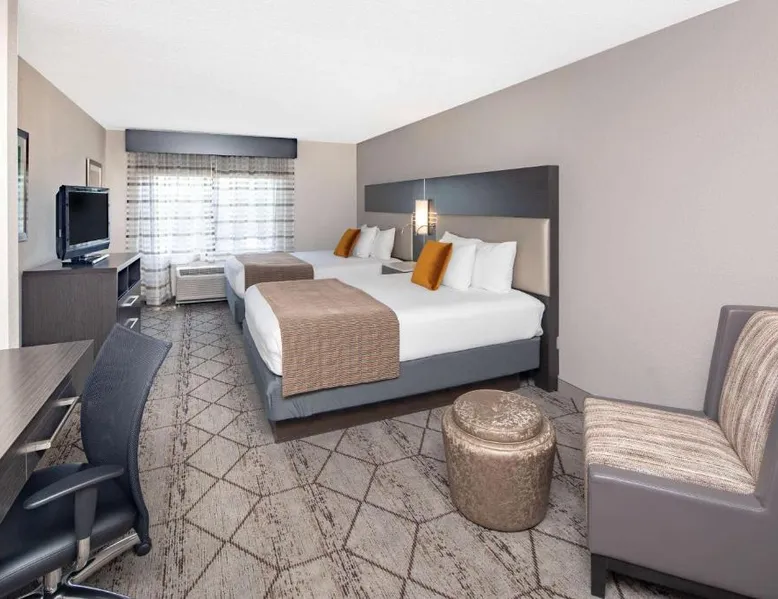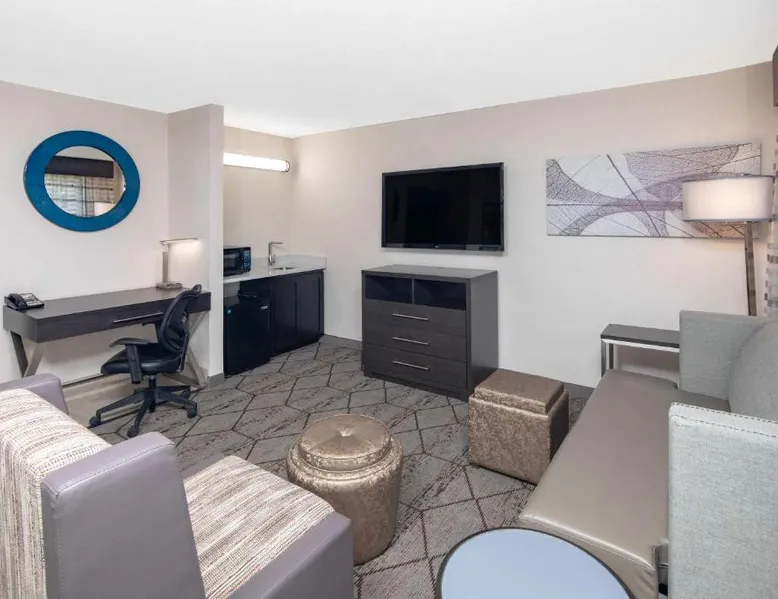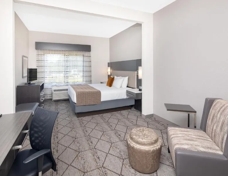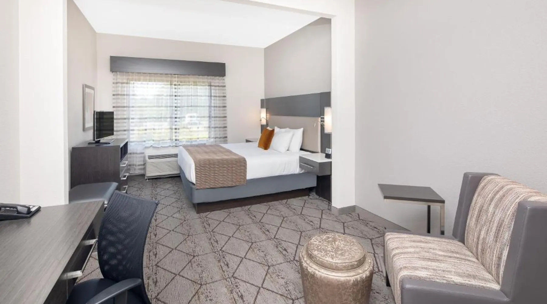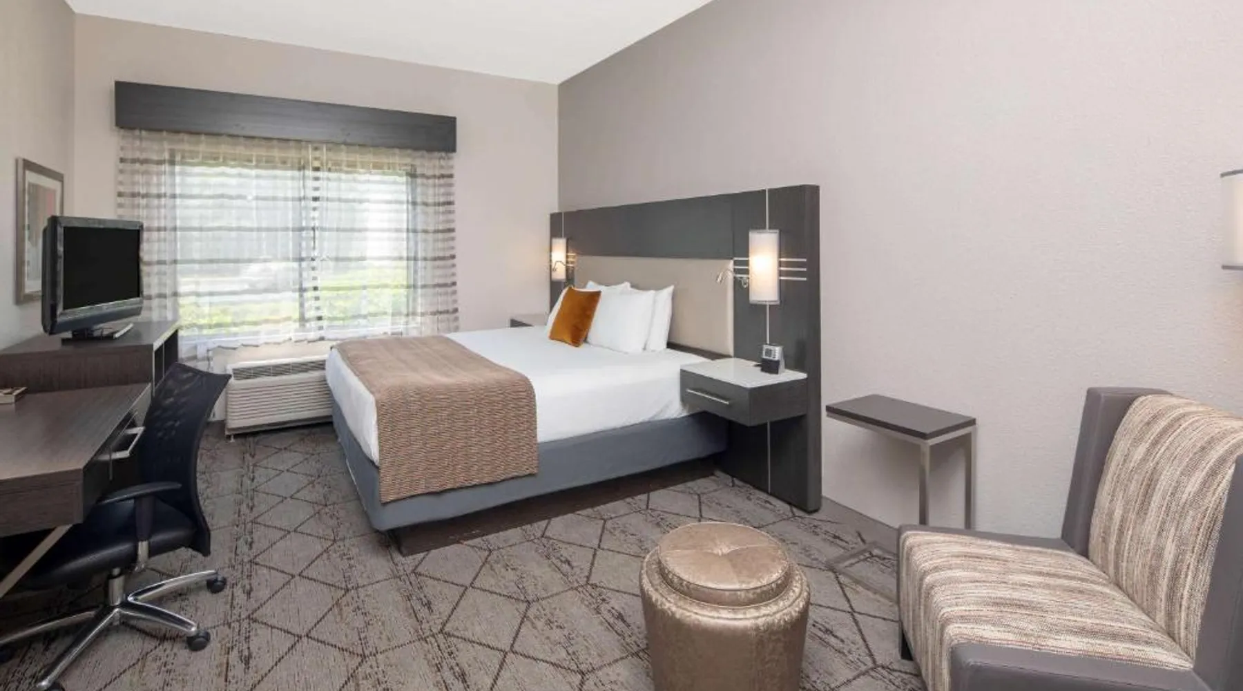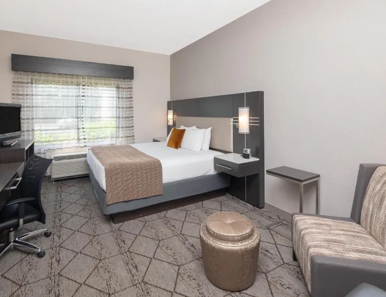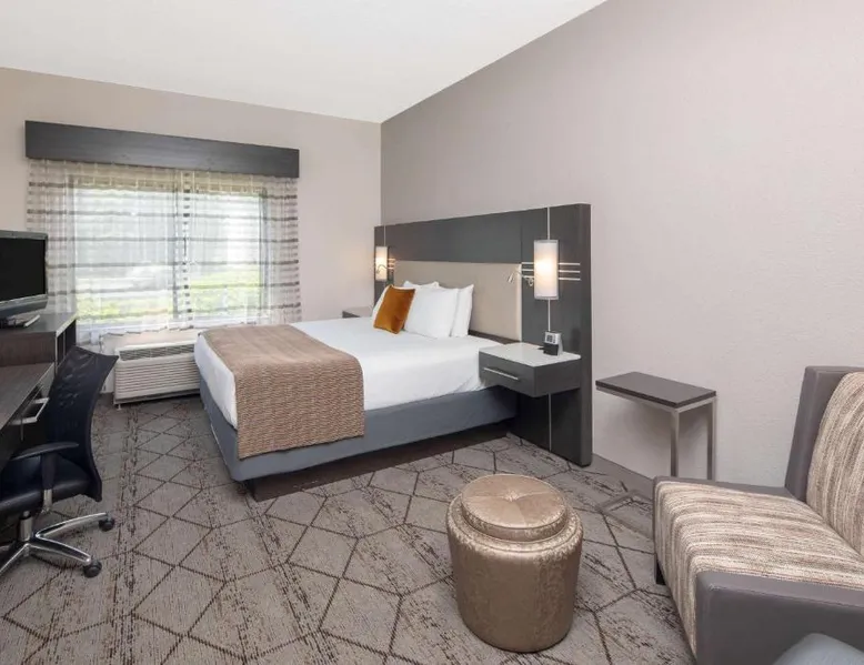 Located 4 miles from Greenville-Spartanburg International Airport, this South Carolina hotel offers airport shuttles with additional charges and a seasonal outdoor pool. Its spacious rooms feature cable TV with HBO and free Wi-Fi. Each room has a microwave, small refrigerator and an ergonomic desk chair. The rooms at Wingate by Wyndham Greenville Airport also provide a desk and safe. During their stay, guests can enjoy a continental breakfast. They can also use the 24-hour business center, which offers copy and print services. Guest laundry and valet dry cleaning services are available for a fee. Airport shuttle available upon request. Downtown Greenville is 8.2 mi away. This room features a cable TV, microwave, and small refrigerator.