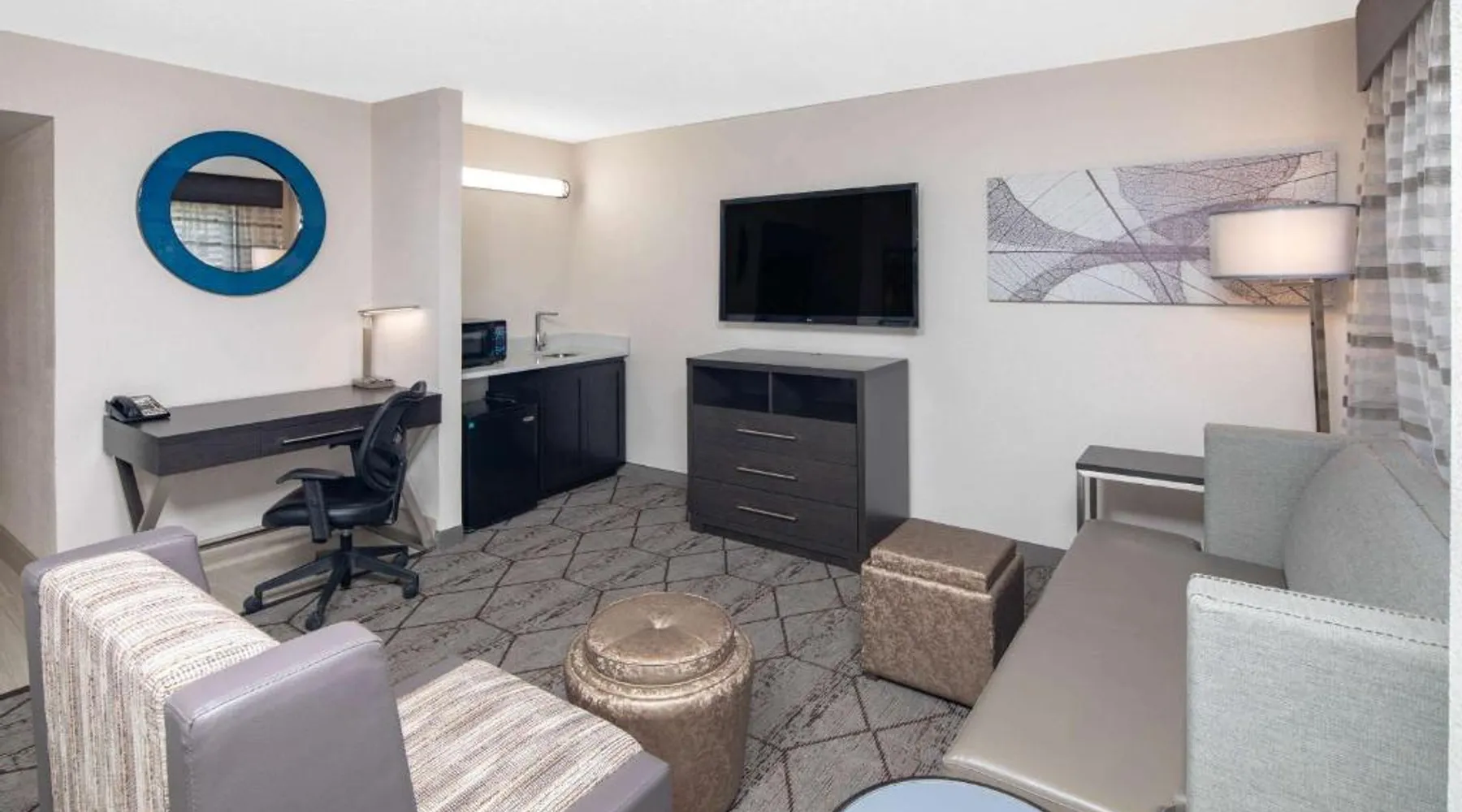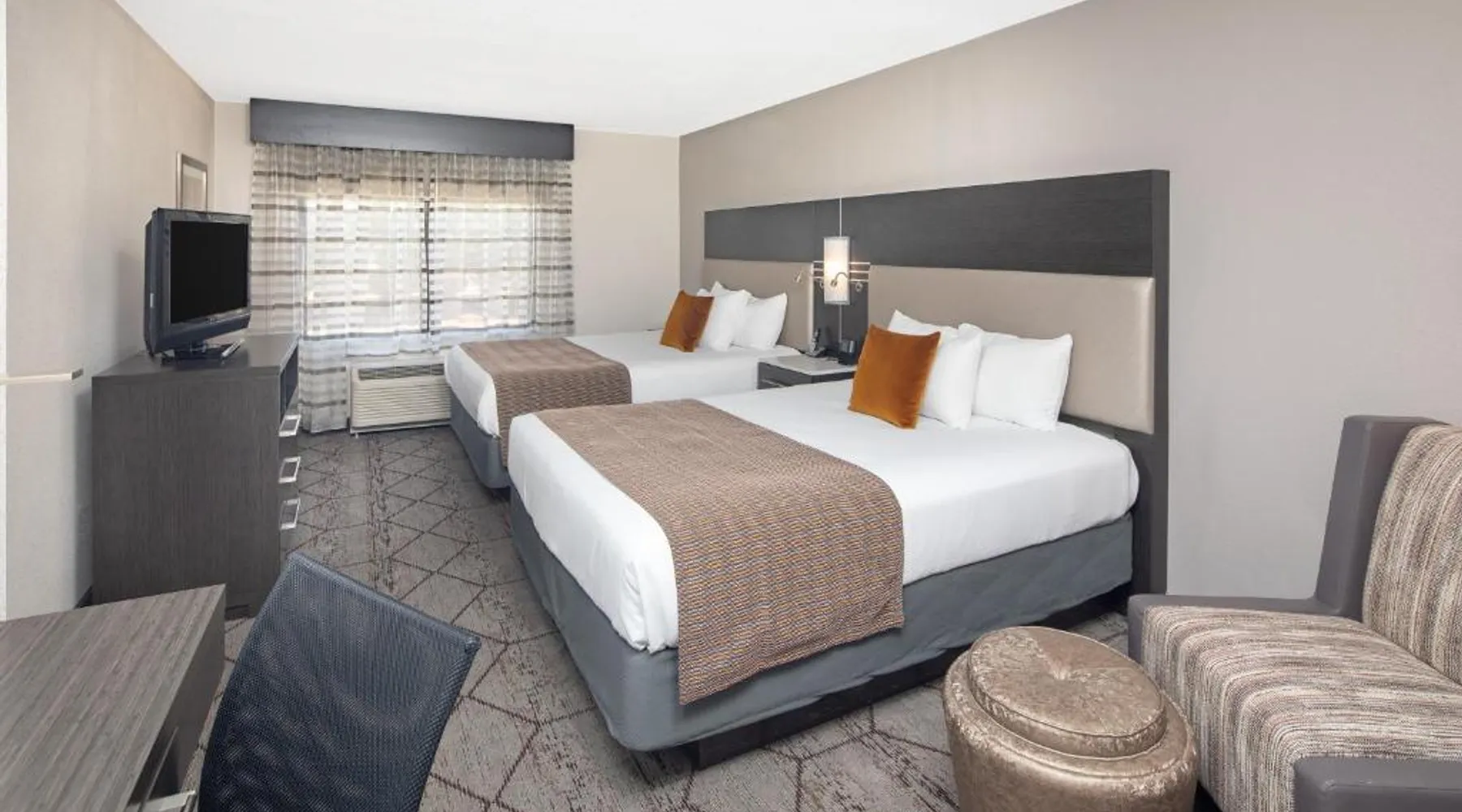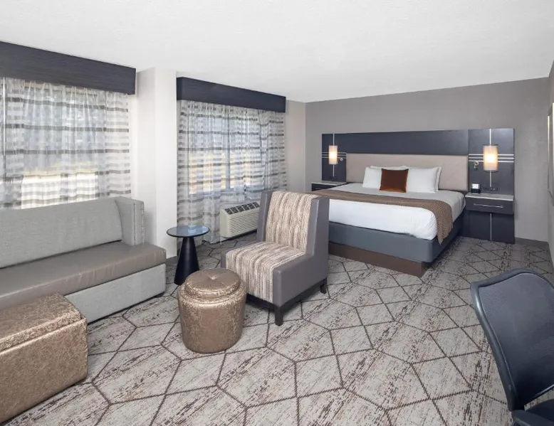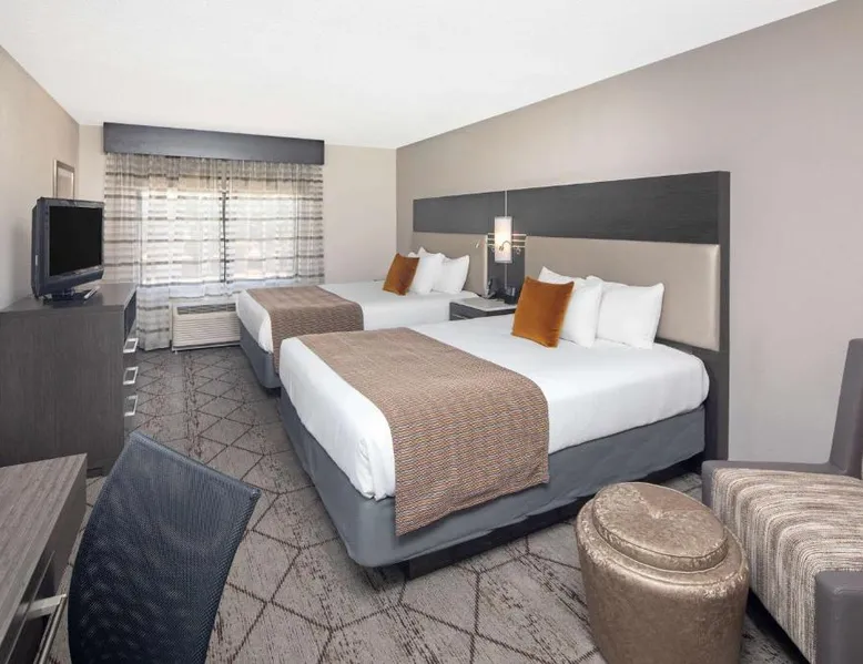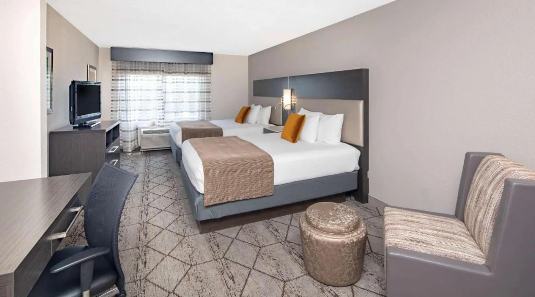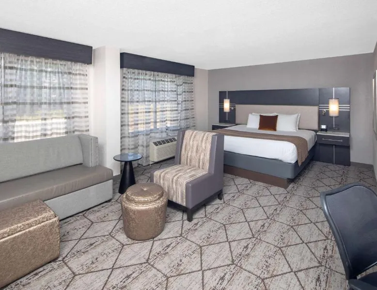 Located 4 miles from Greenville-Spartanburg International Airport, this South Carolina hotel offers airport shuttles with additional charges and a seasonal outdoor pool. Its spacious rooms feature cable TV with HBO and free Wi-Fi. Each room has a microwave, small refrigerator and an ergonomic desk chair. The rooms at Wingate by Wyndham Greenville Airport also provide a desk and safe. During their stay, guests can enjoy a continental breakfast. They can also use the 24-hour business center, which offers copy and print services. Guest laundry and valet dry cleaning services are available for a fee. Airport shuttle available upon request. Downtown Greenville is 8.2 mi away. This room features a cable TV, microwave, and small refrigerator.