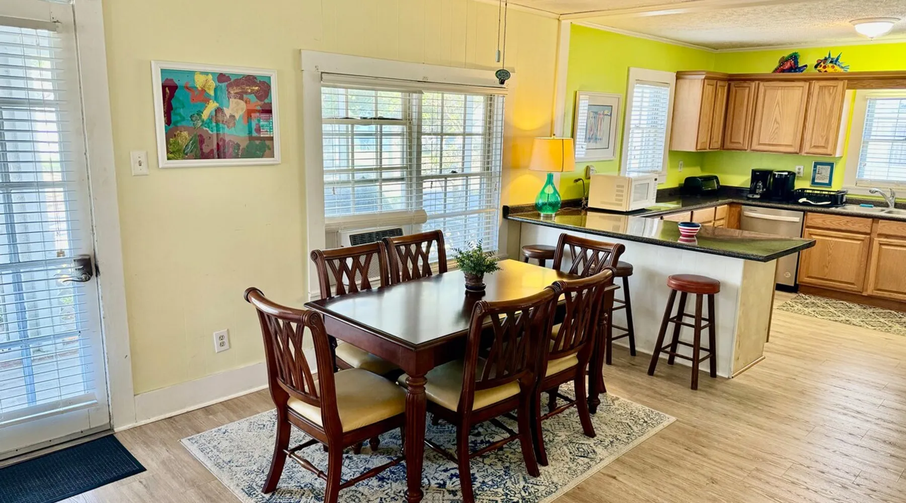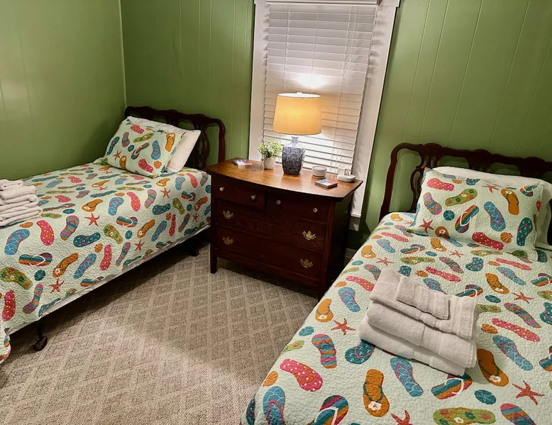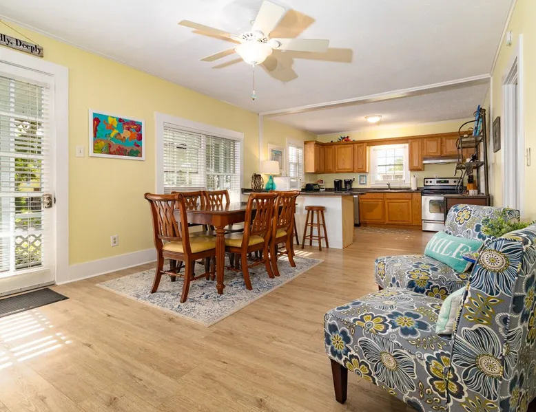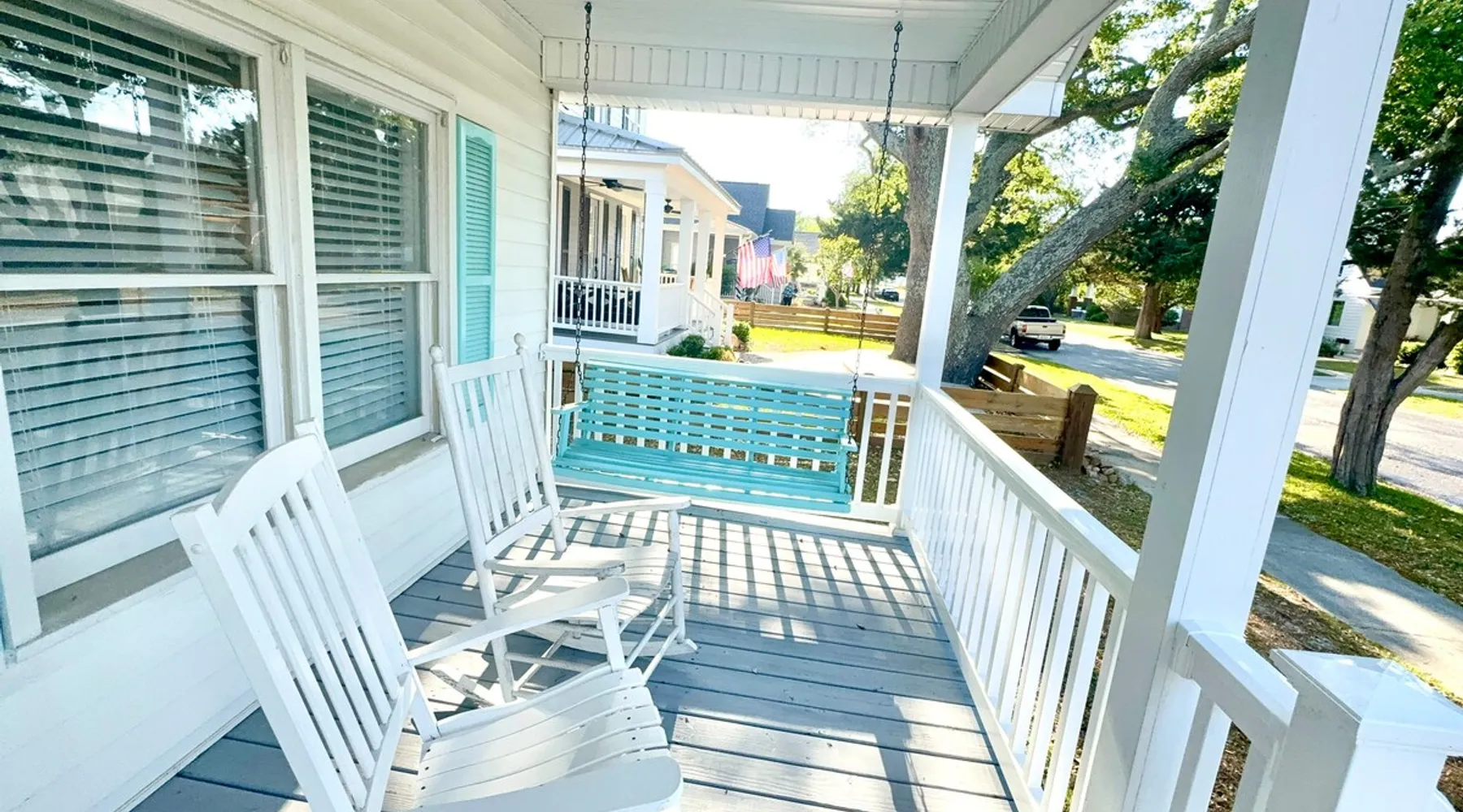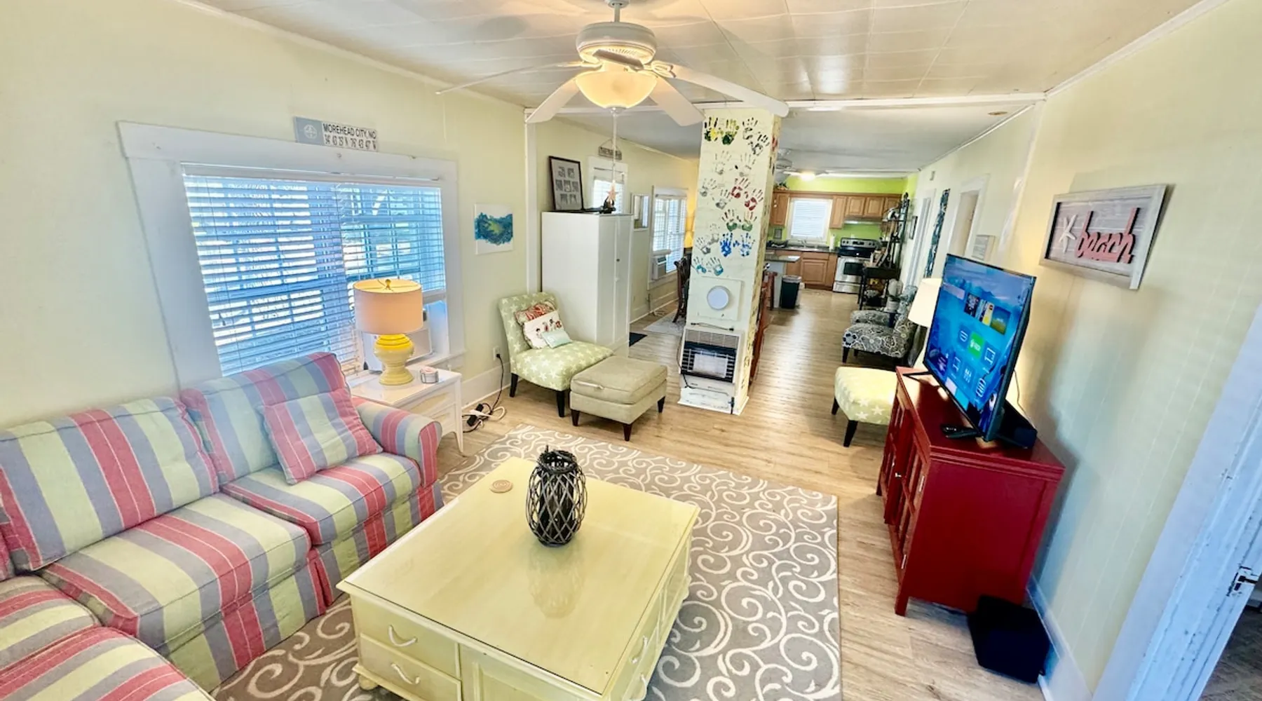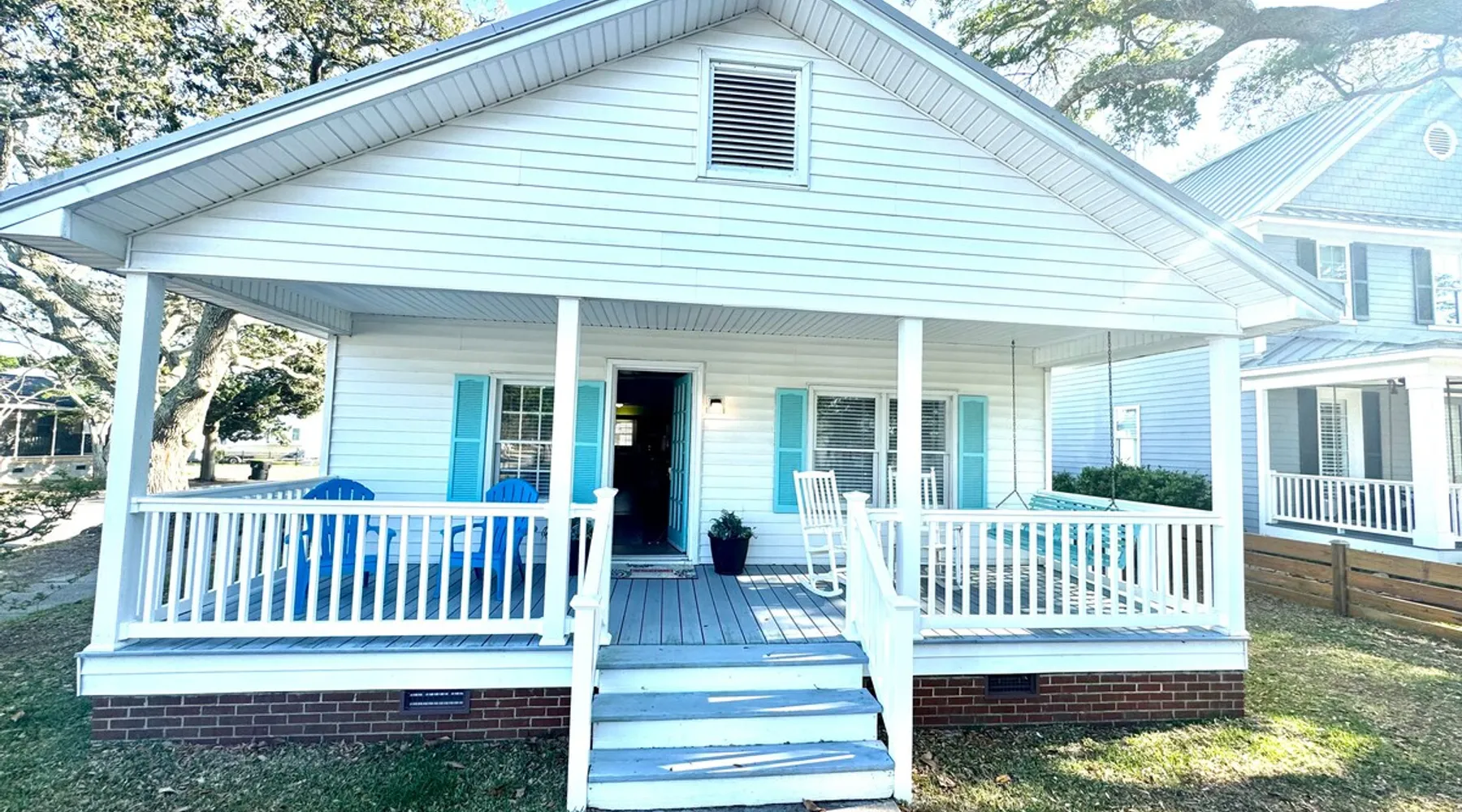 We are centrally located in the Historical Downtown Morehead District within walking distance of Big Rock and the restaurants and bars downtown. We are also 2 blocks away from the Intracoastal Waterway and you can see the water from our screened in side patio. Our street is a charming historical street that is highly sought after by regular visitors of Morehead City. We are a block away from Shevans Park which is a great place for kids to play. Lots of sidewalks for walks & bikes The space We had a newly installed central HVAC installed in December of 2024. This home is near and dear to our family. It has been in the family for generations and we named it "Our Happy Place" for the joy and happiness that it ha brought our family over the years. We know that you will love it too and build your own special family memories here. Our home is 3 bedrooms and 1 bath. The front door leads to the living room which you pass through to get to the dining area and then the kitchen followed by the laundry area and full bathroom. Off of the main area are the bedrooms. Next to the dining area is access to our screened in side patio with views of the waterway as well as our grill. Guest access Coded door knobs allow access to Our Happy Place. There are steps to get up to any of our doors but after the initial steps our house is all one level.