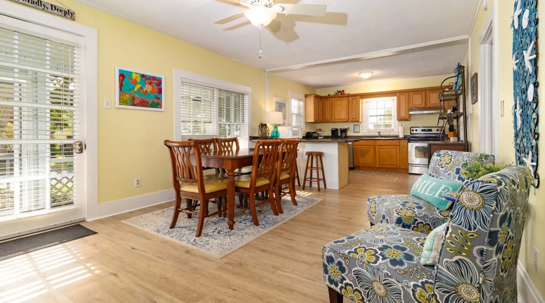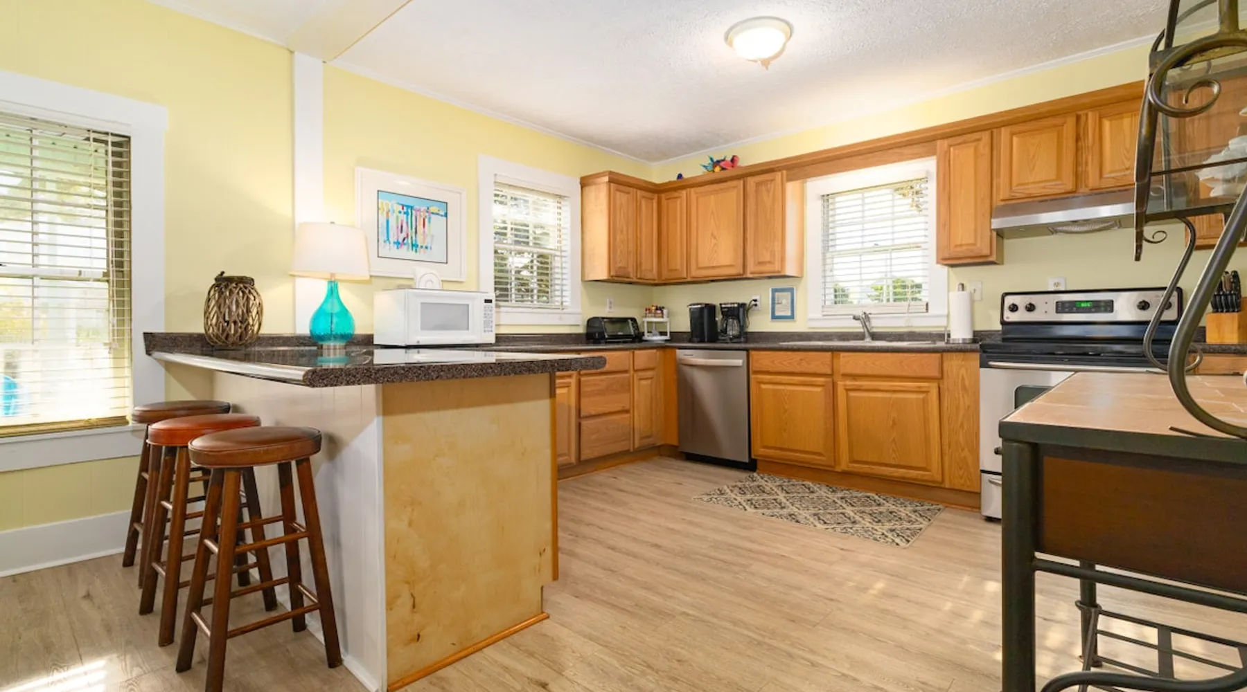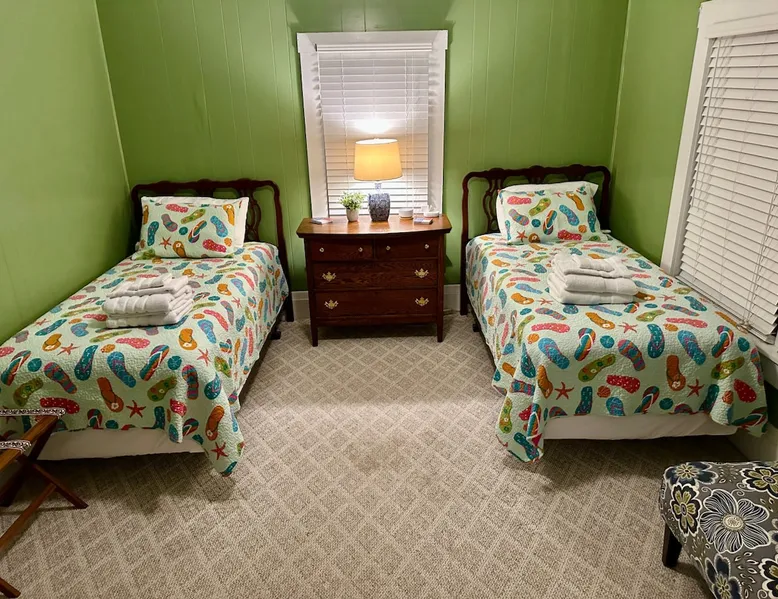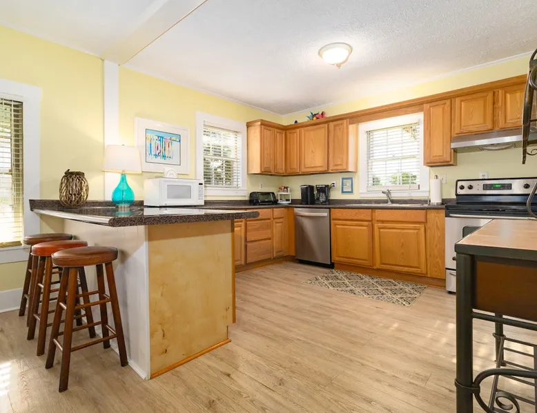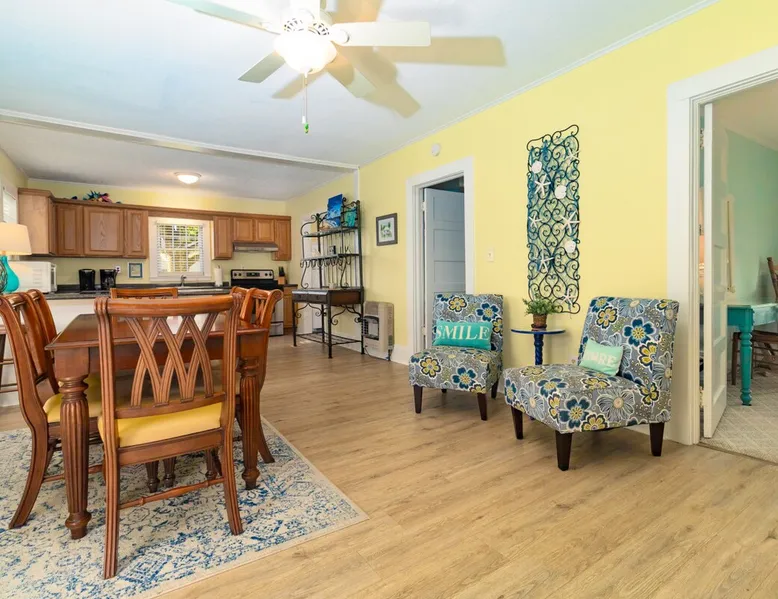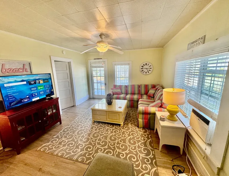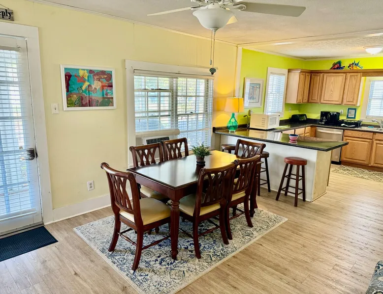 We are centrally located in the Historical Downtown Morehead District within walking distance of Big Rock and the restaurants and bars downtown. We are also 2 blocks away from the Intracoastal Waterway and you can see the water from our screened in side patio. Our street is a charming historical street that is highly sought after by regular visitors of Morehead City. We are a block away from Shevans Park which is a great place for kids to play. Lots of sidewalks for walks & bikes The space We had a newly installed central HVAC installed in December of 2024. This home is near and dear to our family. It has been in the family for generations and we named it "Our Happy Place" for the joy and happiness that it ha brought our family over the years. We know that you will love it too and build your own special family memories here. Our home is 3 bedrooms and 1 bath. The front door leads to the living room which you pass through to get to the dining area and then the kitchen followed by the laundry area and full bathroom. Off of the main area are the bedrooms. Next to the dining area is access to our screened in side patio with views of the waterway as well as our grill. Guest access Coded door knobs allow access to Our Happy Place. There are steps to get up to any of our doors but after the initial steps our house is all one level.
