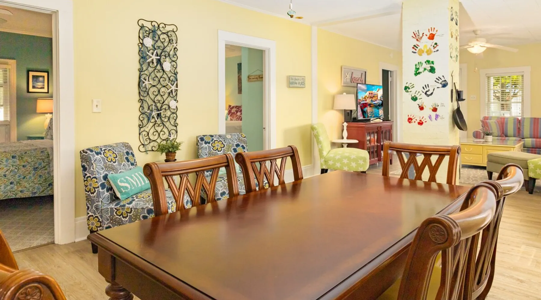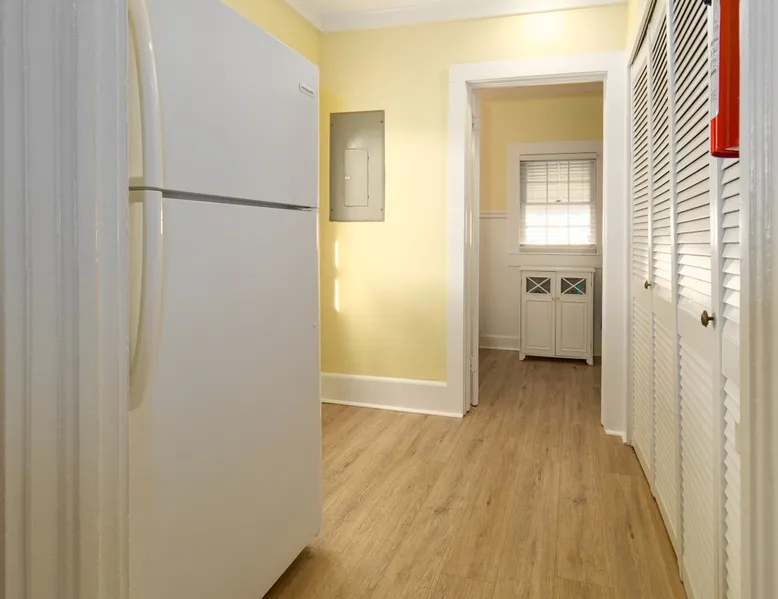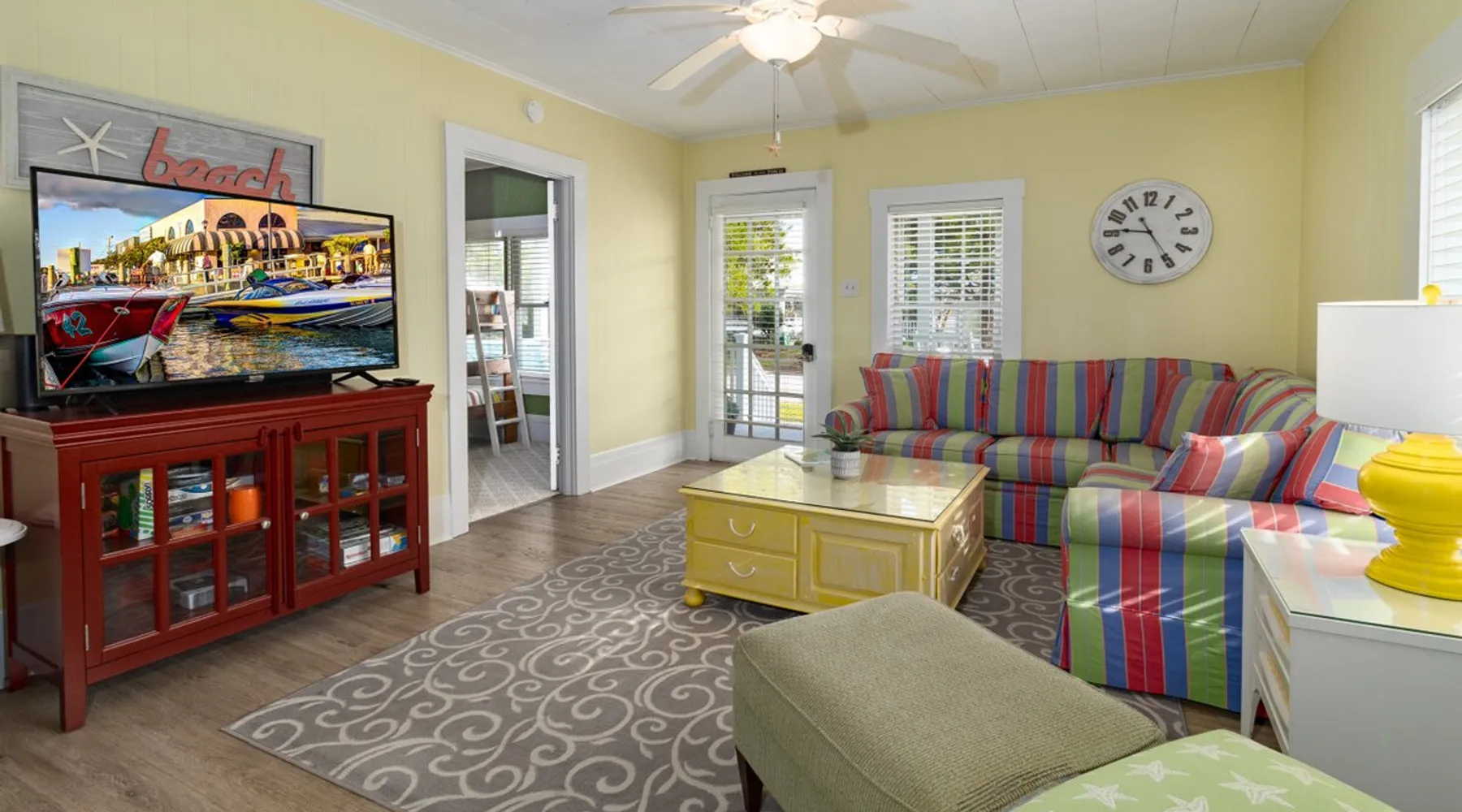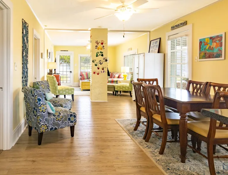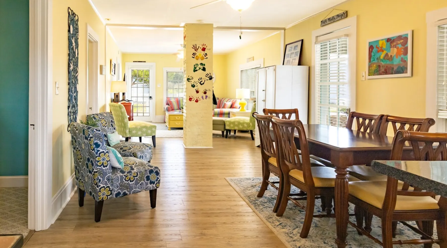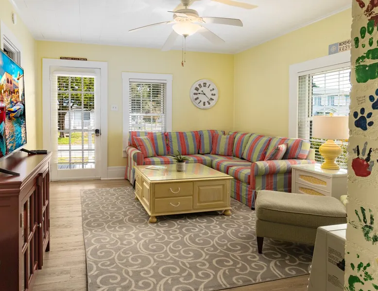 We are centrally located in the Historical Downtown Morehead District within walking distance of Big Rock and the restaurants and bars downtown. We are also 2 blocks away from the Intracoastal Waterway and you can see the water from our screened in side patio. Our street is a charming historical street that is highly sought after by regular visitors of Morehead City. We are a block away from Shevans Park which is a great place for kids to play. Lots of sidewalks for walks & bikes The space We had a newly installed central HVAC installed in December of 2024. This home is near and dear to our family. It has been in the family for generations and we named it "Our Happy Place" for the joy and happiness that it ha brought our family over the years. We know that you will love it too and build your own special family memories here. Our home is 3 bedrooms and 1 bath. The front door leads to the living room which you pass through to get to the dining area and then the kitchen followed by the laundry area and full bathroom. Off of the main area are the bedrooms. Next to the dining area is access to our screened in side patio with views of the waterway as well as our grill. Guest access Coded door knobs allow access to Our Happy Place. There are steps to get up to any of our doors but after the initial steps our house is all one level.