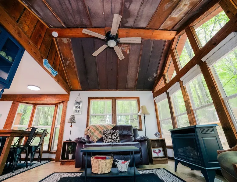 Escape to the serene beauty of the mountains with our cozy mountain rental nestled in the heart of nature. This charming retreat offers a perfect blend of rustic charm and modern comfort, making it an ideal getaway for couples, or solo adventurers seeking tranquility and adventure. Wake up to the sound of birds chirping and sunlight streaming through the windows, signaling another day of adventure in the mountains. The space With endless opportunities for hiking, skiing, mountain biking, and more right at your doorstep, our mountain rental is the perfect home base for your outdoor adventures. Whether you're seeking adrenaline-pumping thrills or quiet moments of reflection, you'll find it all here in the majestic beauty of the mountains. Outside, you'll find a spacious deck where you can soak in the breathtaking views while sipping your morning coffee or unwinding with a glass of wine as the sun sets behind the peaks. Fire up the grill for a barbecue or gather around the fire pit for marshmallow roasting and stargazing under the clear mountain skies. This home features one bedroom, one bathroom, and a cozy loft space; perfect for curling up with a good book, or playing a round of cards. The front porch looks out to Grandfather Mountain, while the back porch and fire pit area looks out unto the luscious forest Other things to note The bed size is a queen, but a short queen (i.e. a similar size that would fit in an RV). The loft space should only be used for those who are physically able. The stairs are steep and the overhead area is not standing height. Please note, there is not a washer/dryer or a dishwasher in the home. We do supply a drying rack for used dishware. We ask that if the fire pit is used that it be put out accordingly. In the winter months it is recommended to have AWD or 4WD. The road is state maintained but it may take time before it is cleared. It is not guaranteed that the road up to the house will get scrapped or salted during stays. The driveway is not steep but we advise using caution and planning accordingly in the event of snowfall.