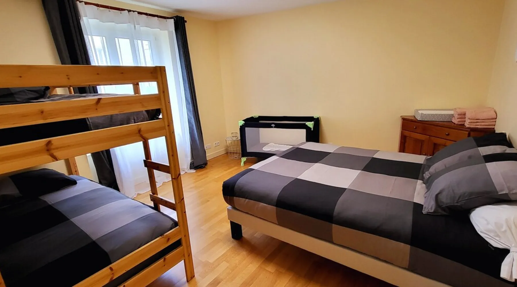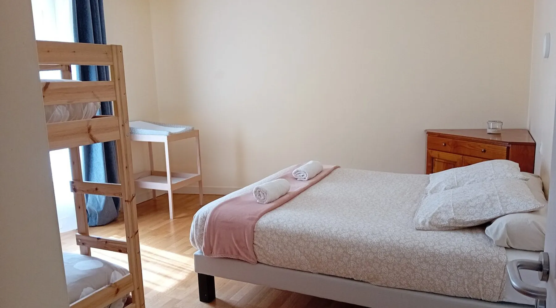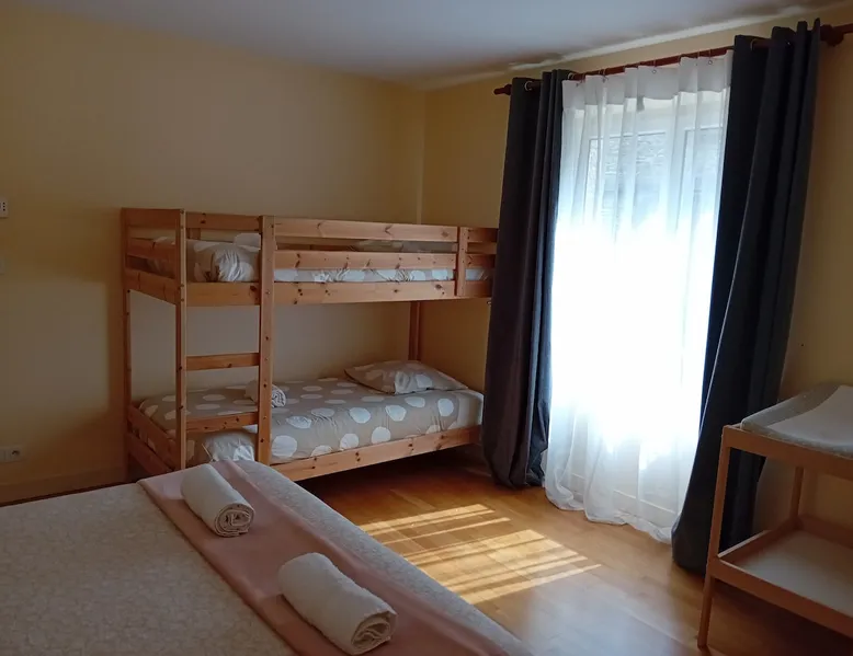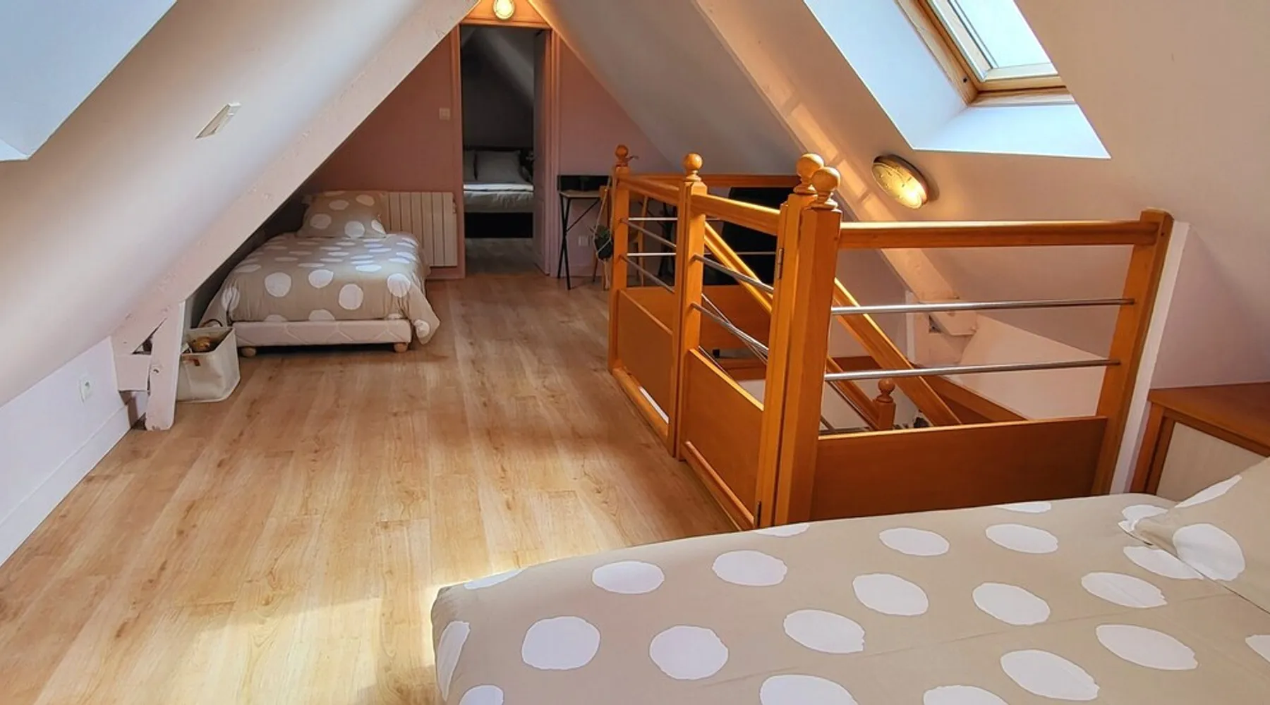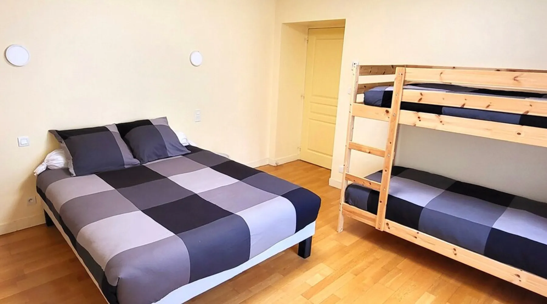 Located in the heart of Pontorson, this townhouse, typical in old stones without a garden or terrace, is close to all shops, restaurants with terraces, bakery, fishmonger, butcher, grocery store, train station, shuttle to Mont Saint-Michel, greenway and children's park all within walking distance!! This house is ideal for families or groups of friends. Free public parking is available in front of the house for easy parking. The space This typical townhouse in the region, recently renovated, offers the possibility of living on one level with its large bedroom on the ground floor as well as a shower room, a living room and a kitchen. Indeed, the ground floor bedroom has a 160 x 200 queen size bed and a 90 x 200 bunk bed. The living room offers a fully equipped kitchen with a large table for 8 people and a living room. The bathroom has a sink, shower, toilet and washing machine. Upstairs you will find a mezzanine room with 2 single beds and a bedroom with a 140 x 200 double bed. The house is a few meters from Rue du Couesnon so you can enjoy all the shops/restaurants in the city center. Guest access The house is entirely yours (no sharing). Other things to note We provide bed sheets, a large bath towel per person, a shower mat and dish towels. Please let us know your needs when booking in terms of the number and type of beds, as the Airbnb app does not specify the age of the children or whether guests sleep in a double bed or separate bed, so that we have all the sheets necessary for your comfort. Registration Details 14004*04