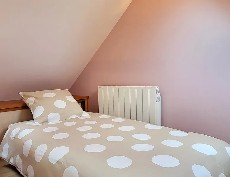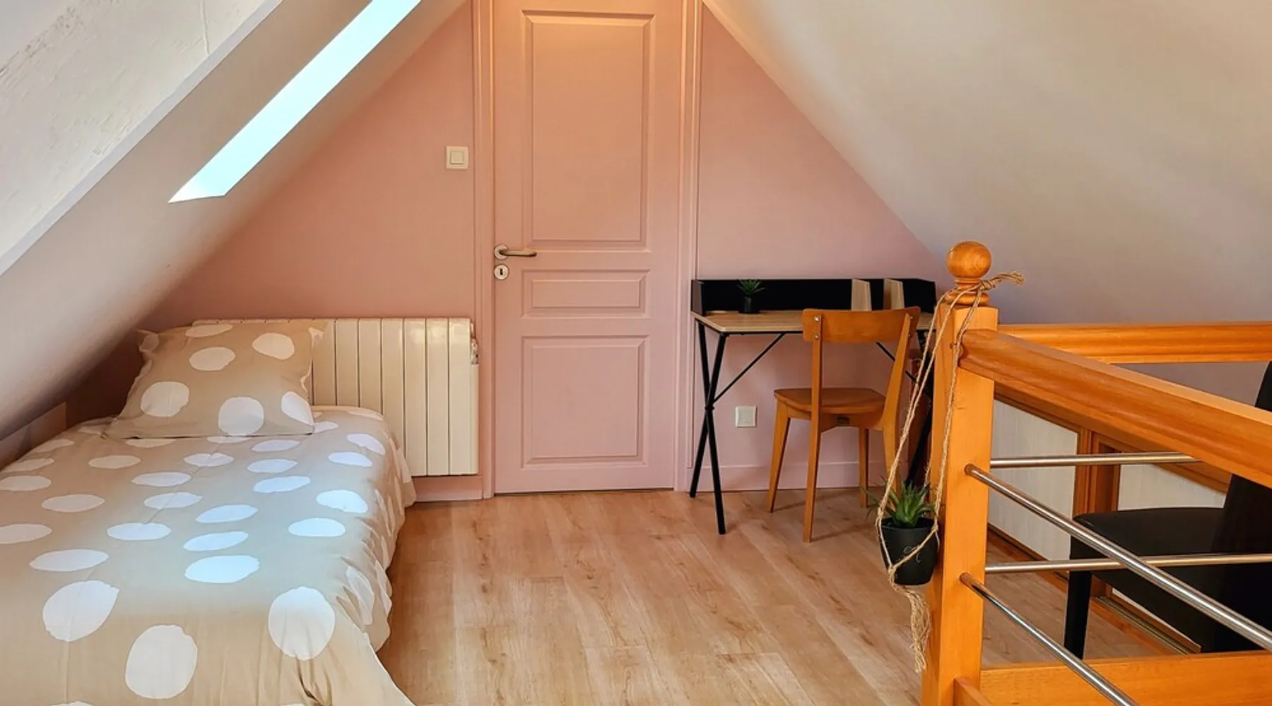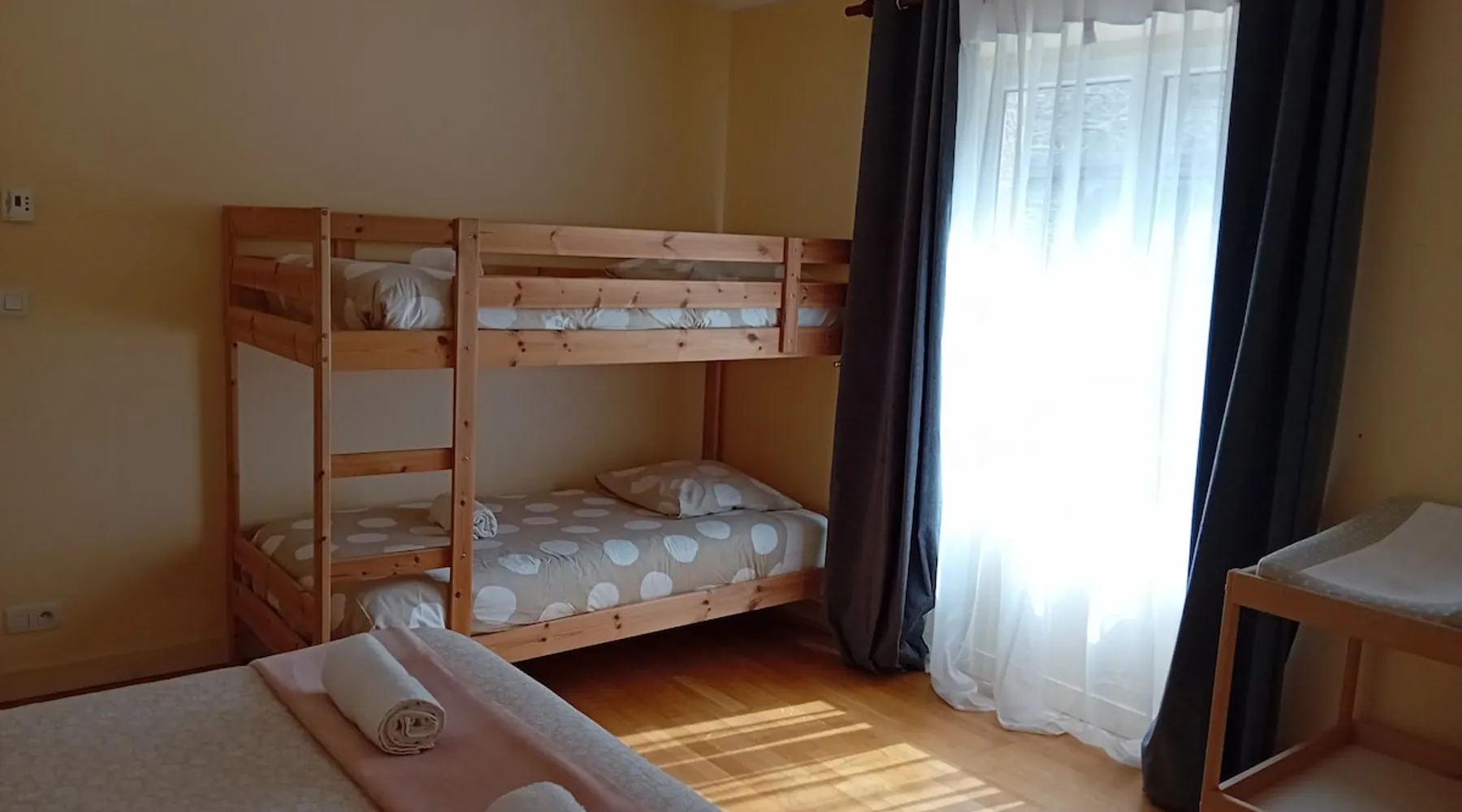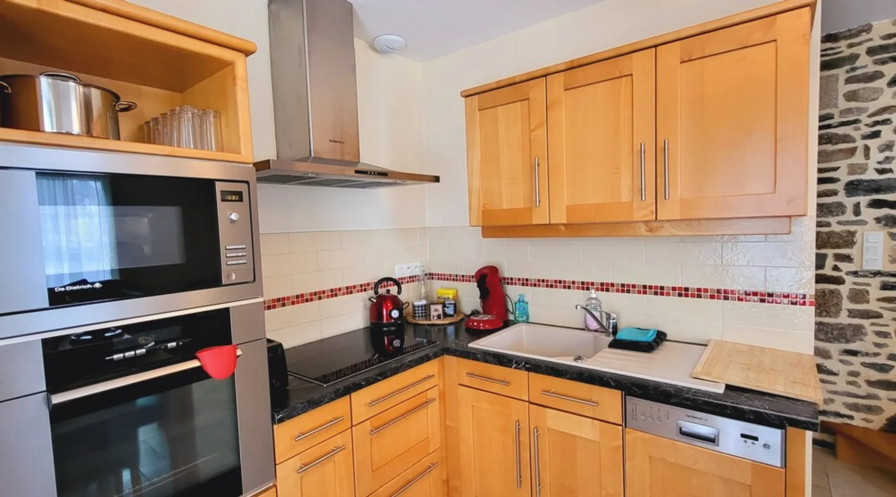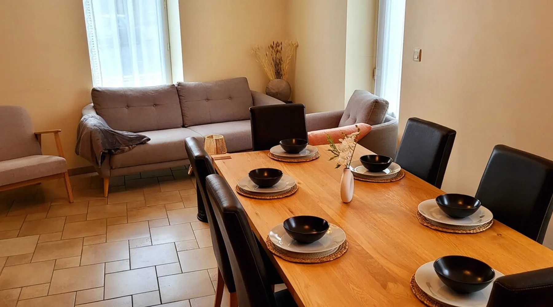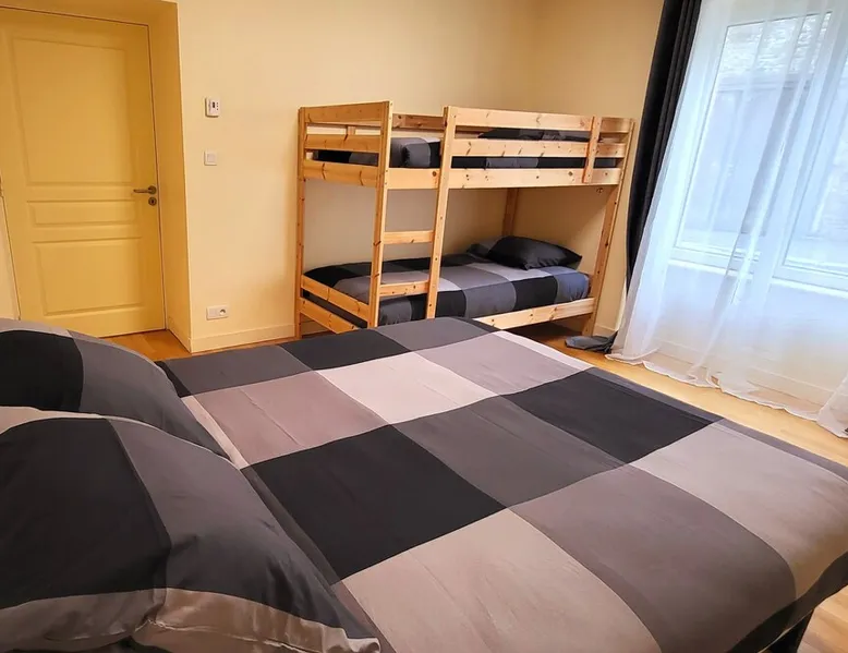 Located in the heart of Pontorson, this townhouse, typical in old stones without a garden or terrace, is close to all shops, restaurants with terraces, bakery, fishmonger, butcher, grocery store, train station, shuttle to Mont Saint-Michel, greenway and children's park all within walking distance!! This house is ideal for families or groups of friends. Free public parking is available in front of the house for easy parking. The space This typical townhouse in the region, recently renovated, offers the possibility of living on one level with its large bedroom on the ground floor as well as a shower room, a living room and a kitchen. Indeed, the ground floor bedroom has a 160 x 200 queen size bed and a 90 x 200 bunk bed. The living room offers a fully equipped kitchen with a large table for 8 people and a living room. The bathroom has a sink, shower, toilet and washing machine. Upstairs you will find a mezzanine room with 2 single beds and a bedroom with a 140 x 200 double bed. The house is a few meters from Rue du Couesnon so you can enjoy all the shops/restaurants in the city center. Guest access The house is entirely yours (no sharing). Other things to note We provide bed sheets, a large bath towel per person, a shower mat and dish towels. Please let us know your needs when booking in terms of the number and type of beds, as the Airbnb app does not specify the age of the children or whether guests sleep in a double bed or separate bed, so that we have all the sheets necessary for your comfort. Registration Details 14004*04
