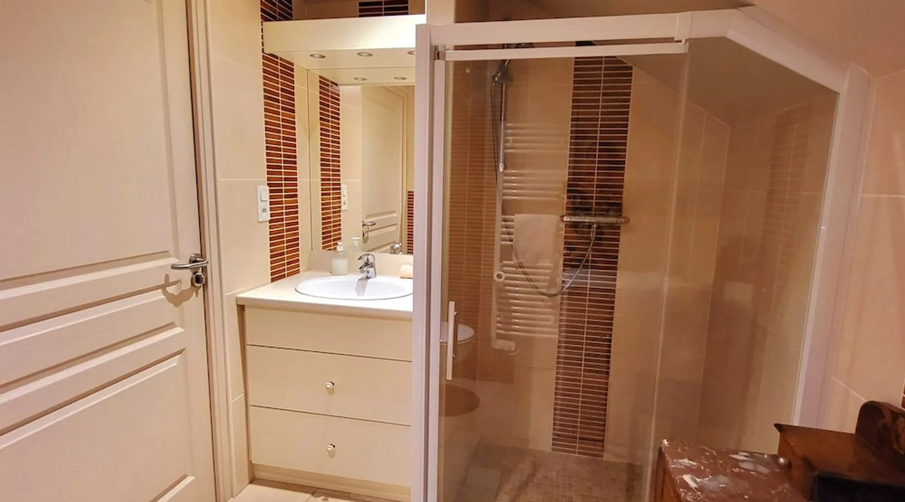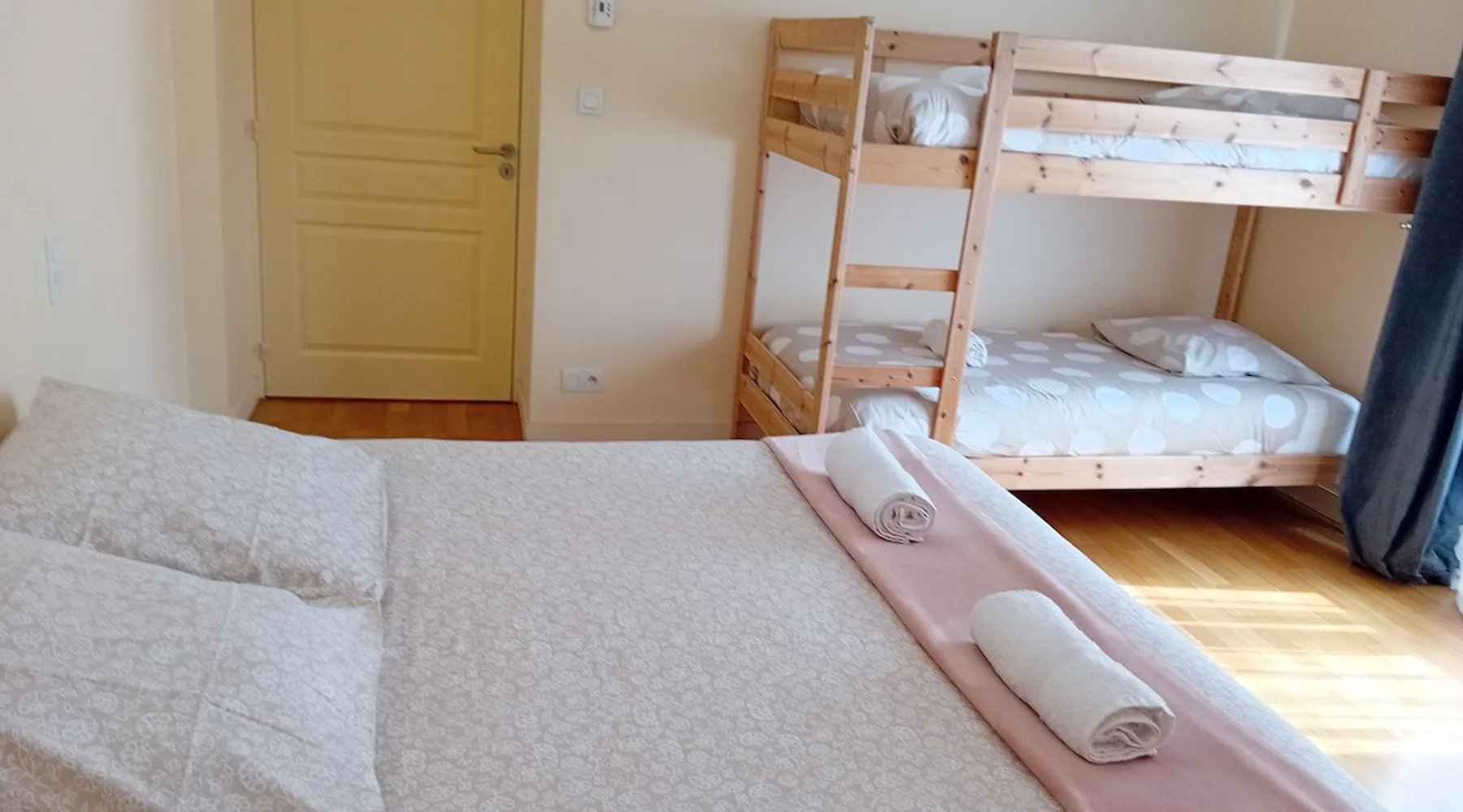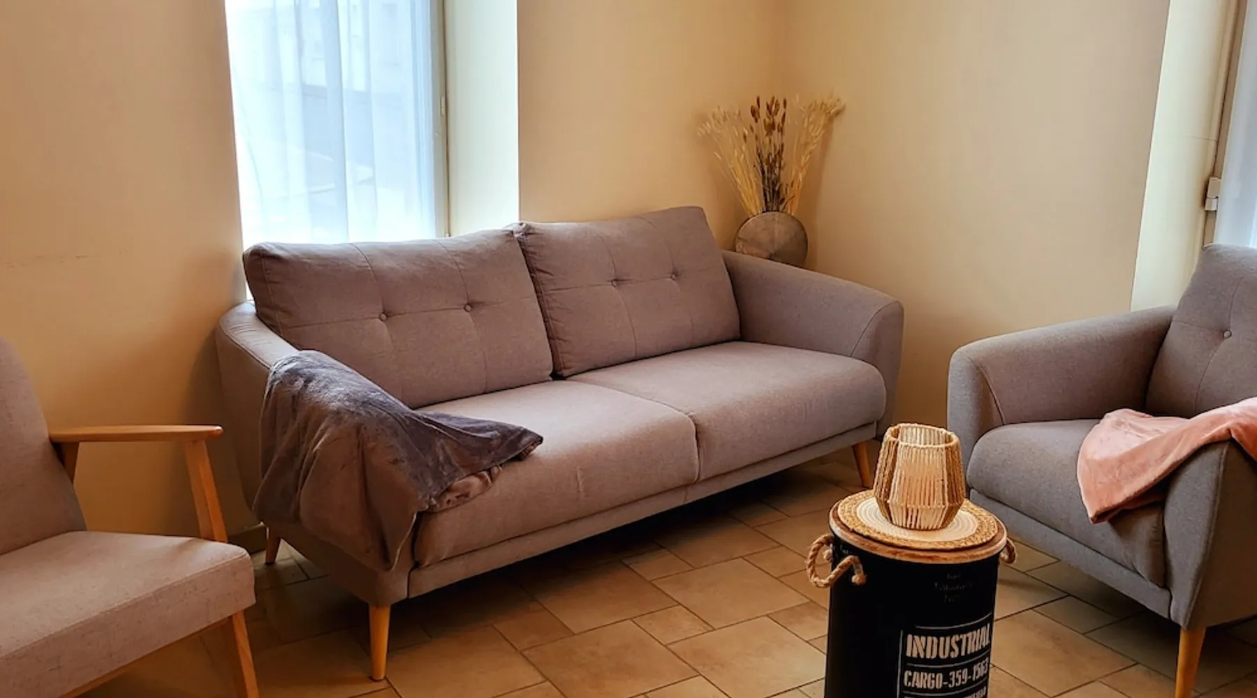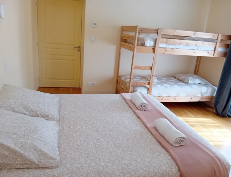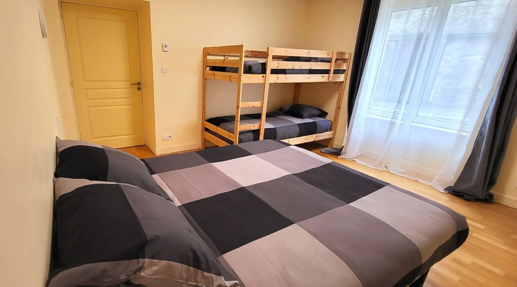 Located in the heart of Pontorson, this townhouse, typical in old stones without a garden or terrace, is close to all shops, restaurants with terraces, bakery, fishmonger, butcher, grocery store, train station, shuttle to Mont Saint-Michel, greenway and children's park all within walking distance!! This house is ideal for families or groups of friends. Free public parking is available in front of the house for easy parking. The space This typical townhouse in the region, recently renovated, offers the possibility of living on one level with its large bedroom on the ground floor as well as a shower room, a living room and a kitchen. Indeed, the ground floor bedroom has a 160 x 200 queen size bed and a 90 x 200 bunk bed. The living room offers a fully equipped kitchen with a large table for 8 people and a living room. The bathroom has a sink, shower, toilet and washing machine. Upstairs you will find a mezzanine room with 2 single beds and a bedroom with a 140 x 200 double bed. The house is a few meters from Rue du Couesnon so you can enjoy all the shops/restaurants in the city center. Guest access The house is entirely yours (no sharing). Other things to note We provide bed sheets, a large bath towel per person, a shower mat and dish towels. Please let us know your needs when booking in terms of the number and type of beds, as the Airbnb app does not specify the age of the children or whether guests sleep in a double bed or separate bed, so that we have all the sheets necessary for your comfort. Registration Details 14004*04