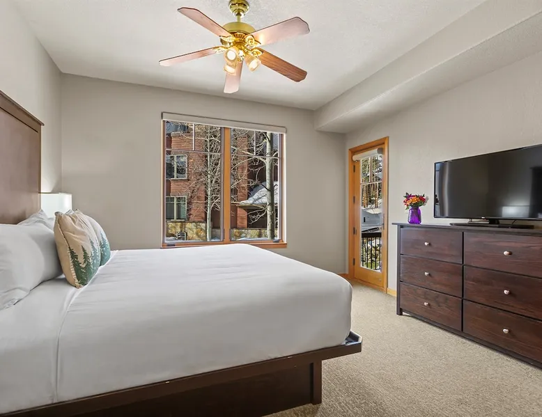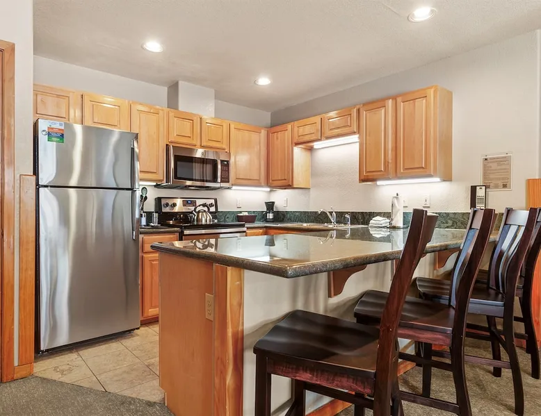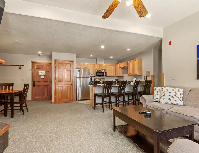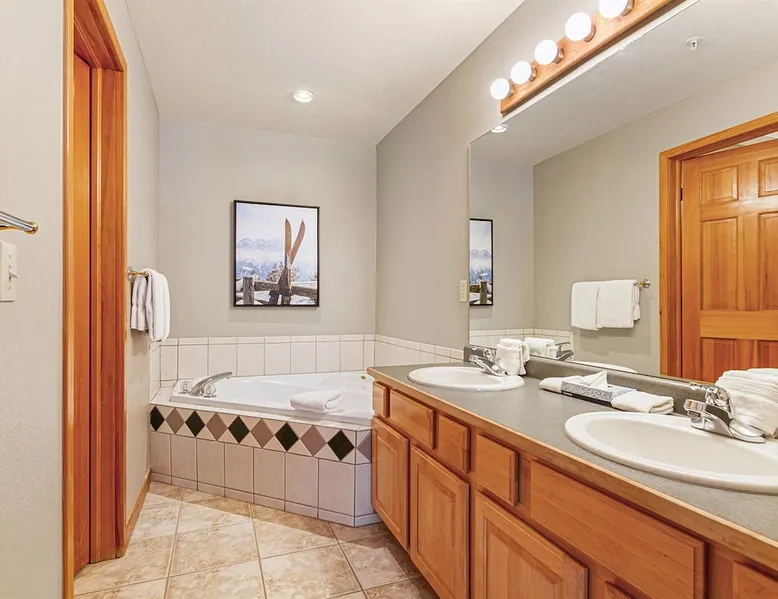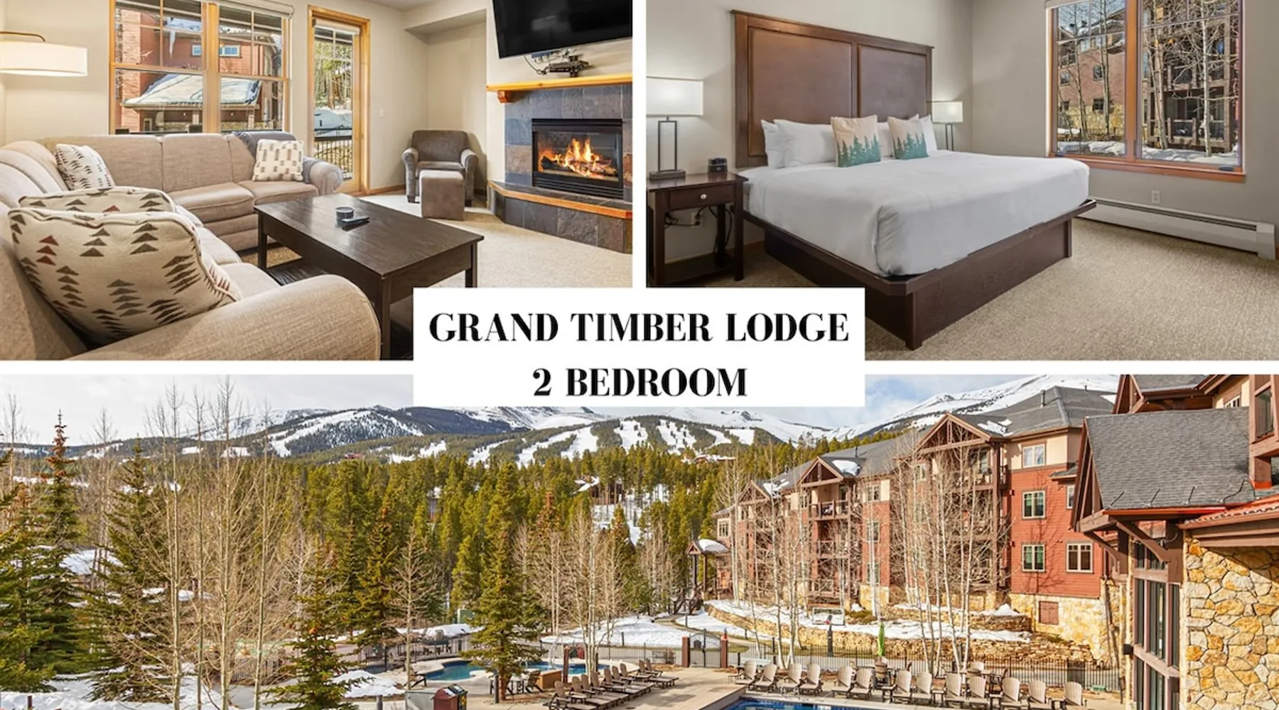 Located between peaks 8 and 9, Grand Timber Lodge is the ultimate destination for a serene mountain retreat. Guests can easily access the slopes via the Snowflake Chairlift, which is just a few steps away. After a day on the mountain, ski back to the property using the Lower Sawmill trail. This resort is a perfect fit for families and beginners alike, offering both slope accessibility and the tranquility of a silent getaway. Plus, it's just a short distance from the lively Main Street. The space Grand Timber Lodge – Two-Bedroom Villa Nestled between Peaks 8 and 9, Grand Timber Lodge offers the perfect balance of mountain adventure and quiet relaxation. Just steps from the Snowflake Chairlift, guests can easily access the slopes or explore downtown Breckenridge via the resort’s complimentary shuttle. The two-bedroom villa combines alpine charm with modern comfort, ideal for families or groups. The primary bedroom features a plush king bed, dresser, flat-screen TV, and a spa-inspired ensuite bathroom with a jacuzzi tub, walk-in shower, and dual vanities. The guest bedroom is a lock-off suite which includes a queen bed, sleeper sofa, and its own ensuite bath with a shower/tub combination. The convenient kitchenette in this room is equipped with a microwave, mini-fridge, toaster, coffee maker, dishwasher, and basic dishes and utensils—perfect for light meals or morning coffee. At the heart of the villa, the main living area welcomes you with a cozy gas fireplace, sleeper sofa, and flat-screen TV. The adjoining dining area seats six comfortably, while the full kitchen includes granite countertops, stainless steel appliances, and bar seating for three. A washer and dryer in the villa add the finishing touch of convenience. Please note: Villas are assigned at check-in. Photos are representative and individual décor, layout, and views may vary. Guest access Guests will check in at the front desk of the property Other things to note Grand Timber Lodge is perfect for families & Friends. Ideally located just a stones throw away from the hustle and bustle of Main Street. Resort Features • Indoor/outdoor hot tubs and all-season heated pools with locker rooms, showers, and sundecks with lounge chairs • Refresh Massage Studio – spa services including skincare, nails, and body treatments • Fitness Center – state-of-the-art equipment, towels, and water station provided • The Boot Saloon – cozy gathering space with comfort food by the fireplace • Media Room – theater with over 150 movies, recliners, bean bag chairs, popcorn, and beverages • Family Fun Center – arcade and family games • The Grand Room – large river rock fireplace, pool table, oversized chairs, and floor-to-ceiling windows with mountain views • Grand Timber Lodge Market – essentials and snacks, from sunscreen to beverages • Complimentary shuttle service • Seasonal children’s playground • Outdoor grill area