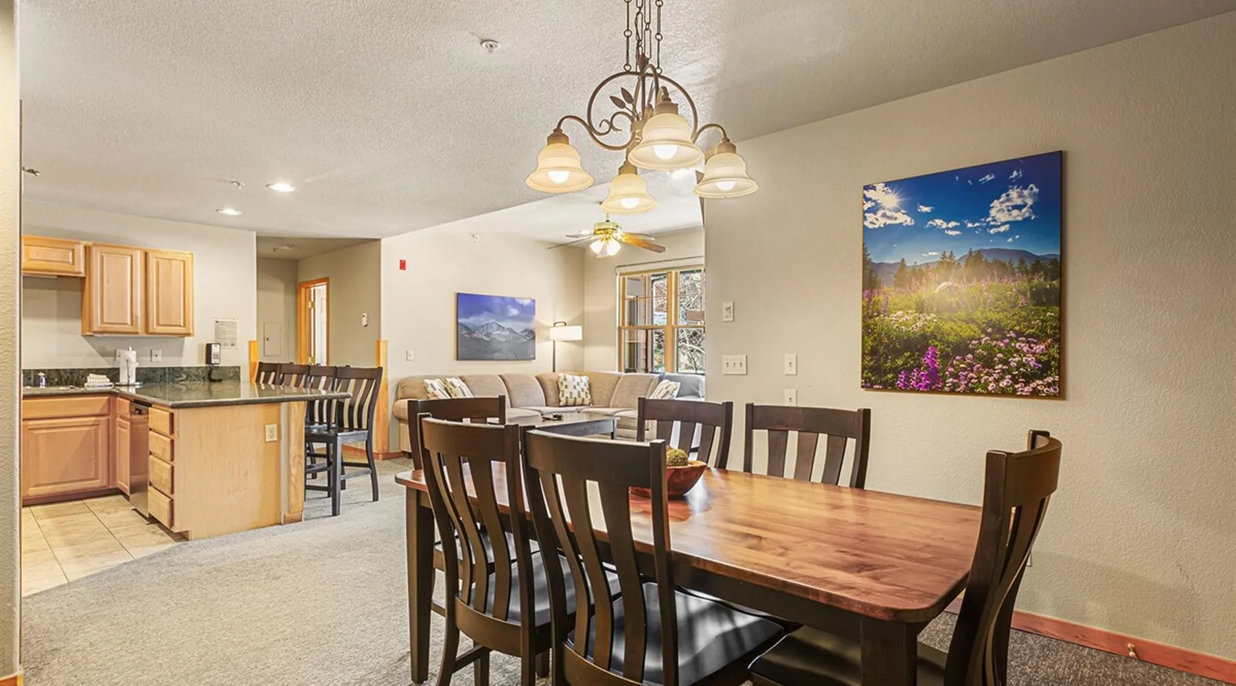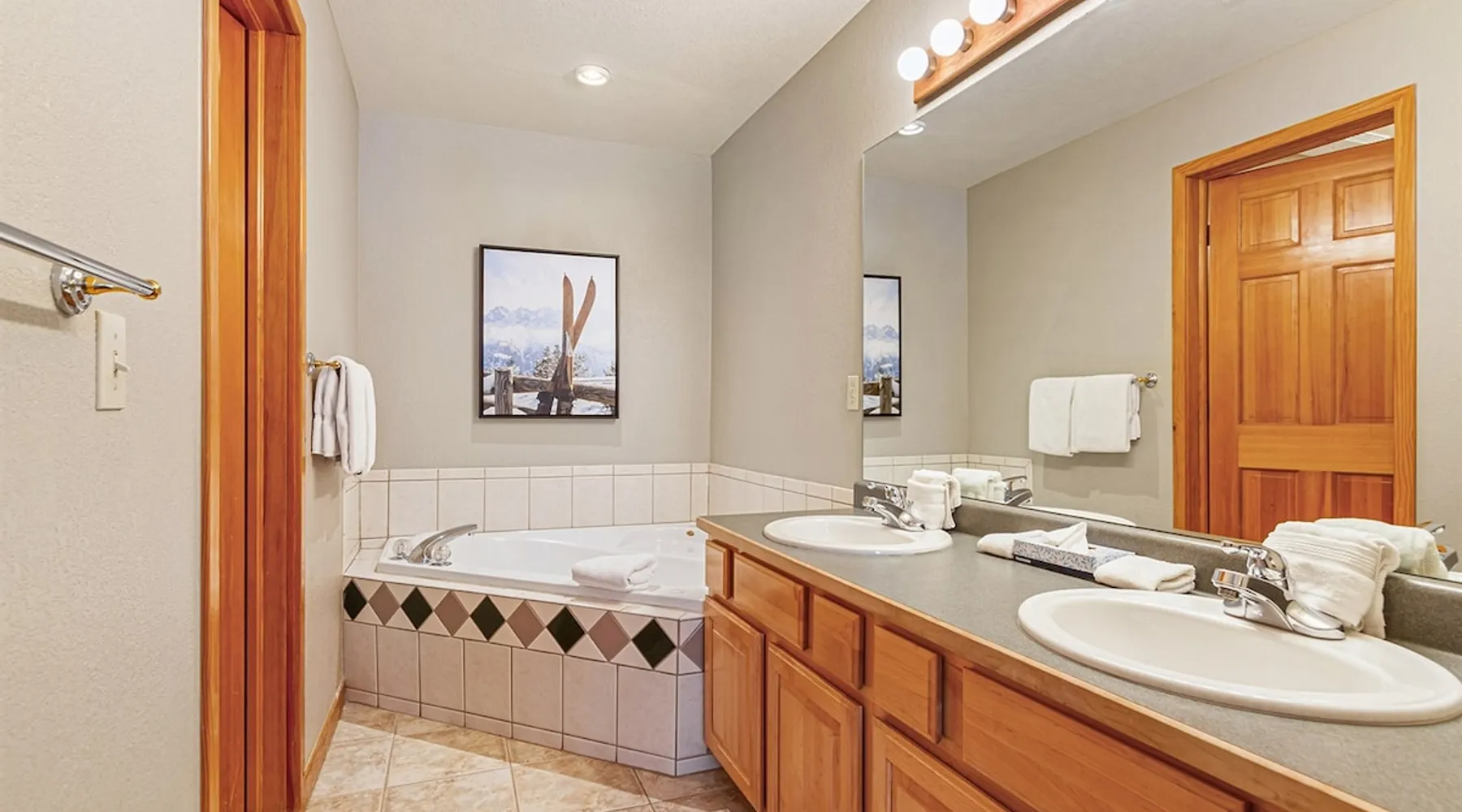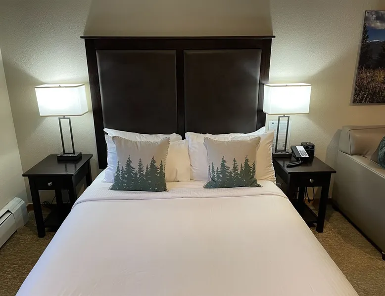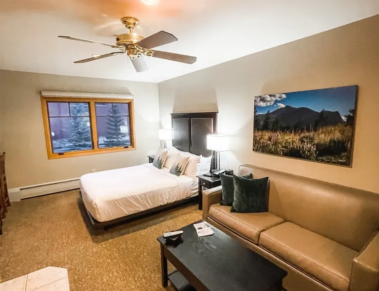 Located between peaks 8 and 9, Grand Timber Lodge is the ultimate destination for a serene mountain retreat. Guests can easily access the slopes via the Snowflake Chairlift, which is just a few steps away. After a day on the mountain, ski back to the property using the Lower Sawmill trail. This resort is a perfect fit for families and beginners alike, offering both slope accessibility and the tranquility of a silent getaway. Plus, it's just a short distance from the lively Main Street. The space Grand Timber Lodge – Two-Bedroom Villa Nestled between Peaks 8 and 9, Grand Timber Lodge offers the perfect balance of mountain adventure and quiet relaxation. Just steps from the Snowflake Chairlift, guests can easily access the slopes or explore downtown Breckenridge via the resort’s complimentary shuttle. The two-bedroom villa combines alpine charm with modern comfort, ideal for families or groups. The primary bedroom features a plush king bed, dresser, flat-screen TV, and a spa-inspired ensuite bathroom with a jacuzzi tub, walk-in shower, and dual vanities. The guest bedroom is a lock-off suite which includes a queen bed, sleeper sofa, and its own ensuite bath with a shower/tub combination. The convenient kitchenette in this room is equipped with a microwave, mini-fridge, toaster, coffee maker, dishwasher, and basic dishes and utensils—perfect for light meals or morning coffee. At the heart of the villa, the main living area welcomes you with a cozy gas fireplace, sleeper sofa, and flat-screen TV. The adjoining dining area seats six comfortably, while the full kitchen includes granite countertops, stainless steel appliances, and bar seating for three. A washer and dryer in the villa add the finishing touch of convenience. Please note: Villas are assigned at check-in. Photos are representative and individual décor, layout, and views may vary. Guest access Guests will check in at the front desk of the property Other things to note Grand Timber Lodge is perfect for families & Friends. Ideally located just a stones throw away from the hustle and bustle of Main Street. Resort Features • Indoor/outdoor hot tubs and all-season heated pools with locker rooms, showers, and sundecks with lounge chairs • Refresh Massage Studio – spa services including skincare, nails, and body treatments • Fitness Center – state-of-the-art equipment, towels, and water station provided • The Boot Saloon – cozy gathering space with comfort food by the fireplace • Media Room – theater with over 150 movies, recliners, bean bag chairs, popcorn, and beverages • Family Fun Center – arcade and family games • The Grand Room – large river rock fireplace, pool table, oversized chairs, and floor-to-ceiling windows with mountain views • Grand Timber Lodge Market – essentials and snacks, from sunscreen to beverages • Complimentary shuttle service • Seasonal children’s playground • Outdoor grill area