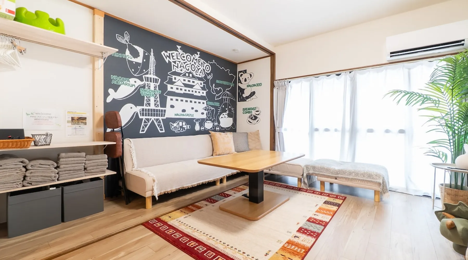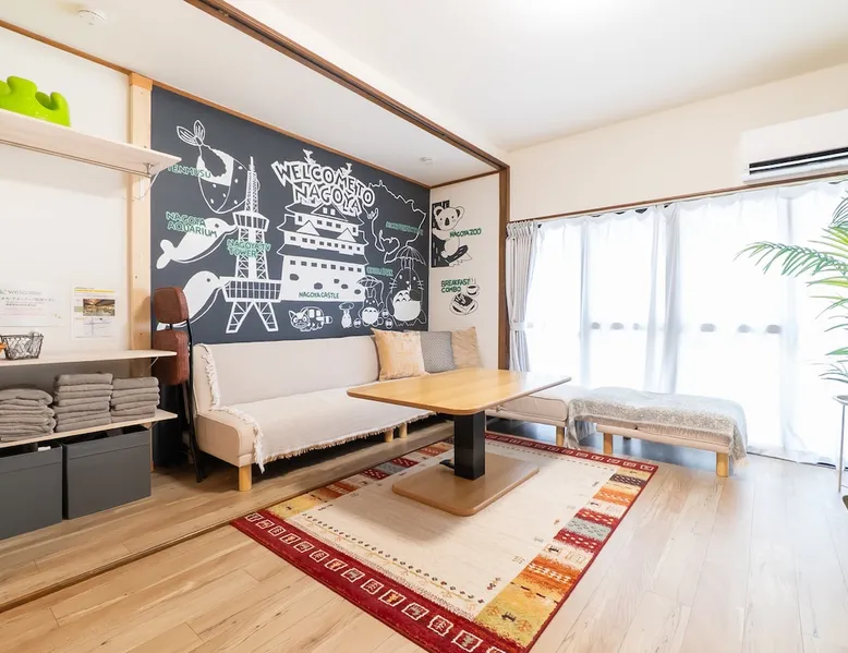 Conveying the philosophy of “living as you live,” this guesthouse is conveniently situated approximately 10 minutes by automobile from Nagoya Castle. It has the capacity to accommodate up to eight individuals. All rooms, encompassing the living room and bedroom, are equipped with air conditioning. Complimentary parking is offered on the premises for a maximum of two vehicles. Additionally, high-speed Wi-Fi and children’s toys are provided without any charge. The space This facility is exclusively rented to a single group. Convenient parking is also available, ensuring the comfort of guests arriving by car or in large groups. The vicinity is conveniently stocked with convenience stores, supermarkets, and drugstores, making it an ideal destination for extended stays. Guest access You may enter the entire premises. Part of the closet is used for storing tools and equipment exclusively for staff. We ask that you refrain from touching any of the areas. Other things to note Facility Usage Guidelines Shoes: Shoes are prohibited within the facility, except on the balcony. Evacuation Routes and Exits: Please familiarize yourself with the evacuation route map and emergency exits posted on each floor. Door Security: Ensure that you lock the door from within your room, particularly when retiring for the night. Smoking: Smoking is prohibited in all areas of the facility, including the balcony. Smoking in front of the entrance and around the house is strictly prohibited. Accommodation Usage: Accommodation is reserved for the number of guests and registered individuals. Accommodation by non-reserved guests or with an additional number of people is prohibited. Business Activities: Guest rooms are not permitted for business activities such as exhibitions or offices. Additionally, any use or stay with a different number of people without facility permission is strictly prohibited. Noise Levels: Excessive noise from parties or other activities is strictly prohibited. Please be considerate of your neighbors and maintain a quiet environment, especially from 9:00 pm to 7:00 am. Removal of Interior Decorations: Do not remove any interior decorations or equipment installed or provided by the facility, such as toilet paper. Care of Facility Furniture and Appliances: Use the furniture, home appliances, bedding, and other facilities with care. If any items are damaged or soiled, please notify us promptly. Movement of Furniture and Fixtures: Do not move any furniture, appliances, or fixtures within the facility. Additionally, make no modifications to the facility without facility permission. Garbage Disposal: Separate garbage into “burnable garbage,” “non-burnable garbage,” and “cans, bottles, and plastic bottles.” Face Towels and Bath Towels: Only the initial number of face towels and bath towels provided will be available. Additional or replacements will not be possible. If they become soiled, please wash them yourself. Power Off Appliances: Turn off the power to air conditioners, televisions, lights, and other electrical appliances before exiting the facility. Additionally, lock the doors and windows before leaving. Check-In and Check-Out Procedures Check-in time is 3:00 p.m., and check-out time is 10:00 a.m. Adherence to these timeframes is mandatory. Upon departure, please ensure that the facility is securely locked. Refrain from disclosing the PIN code for the front door to anyone other than the registered guest for your stay. Prohibited Items and Actions * Animals, birds, and other pets other than assistance dogs for the physically disabled * Explosives, volatile oils, and other flammable or combustible items * Items emitting a foul odor * Items prohibited by law * Advertising, distribution of promotional materials, sale of goods, solicitation, etc., without facility permission * Photographing, videotaping, etc., for business purposes without facility permission * Smoking in designated smoking areas within the facility or in the surrounding area * Cases that may violate public order and morals, such as anti-social forces Consequences for Violations If an individual is found to be in violation of any of the above, immediate use of the facility will be denied, and they will be required to depart. This denial may occur either before booking or during use. Violations that may result in immediate eviction * Being a member of a criminal organization, group, or affiliated with a criminal organization * Engaging in violence, intimidation, blackmail, intimidating unjust demands, or similar behavior * Having previously been notified by the facility that use of the facility is prohibited * Engaging in gambling or other behavior that disrupts public morals or constitutes a nuisance to neighbors * Being unable to ensure their own safety due to mental impairment, drug or alcohol addiction, or being at risk of causing danger, fear, or anxiety to neighbors * Engaging in loud voices, singing, or noisy behavior within the facility or in the vicinity, causing disgust or inconvenience to others * Engaging in behavior similar to any of the above [Regarding the surrounding environment] During your stay, you may be affected by external factors such as construction noise in the area, noise from nearby residents, and temporary odors. As these are outside the facility and cannot be controlled by the facility, we cannot offer refunds or discounts for these reasons. Please understand this before making your reservation. Registration Details M230038517