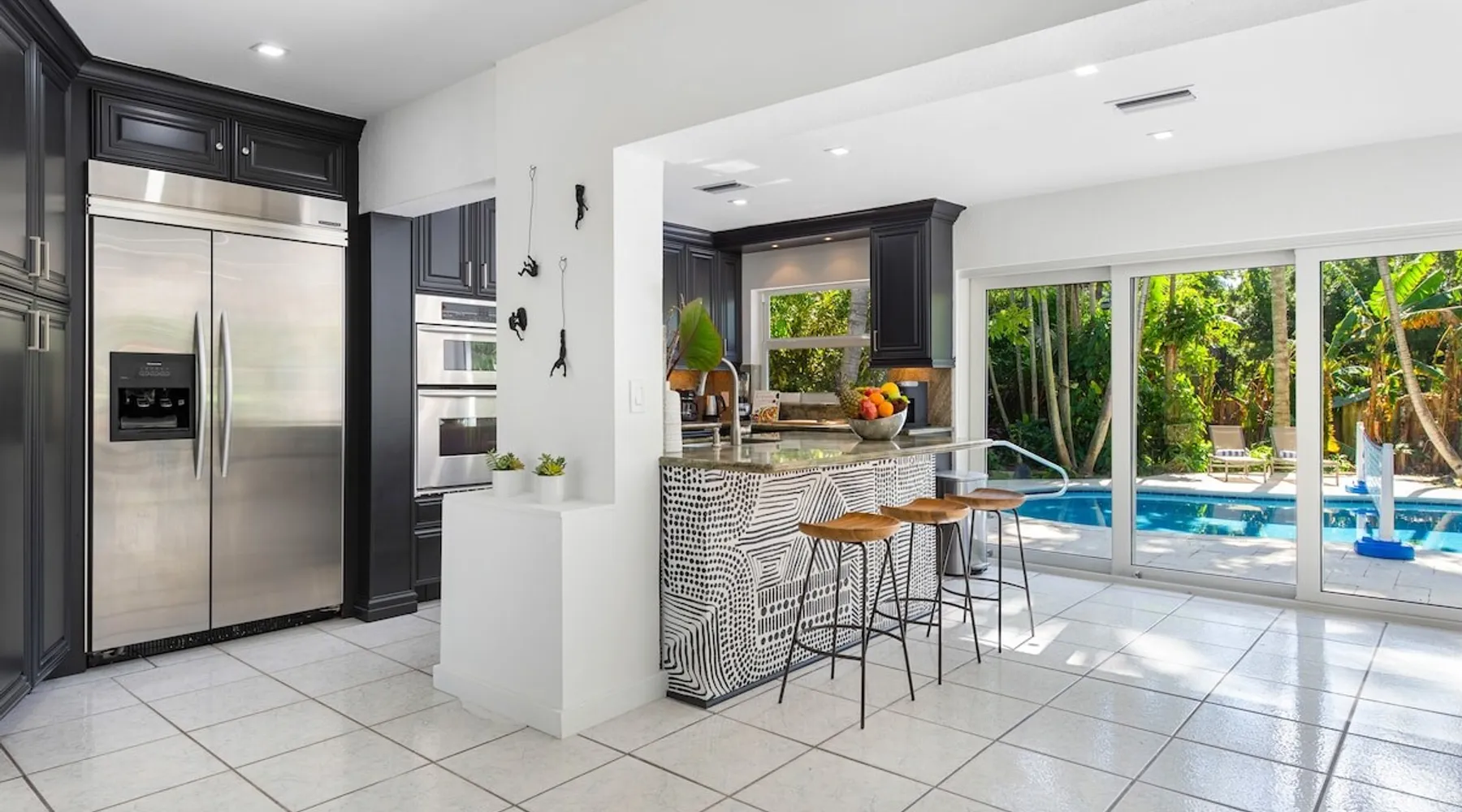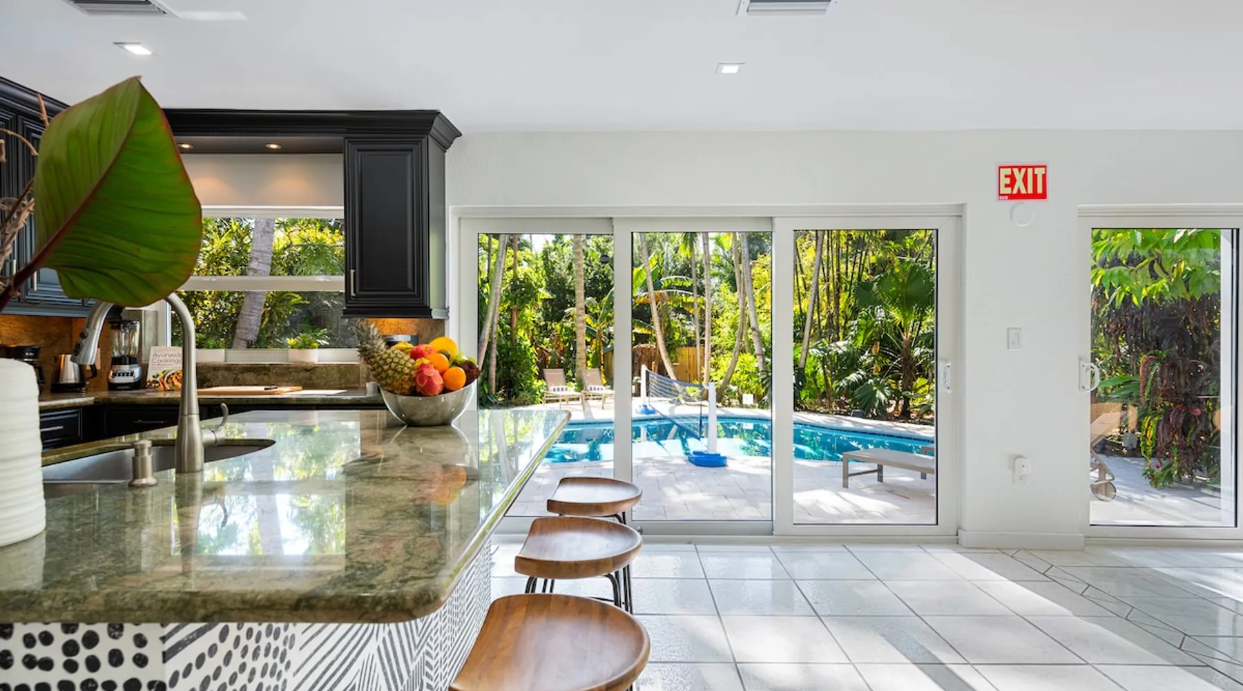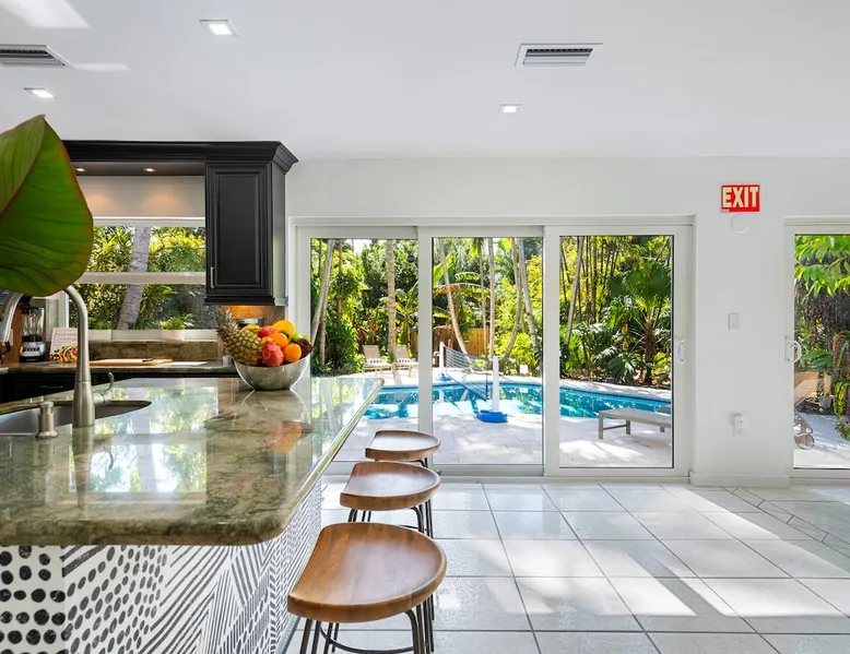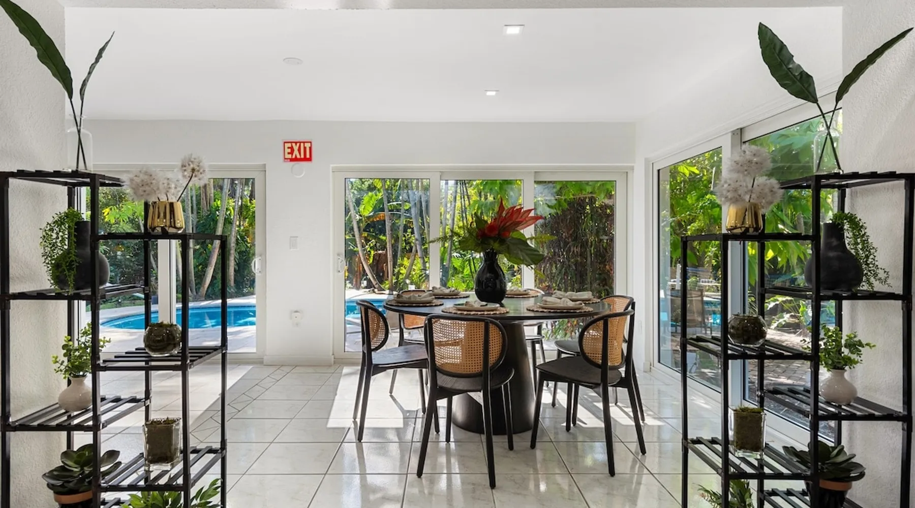 A private oasis within paradise! Between Fort Lauderdale and Miami, this stunning house is just 5 minutes from Hollywood Beach and the amazing Hollywood Boardwalk. Enjoy easy access to public parks, shopping, and fine dining by the sea. Experience the perfect blend of luxury, comfort, and tropical living (check our backyard!) Only 10 min from Ft. Lauderdale International Airport and 30 minutes from Miami Int. Airport. The space Step into your private oasis in the heart of paradise, nestled between Fort Lauderdale and Miami. This stunning home is just 5 minutes from Hollywood Beach, with easy access to state parks, shopping, and fine dining by the sea. Experience the perfect blend of luxury, comfort, and tropical living. Features: Open Concept Kitchen: Perfect for cooking enthusiasts. Refreshing Pool: Enjoy a swim or play a game of outdoor volleyball. Outdoor Gym: Stay fit while soaking up the Florida sun. Outdoor Cinema: Cozy up for movie nights with our outdoor screen. Dream Backyard: Lush with rare Florida fauna, including Ruffle Fan Palms, Mamey Sapote, and Blackberry Jam Fruit trees. Stroll along Chicago brick pathways in a sprawling 13,442 sq. ft. lot for ultimate privacy and tranquility. Outdoor Oasis: Dine by the pool with a BBQ area, both in the sun and shade. For indoor entertainment: Pool Table Xbox 360 Board Games Collection Basketball Hoop: An outdoor TV with a surround sound system awaits for immersive movie nights and streaming adventures. Streaming TVs: All bedrooms are equipped with streaming TVs for movies and shows. Glass Doors: Surrounding glass doors flood the space with light and reveal the garden's pool oasis. Free Parking: Convenient on-site parking. Accommodation: 4 Bedrooms, 5 Beds: King Serenity Suite: King-size bed with patio access + TV with all streaming platforms. 2 Queen Bliss Rooms: Queen-size beds, each with its own TV with all streaming platforms plus a desk. Palms Haven: Two full-size beds with a TV with all streaming platforms. 3 Bathrooms High-Speed Wifi Fully Equipped Kitchen: Keurig coffee machine and drip coffee maker. Kettle, blender, toaster. Grill with BBQ utensils. Pots and pans, cutting knives. Wine glasses, coffee mugs, and cups. Living Room: TV with a surround sound system for immersive movie nights and streaming adventures, with direct access and view of the backyard oasis. Pool Table Outdoor Basketball Hoop Outdoor Gym: Olympic rings, climbing rope, pull-up bar, and dip bar for calisthenics. Poolside Loungers: Perfect for sunbathing. Volleyball Net Full-Length Mirror Air Conditioning Laundry Room: Washer and dryer. 24-Hour Security: Neighborhood patrols ensure safety. Pool Cleaning: The pool is serviced once a week, pool company accesses pool through side gate. We are delighted to inform you that our pool is temperature controlled to a comfortable 86 degrees, perfect for swimming and enjoying at your leisure. Note: Due to the external limitations of external pool heaters, they will not operate when the outside temperature falls below 60 degrees Farenheit. A/C System: Please keep levels of a/c at appropriate temperatures. Keep doors and windows closed while in operation as humidity accumulation can cause freezing of units and disfunction. Book your stay and immerse yourself in the luxury and tranquility of this Hollywood, Miami home. Your perfect getaway awaits! Other things to note No smoking: A fee of $ 500 will be charged for smoking inside the property. No pets: A fee of $500 will be charged for bringing pets without prior approval. No parties or events: A fee of $500 will be charged for hosting parties or events without permission. A fee of $500 will be charged for disconnecting a Noise Detector or Smoke Detector. Quiet hours: A fee of $500 will be charged for excessive noise during designated quiet hours. Maximum occupancy: A fee of $50 per person, per night, will be charged for exceeding the maximum occupancy limit. Damaged items: Any damaged items will incur a penalty fee based on the cost of repair or replacement. Late checkout: A fee of $150 will be charged for late checkout beyond the designated checkout time. Property cleanliness: Guests are expected to leave the property in a clean and tidy condition. Failure to do so, resulting in excessive dirtiness or significant uncleanliness, will incur a deep cleaning fee of $350. This fee covers the additional time and effort required to ensure the property is in proper condition for the next guest. These rules and fees are in place to ensure a pleasant and enjoyable experience for all guests. By respecting these guidelines, you contribute to maintaining the property's integrity and ensuring future guests have a wonderful stay.