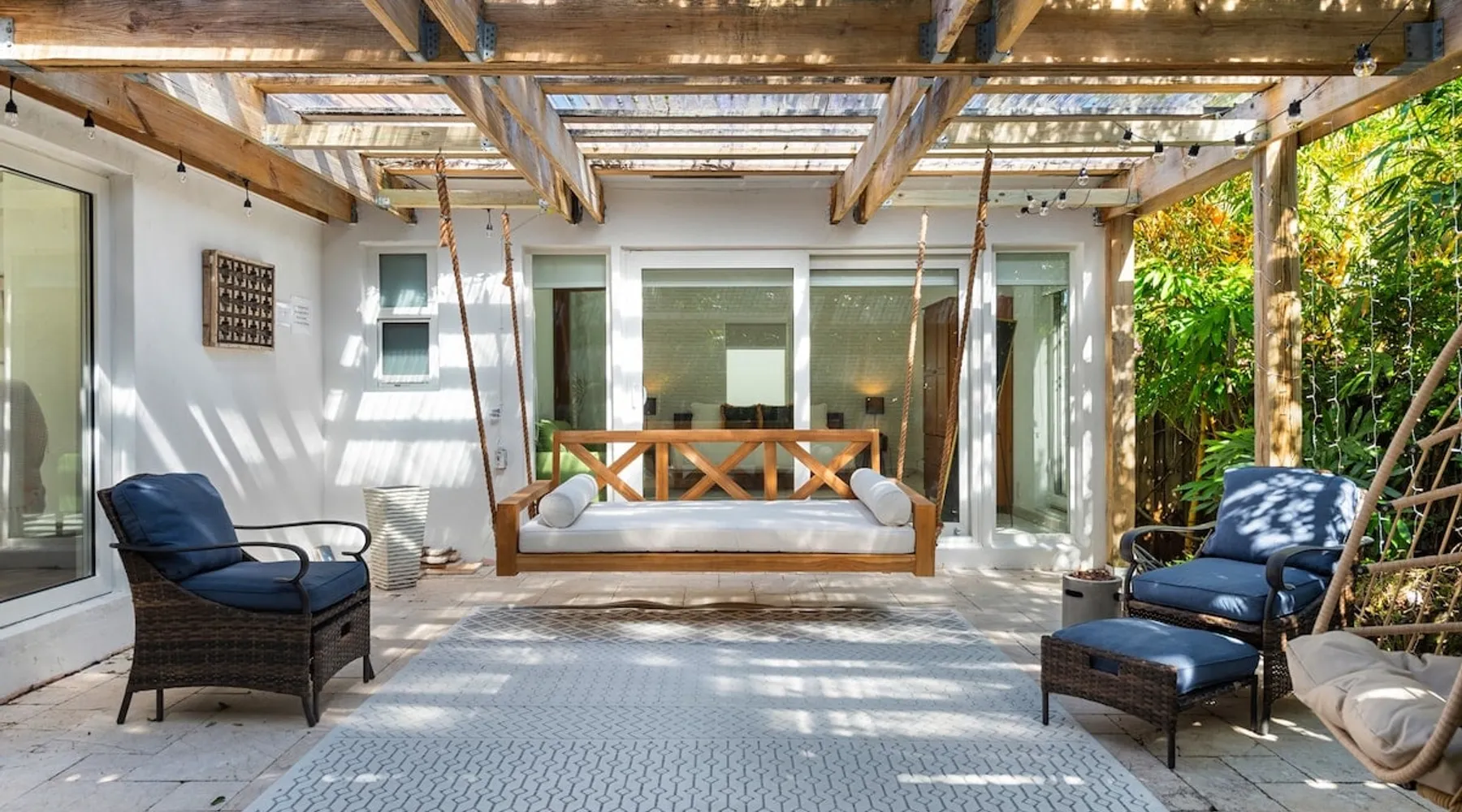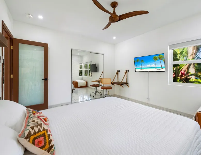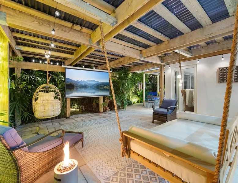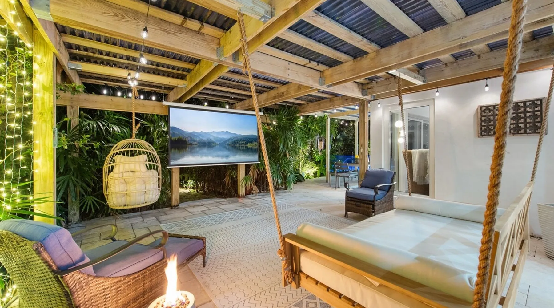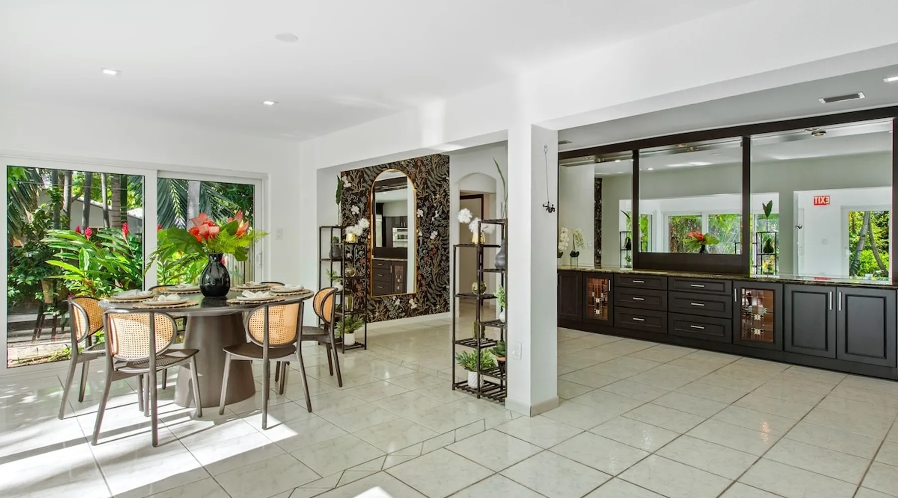 A private oasis within paradise! Between Fort Lauderdale and Miami, this stunning house is just 5 minutes from Hollywood Beach and the amazing Hollywood Boardwalk. Enjoy easy access to public parks, shopping, and fine dining by the sea. Experience the perfect blend of luxury, comfort, and tropical living (check our backyard!) Only 10 min from Ft. Lauderdale International Airport and 30 minutes from Miami Int. Airport. The space Step into your private oasis in the heart of paradise, nestled between Fort Lauderdale and Miami. This stunning home is just 5 minutes from Hollywood Beach, with easy access to state parks, shopping, and fine dining by the sea. Experience the perfect blend of luxury, comfort, and tropical living. Features: Open Concept Kitchen: Perfect for cooking enthusiasts. Refreshing Pool: Enjoy a swim or play a game of outdoor volleyball. Outdoor Gym: Stay fit while soaking up the Florida sun. Outdoor Cinema: Cozy up for movie nights with our outdoor screen. Dream Backyard: Lush with rare Florida fauna, including Ruffle Fan Palms, Mamey Sapote, and Blackberry Jam Fruit trees. Stroll along Chicago brick pathways in a sprawling 13,442 sq. ft. lot for ultimate privacy and tranquility. Outdoor Oasis: Dine by the pool with a BBQ area, both in the sun and shade. For indoor entertainment: Pool Table Xbox 360 Board Games Collection Basketball Hoop: An outdoor TV with a surround sound system awaits for immersive movie nights and streaming adventures. Streaming TVs: All bedrooms are equipped with streaming TVs for movies and shows. Glass Doors: Surrounding glass doors flood the space with light and reveal the garden's pool oasis. Free Parking: Convenient on-site parking. Accommodation: 4 Bedrooms, 5 Beds: King Serenity Suite: King-size bed with patio access + TV with all streaming platforms. 2 Queen Bliss Rooms: Queen-size beds, each with its own TV with all streaming platforms plus a desk. Palms Haven: Two full-size beds with a TV with all streaming platforms. 3 Bathrooms High-Speed Wifi Fully Equipped Kitchen: Keurig coffee machine and drip coffee maker. Kettle, blender, toaster. Grill with BBQ utensils. Pots and pans, cutting knives. Wine glasses, coffee mugs, and cups. Living Room: TV with a surround sound system for immersive movie nights and streaming adventures, with direct access and view of the backyard oasis. Pool Table Outdoor Basketball Hoop Outdoor Gym: Olympic rings, climbing rope, pull-up bar, and dip bar for calisthenics. Poolside Loungers: Perfect for sunbathing. Volleyball Net Full-Length Mirror Air Conditioning Laundry Room: Washer and dryer. 24-Hour Security: Neighborhood patrols ensure safety. Pool Cleaning: The pool is serviced once a week, pool company accesses pool through side gate. We are delighted to inform you that our pool is temperature controlled to a comfortable 86 degrees, perfect for swimming and enjoying at your leisure. Note: Due to the external limitations of external pool heaters, they will not operate when the outside temperature falls below 60 degrees Farenheit. A/C System: Please keep levels of a/c at appropriate temperatures. Keep doors and windows closed while in operation as humidity accumulation can cause freezing of units and disfunction. Book your stay and immerse yourself in the luxury and tranquility of this Hollywood, Miami home. Your perfect getaway awaits! Other things to note No smoking: A fee of $ 500 will be charged for smoking inside the property. No pets: A fee of $500 will be charged for bringing pets without prior approval. No parties or events: A fee of $500 will be charged for hosting parties or events without permission. A fee of $500 will be charged for disconnecting a Noise Detector or Smoke Detector. Quiet hours: A fee of $500 will be charged for excessive noise during designated quiet hours. Maximum occupancy: A fee of $50 per person, per night, will be charged for exceeding the maximum occupancy limit. Damaged items: Any damaged items will incur a penalty fee based on the cost of repair or replacement. Late checkout: A fee of $150 will be charged for late checkout beyond the designated checkout time. Property cleanliness: Guests are expected to leave the property in a clean and tidy condition. Failure to do so, resulting in excessive dirtiness or significant uncleanliness, will incur a deep cleaning fee of $350. This fee covers the additional time and effort required to ensure the property is in proper condition for the next guest. These rules and fees are in place to ensure a pleasant and enjoyable experience for all guests. By respecting these guidelines, you contribute to maintaining the property's integrity and ensuring future guests have a wonderful stay.
