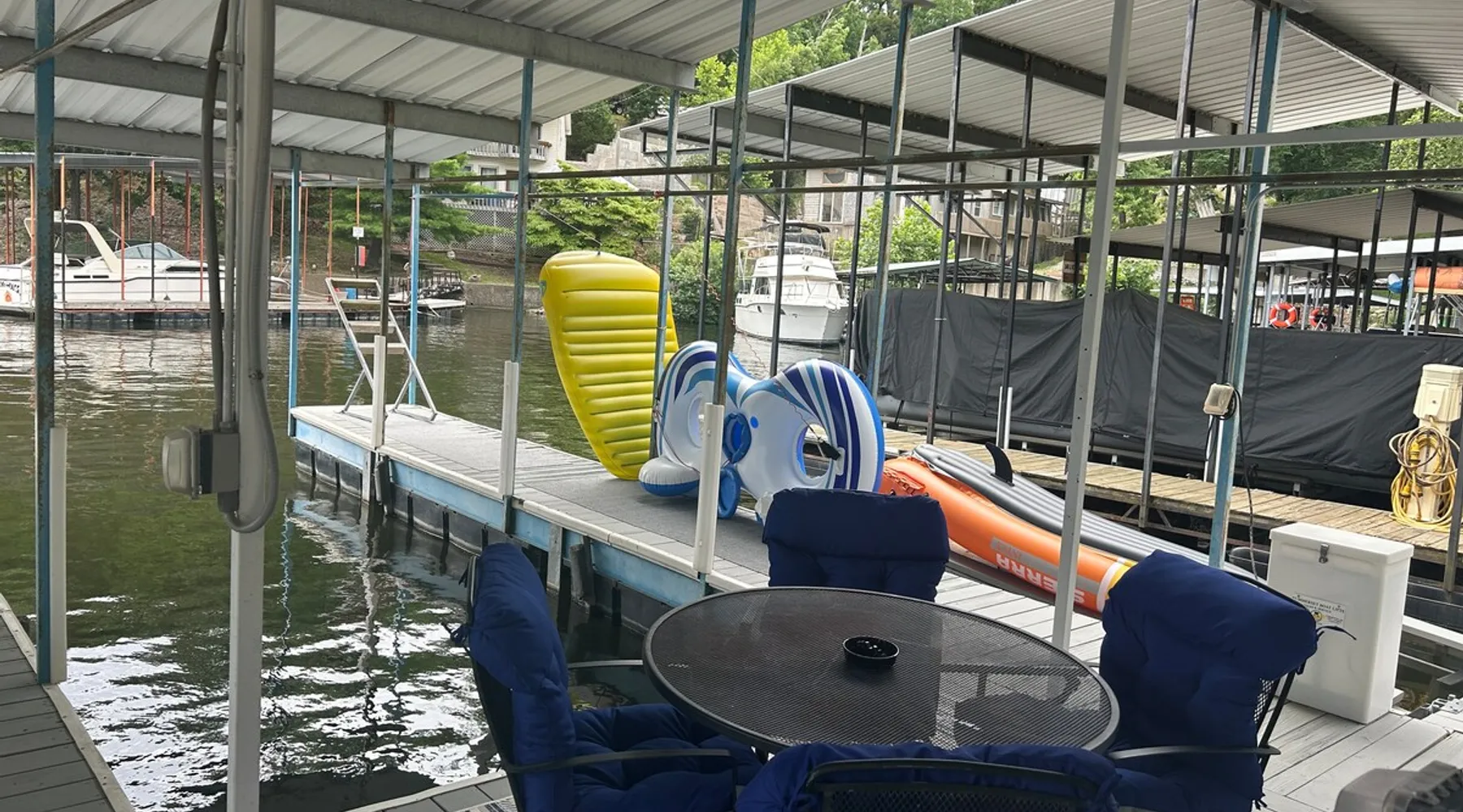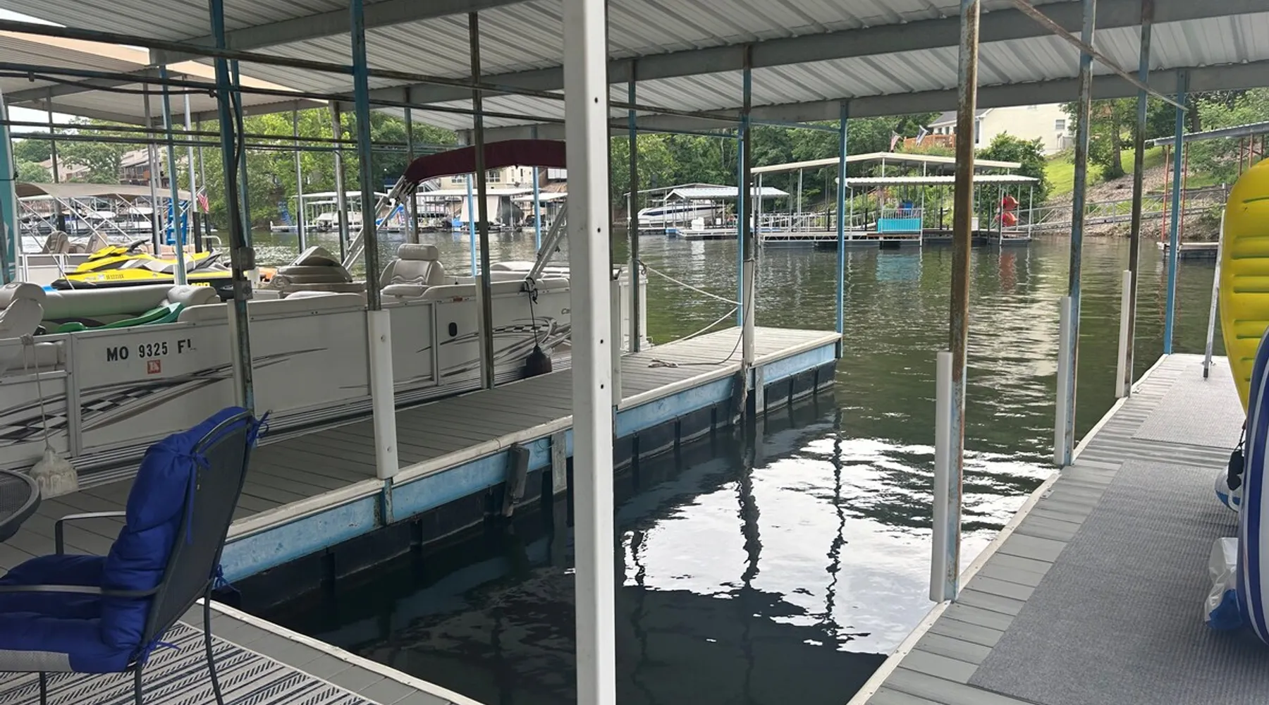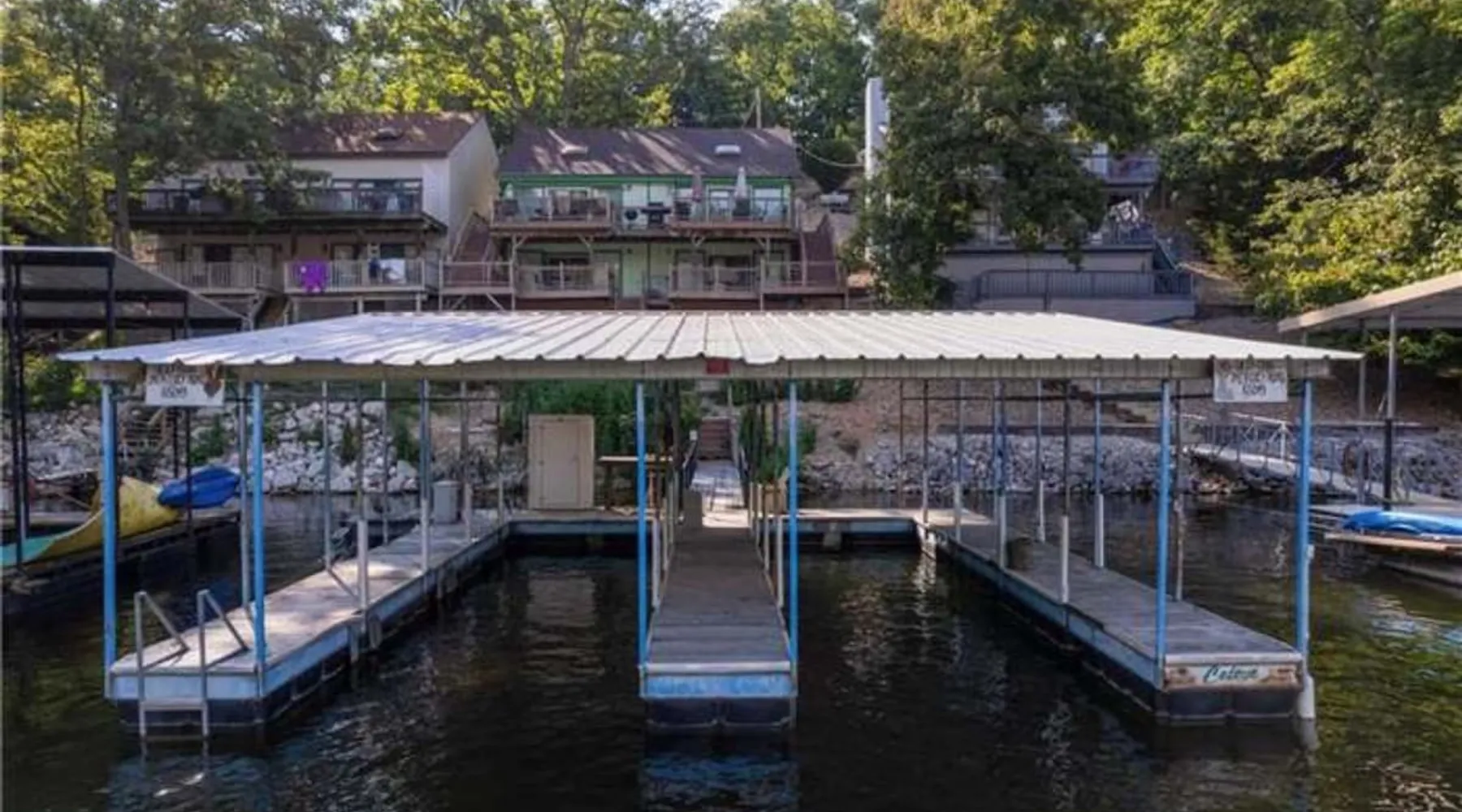 Welcome to Lake It Easy! This is a Waterfront, Shared Duplex located in a quiet, calm cove with great water for swimming right off the dock. A great location by land or water. Located off Horseshoe Bend and just 10 minutes to the Bagnell Dam Strip. Enjoy Shopping, Golfing, Wineries, Dining, Dancing. All just a short drive away! The space This duplex has 3 bedrooms and 2 and 1/2 bathrooms. Bedroom 1 - Upstairs level Queen Bed. Large Closet and TV Bedroom 2 - Upstairs Level Queen Bed and TV Bedroom 3 - Downstairs Level Queen Bed w/ Private Bath, TV Rental includes one 10 x 30 slip or 10 x 25 depending on what you need and jet ski lift. This duplex features a premier location by land and water. Located down Horseshoe Bend, off of Carol Road. In a no-wake cove on the 2.5 mile marker by water. You will only minutes away from several restaurants, golf courses, grocery stores and shopping. Guest access This is a duplex. Shared dock with occupants on other side. Other things to note Parking is limited to two spots. Unfortunately there is not enough room for trailer parking. Please contact us and we can assist you with the best places to launch your boat and park your trailer. We do have a lot of stairs at our property. There are stairs from parking area to the front door and also stairs to the dock. Unfortunately we do not allow pets. We can assist you with nearby kennels for your fur babies during your stay. We are unique in that we are a duplex so this means that you could have neighbors during your stay. The dock is a shared dock.