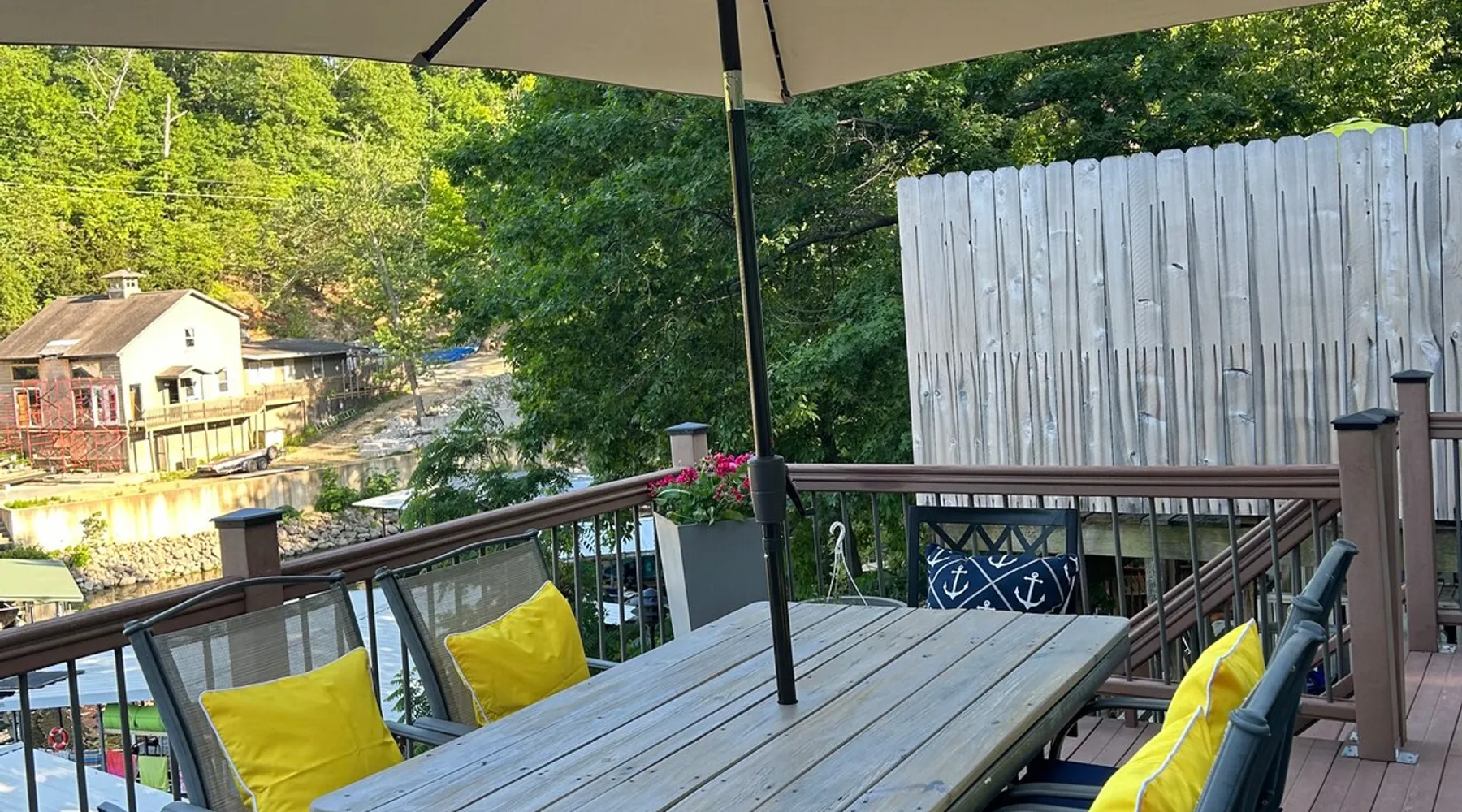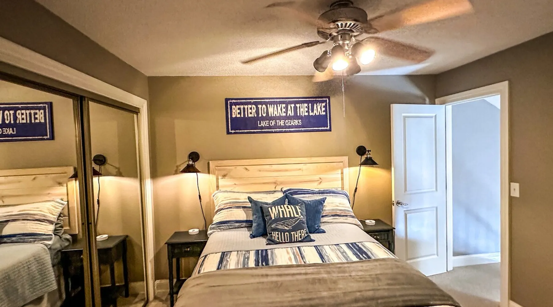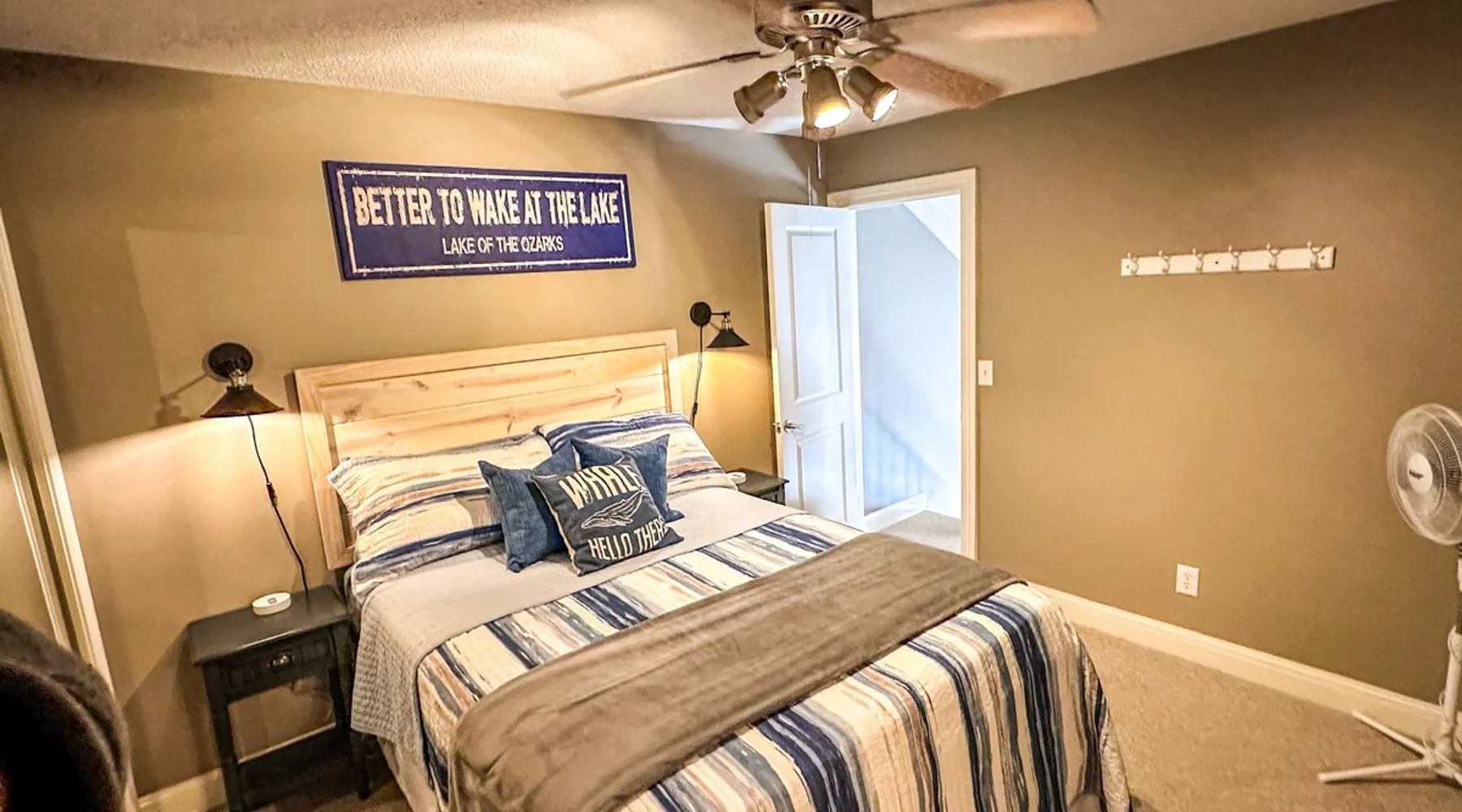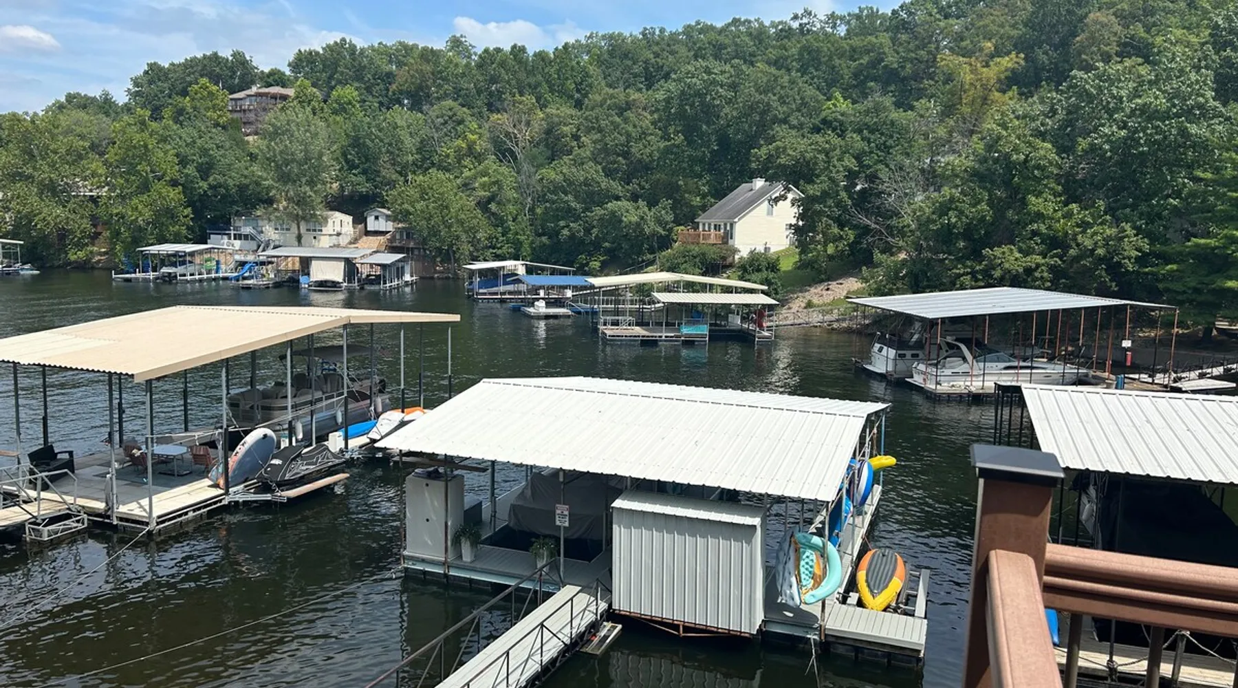 Welcome to Lake It Easy! This is a Waterfront, Shared Duplex located in a quiet, calm cove with great water for swimming right off the dock. A great location by land or water. Located off Horseshoe Bend and just 10 minutes to the Bagnell Dam Strip. Enjoy Shopping, Golfing, Wineries, Dining, Dancing. All just a short drive away! The space This duplex has 3 bedrooms and 2 and 1/2 bathrooms. Bedroom 1 - Upstairs level Queen Bed. Large Closet and TV Bedroom 2 - Upstairs Level Queen Bed and TV Bedroom 3 - Downstairs Level Queen Bed w/ Private Bath, TV Rental includes one 10 x 30 slip or 10 x 25 depending on what you need and jet ski lift. This duplex features a premier location by land and water. Located down Horseshoe Bend, off of Carol Road. In a no-wake cove on the 2.5 mile marker by water. You will only minutes away from several restaurants, golf courses, grocery stores and shopping. Guest access This is a duplex. Shared dock with occupants on other side. Other things to note Parking is limited to two spots. Unfortunately there is not enough room for trailer parking. Please contact us and we can assist you with the best places to launch your boat and park your trailer. We do have a lot of stairs at our property. There are stairs from parking area to the front door and also stairs to the dock. Unfortunately we do not allow pets. We can assist you with nearby kennels for your fur babies during your stay. We are unique in that we are a duplex so this means that you could have neighbors during your stay. The dock is a shared dock.