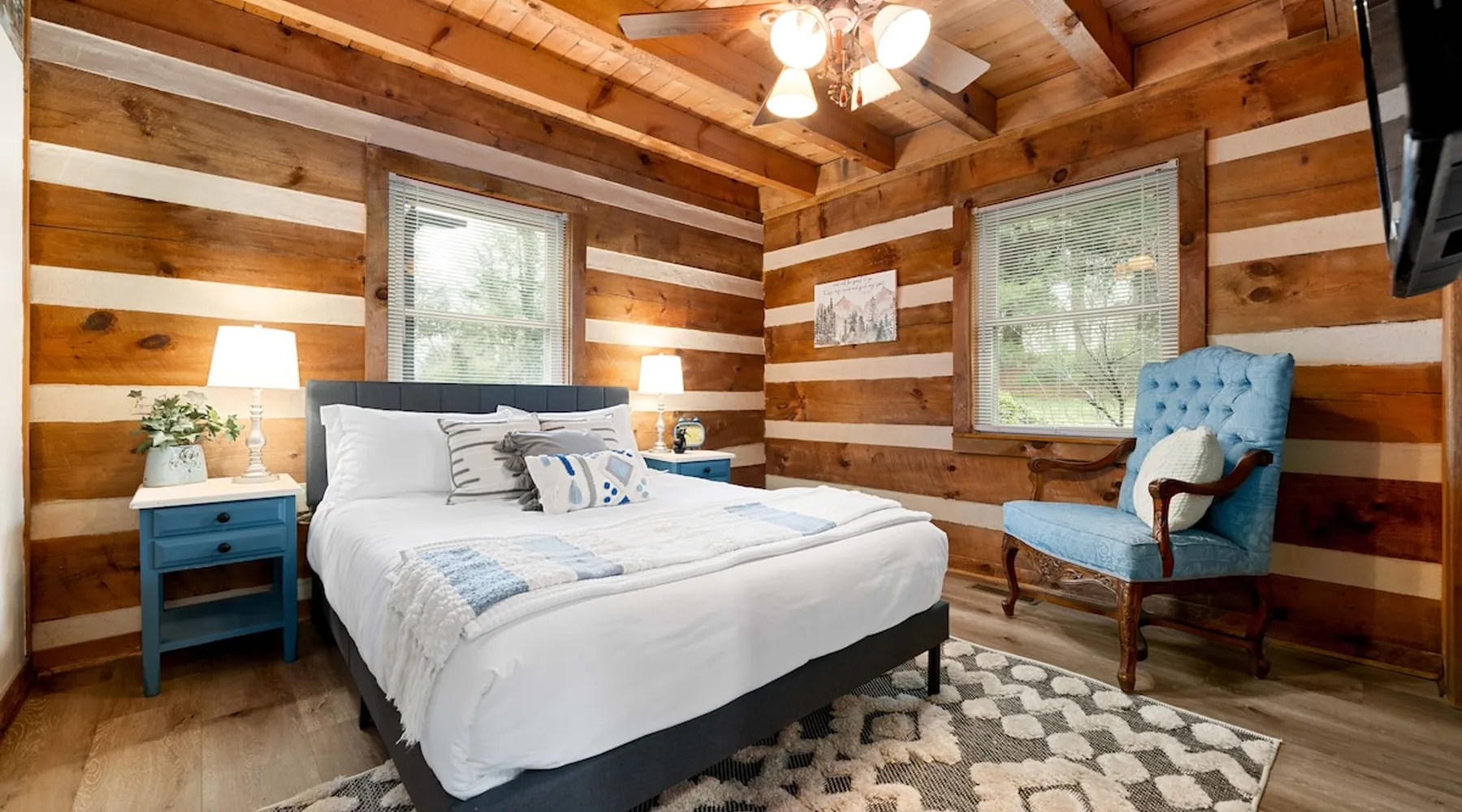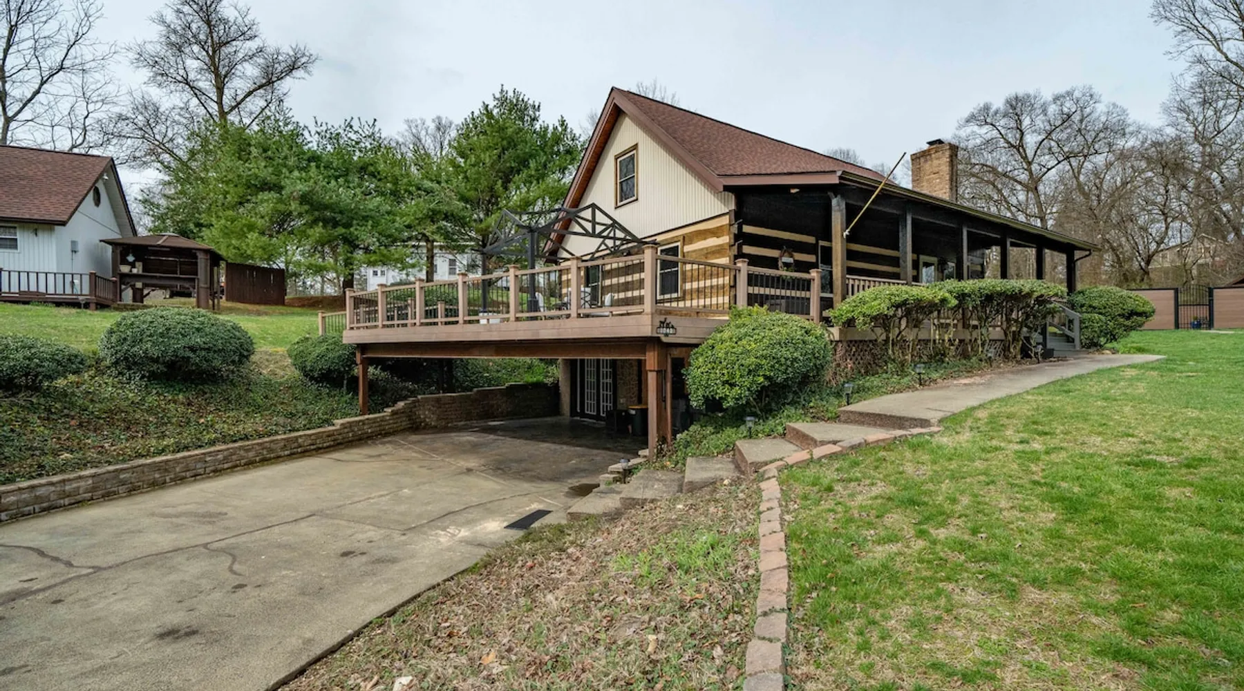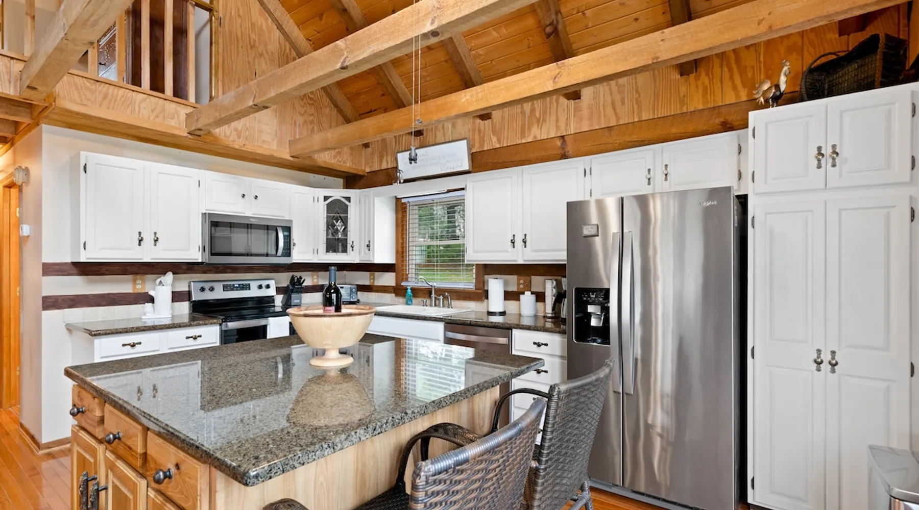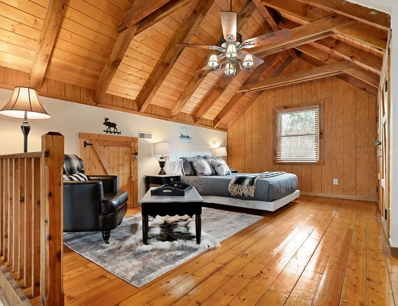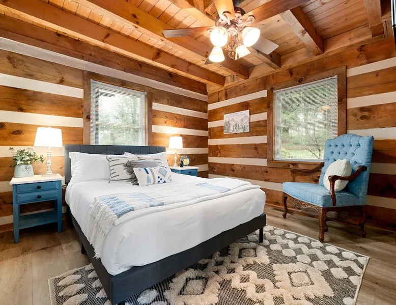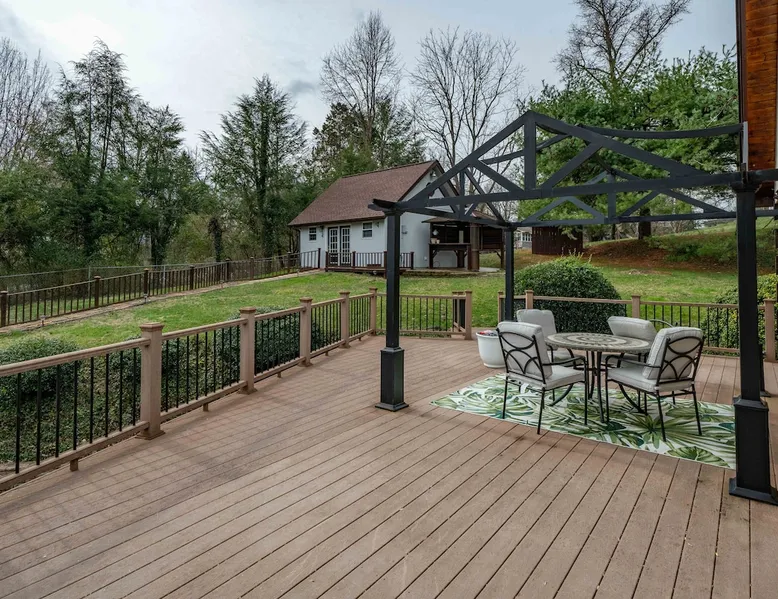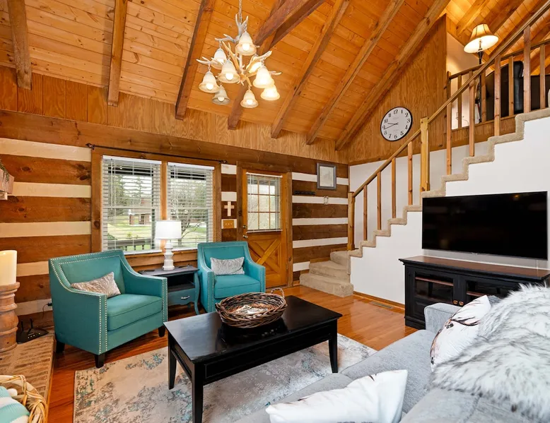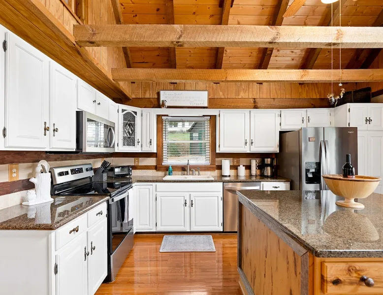 Fully furnished cabin with cozy living room and stocked kitchen. Main level offers 2 queen bedrooms. Upstairs loft with queen bed and bath. Downstairs offers separate living space with queen bed, bath, and laundry. Outside you’ll enjoy the large deck, with gazebo, table & chairs. In the summer, enjoy the saltwater pool, gas grill, covered gazebo, and tons of outdoor seating! Centrally located in Bristol, minutes from the casino, speedway, and hospital. Book now for an unforgettable stay. The space THE PROPERTY This charming cabin is fully furnished and equipped with everything you might need during your stay. The main level has a very cozy living room and kitchen. The kitchen has a large island with bar stool seating. There are also two bedrooms, both with queen beds. Both bedrooms have easy accessibility to a full bathroom on the main level. Upstairs you will find a loft with a queen bed and en suite bath. Downstairs is a separate living space complete with a living room with electric fireplace and queen sized sleeper sofa. The living room has french doors, with easy access to outdoor space and the driveway parking. There is also a bedroom with a queen bed and a full bath. The washer and dryer are located downstairs. Outside you will enjoy the large deck, with covered gazebo complete with a table and chairs. In the summer, you will enjoy the saltwater pool, complete with gas grill, covered gazebo, and tons of outdoor seating and lawn chairs! This house has so much to offer and we will work to make your stay the best! THE LOCATION Located in the heart of Bristol, TN, your cabin is less than a 10-minute drive to the new Hard Rock (Bristol) Casino. A 15-minute drive to Bristol Motor Speedway. In less than 30 minutes you can be rafting or fly fishing on the river, boating on South Holston Lake, or hiking in the numerous area parks. You are a 30-minute drive from Johnson City, Kingsport, or Abington.