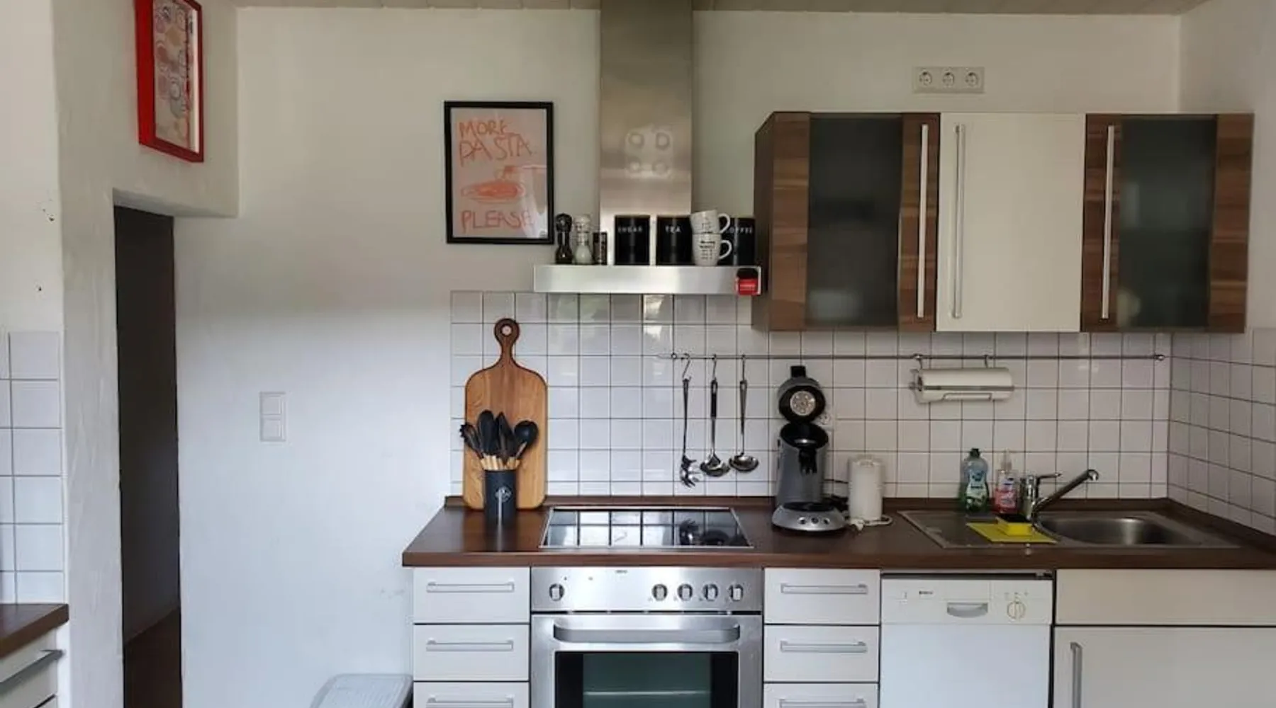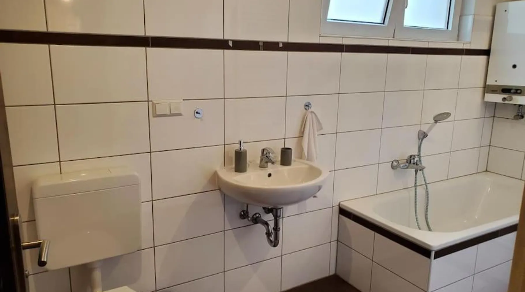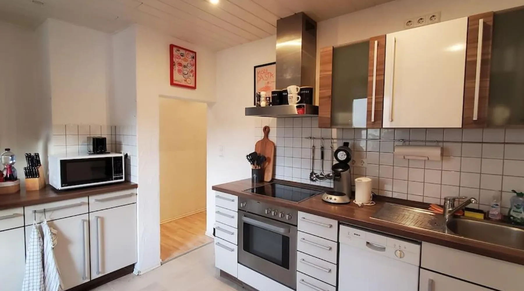 Spacious Living: Snuggly Spacious Apartment Near Everything in Landstuhl offers a spacious layout with one bedroom, one bathroom, and a comfortable living room. The apartment includes a terrace, perfect for relaxation. Modern Amenities: Guests enjoy free WiFi and complimentary parking. The apartment features a fully equipped kitchen with a refrigerator, microwave, dishwasher, oven, stovetop, and tea and coffee maker. Additional amenities include a washing machine, fireplace, TV, and work desk. Convenient Location: Located 29 mi from Saarbrücken Airport, the apartment is near Pfalztheater Kaiserslautern, Kaiserslautern Central Station, and Kaiserslautern University of Technology, each 11 mi away. Fritz Walter Stadium is 12 mi from the property. Highly Rated by Guests: Guests appreciate the spaciousness, pet-friendly environment, and excellent facilities, making it a highly rated choice. This apartment's special feature is the fireplace. This spacious apartment consists of 1 living room, 1 separate bedroom and 1 bathroom with a hairdryer. Guests can make meals in the kitchen that is equipped with a stovetop, a refrigerator, a dishwasher and an oven. Featuring a terrace, this apartment also provides a washing machine, a tea and coffee maker and a flat-screen TV. The unit offers 2 beds.
