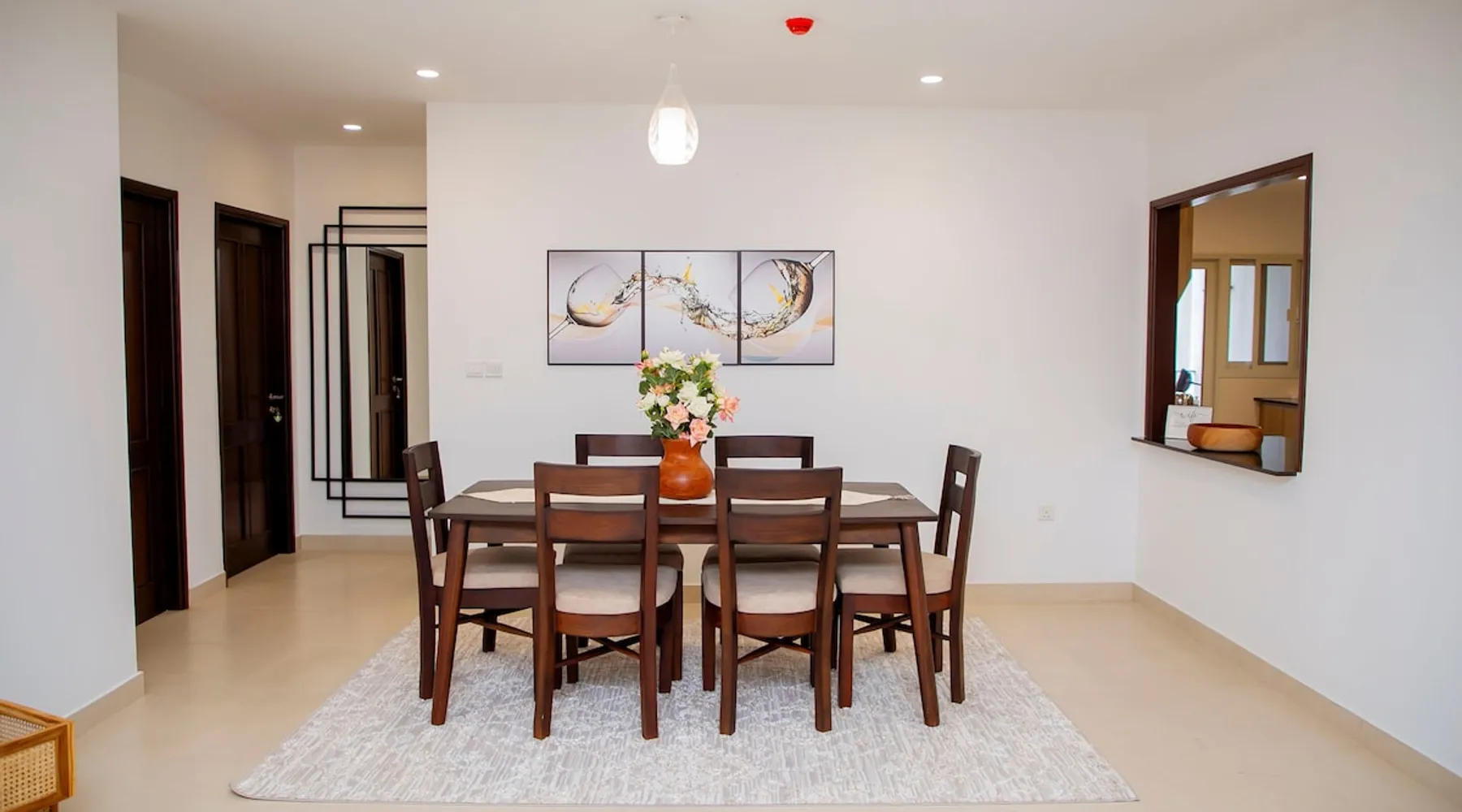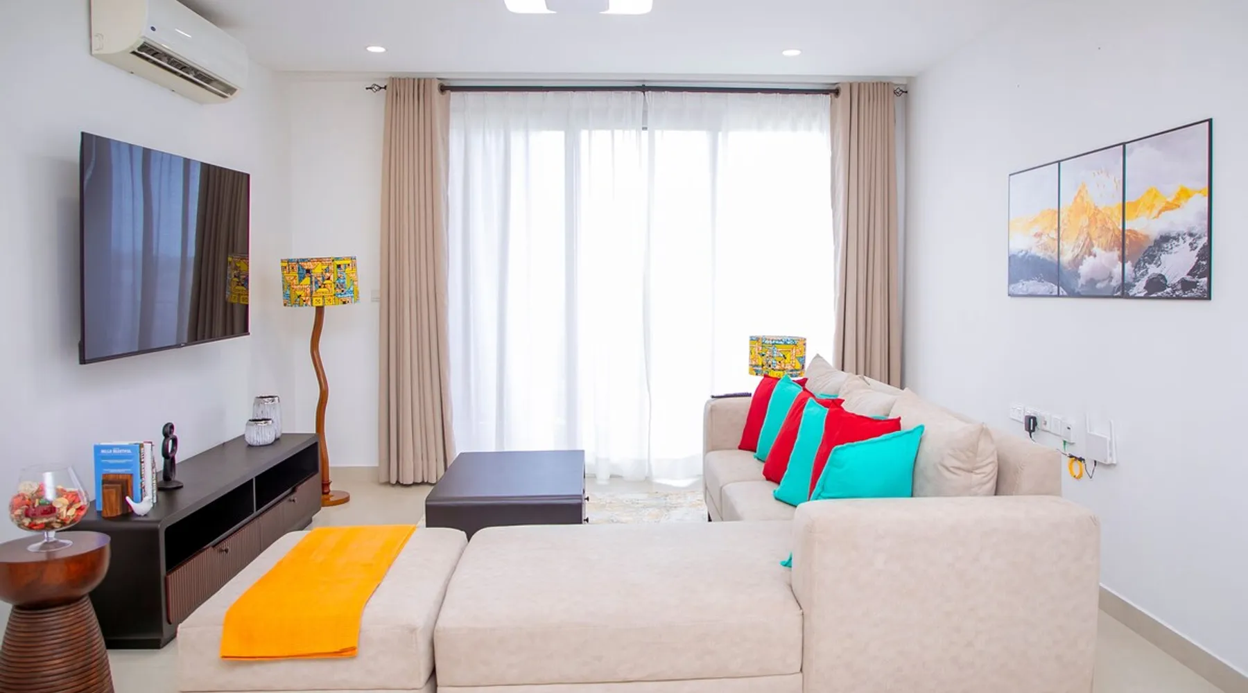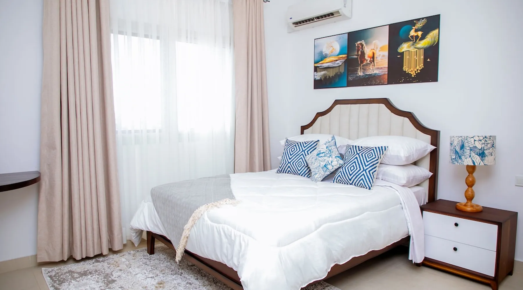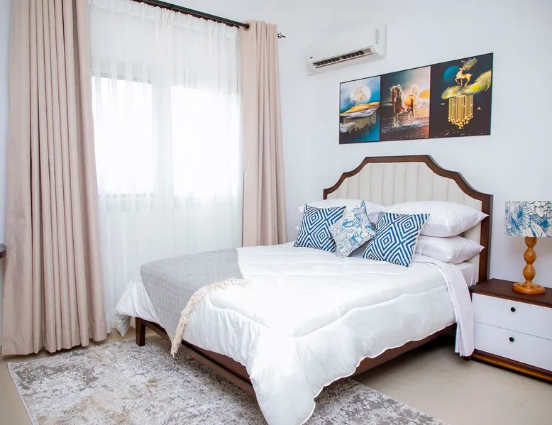 Welcome to our Home in the heart of Dar es Salaam. We are proud to offer a cozy, beautifully designed apartment that is only 6 minutes away from the famous Indian Ocean beach. Situated in the city centre, the apartment provides easy access to dining, shopping, and entertainment - all of which the city is known for. The house features Wi-Fi, air-conditioned rooms, and a fully equipped kitchen. This is the perfect place to stay whether you want to explore the city or unwind in comfort. The space This comfy apartment has all you need for modern living. The Location: Situated in Morocco, it's close to town, making everything easily accessible. The Apartment: Inside, you'll find a cool living room with comfy furniture, safe parking with electric fencing, fast and unlimited WIFI for smooth streaming, a 65-inch TV with Netflix for your entertainment, a practical kitchen with modern appliances, housekeeping three times a week to keep things tidy, and spacious and comfy rooms with all the basics. The Bedrooms: There are three roomy bedrooms, each with its own bathroom and basic amenities, enough closet space, and a spot to get some work done. The Bathrooms: Roomy showers and toilet facilities with basic necessities. The Kitchen: An open kitchen with all the basics, free tea, coffee, and sugar, and more available on request. Appliances include a kettle, microwave, oven, washing machine, and fridge/freezer. The Building: It's a secure place with 24-hour security and guards, electric fencing, and a backup generator for continuous power. We have a pool acess that comes at an extra cost. Make this spot your own - contact us to check it out! Guest access Guests will have the whole appartment to themselves.