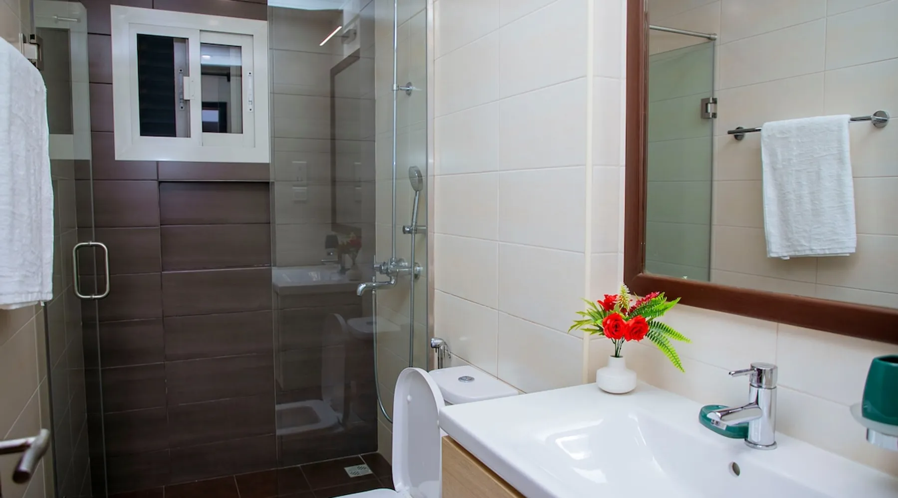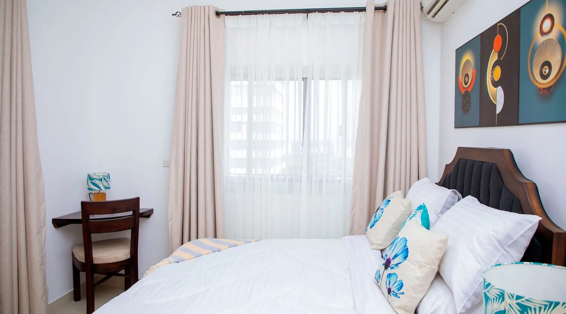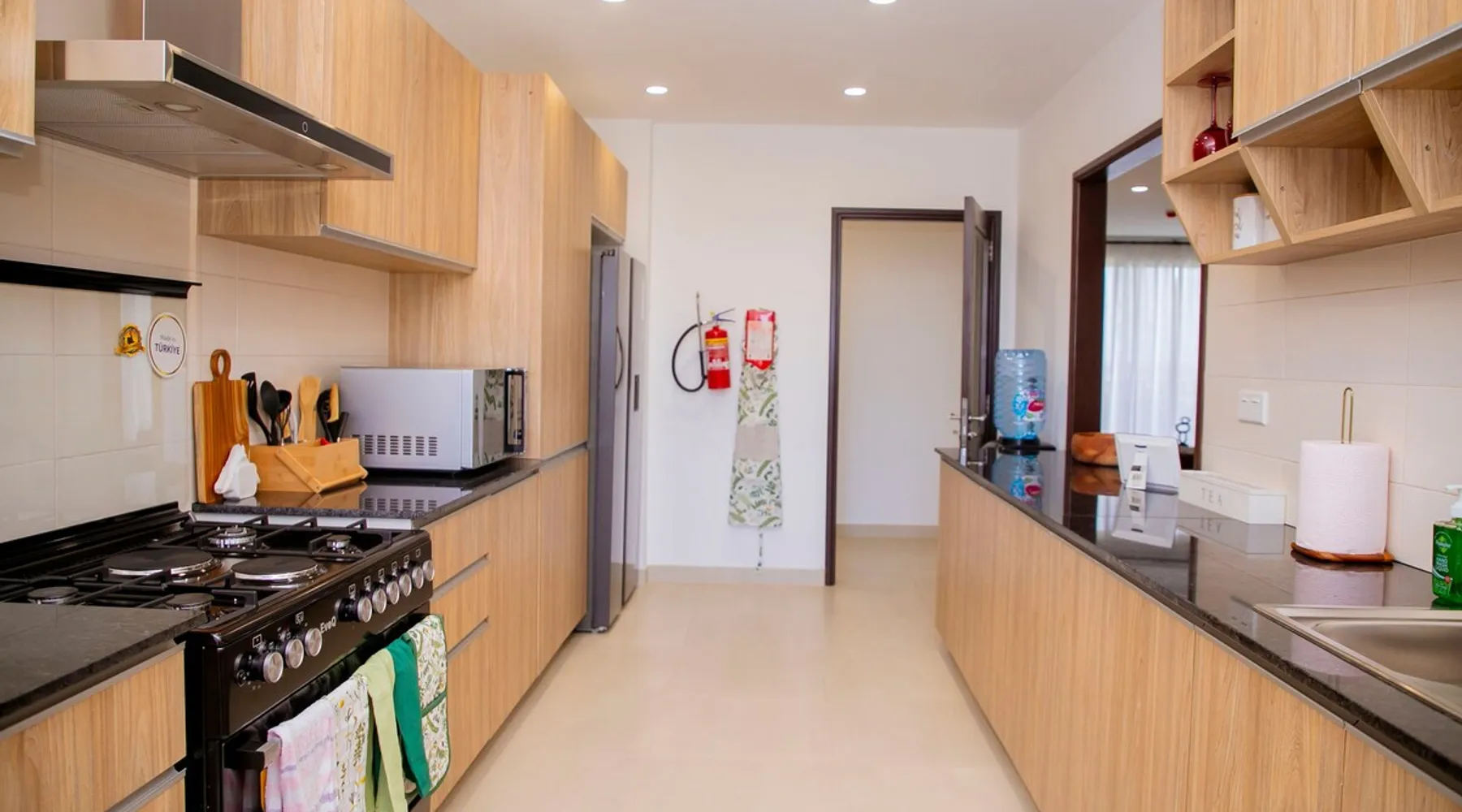 Welcome to our Home in the heart of Dar es Salaam. We are proud to offer a cozy, beautifully designed apartment that is only 6 minutes away from the famous Indian Ocean beach. Situated in the city centre, the apartment provides easy access to dining, shopping, and entertainment - all of which the city is known for. The house features Wi-Fi, air-conditioned rooms, and a fully equipped kitchen. This is the perfect place to stay whether you want to explore the city or unwind in comfort. The space This comfy apartment has all you need for modern living. The Location: Situated in Morocco, it's close to town, making everything easily accessible. The Apartment: Inside, you'll find a cool living room with comfy furniture, safe parking with electric fencing, fast and unlimited WIFI for smooth streaming, a 65-inch TV with Netflix for your entertainment, a practical kitchen with modern appliances, housekeeping three times a week to keep things tidy, and spacious and comfy rooms with all the basics. The Bedrooms: There are three roomy bedrooms, each with its own bathroom and basic amenities, enough closet space, and a spot to get some work done. The Bathrooms: Roomy showers and toilet facilities with basic necessities. The Kitchen: An open kitchen with all the basics, free tea, coffee, and sugar, and more available on request. Appliances include a kettle, microwave, oven, washing machine, and fridge/freezer. The Building: It's a secure place with 24-hour security and guards, electric fencing, and a backup generator for continuous power. We have a pool acess that comes at an extra cost. Make this spot your own - contact us to check it out! Guest access Guests will have the whole appartment to themselves.